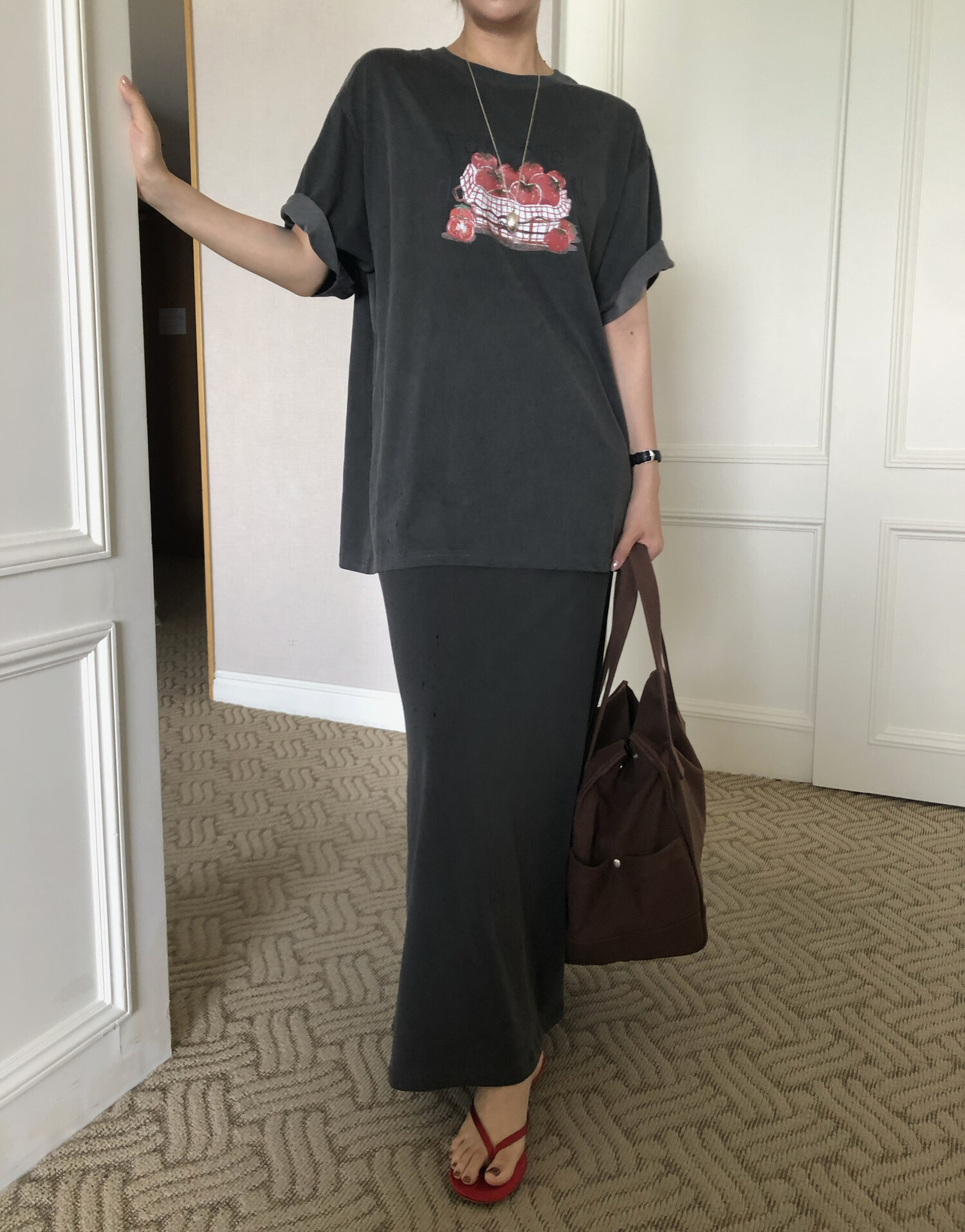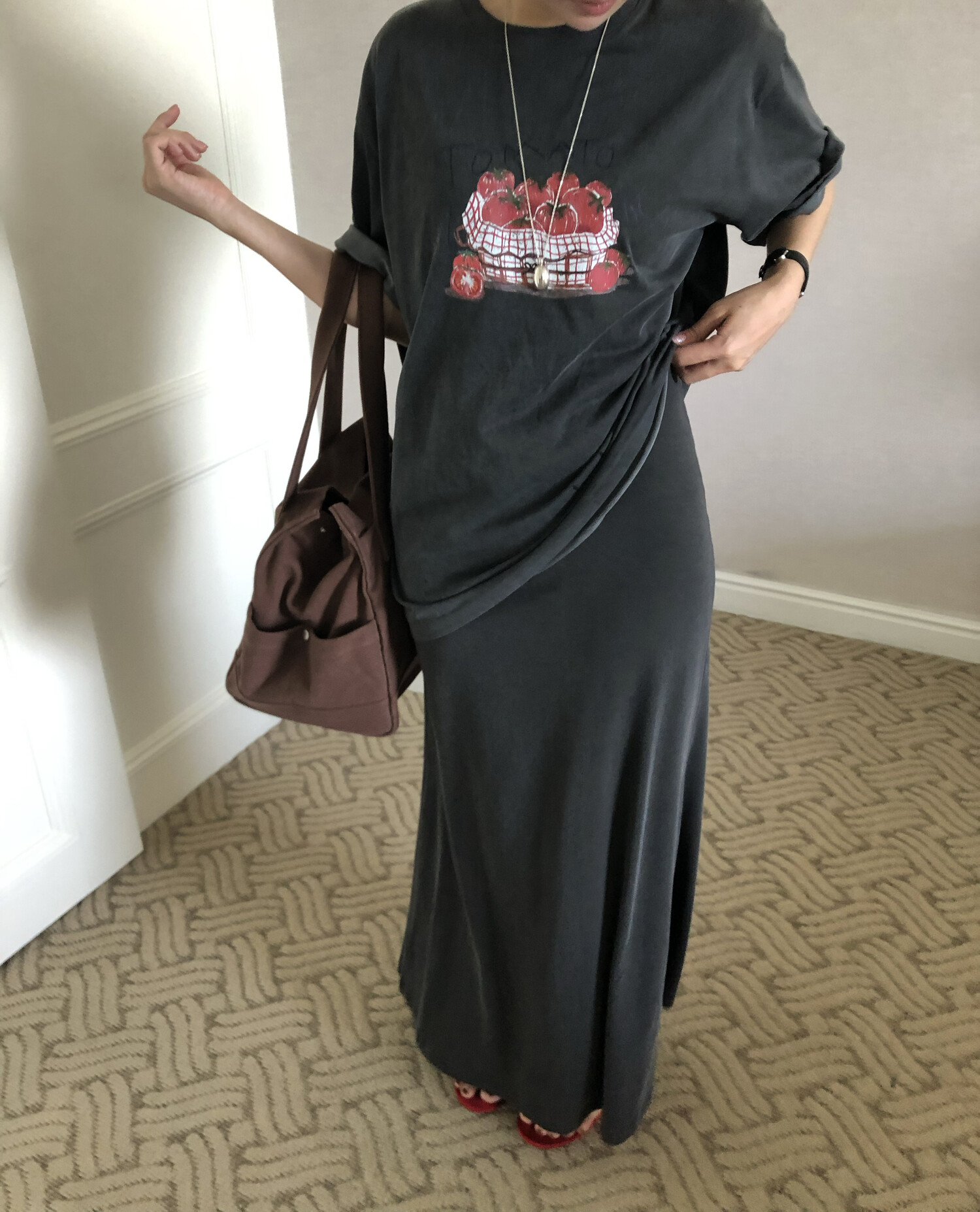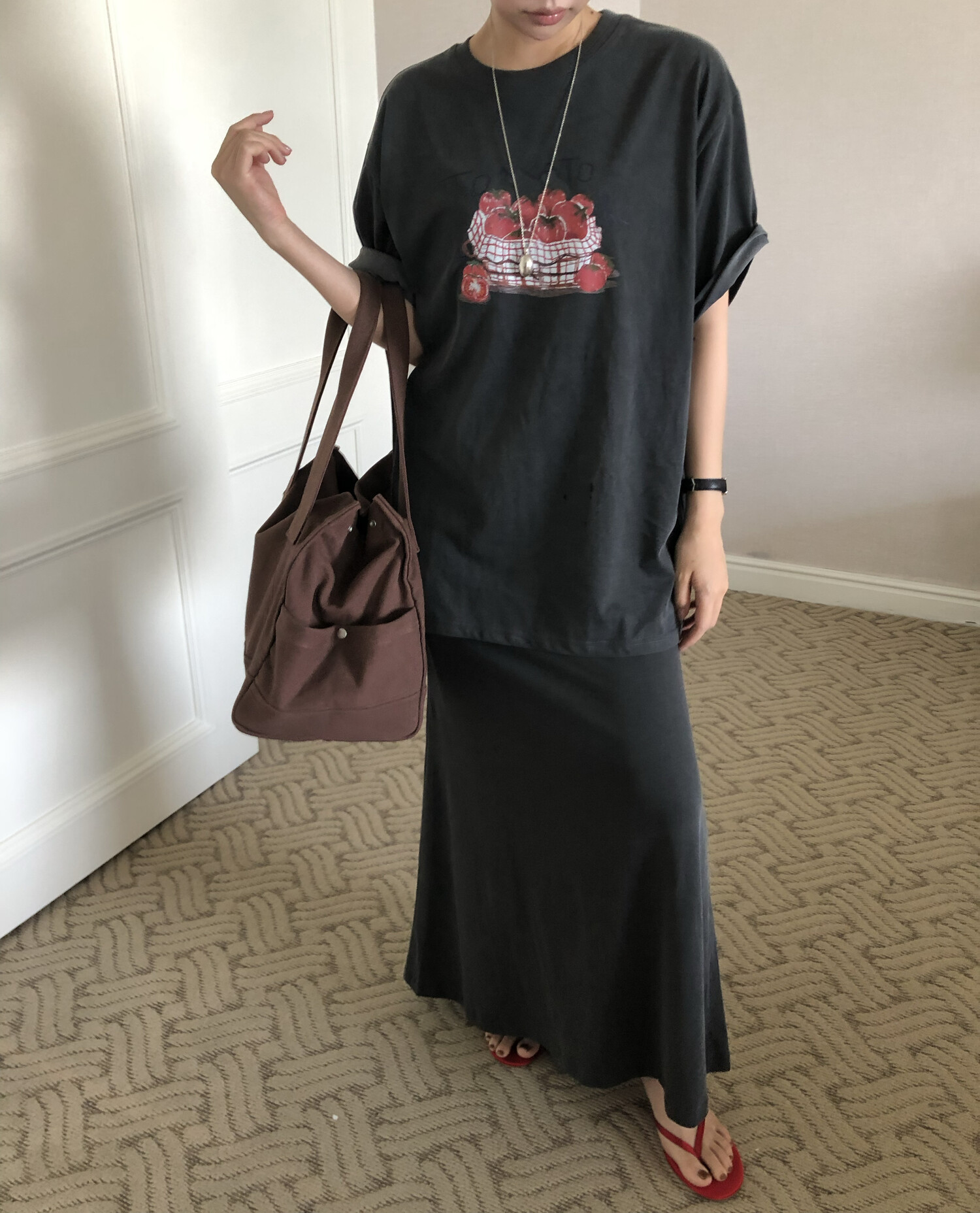 charcoal 착용-워싱감 느껴지는 소재로 빈티지스런 멋이 포인트입니다.
