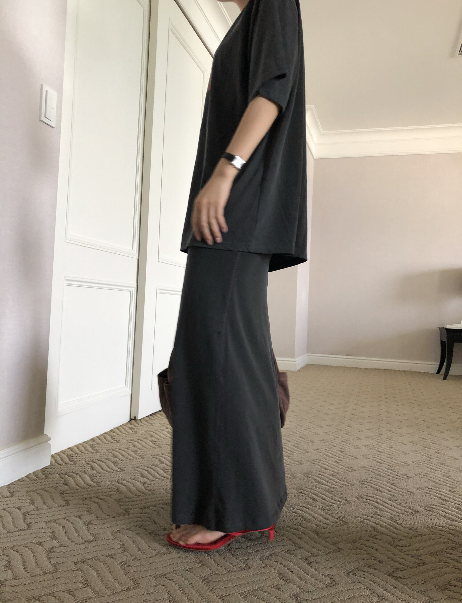 Sweat flare long sk-charcoal