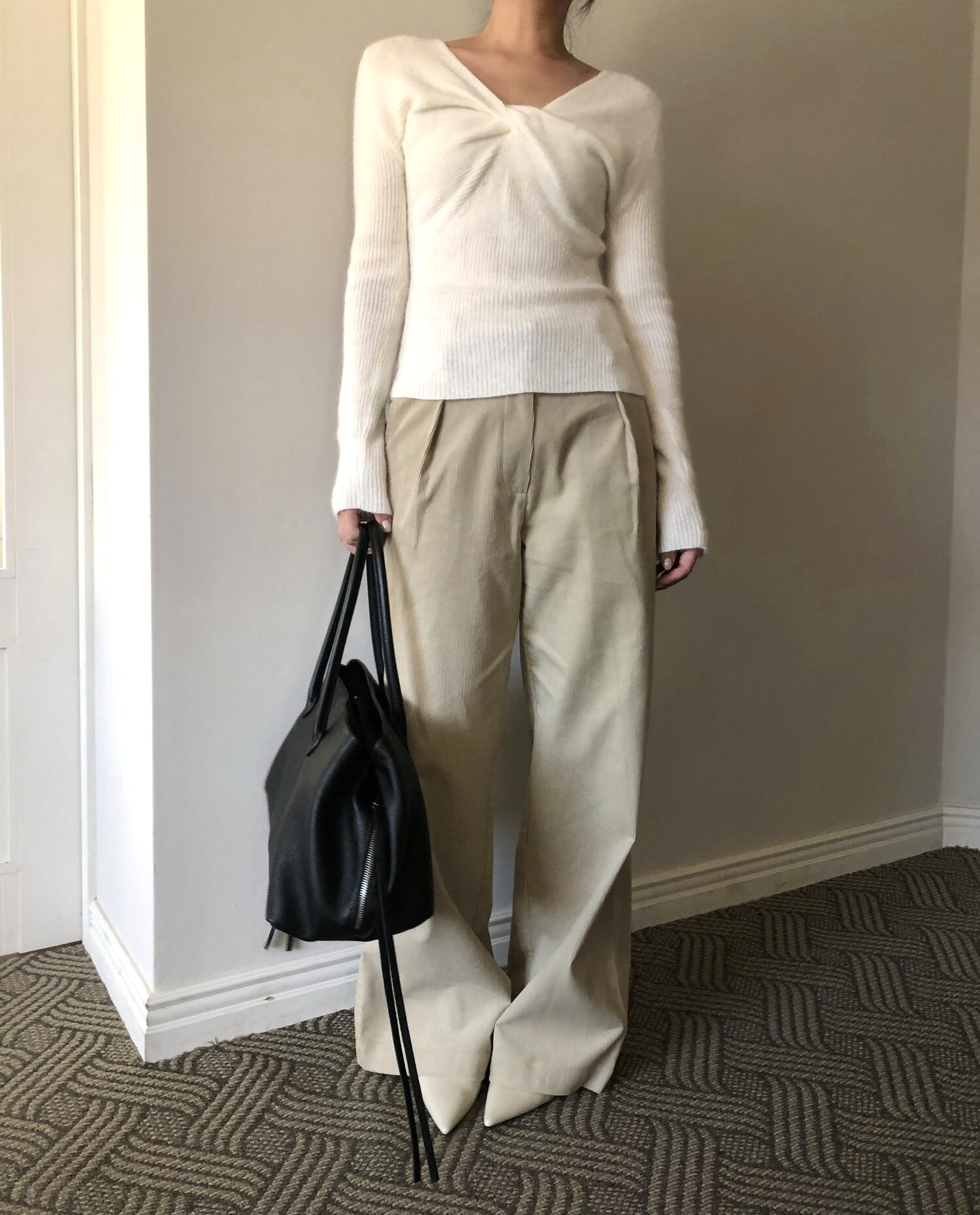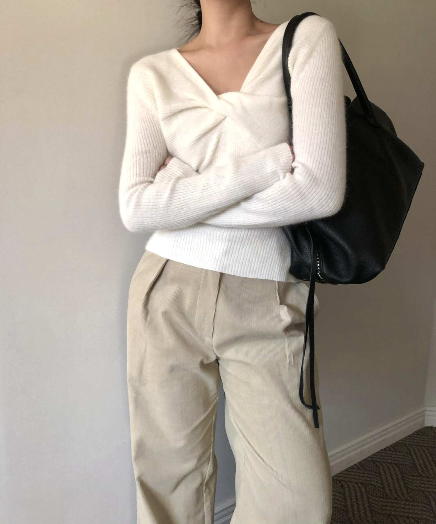 -프론트 트위스트 포인트로 여성스런 무드 강조(하객룩&연말룩 추천)