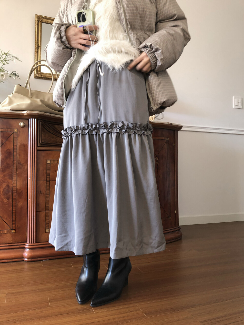 -시즌리스하게 즐기기 좋은 찰랑이는 텐셀혼방의 롱스커트