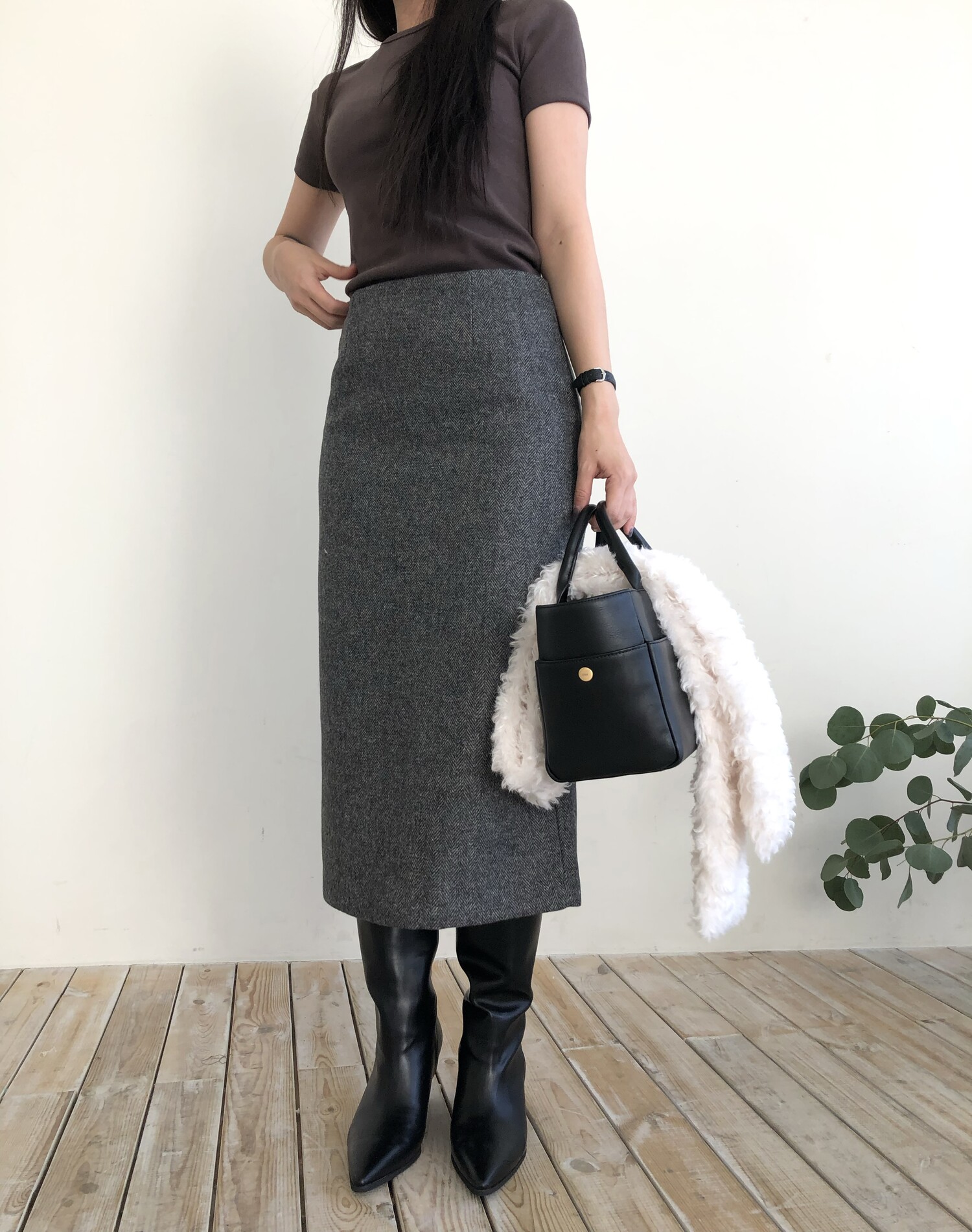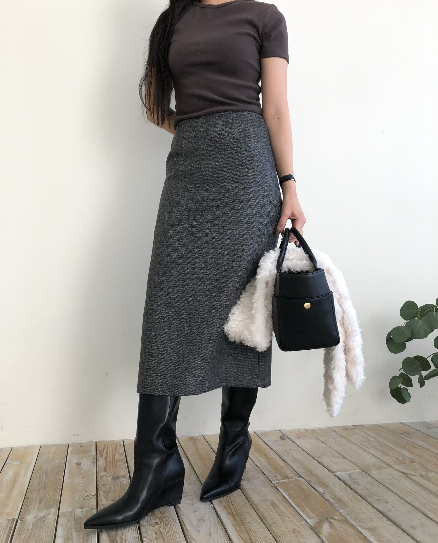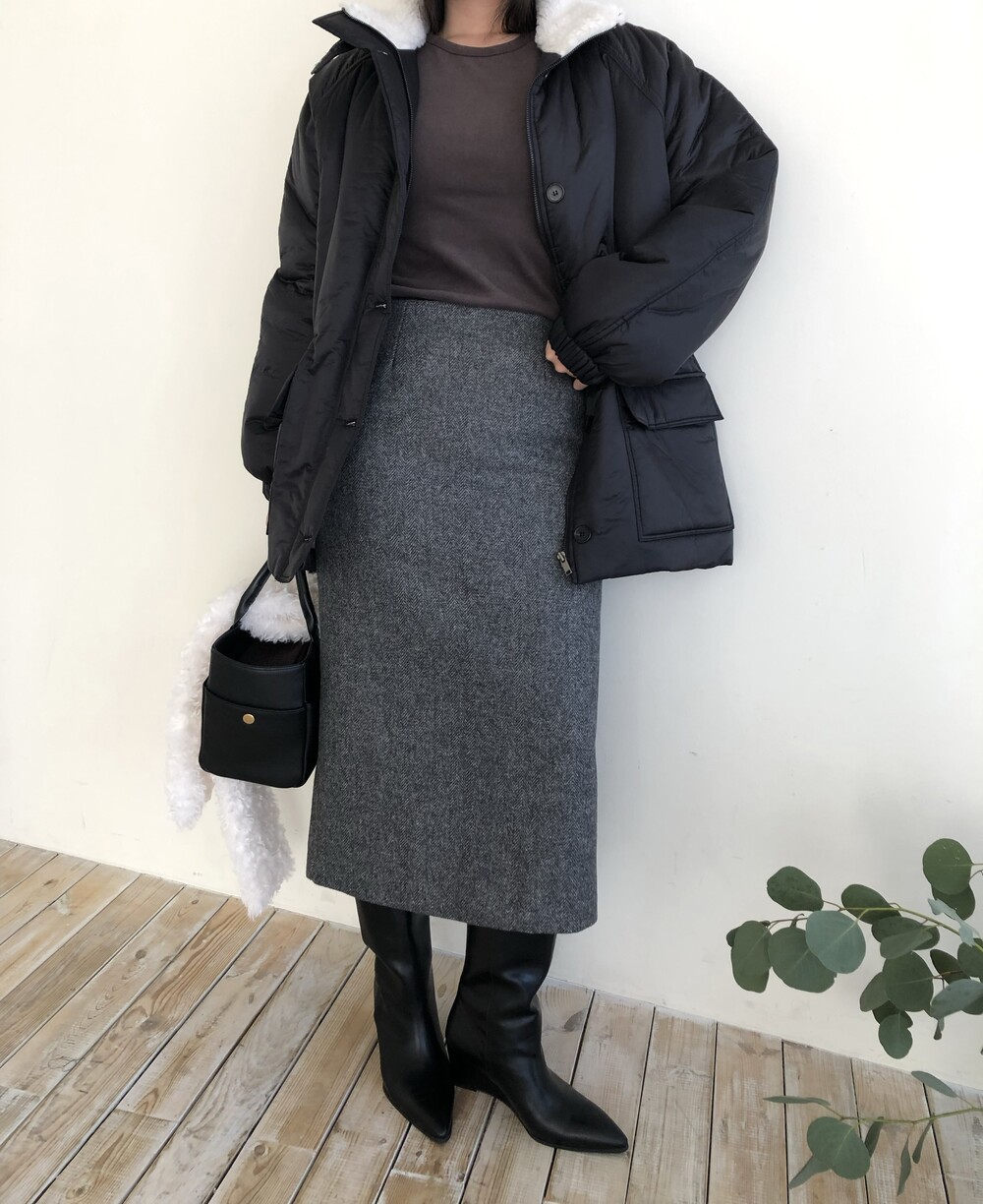 -겨울내 멋스럽게 입기좋은 미디롱기장의 펜슬스커트(핏이 정말 이쁩니다. 허리는 살짝 하이웨이스트 라인으로 다소 타이트하게 나와 실측 꼭 확인 부탁드립니다.)