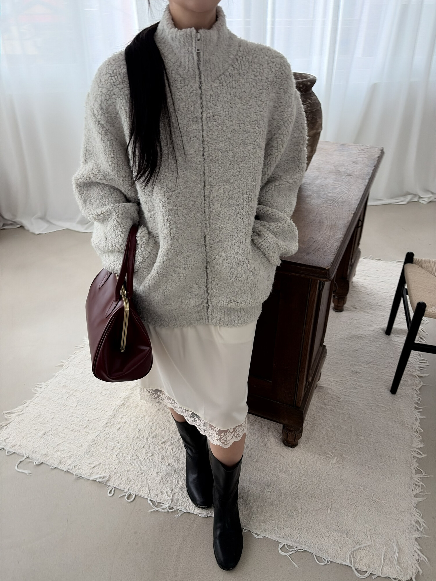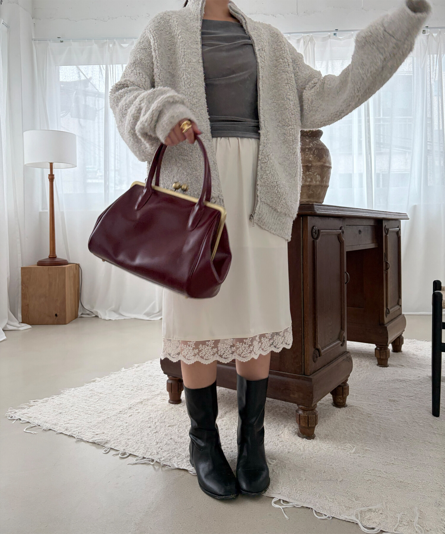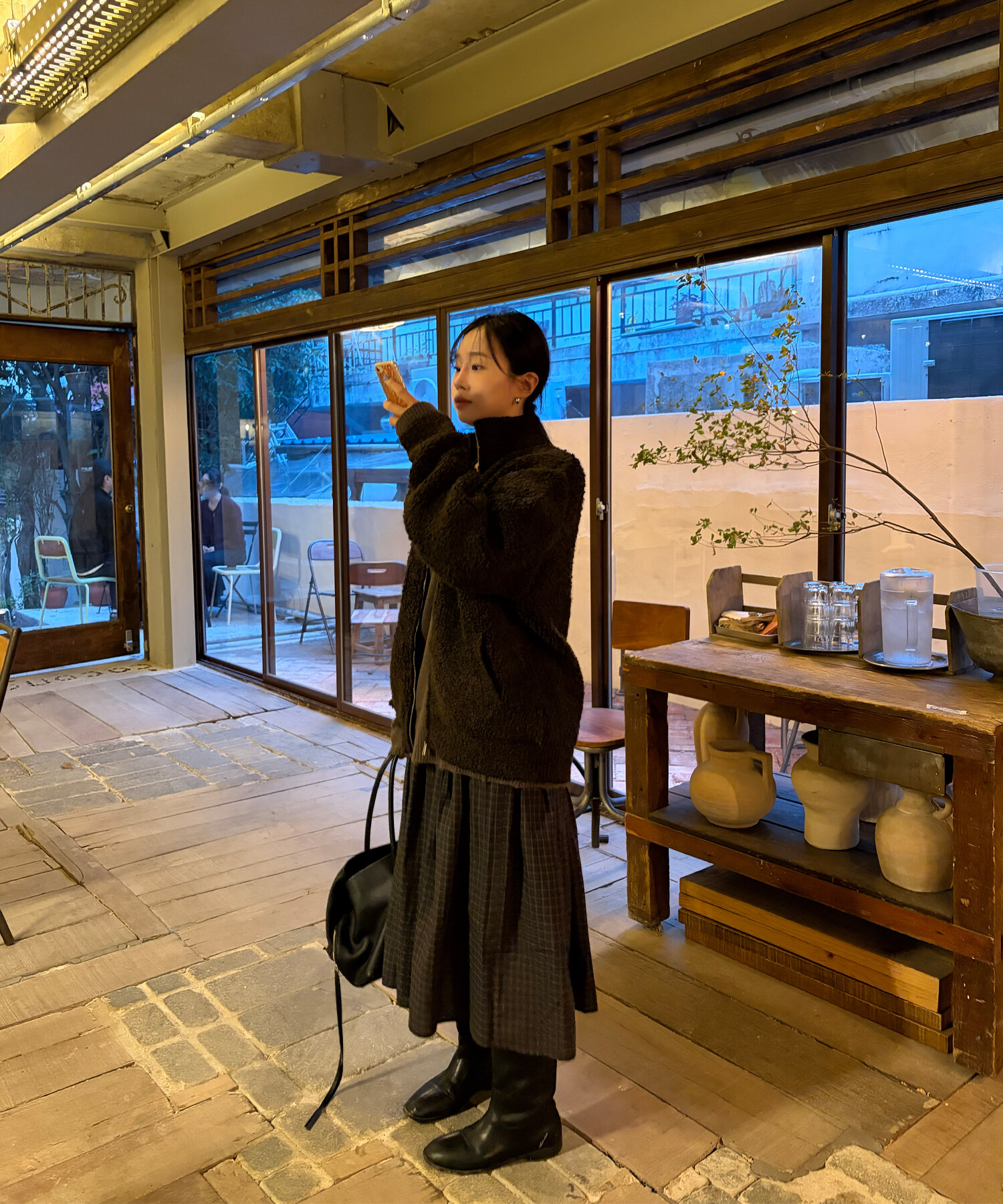 -까슬거림 없는 폭닥&도톰한 부클 소재로 한겨울까지 착용(소재감만으로 룩 포인트가 되어줍니다.)