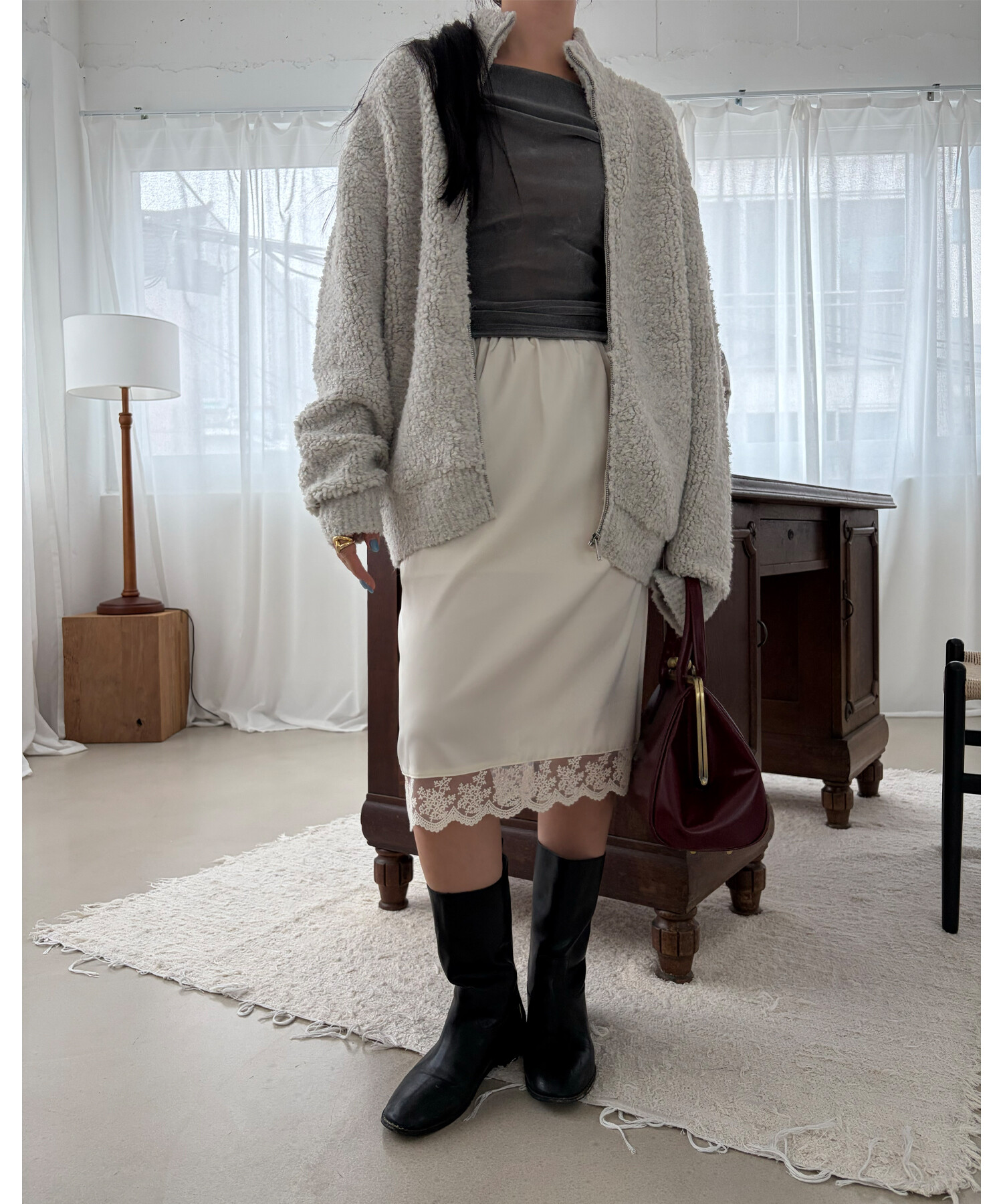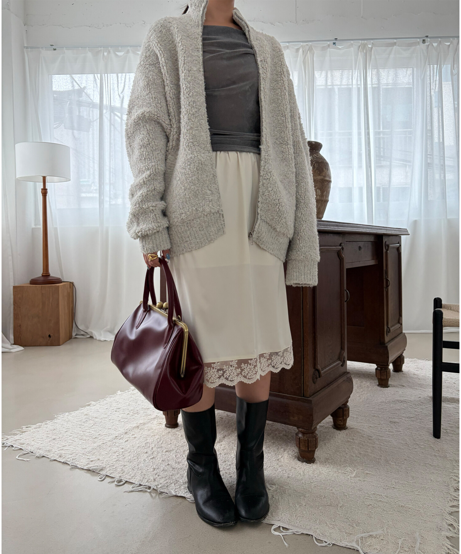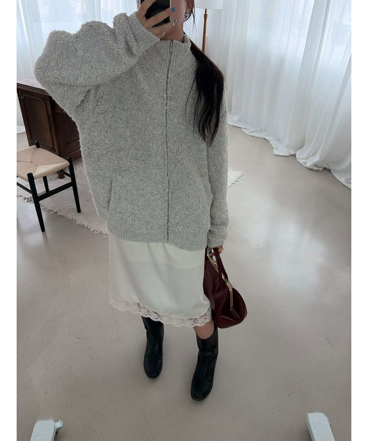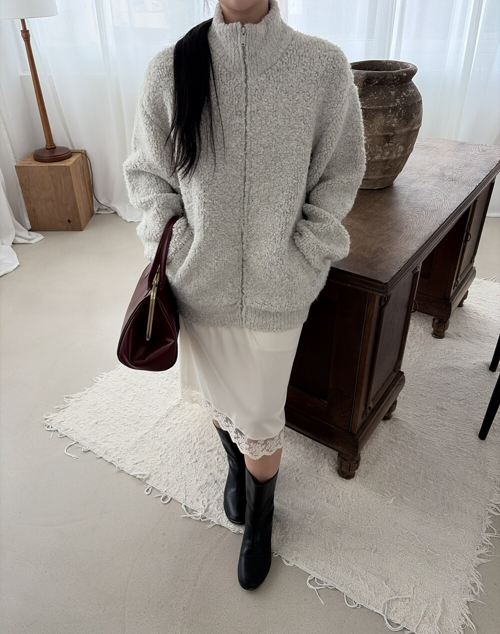 -까슬거림 없는 폭닥&도톰한 부클 소재로 한겨울까지 착용(소재감만으로 룩 포인트가 되어줍니다.)