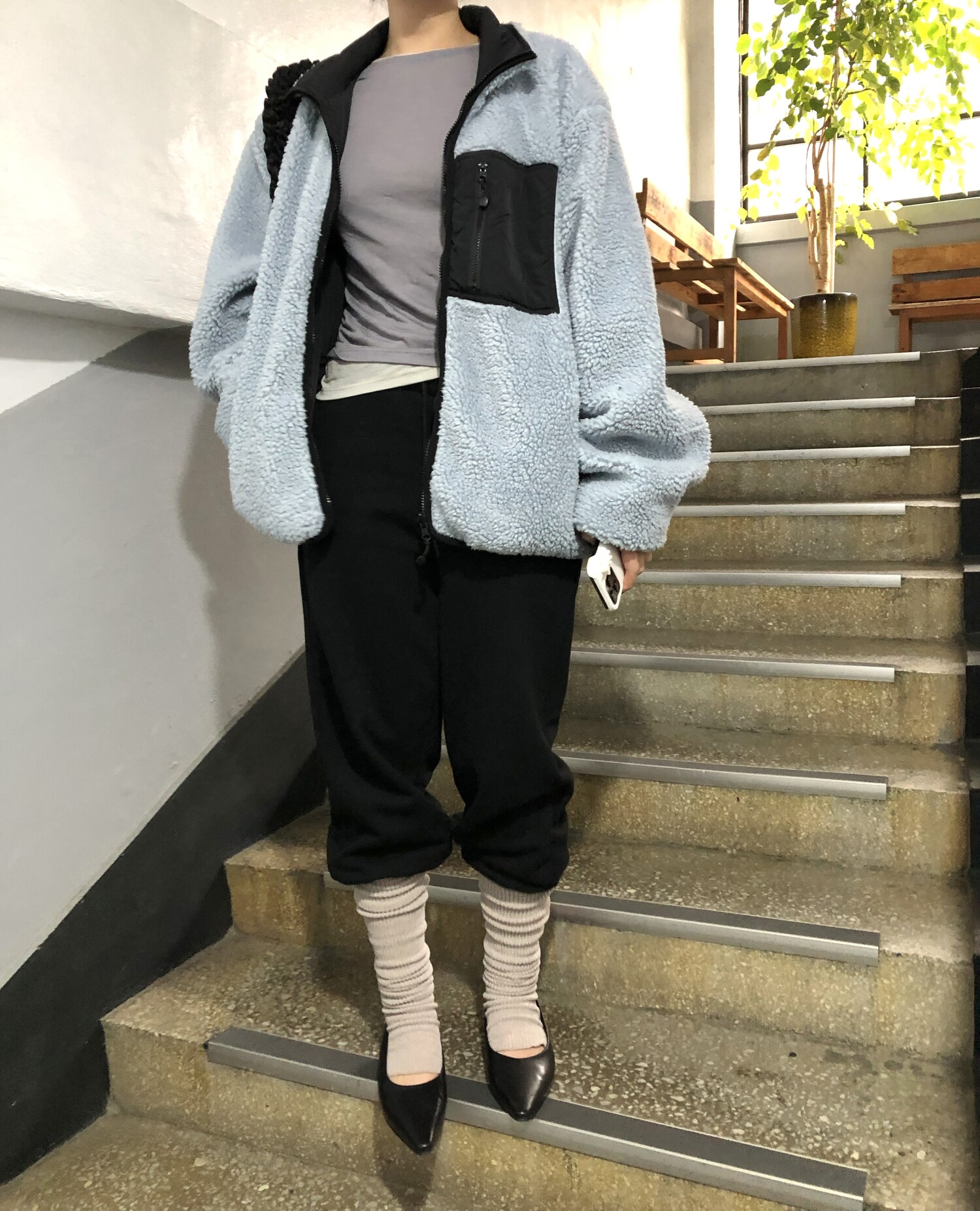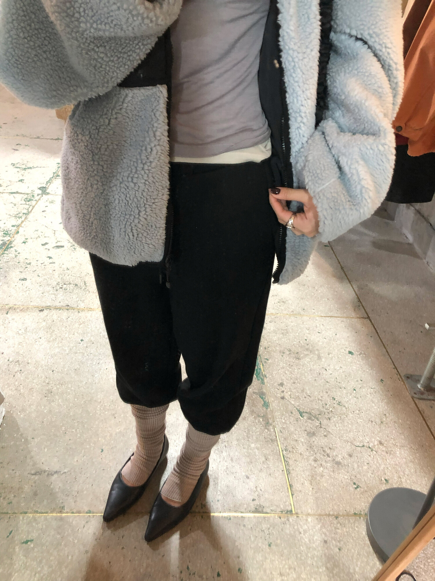 팬츠는 쭈리소재로 도톰하고 힙있는 소재로 슬림하게 표현해주며 워머부분은 벨루아 원단으로 부드럽고 따뜻해요.
