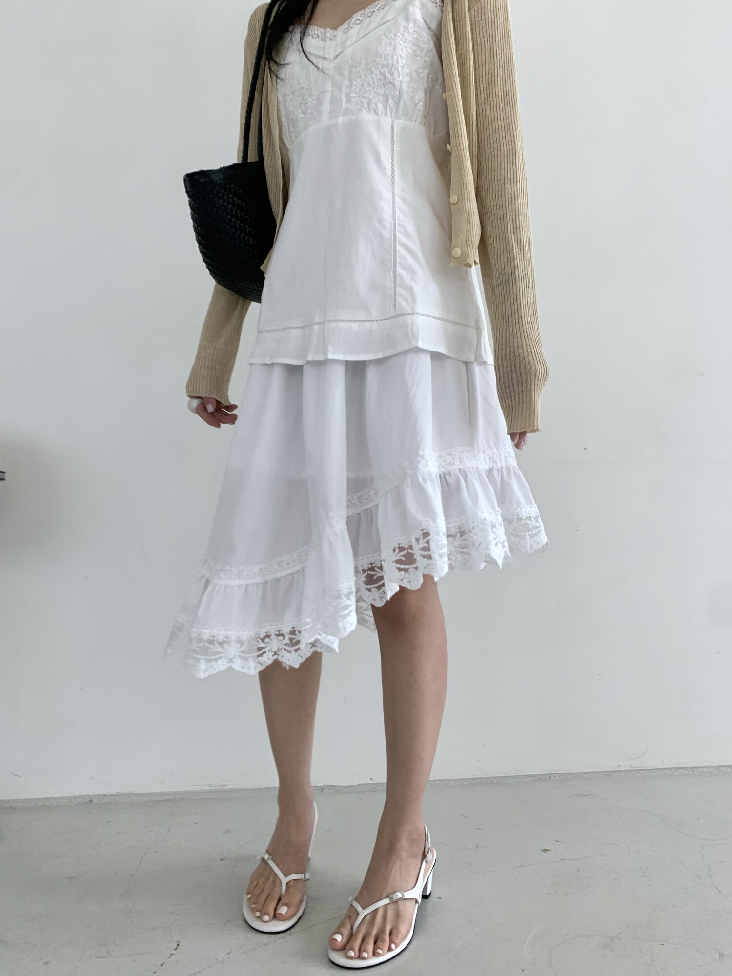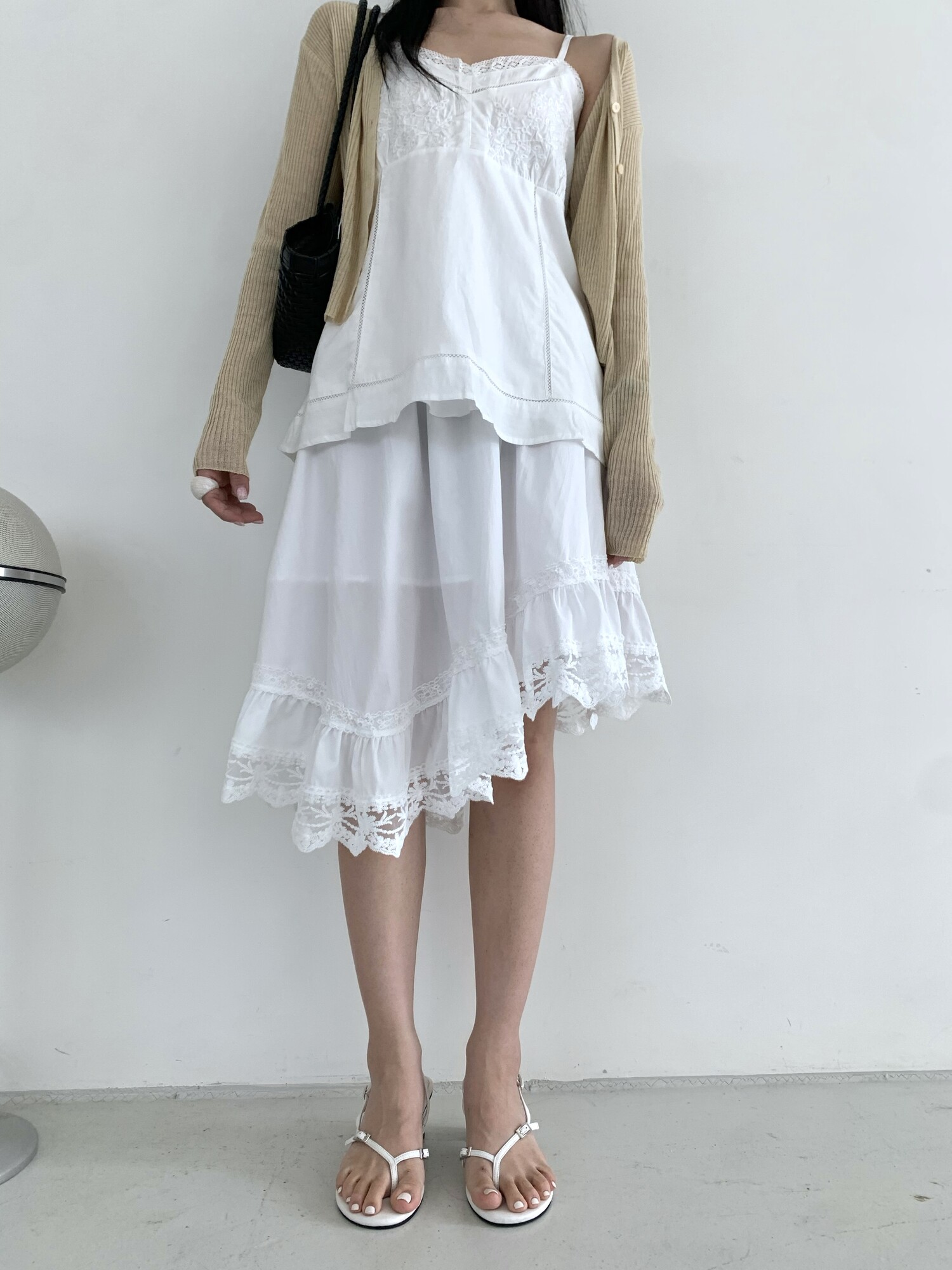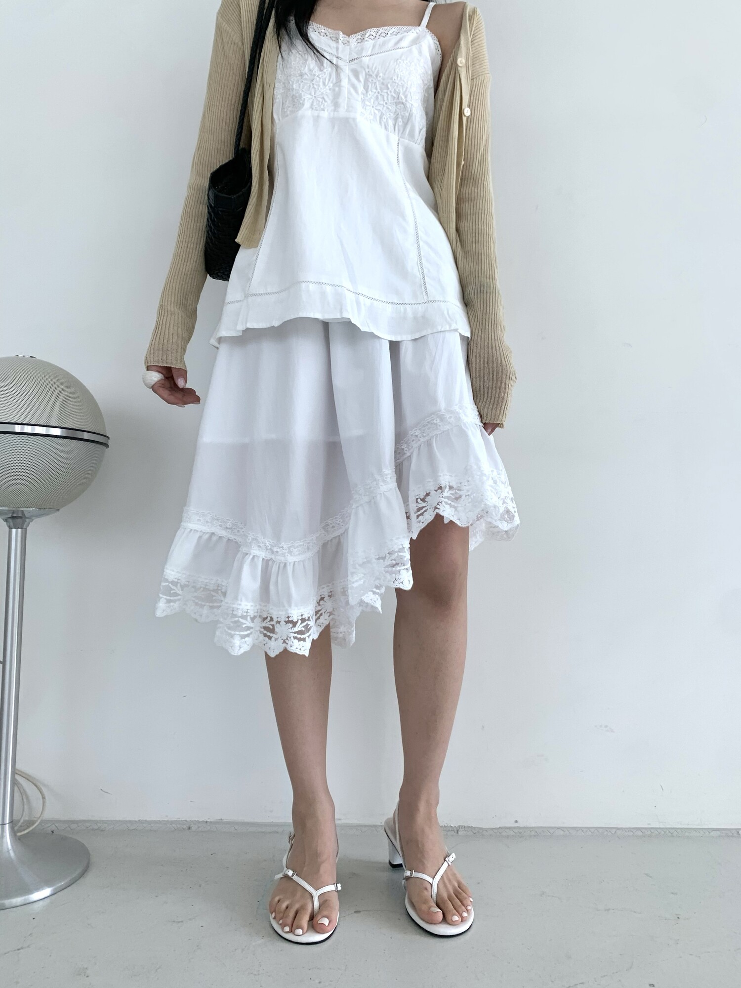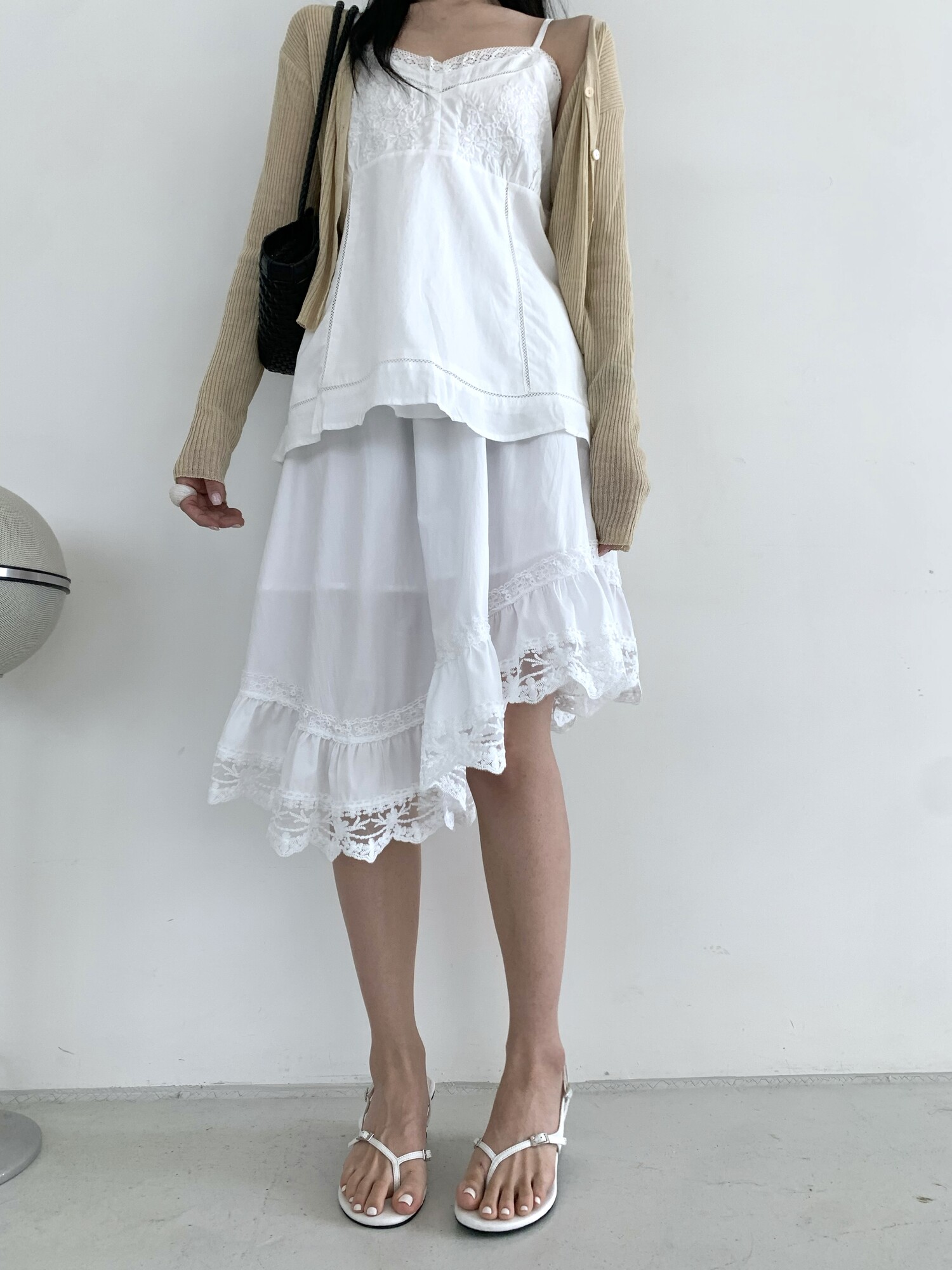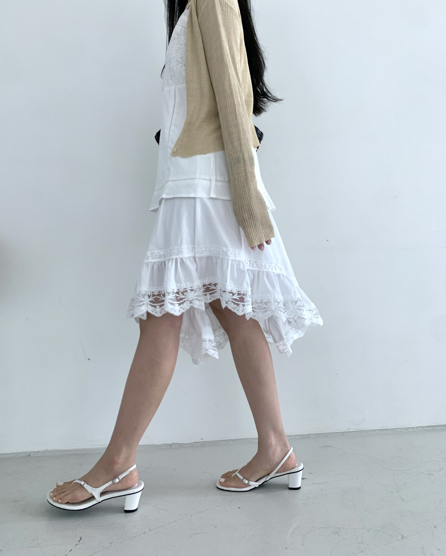 Diagonal lace sk-ivory