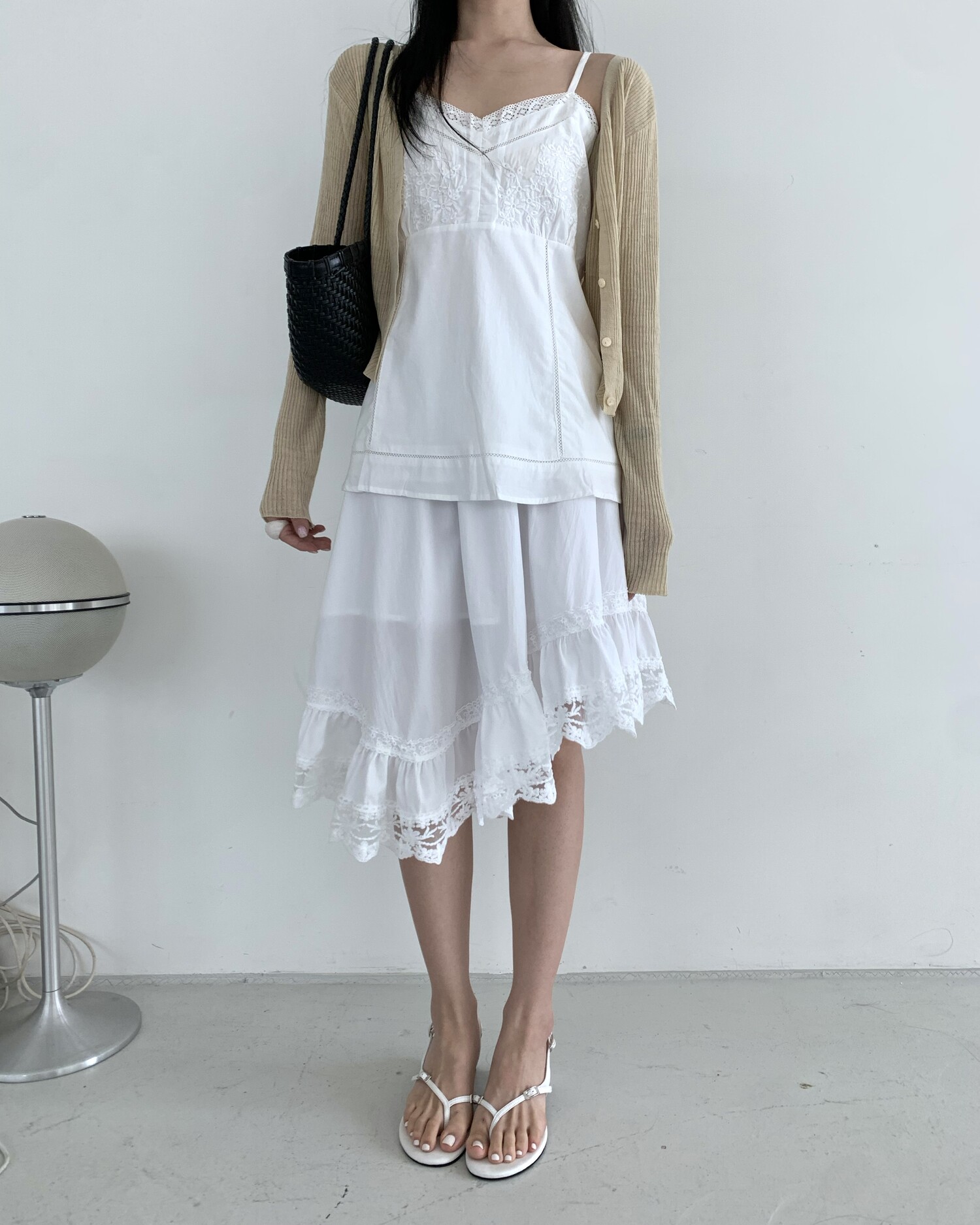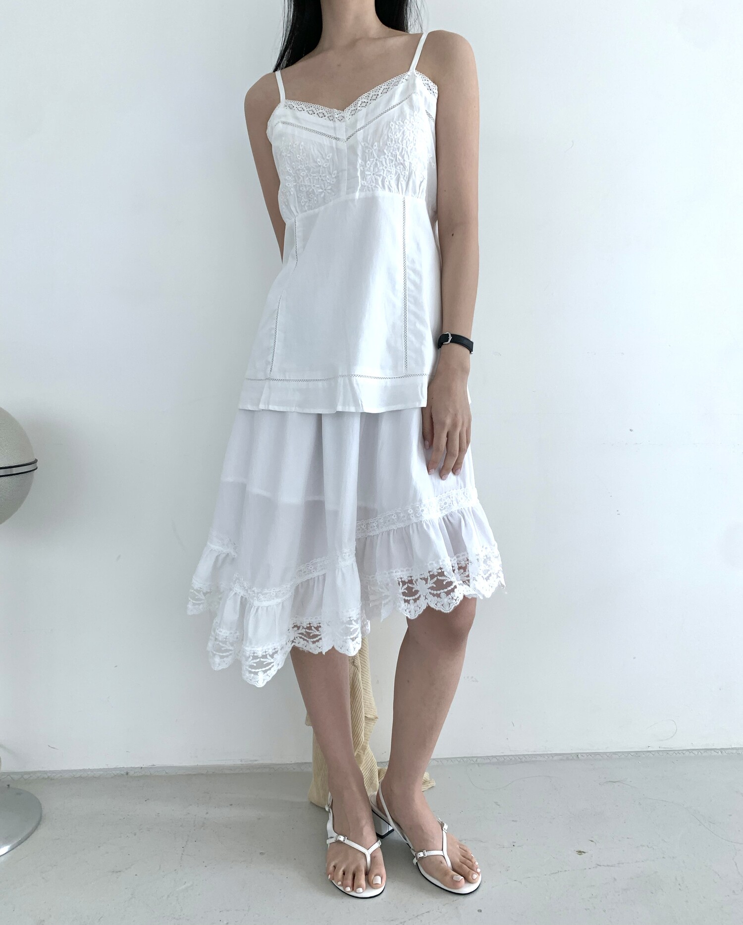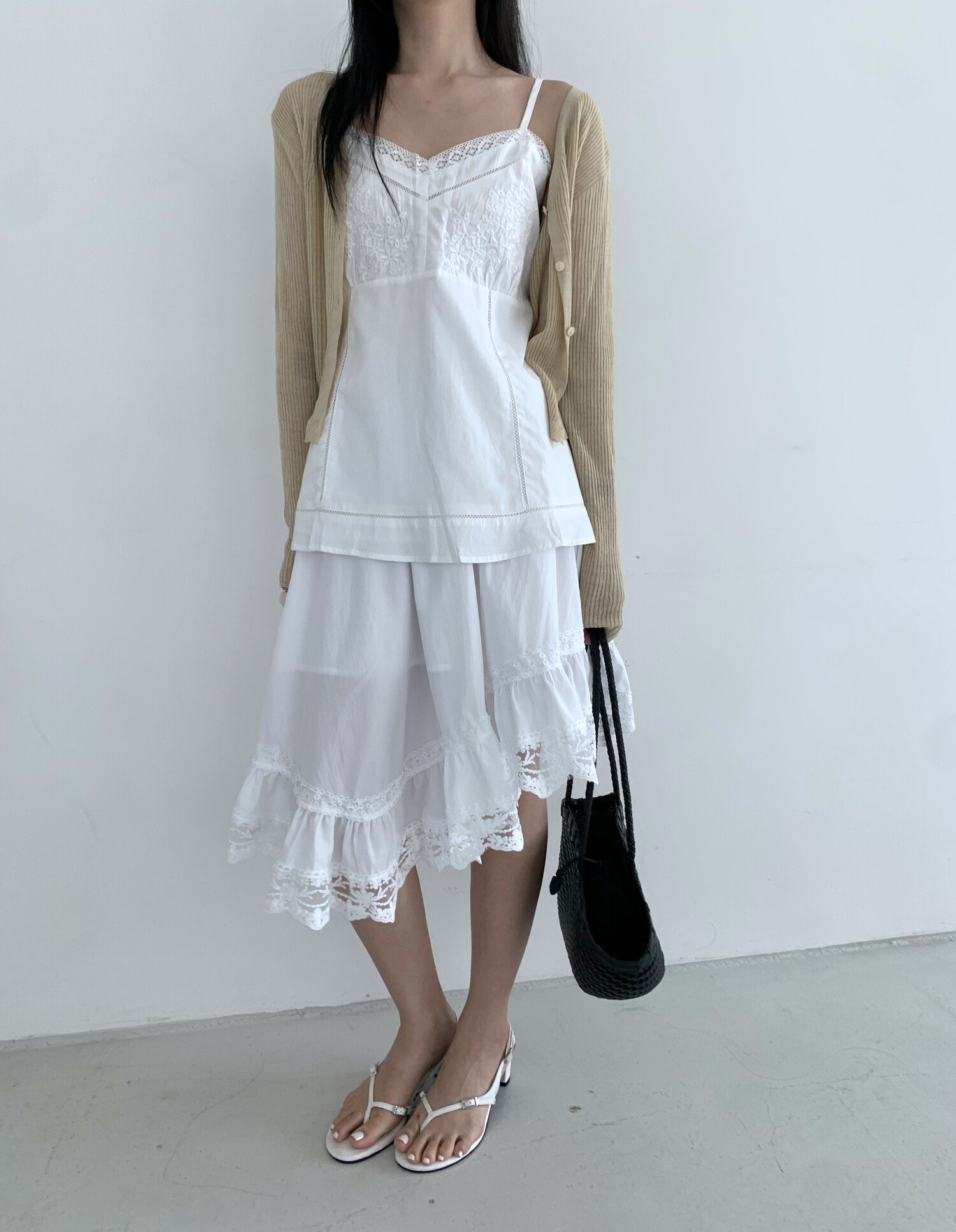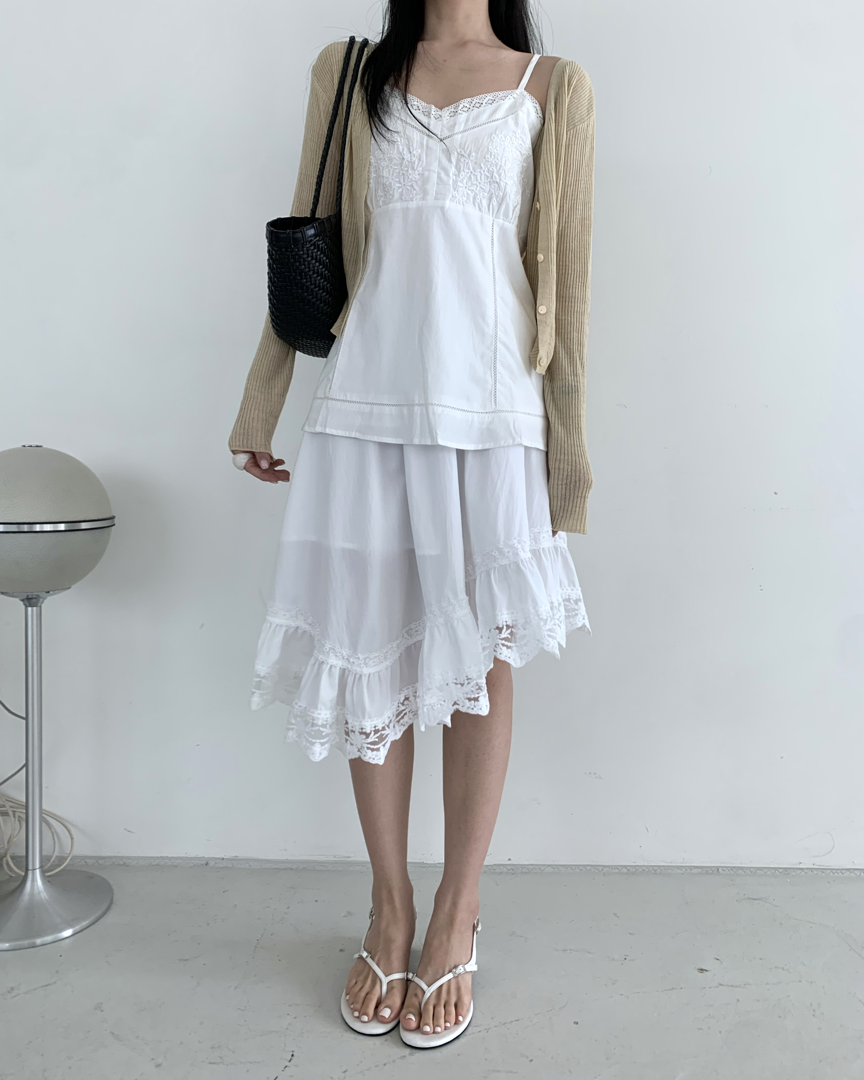 Diagonal lace sk-ivory