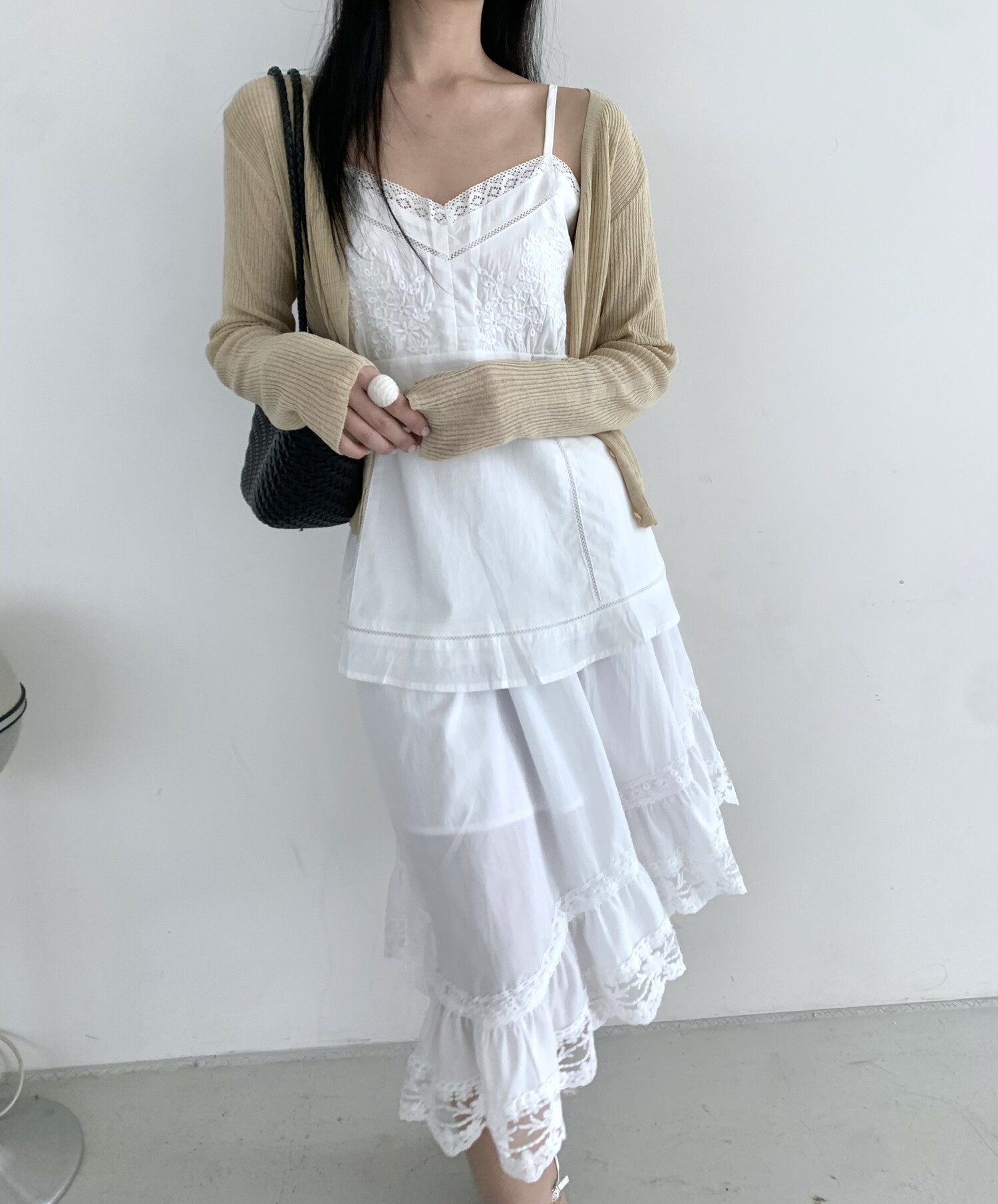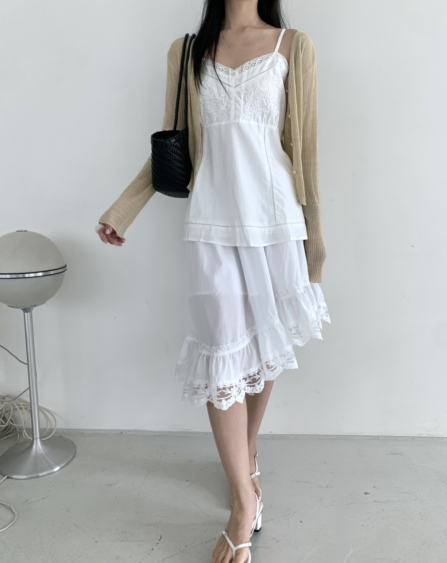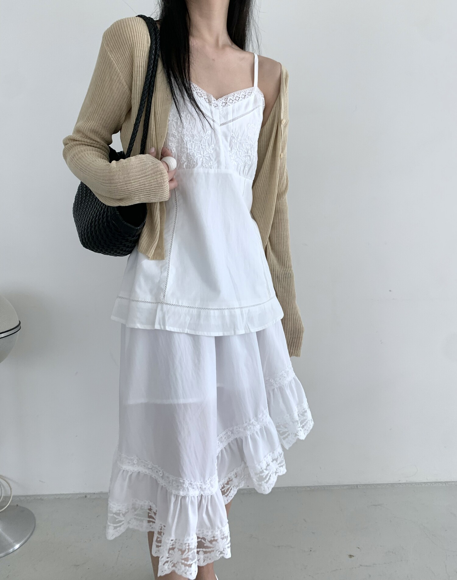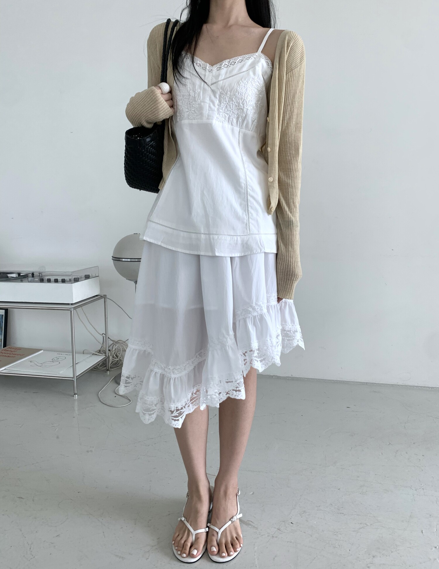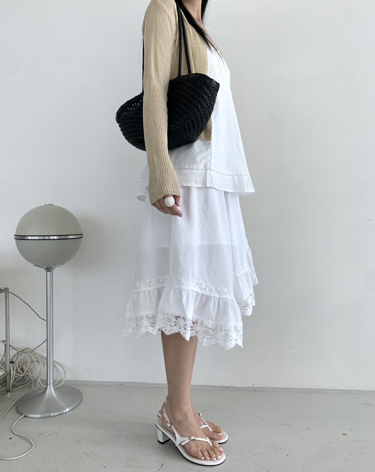 Diagonal lace sk-ivory