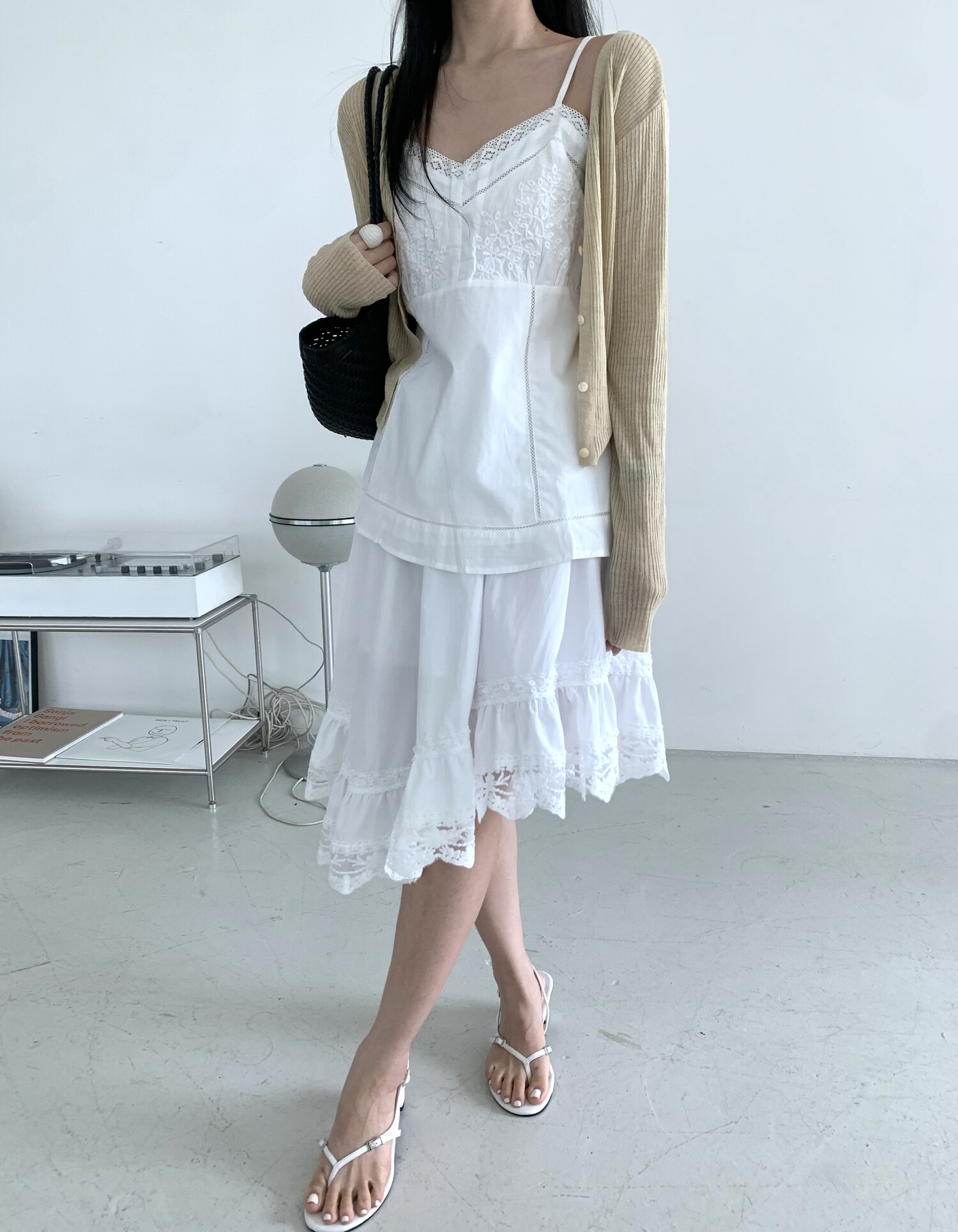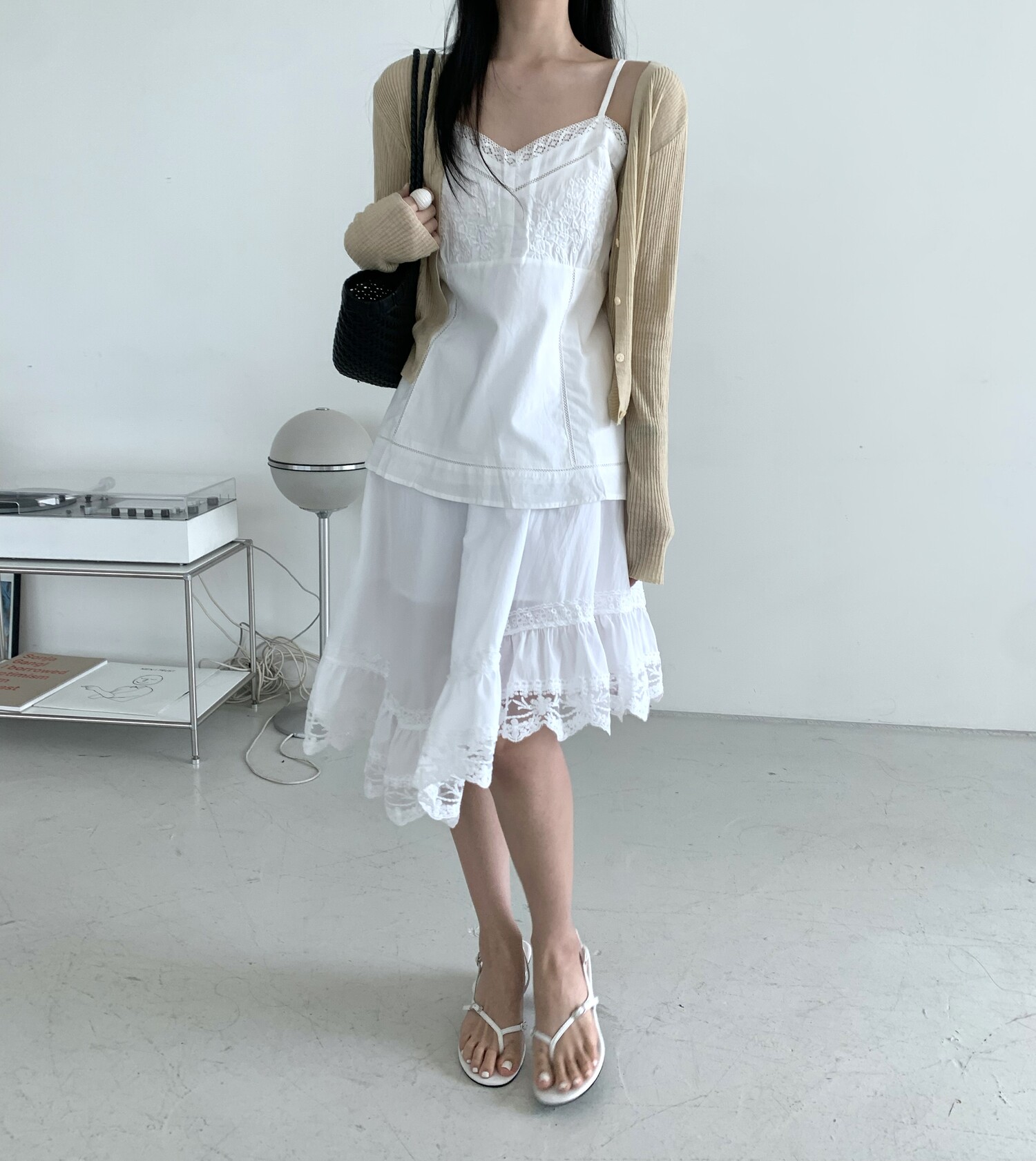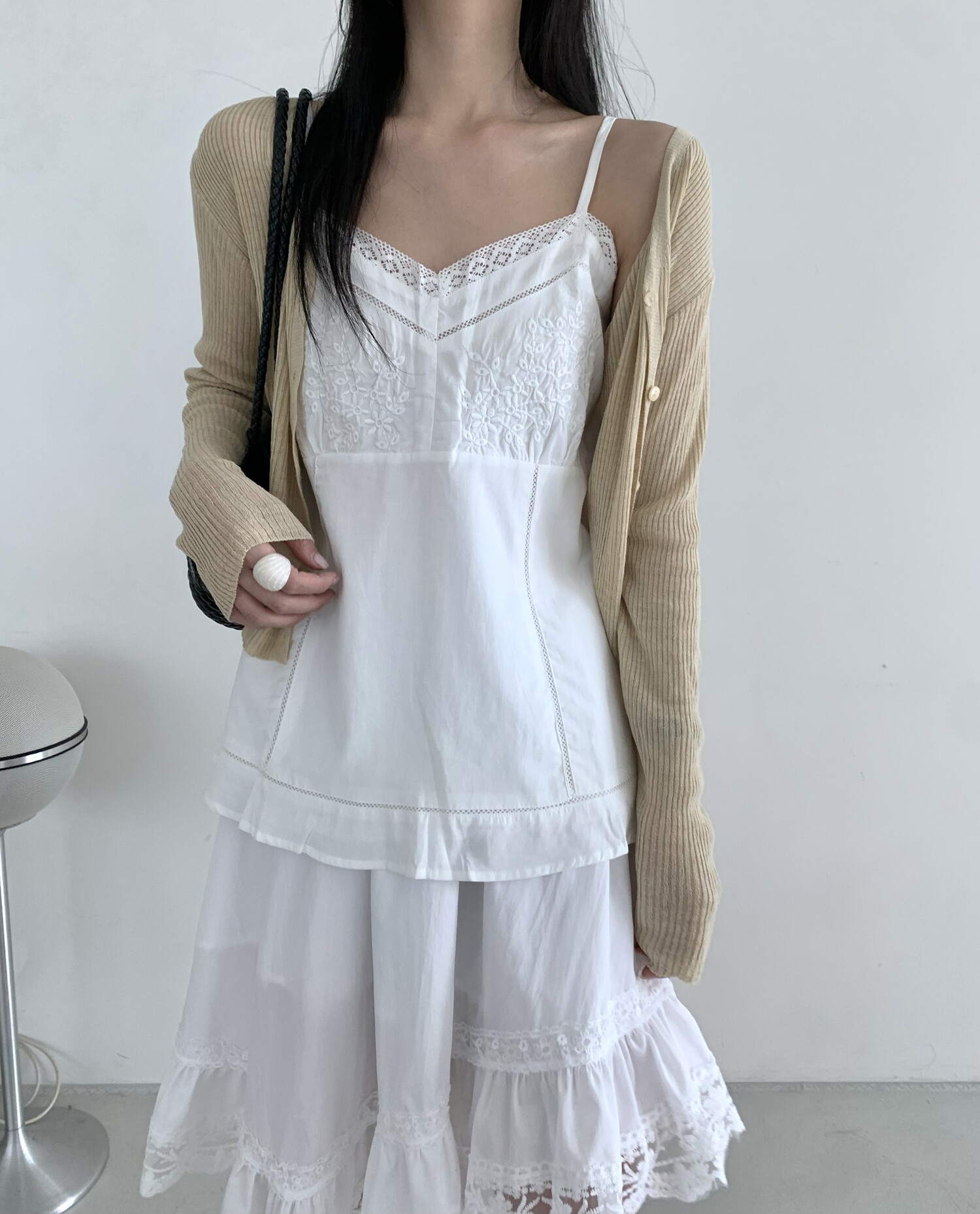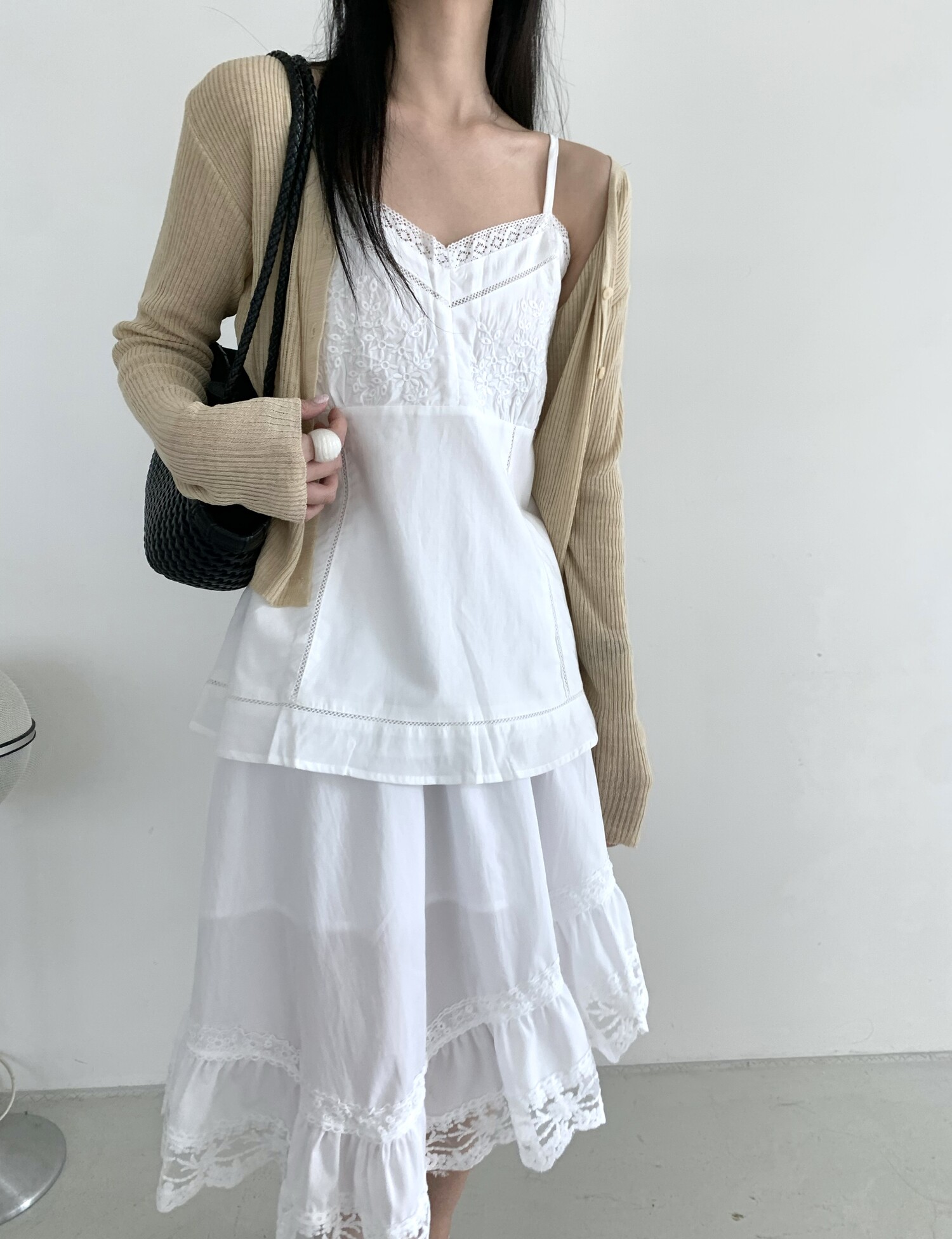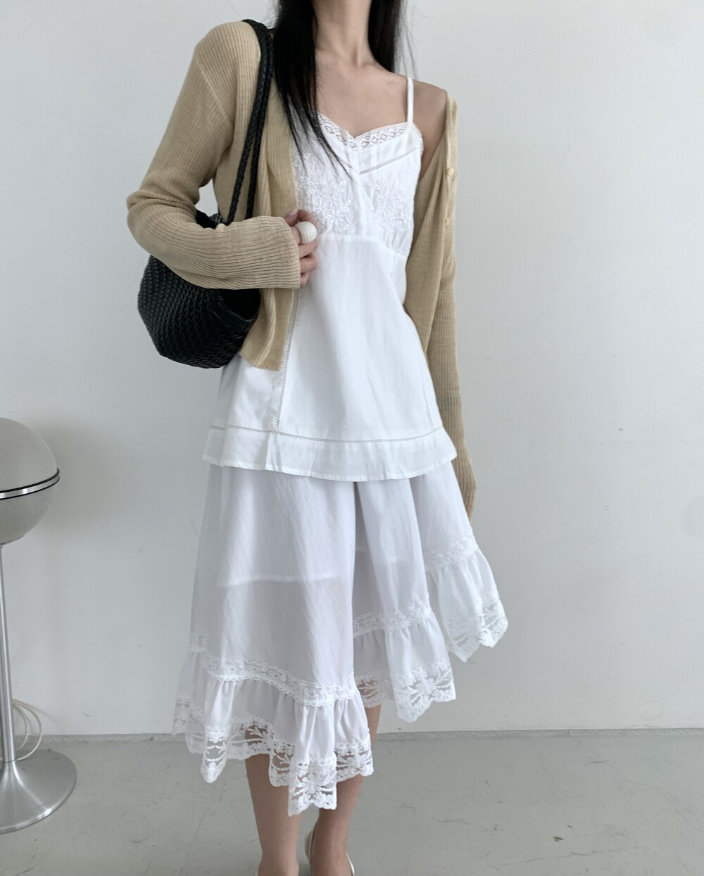 Diagonal lace sk-ivory