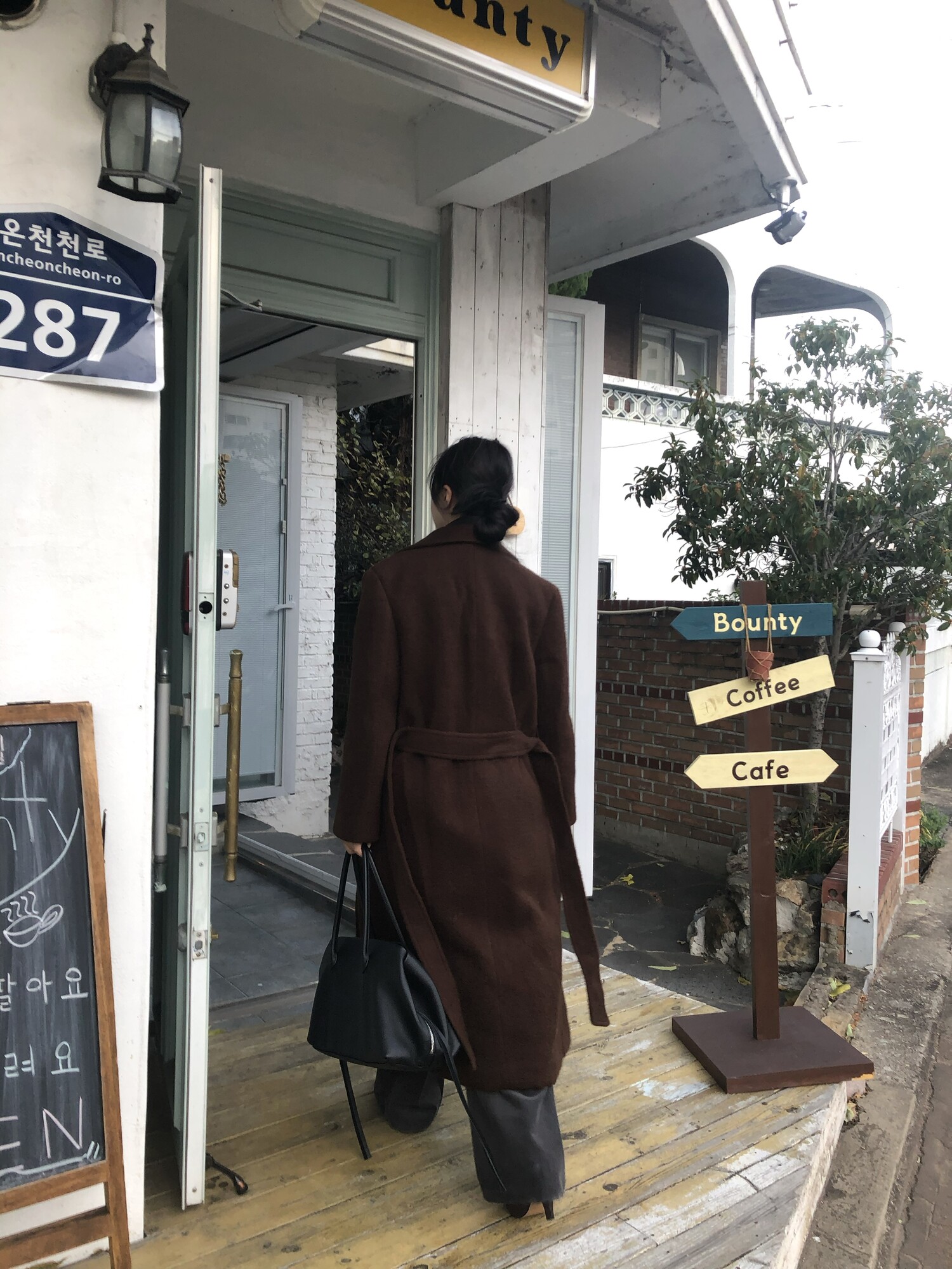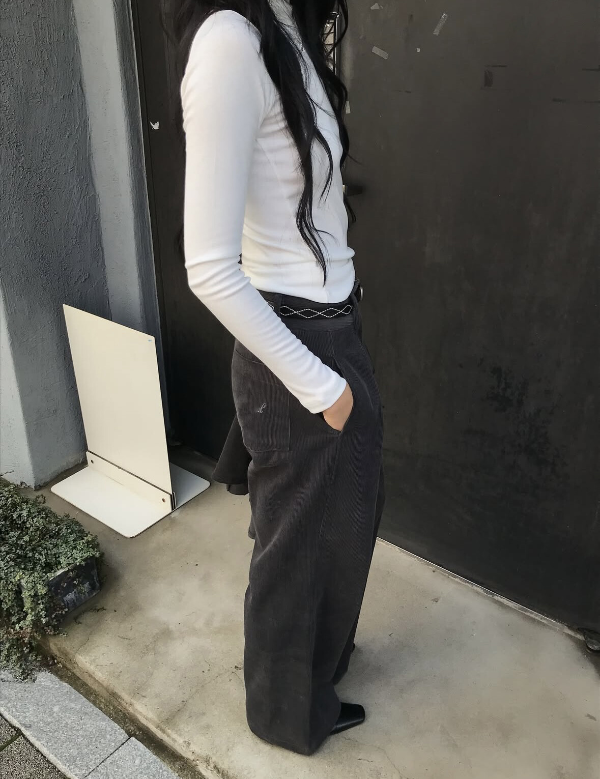 -롱한 기장과 스트레이트 라인이 길고 슬림하게 표현