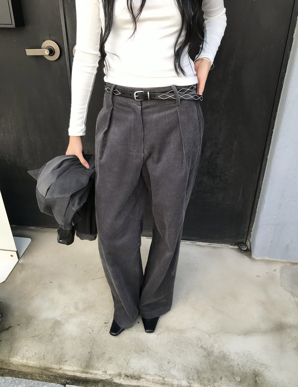 -세미와이드핏 코듀로이 핀턱팬츠