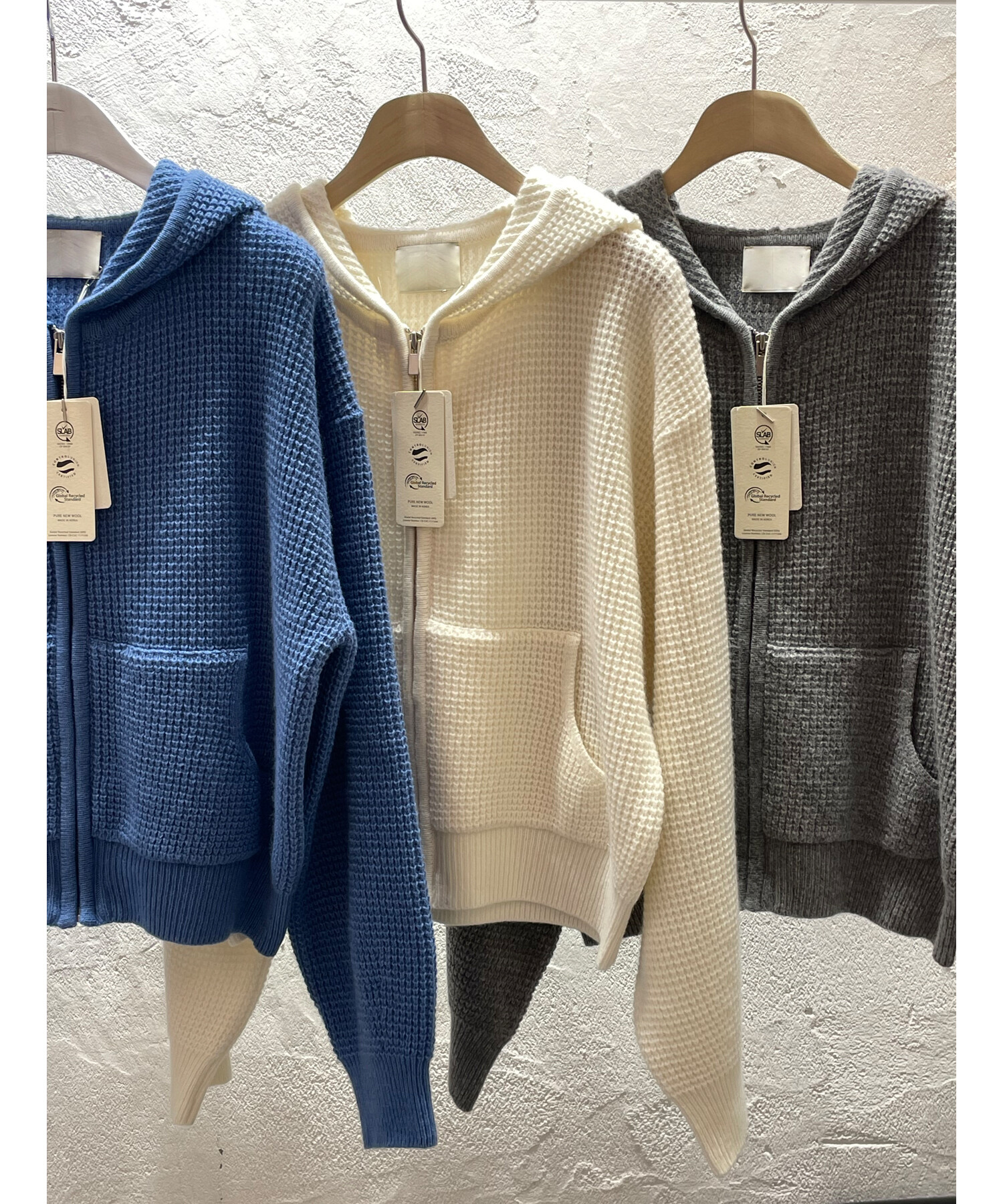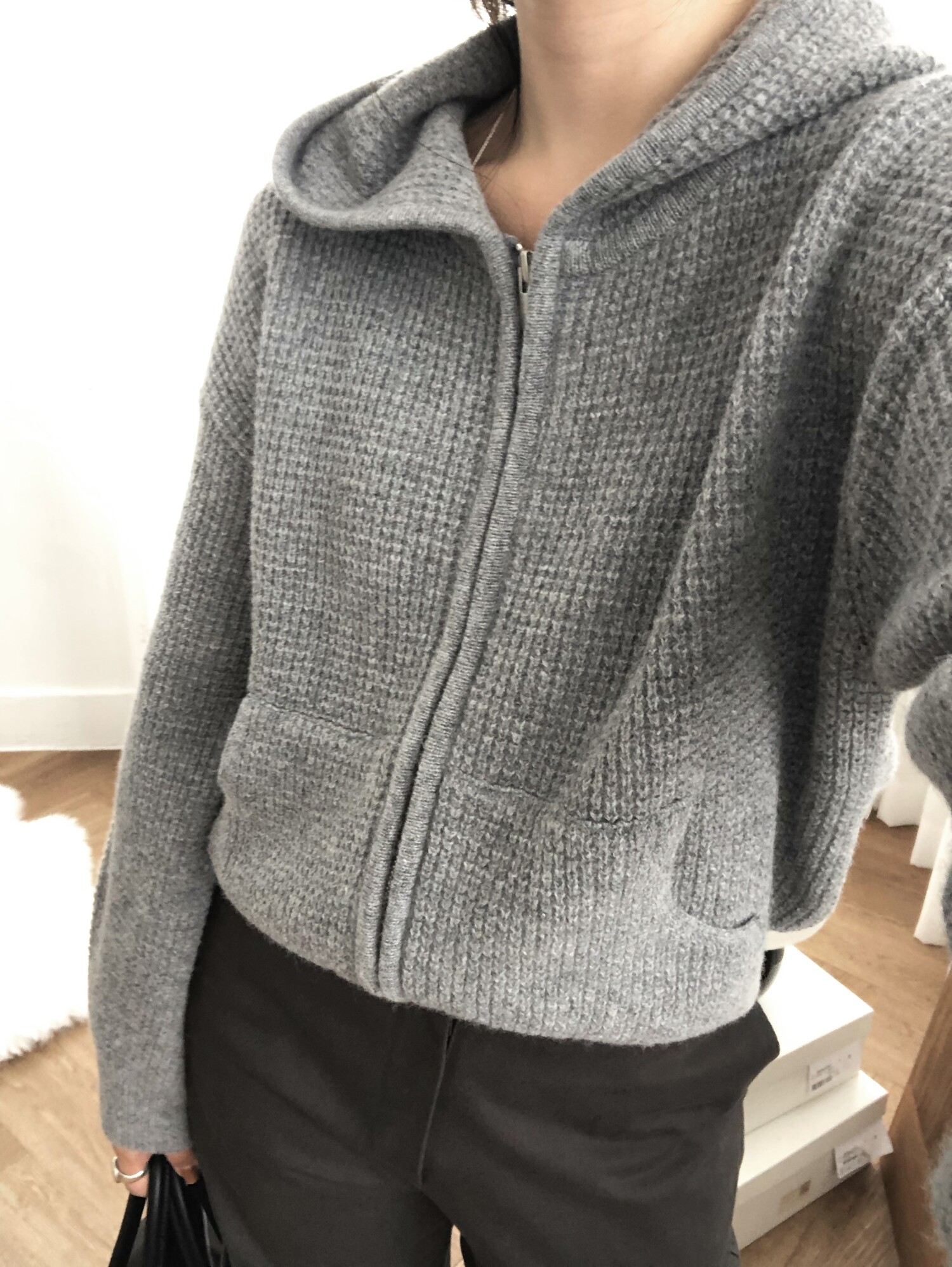 Waffle crop hoodie zip-up-3color