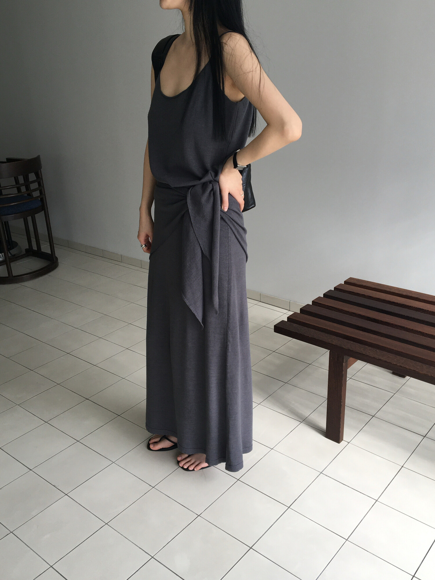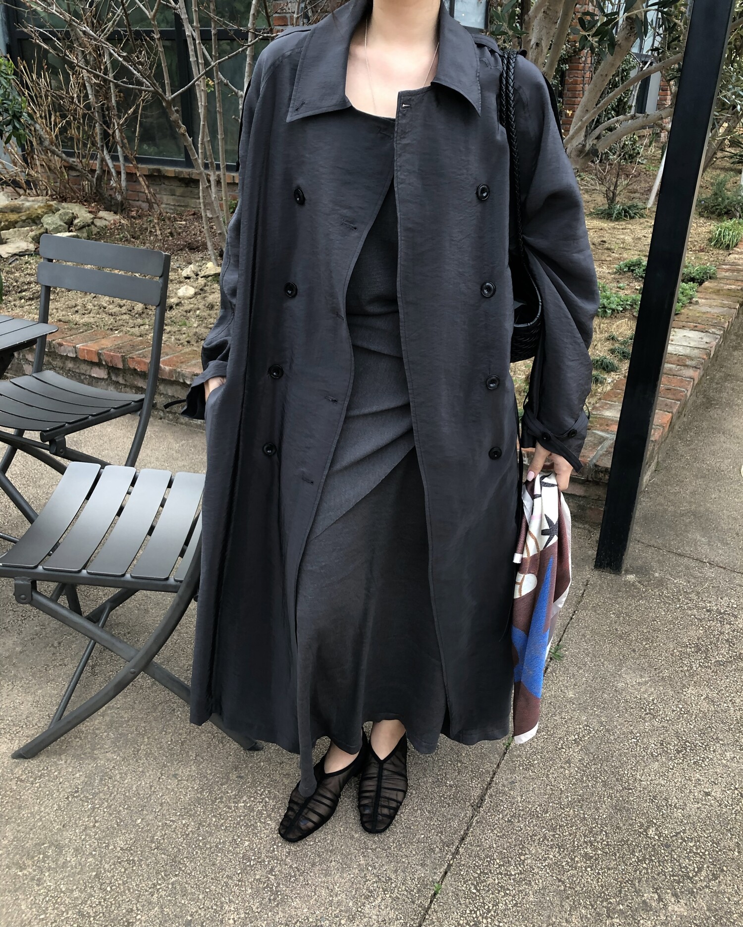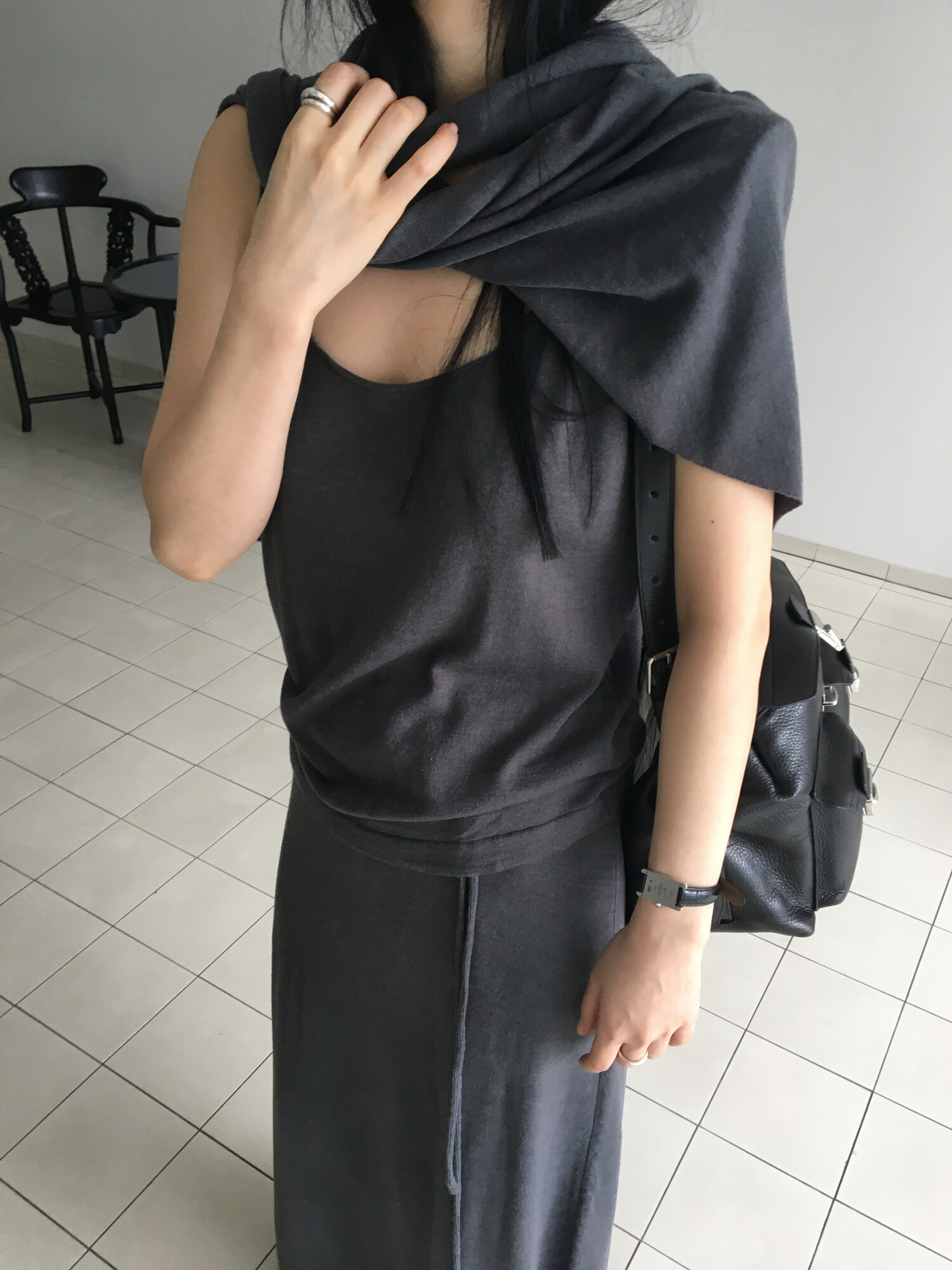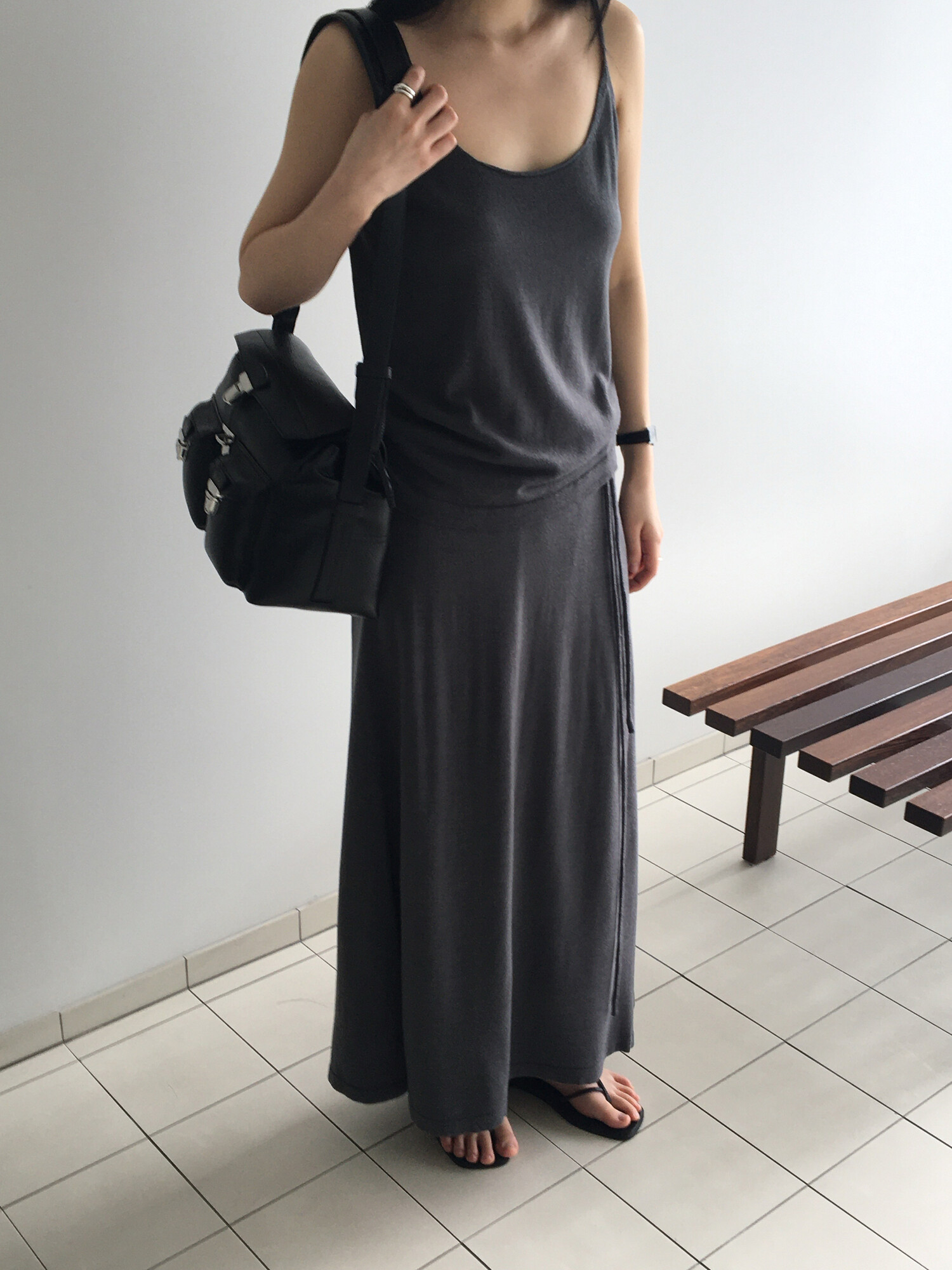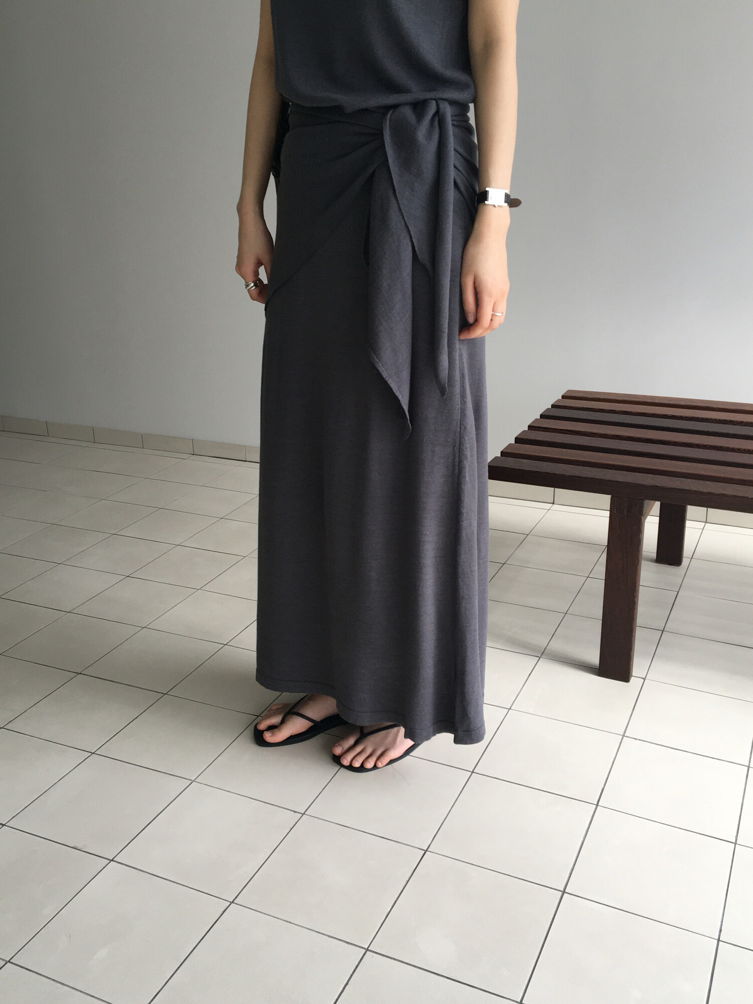 charcoal-허리에 둘러 연출된 스카프는 제품명 Crocus long knit scarf 이며 별도 구매바랍니다.