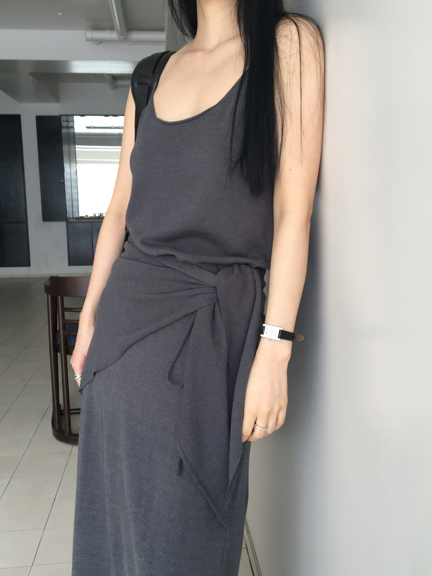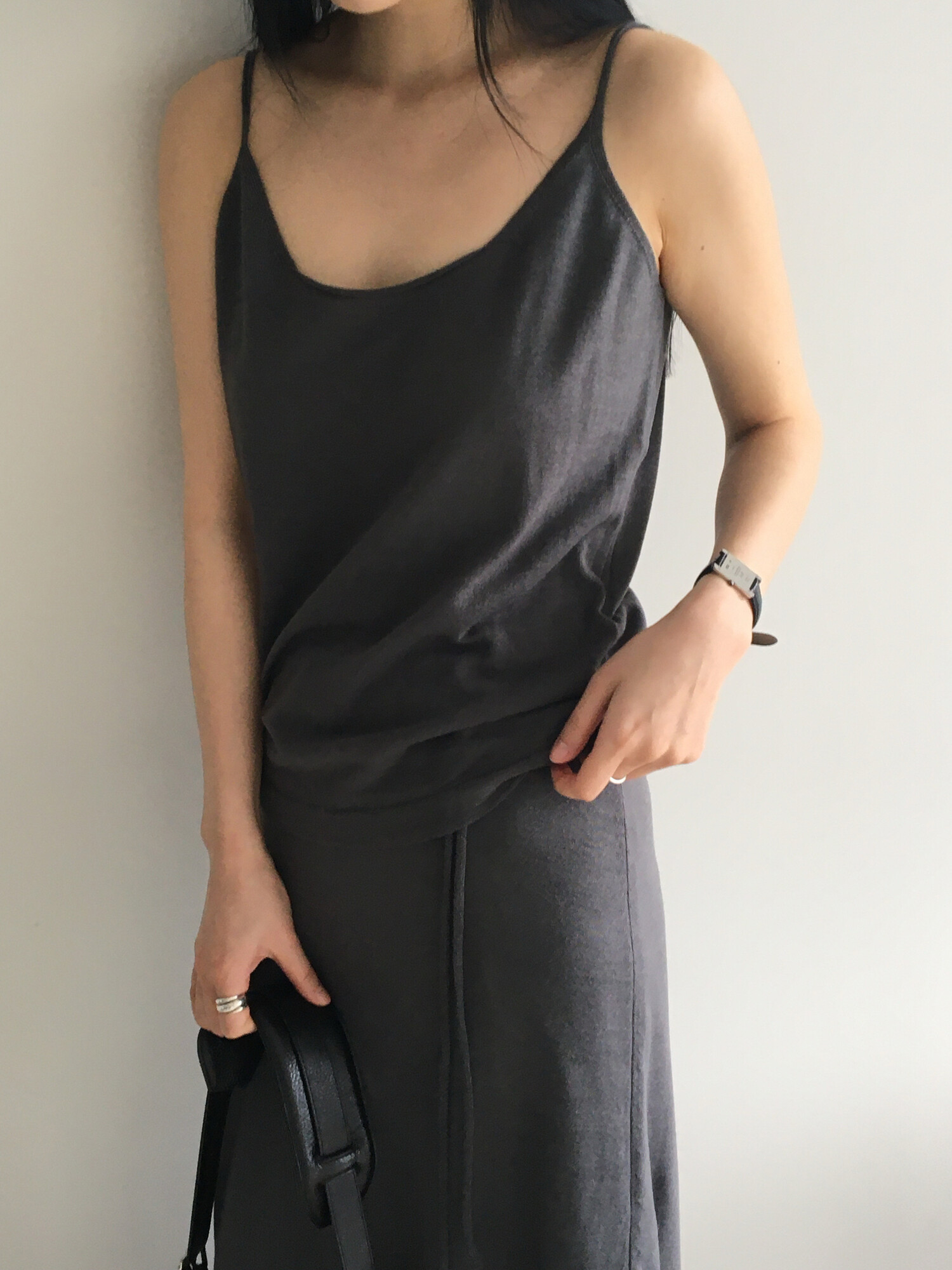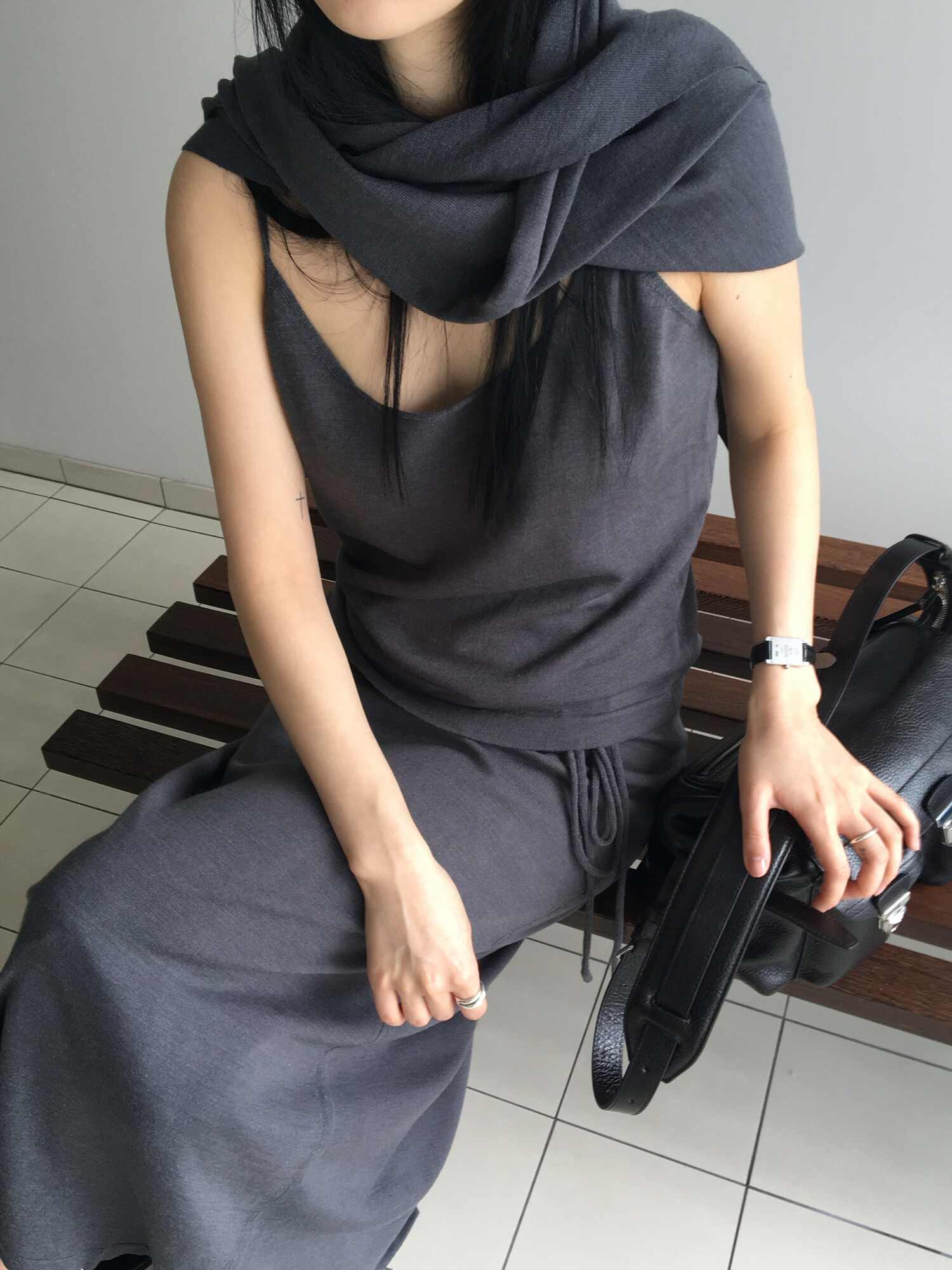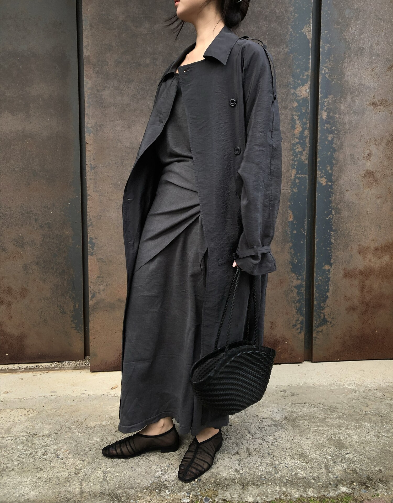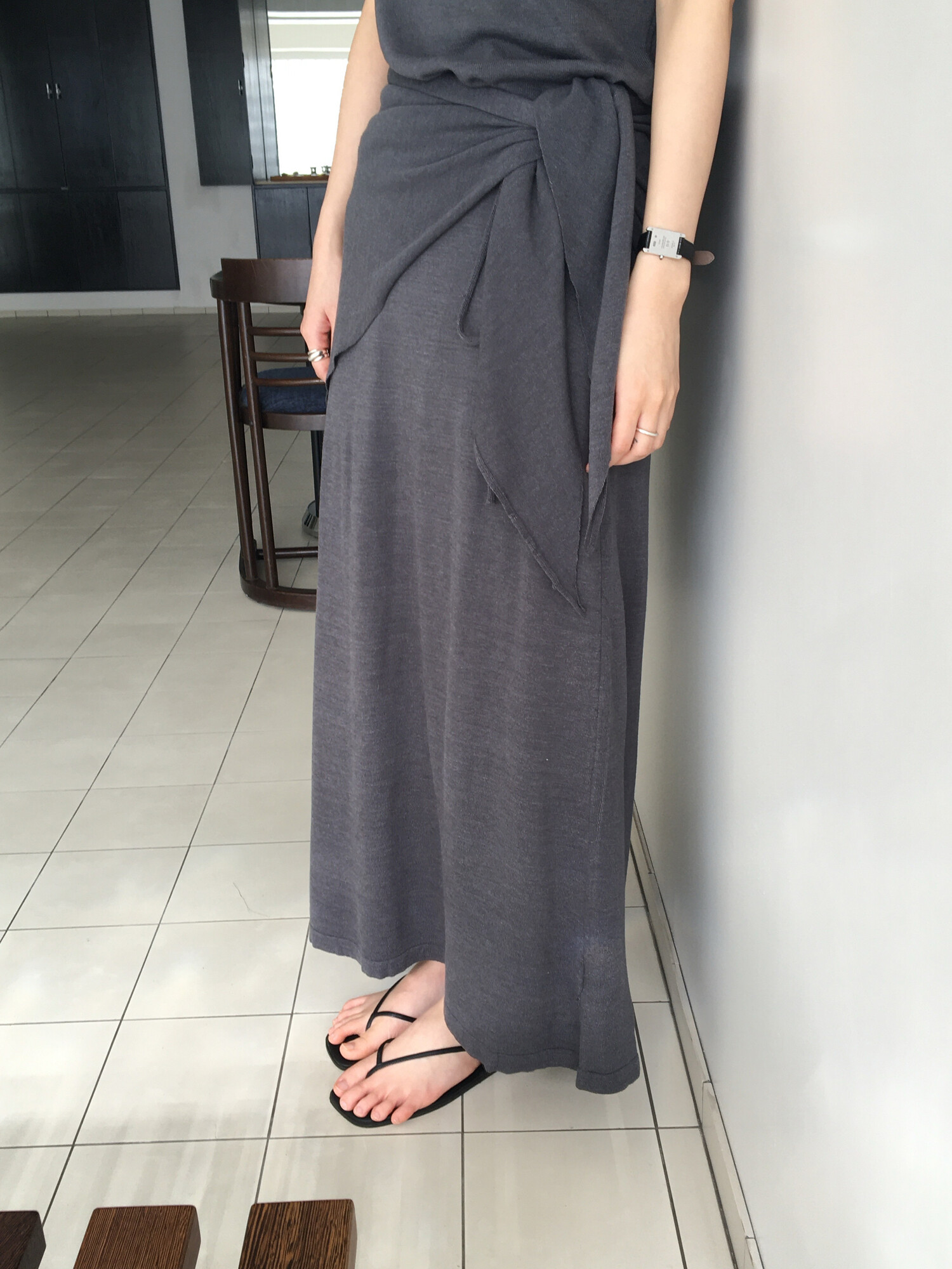 charcoal-허리에 둘러 연출된 스카프는 제품명 Crocus long knit scarf 이며 별도 구매바랍니다.