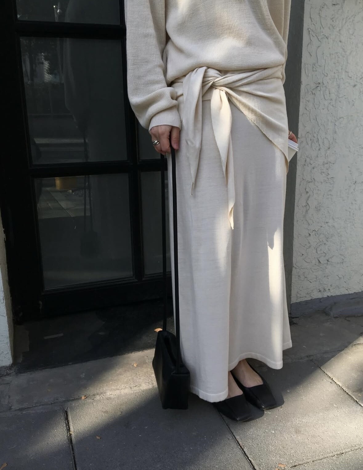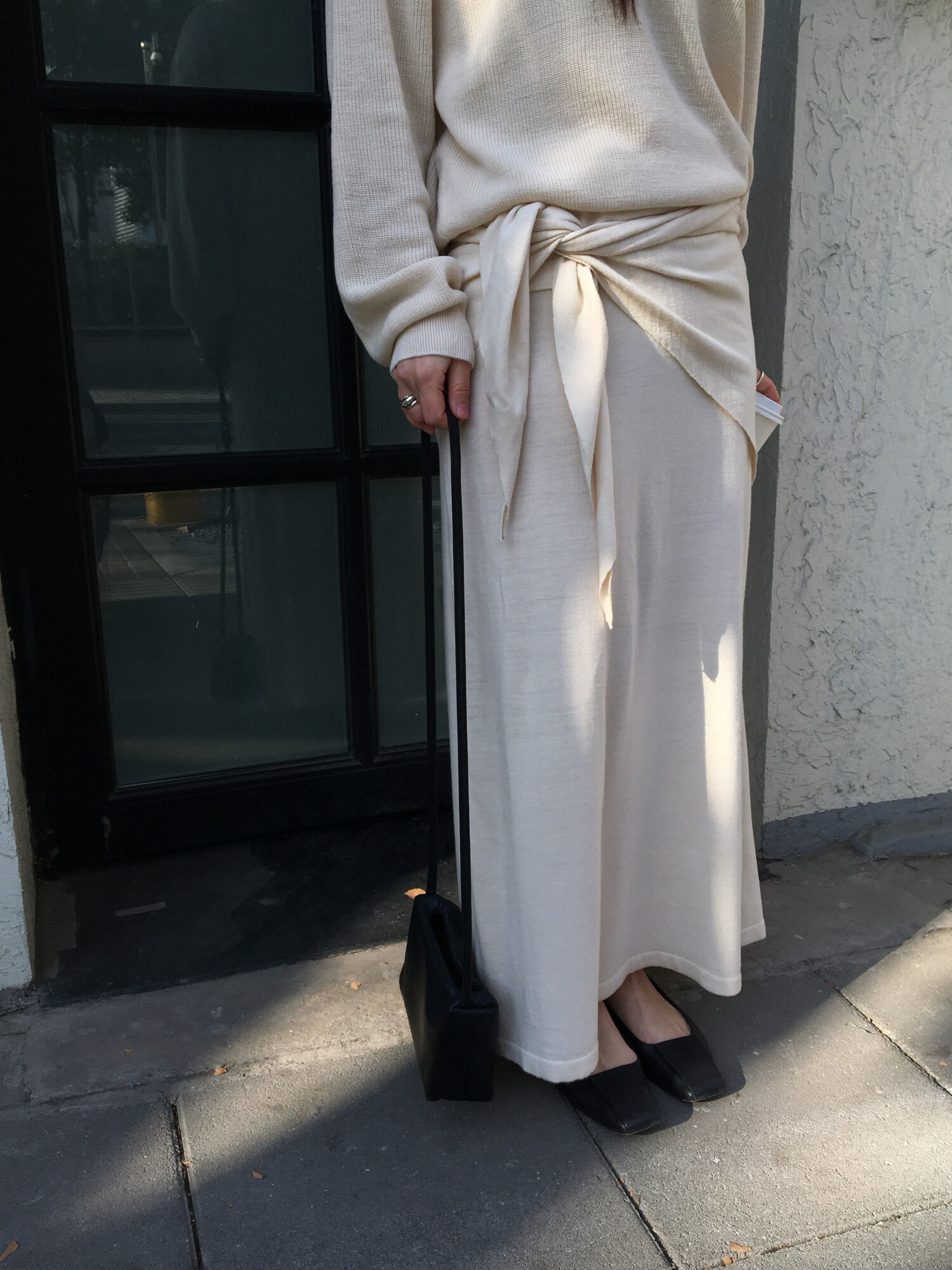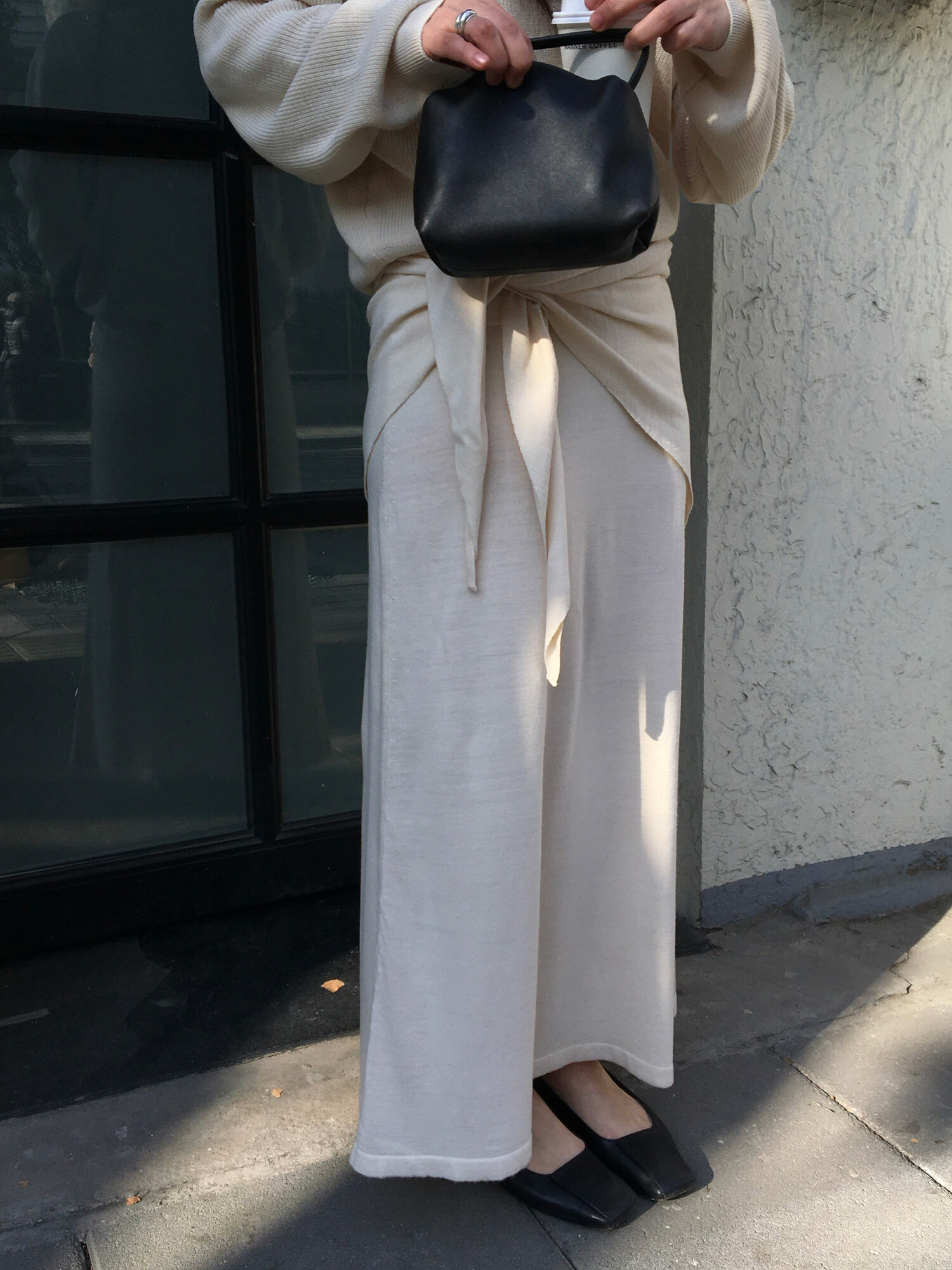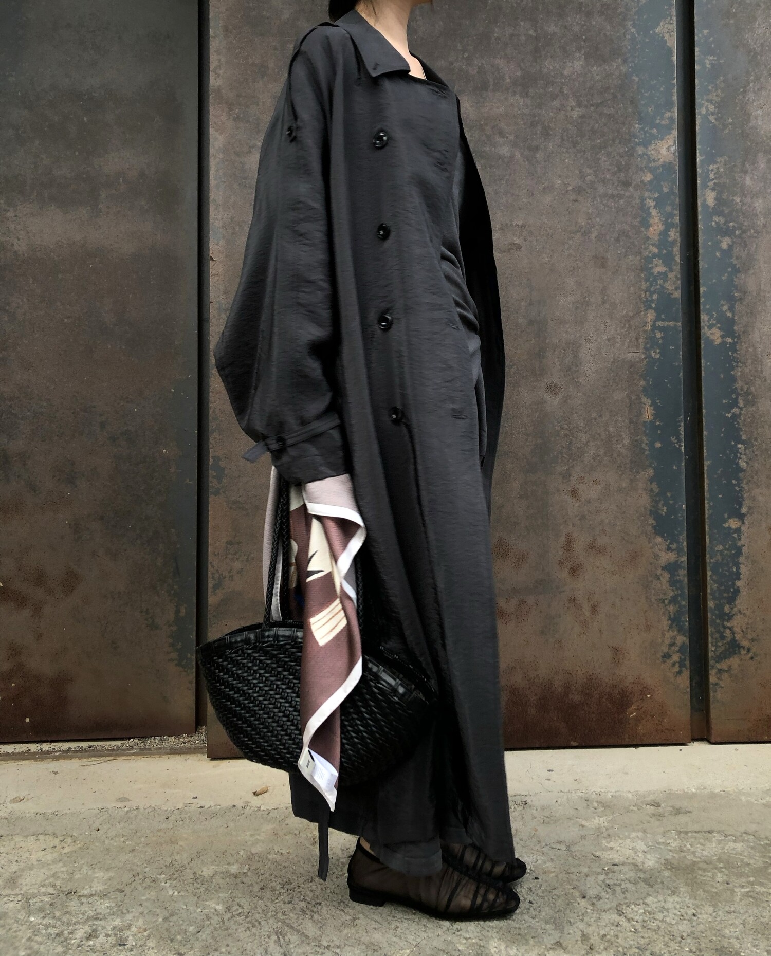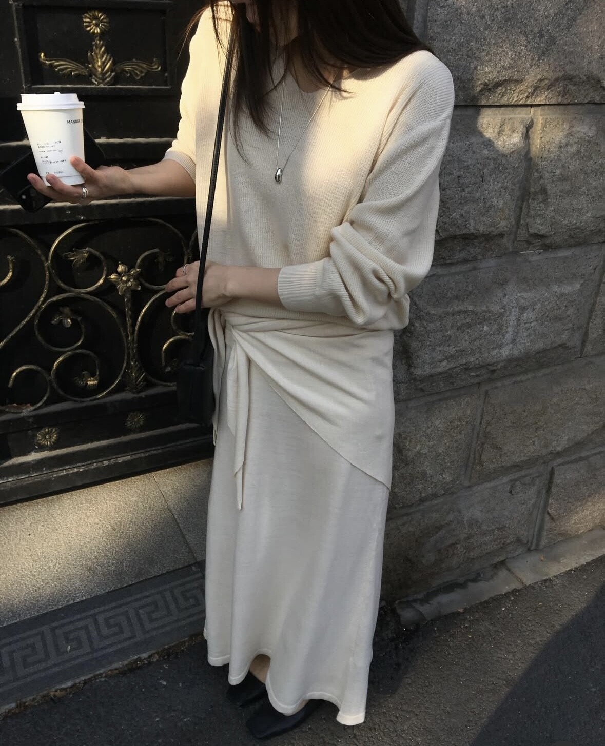 charcoal-허리에 둘러 연출된 스카프는 제품명 Crocus long knit scarf 이며 별도 구매바랍니다.
