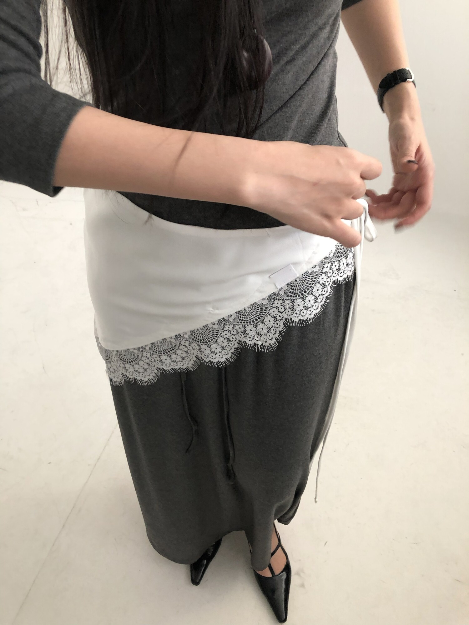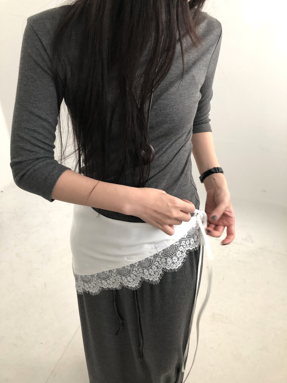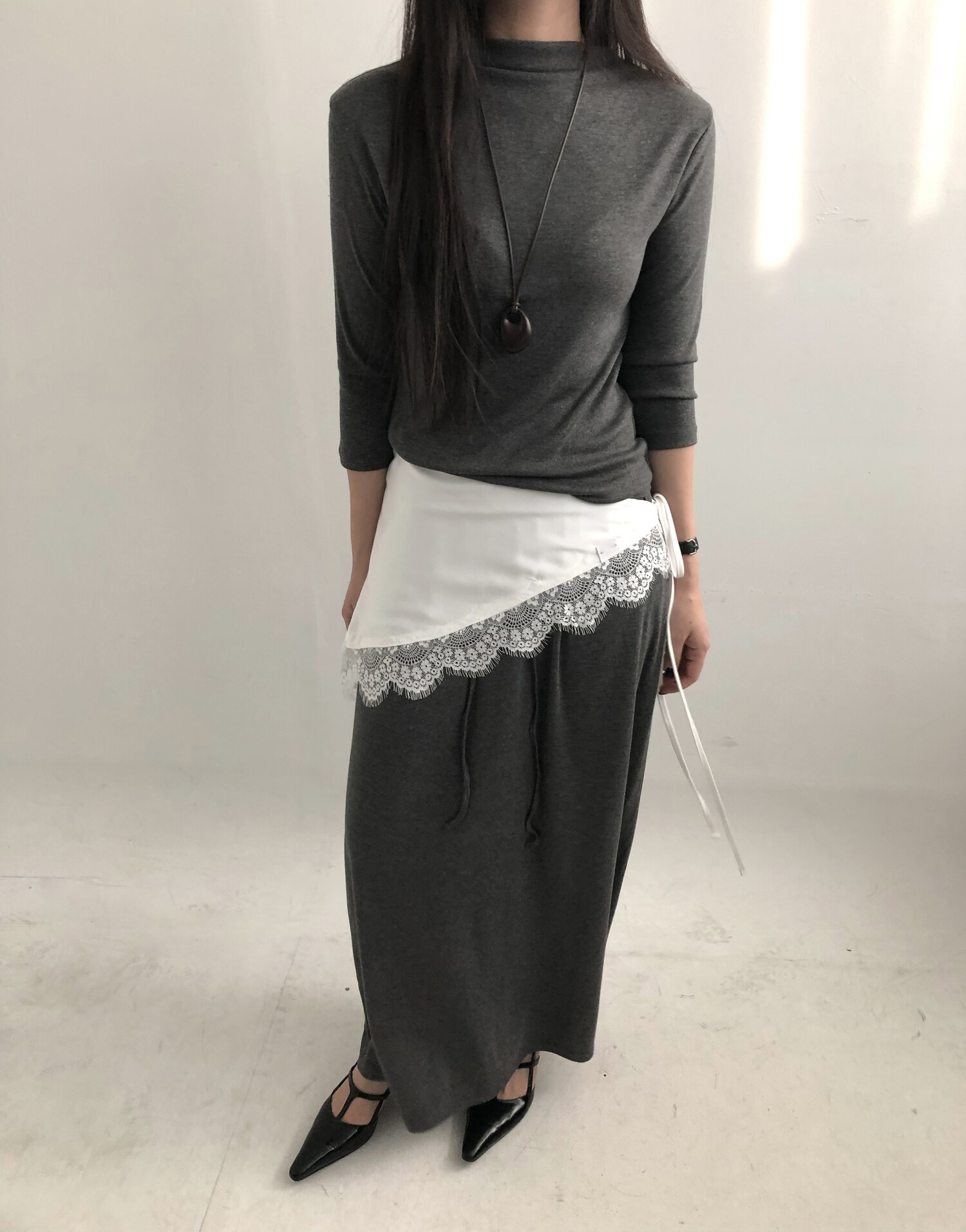 새틴원피스를 입지 않고 레이어드를 하고 싶을 때, 무난한 레이어드는 싫고 적당히 포인트 주기 좋으면서도 여성스런 무드가 필요할 때