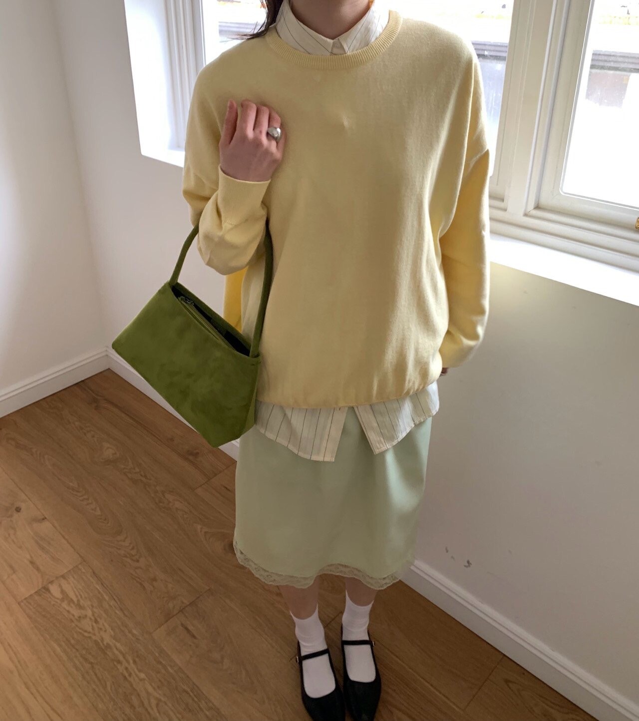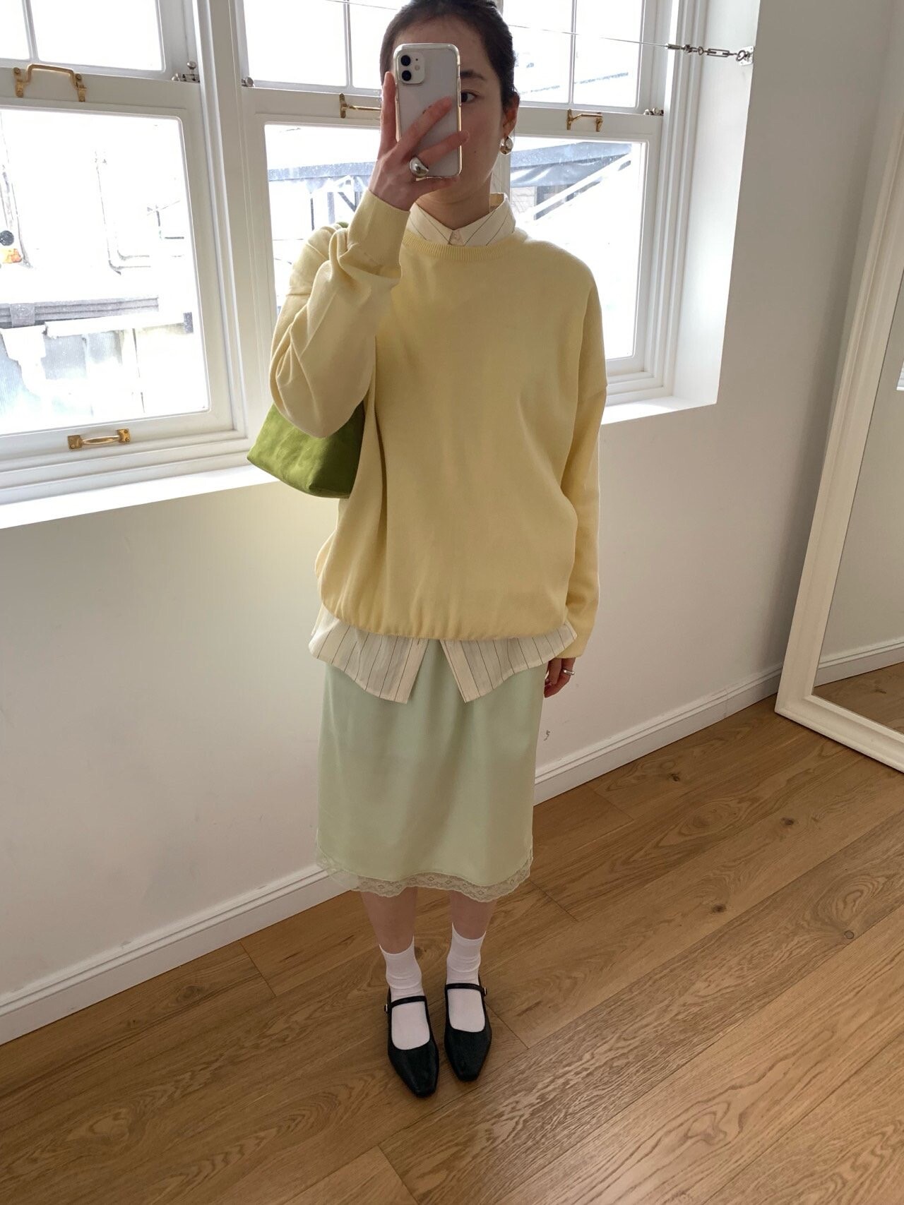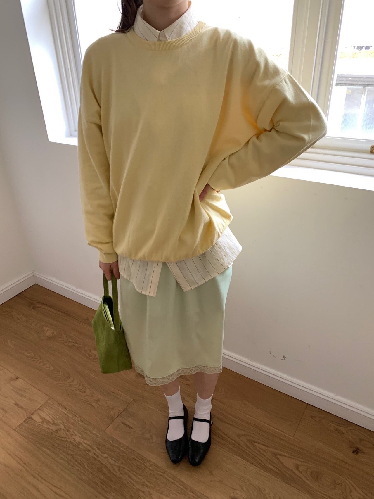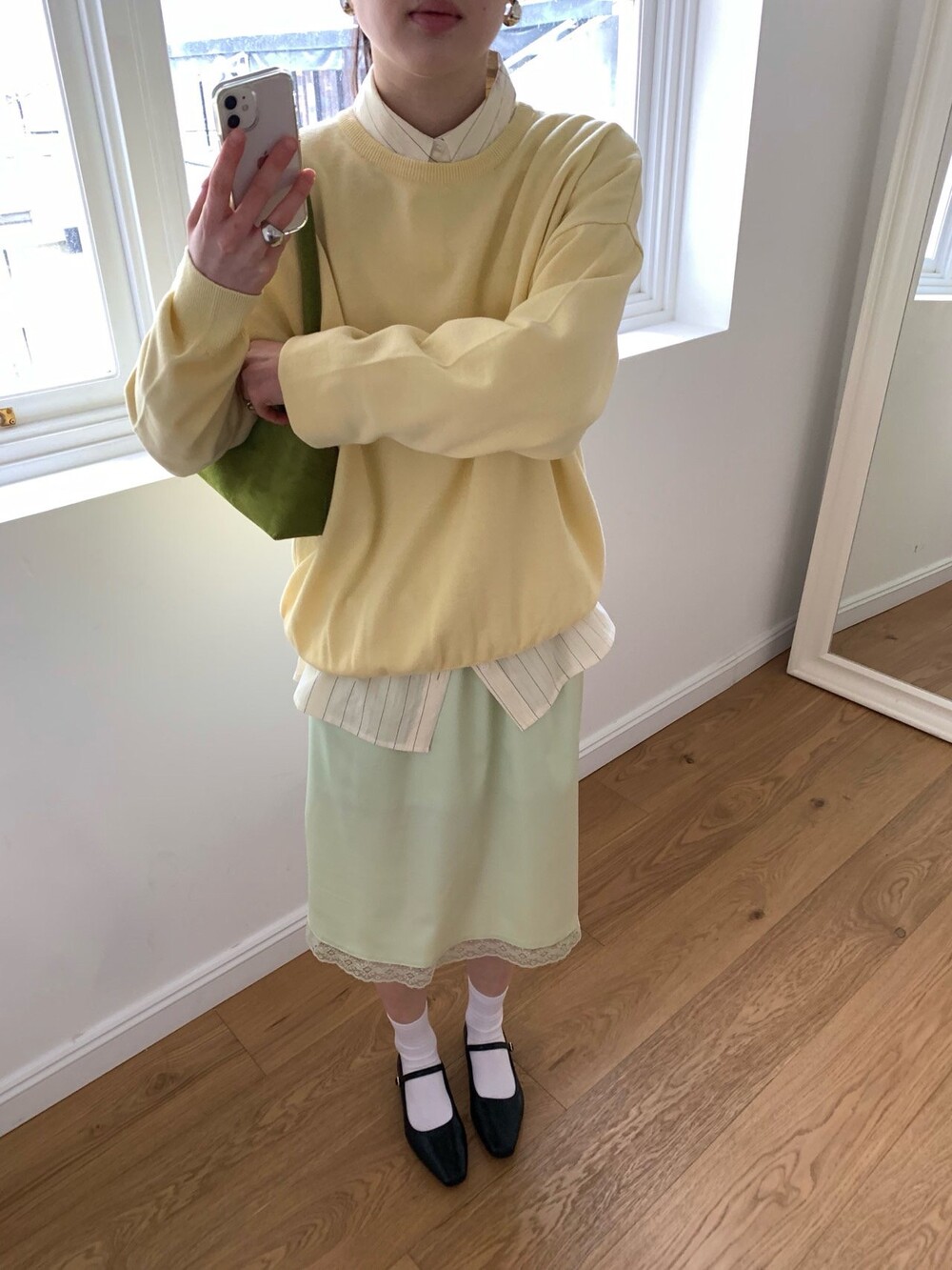 butter 착용-레몬크림에 그레이 한방울 섞인 듯 채도가 살짝 낮은 매력적인 컬러감입니다.