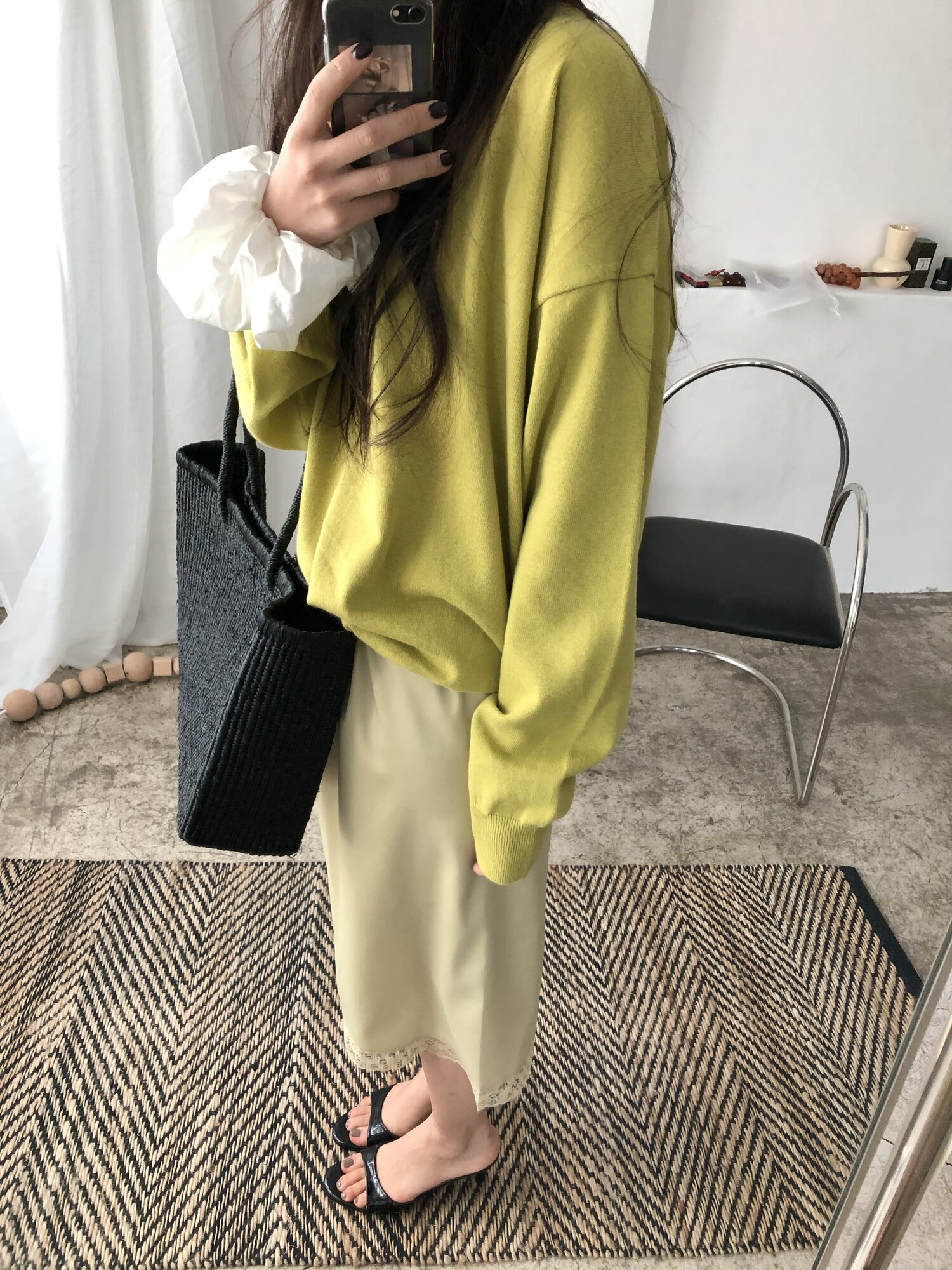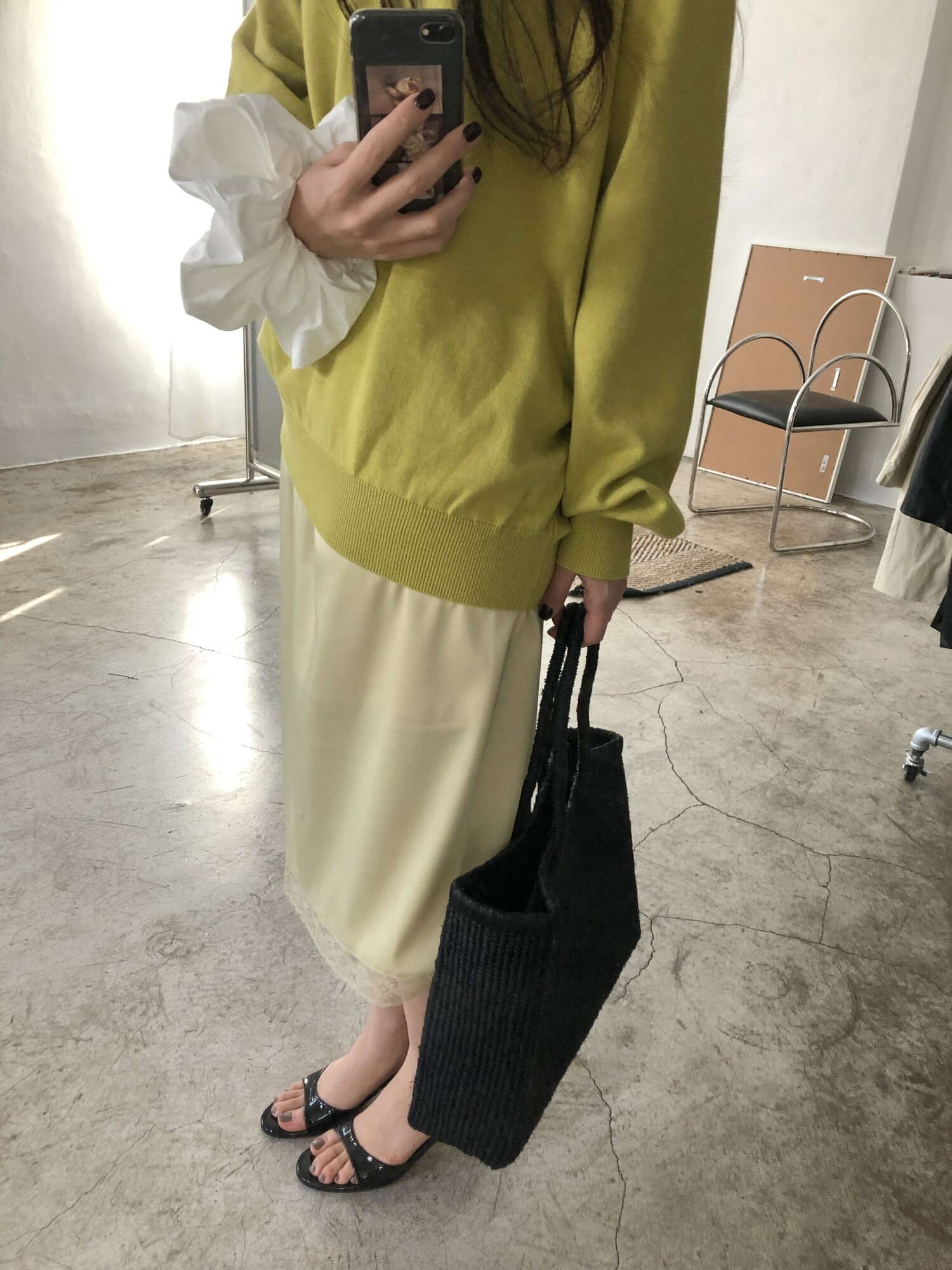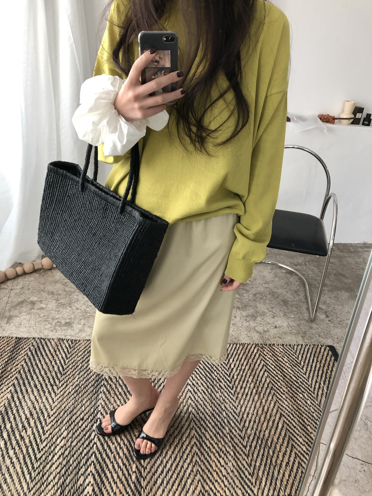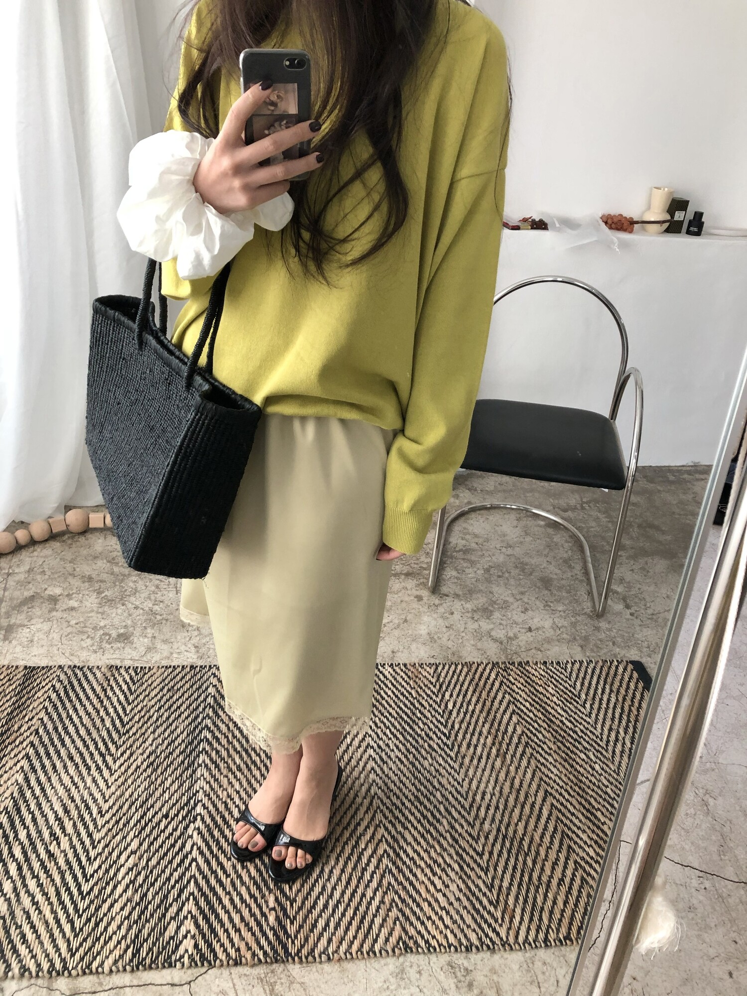 butter 착용-레몬크림에 그레이 한방울 섞인 듯 채도가 살짝 낮은 매력적인 컬러감입니다.