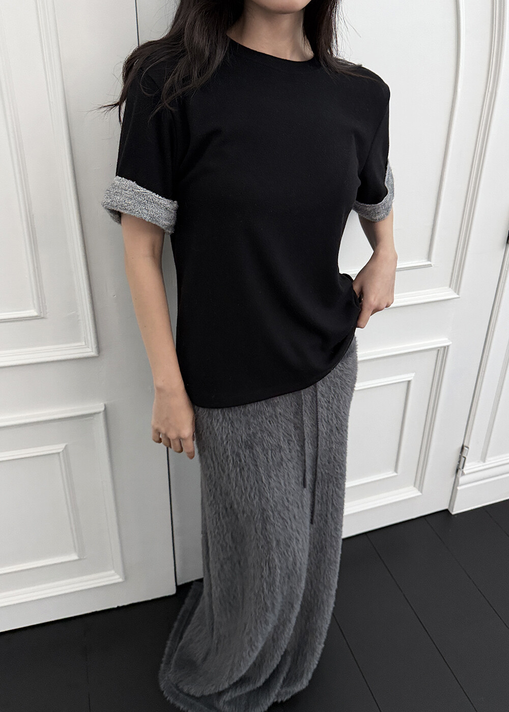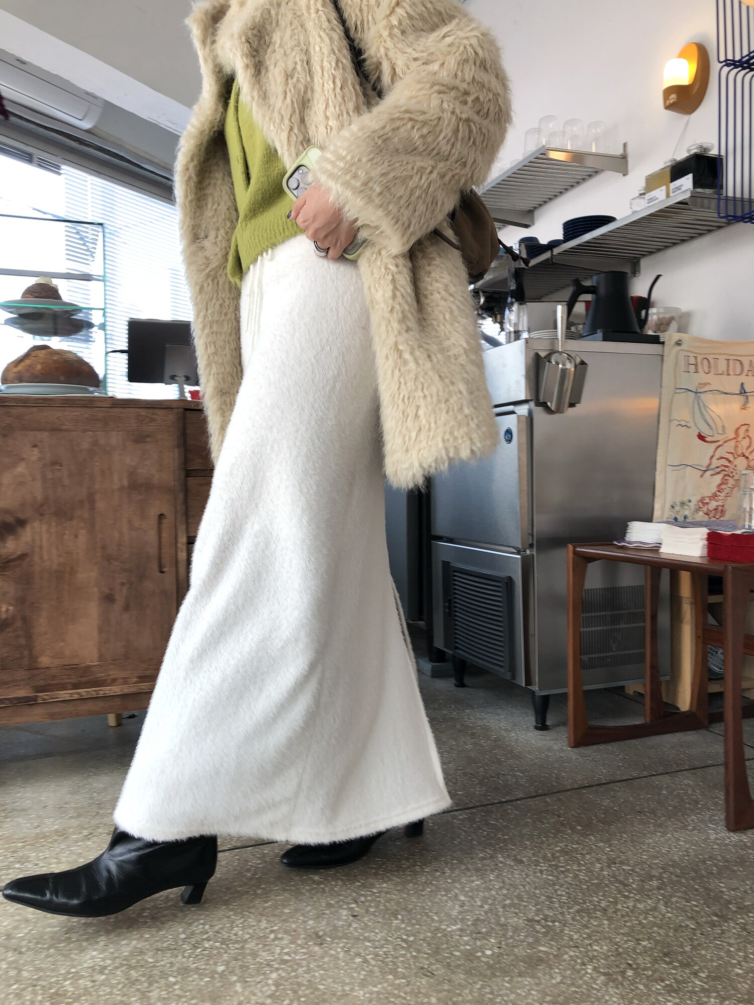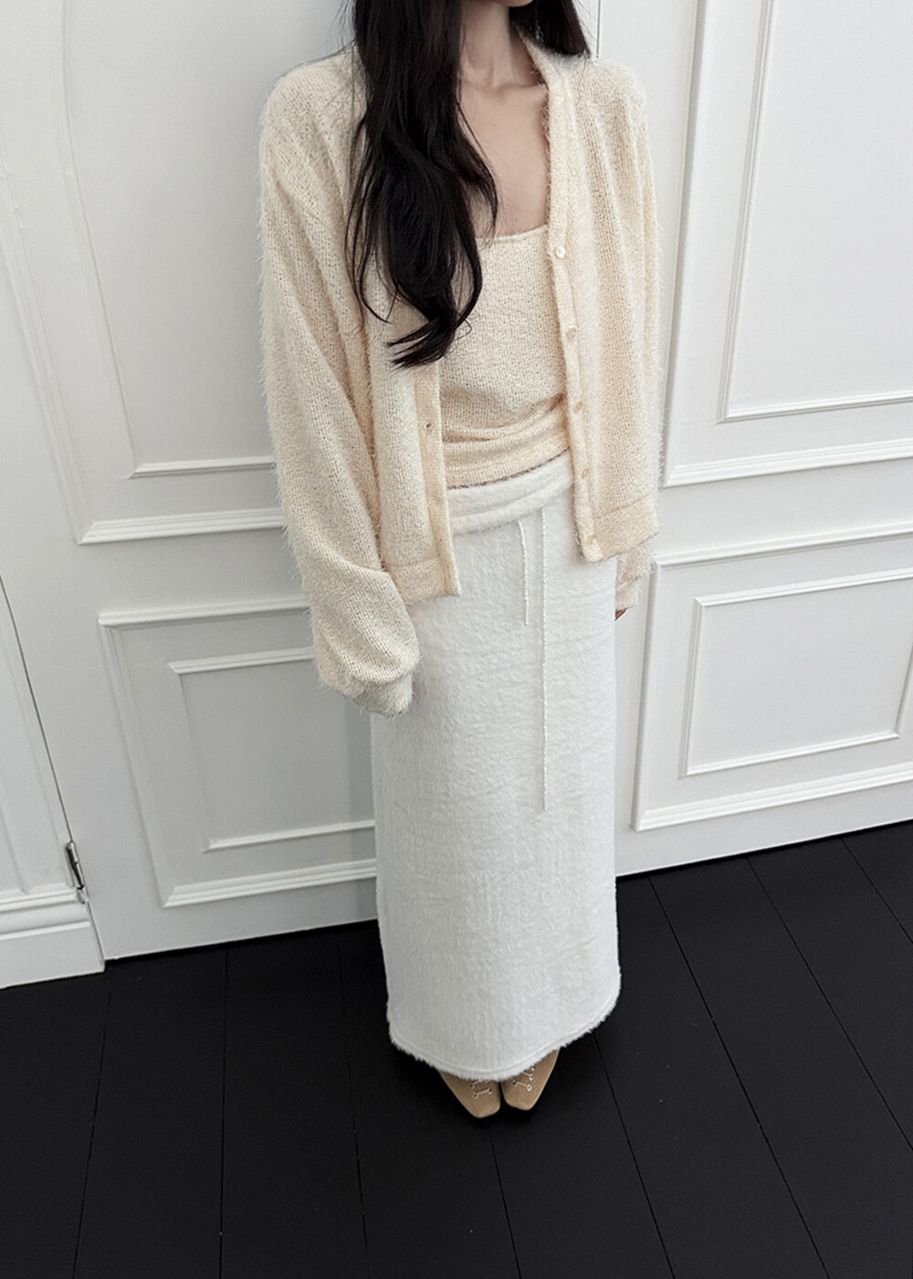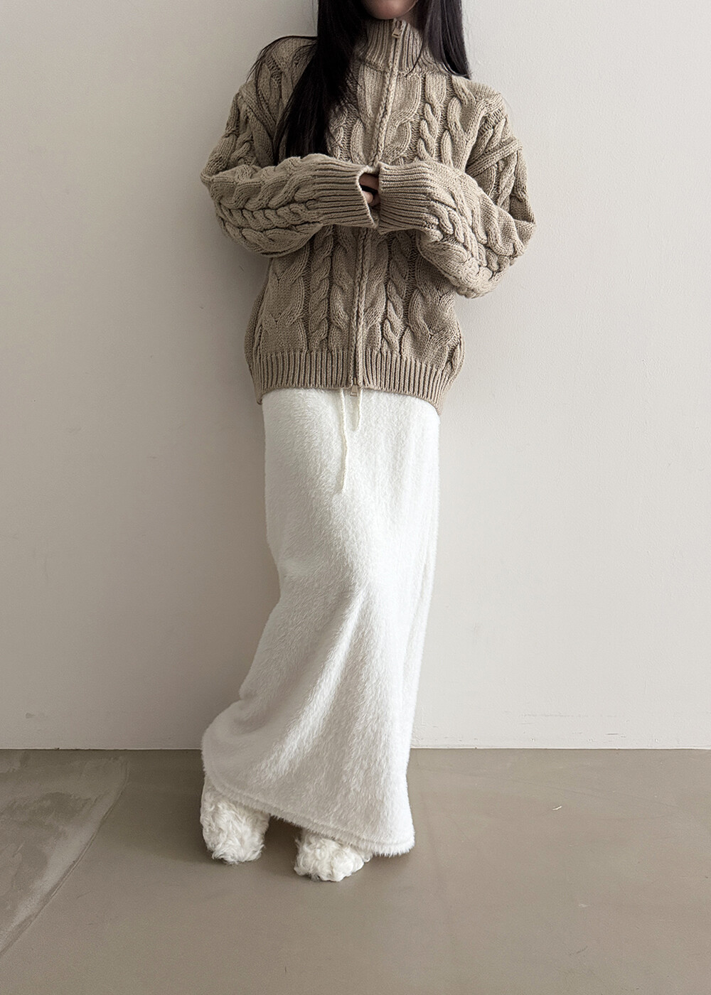 -눈송이같은 포슬하고 부드러운 텍스처의 롱스커트(까슬거림 없으며 스판기가 있어 매우 편해요.)