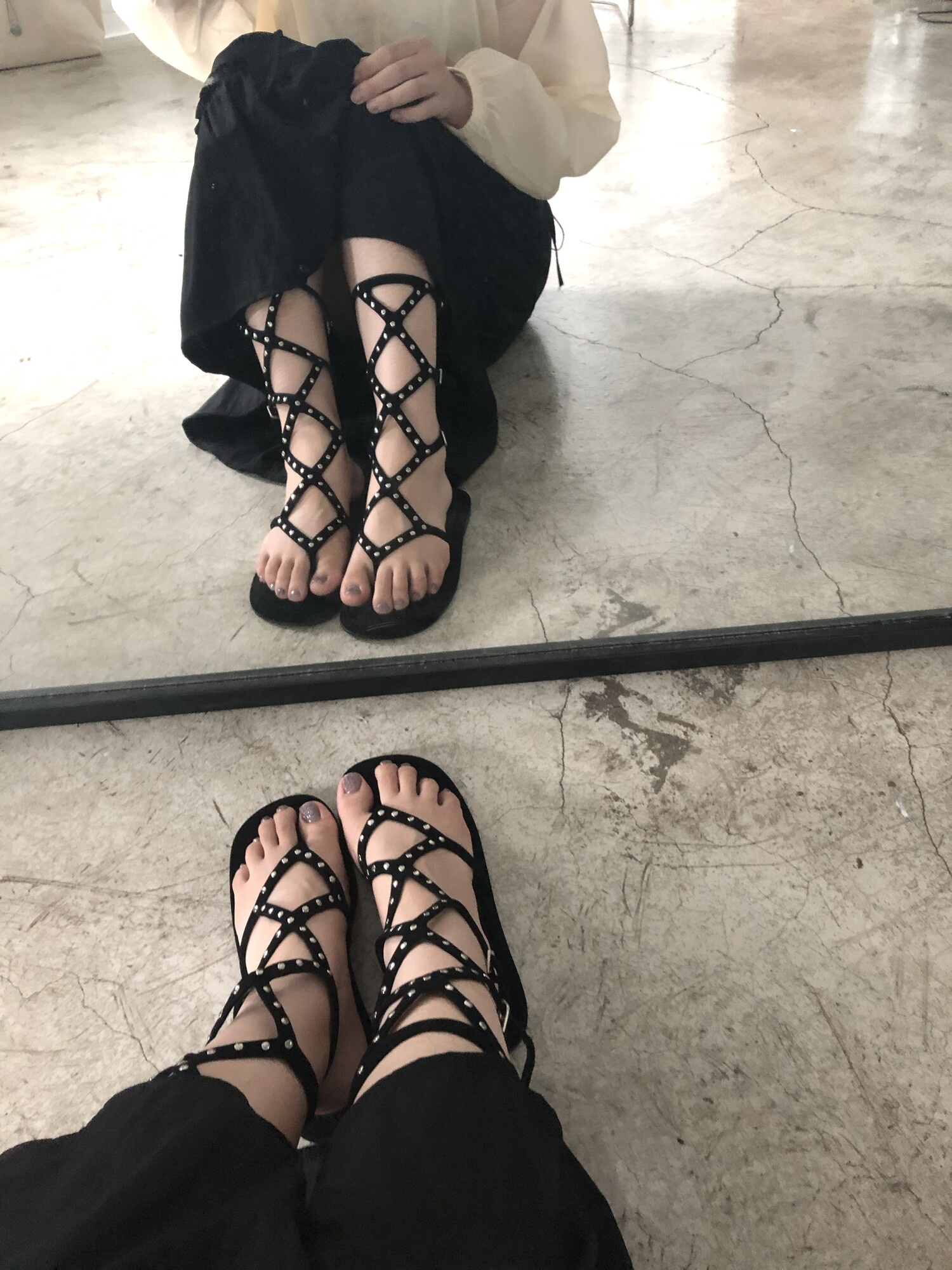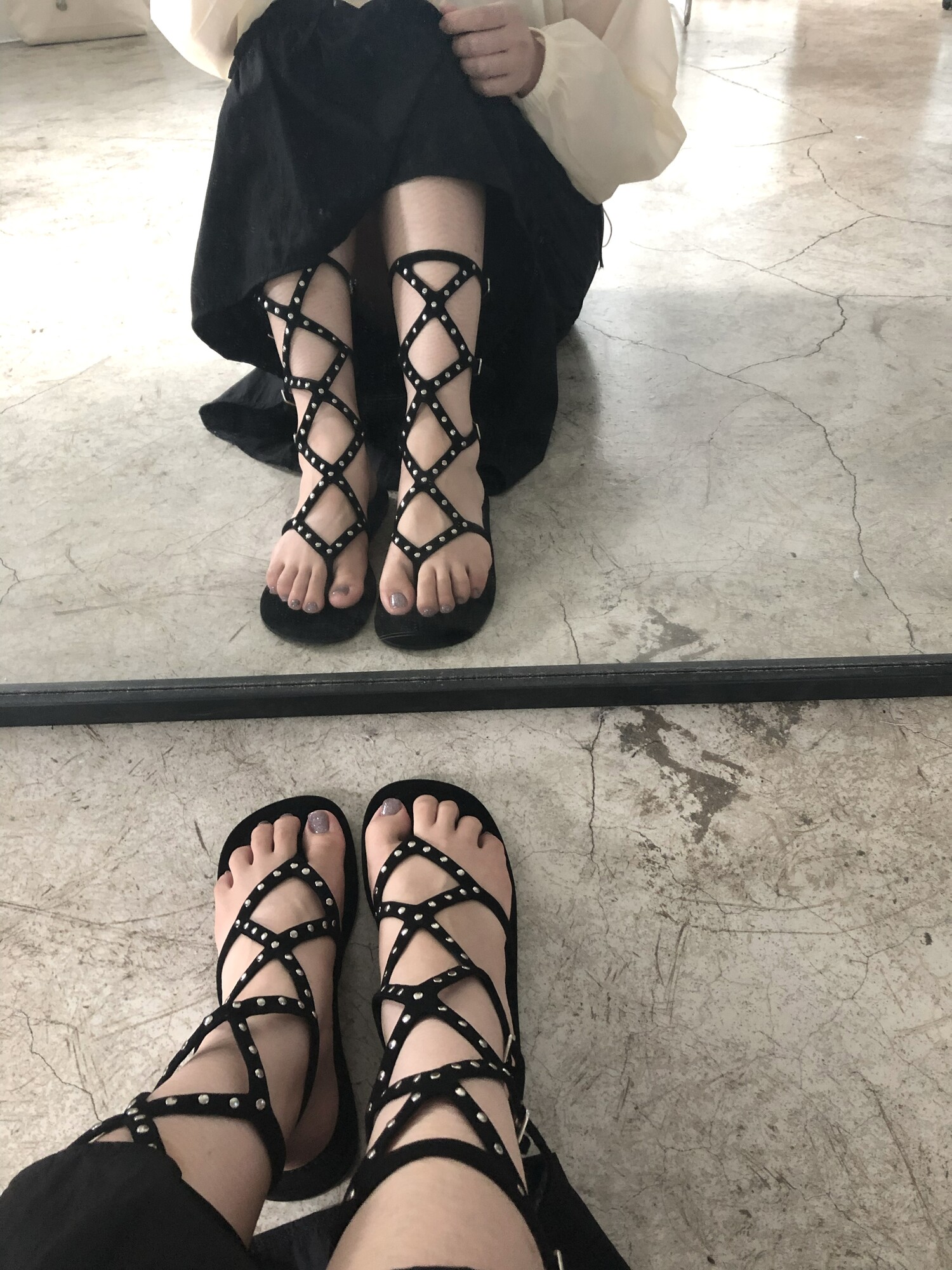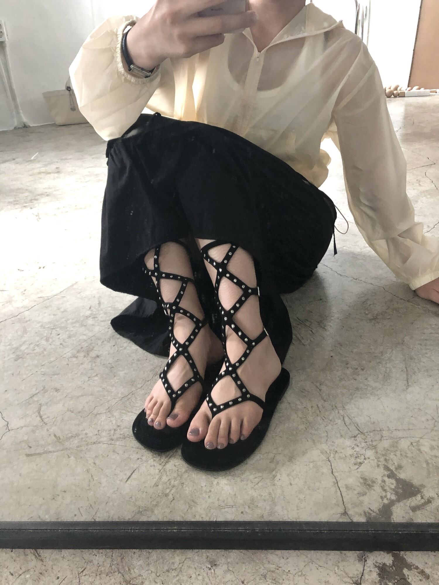 Middle stud sandals-black