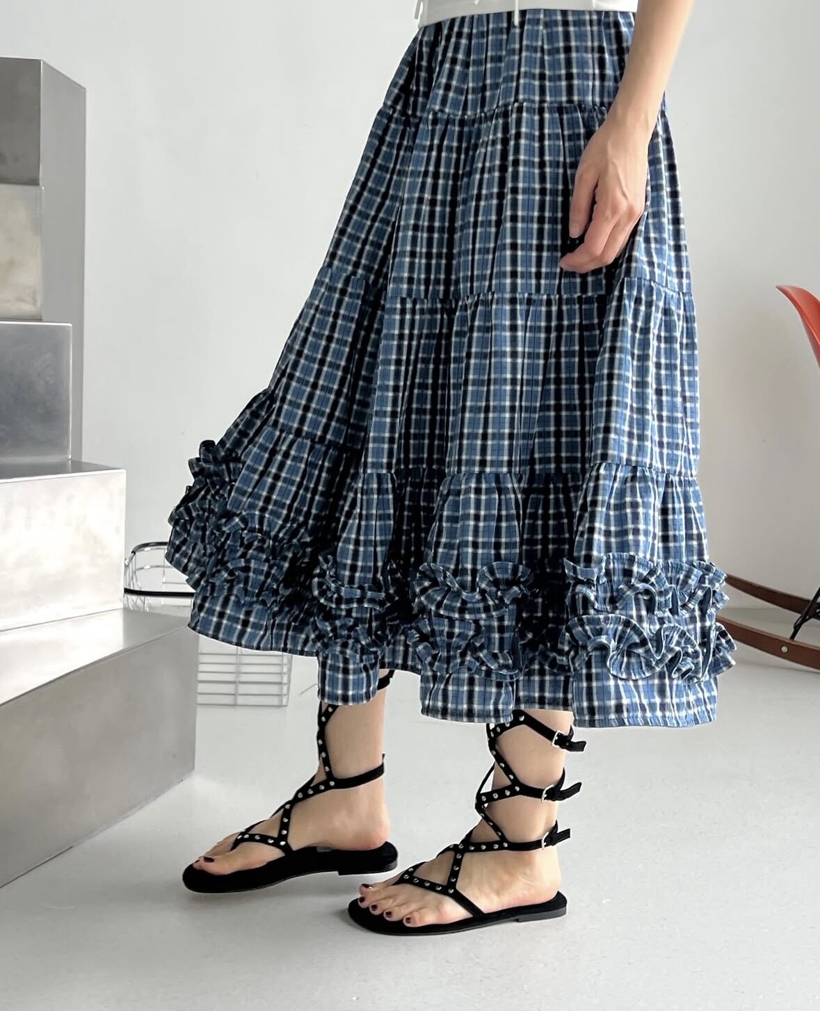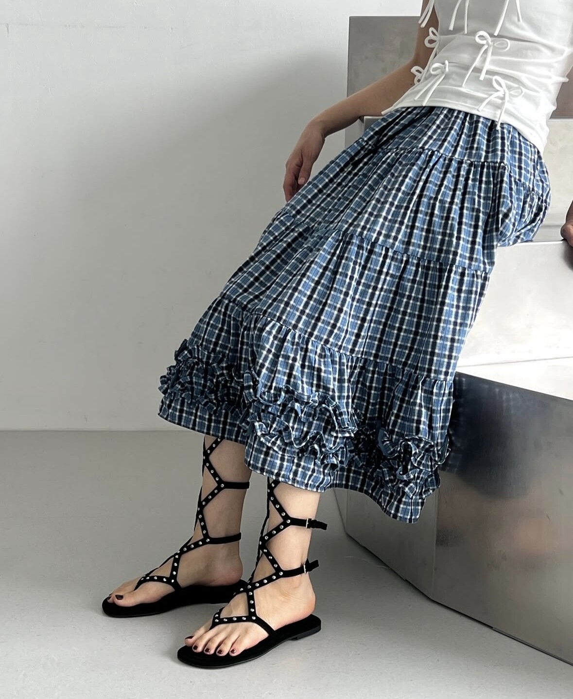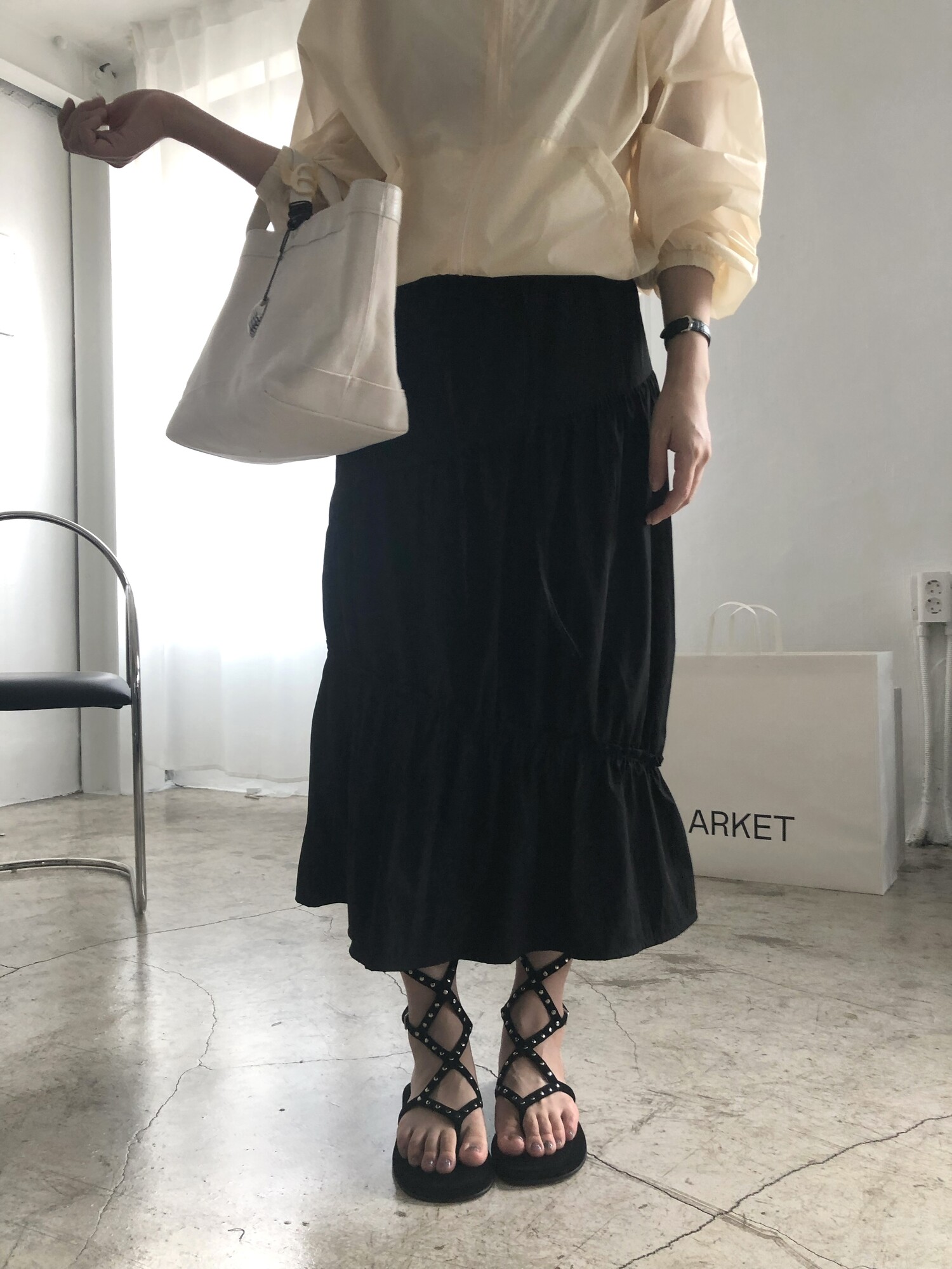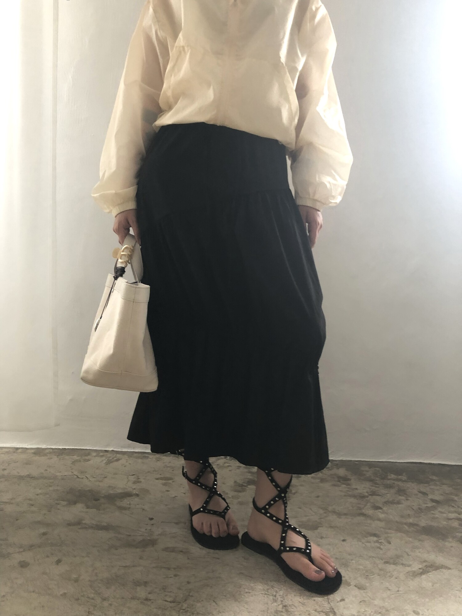 Middle stud sandals-black