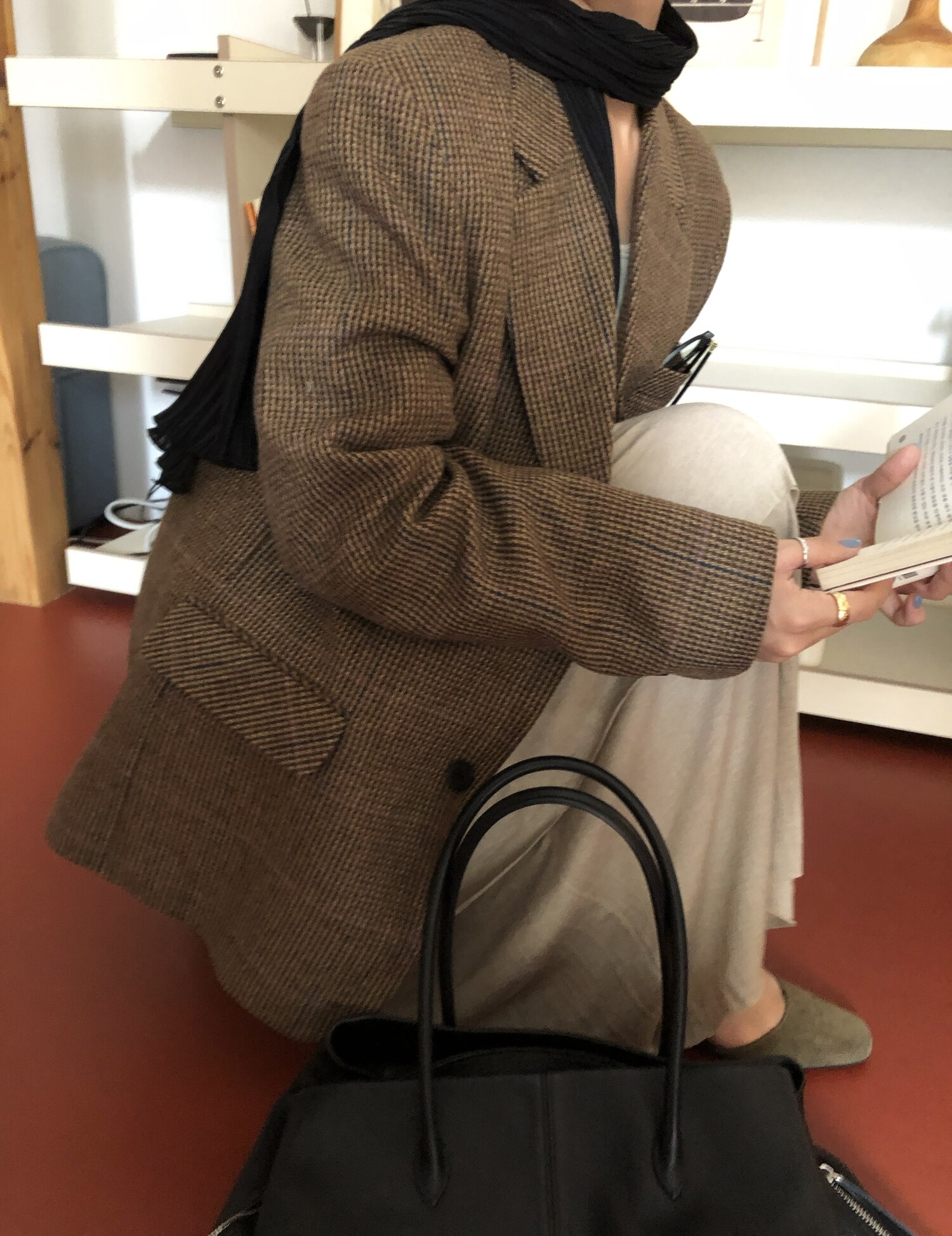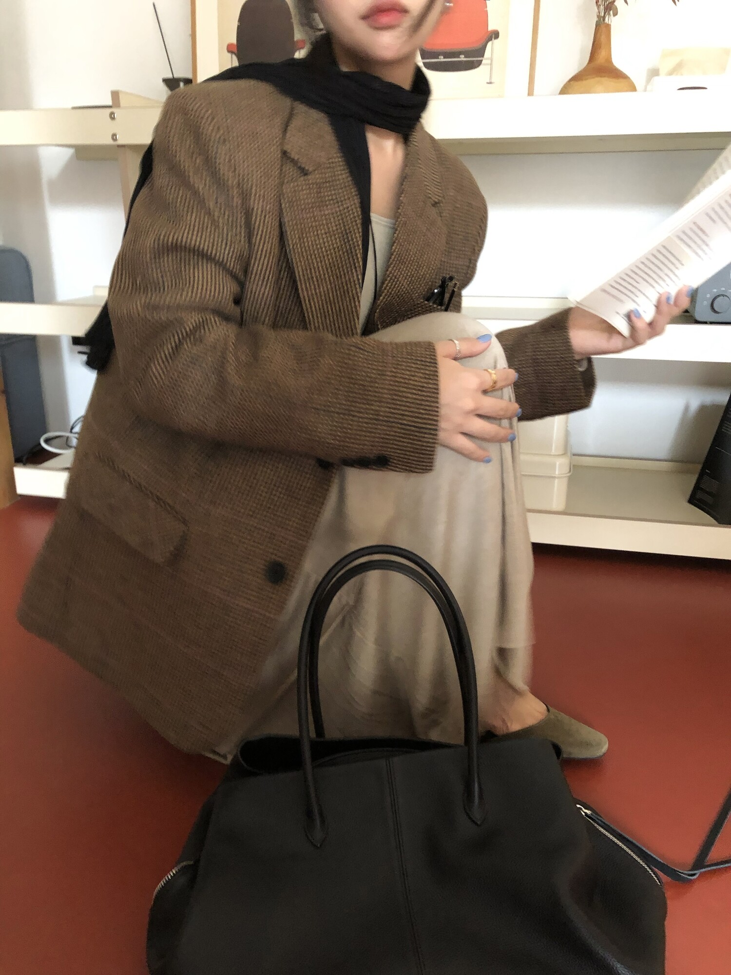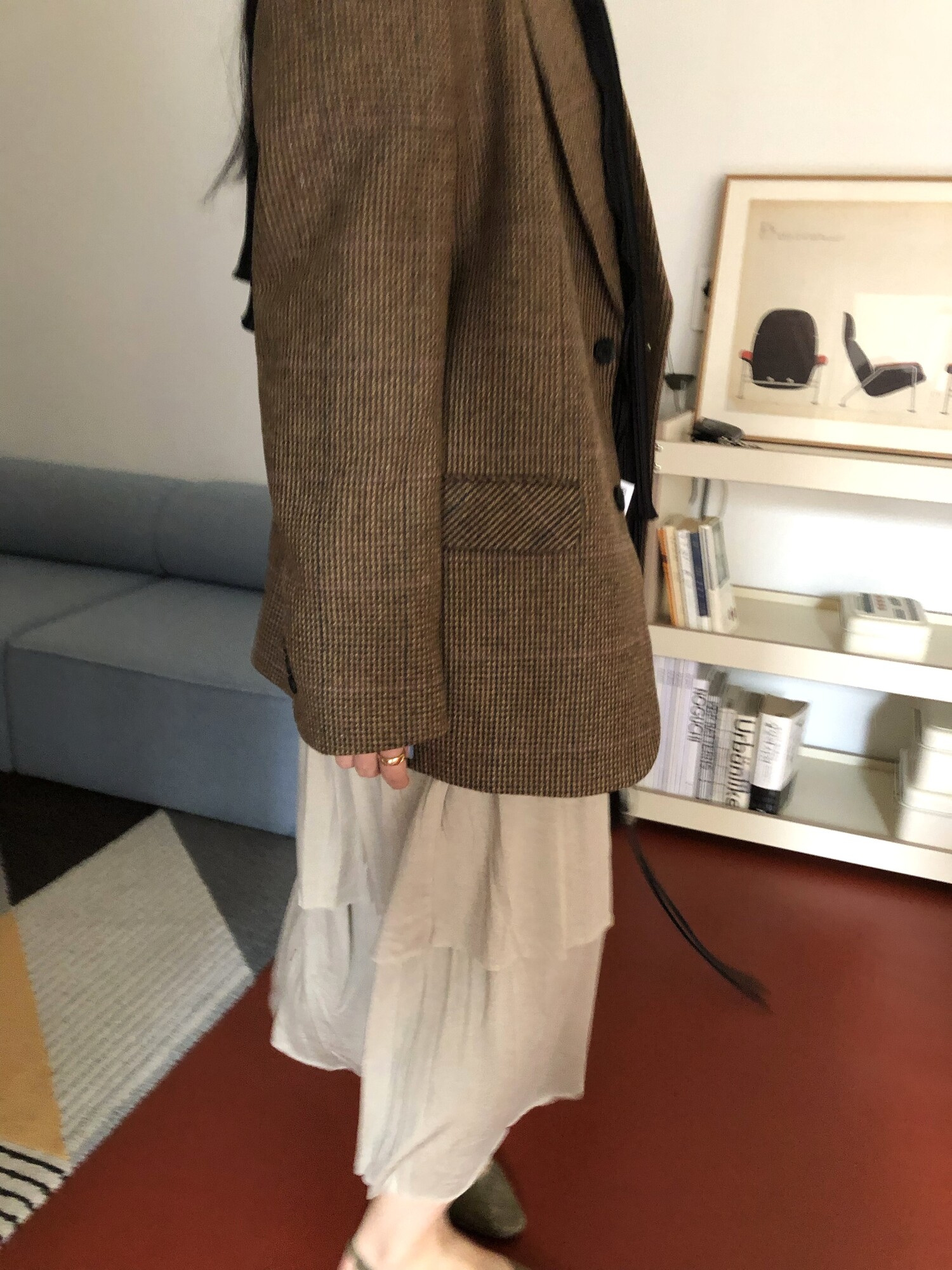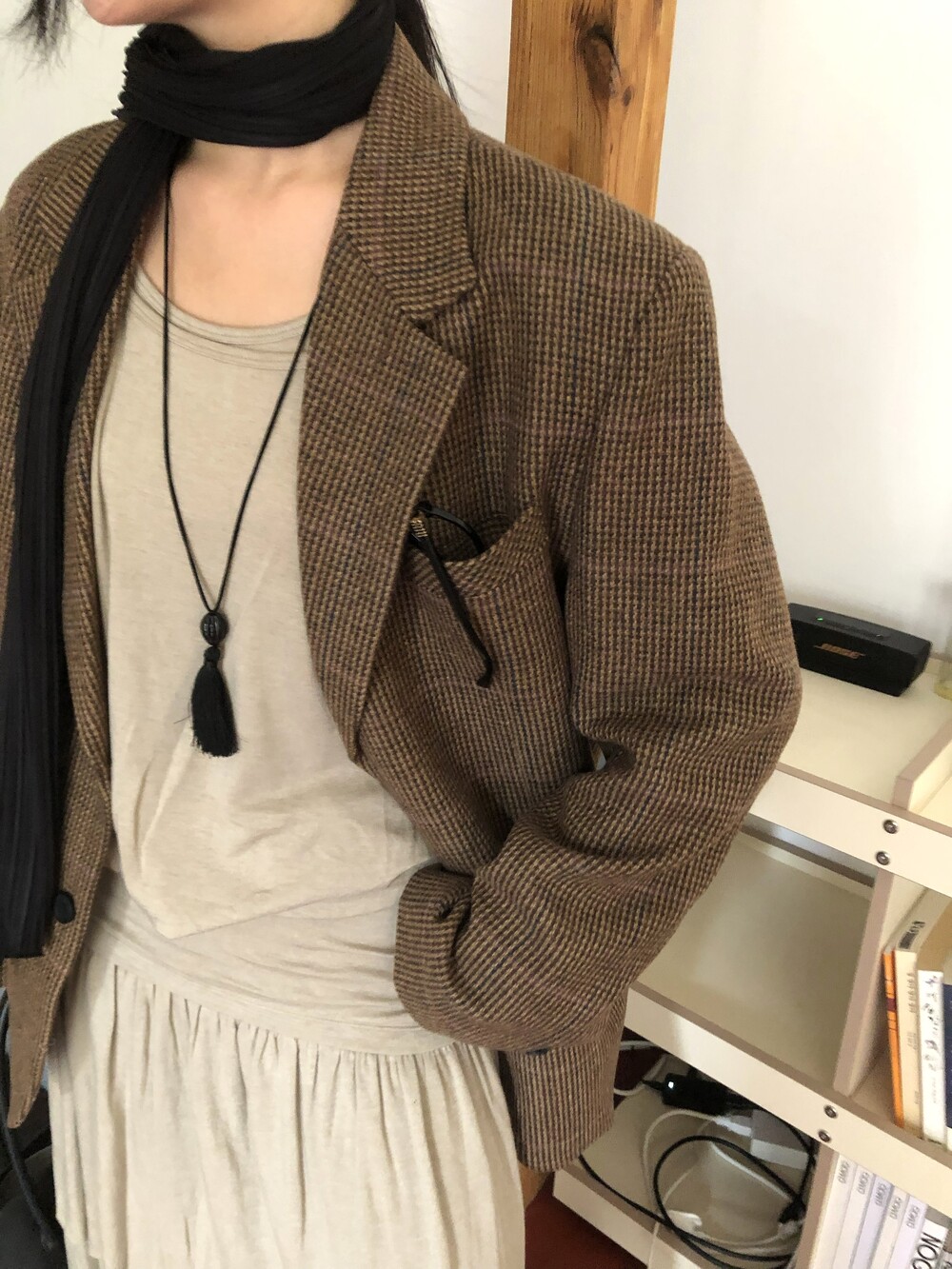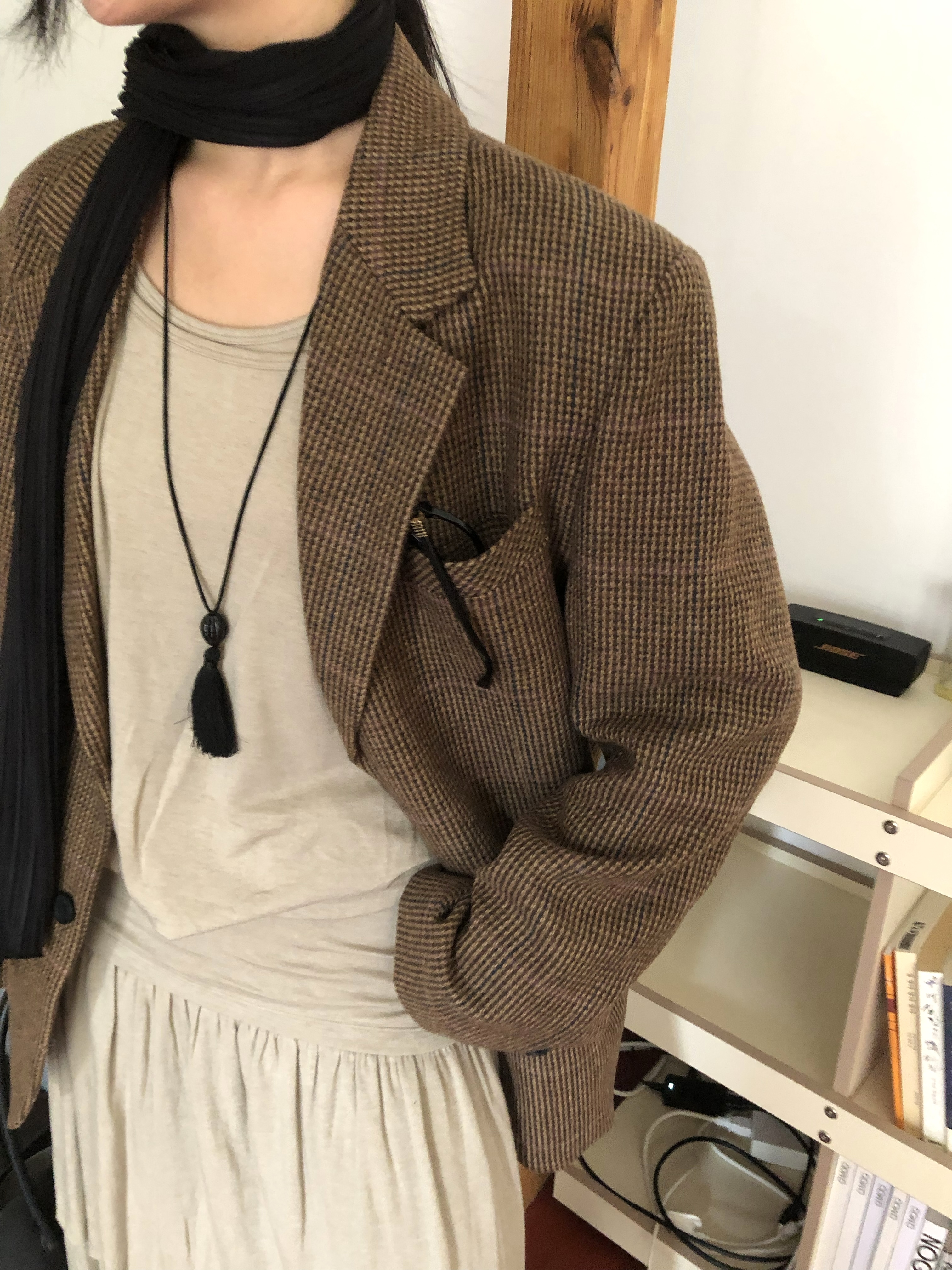 **안감 브라운톤으로 맞추었으며 체크 배열이 클래식한 무드로 유행타지 않고 오래 입기좋은 울 jk입니다.