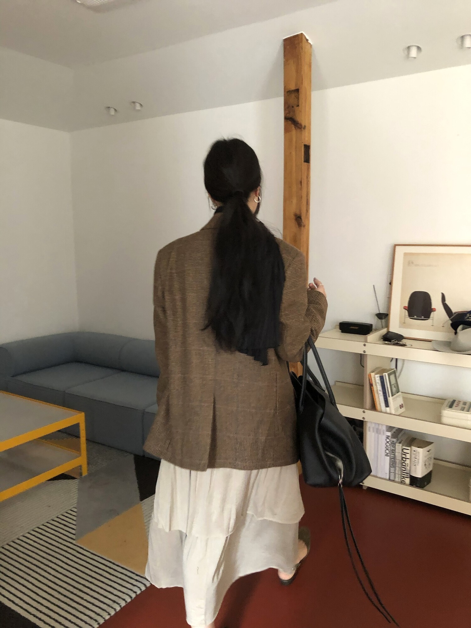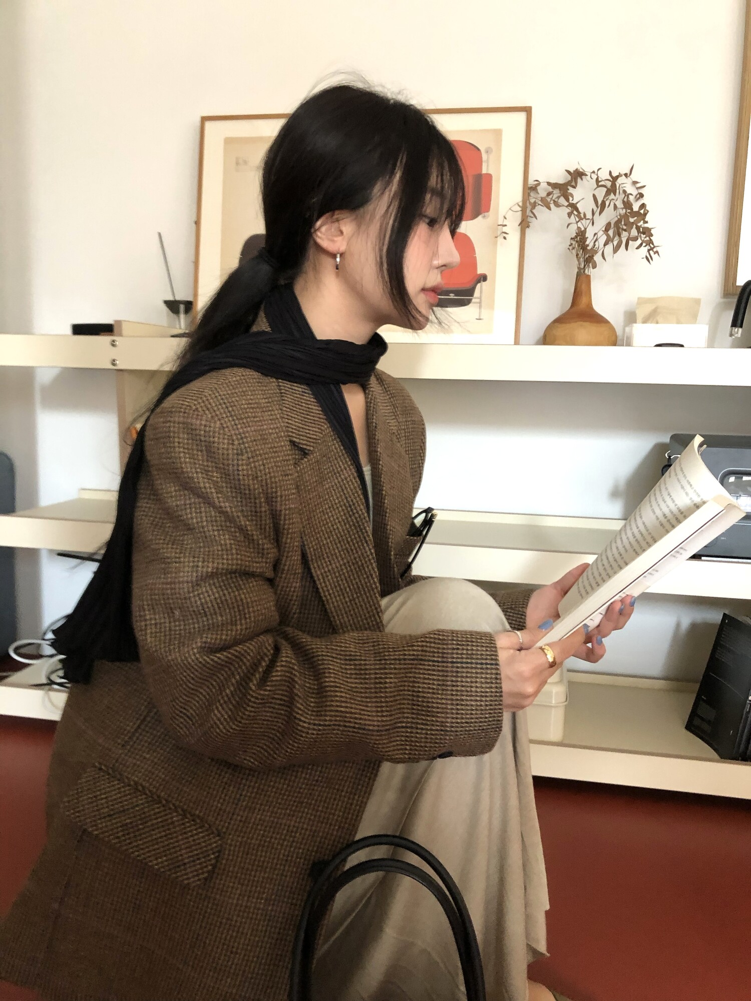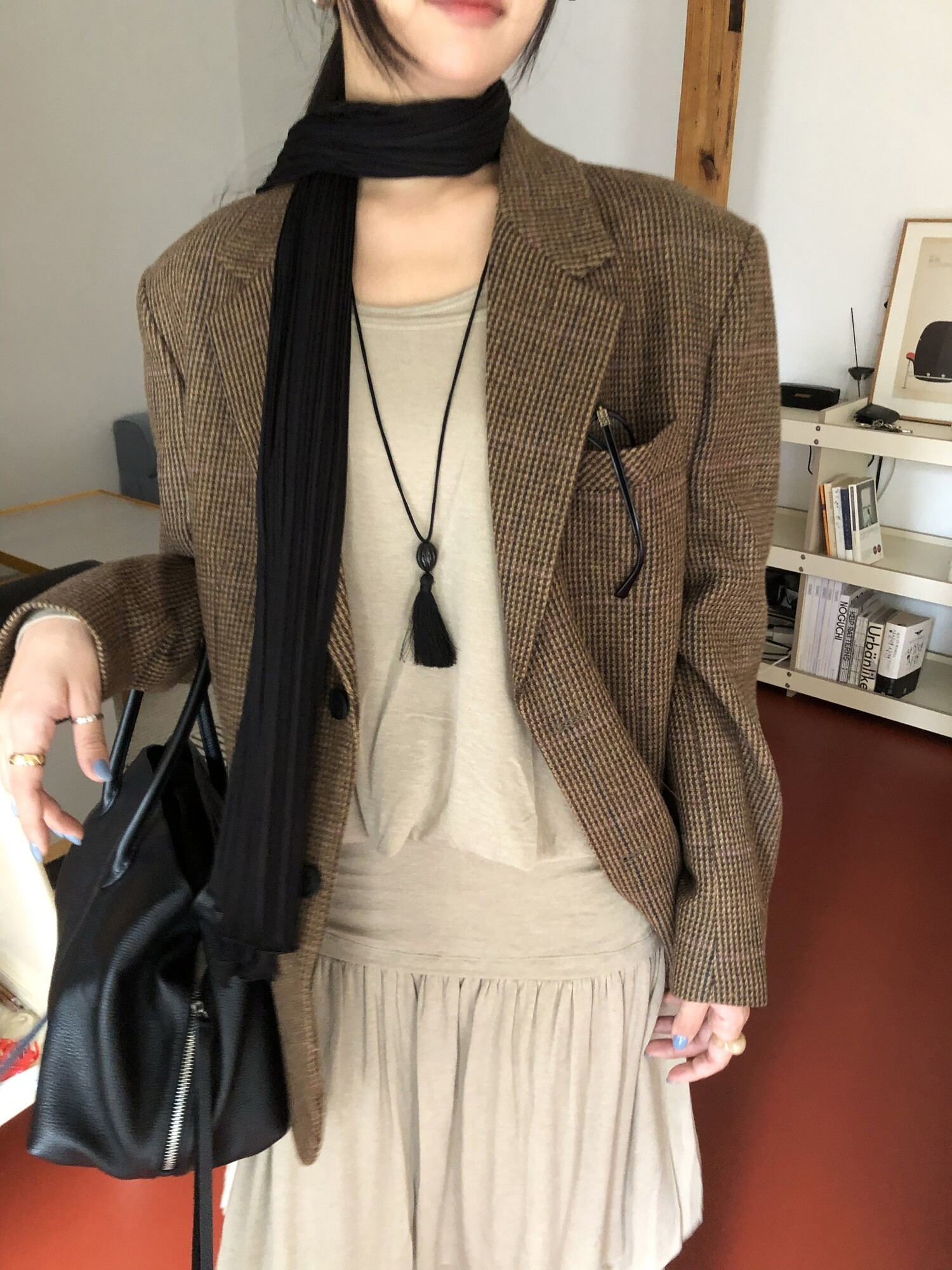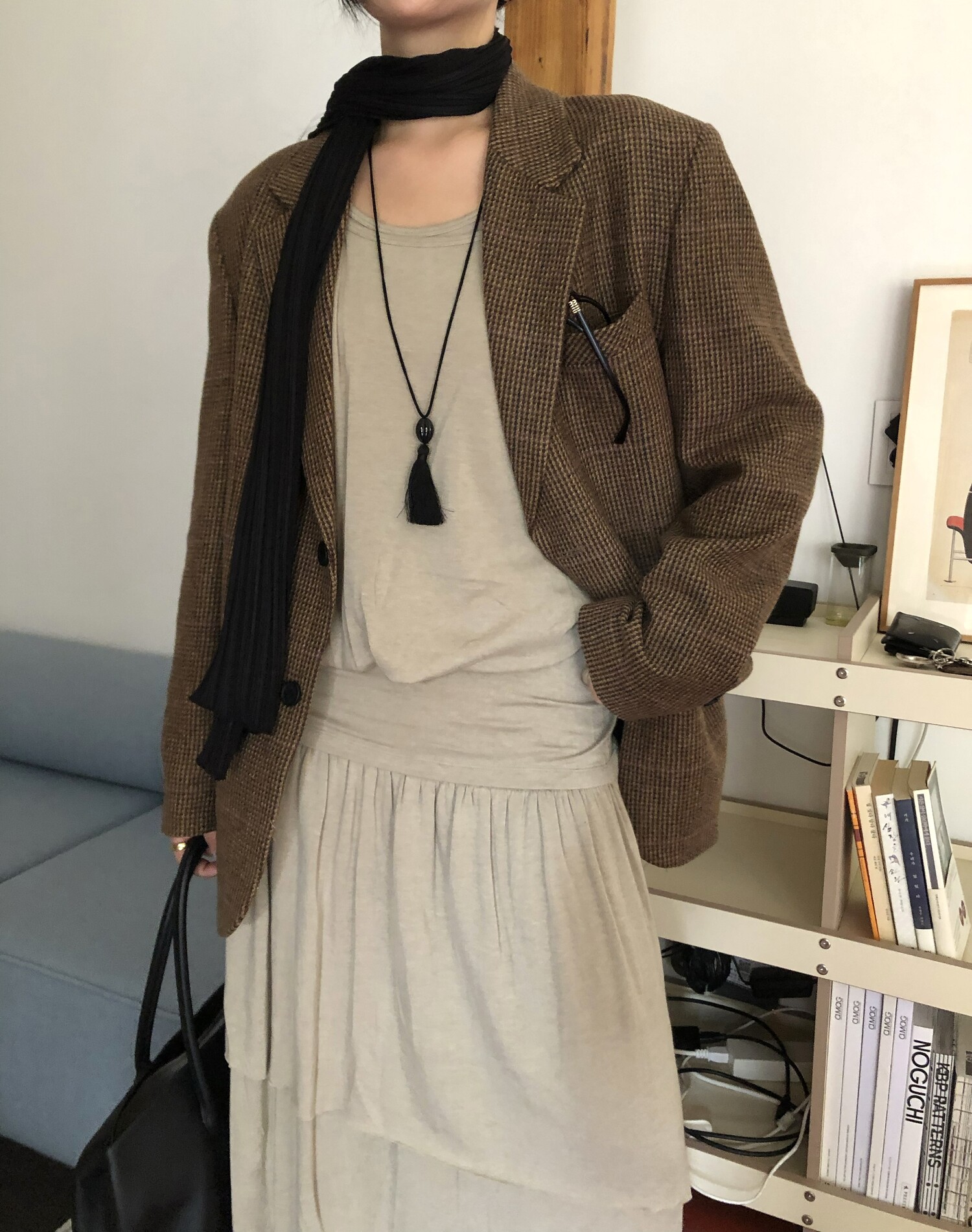**안감 브라운톤으로 맞추었으며 체크 배열이 클래식한 무드로 유행타지 않고 오래 입기좋은 울 jk입니다.
