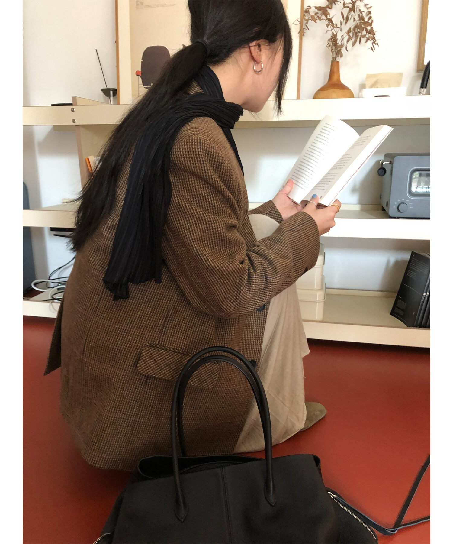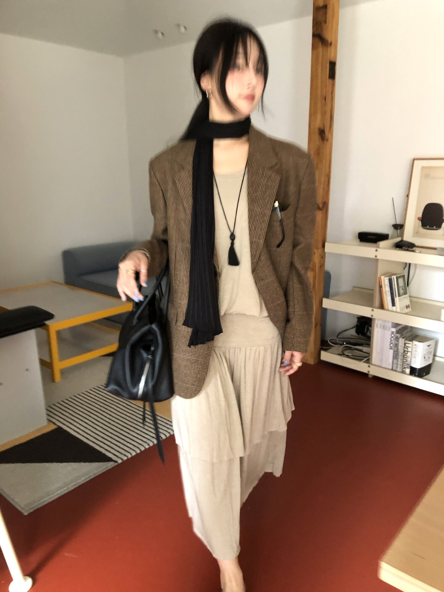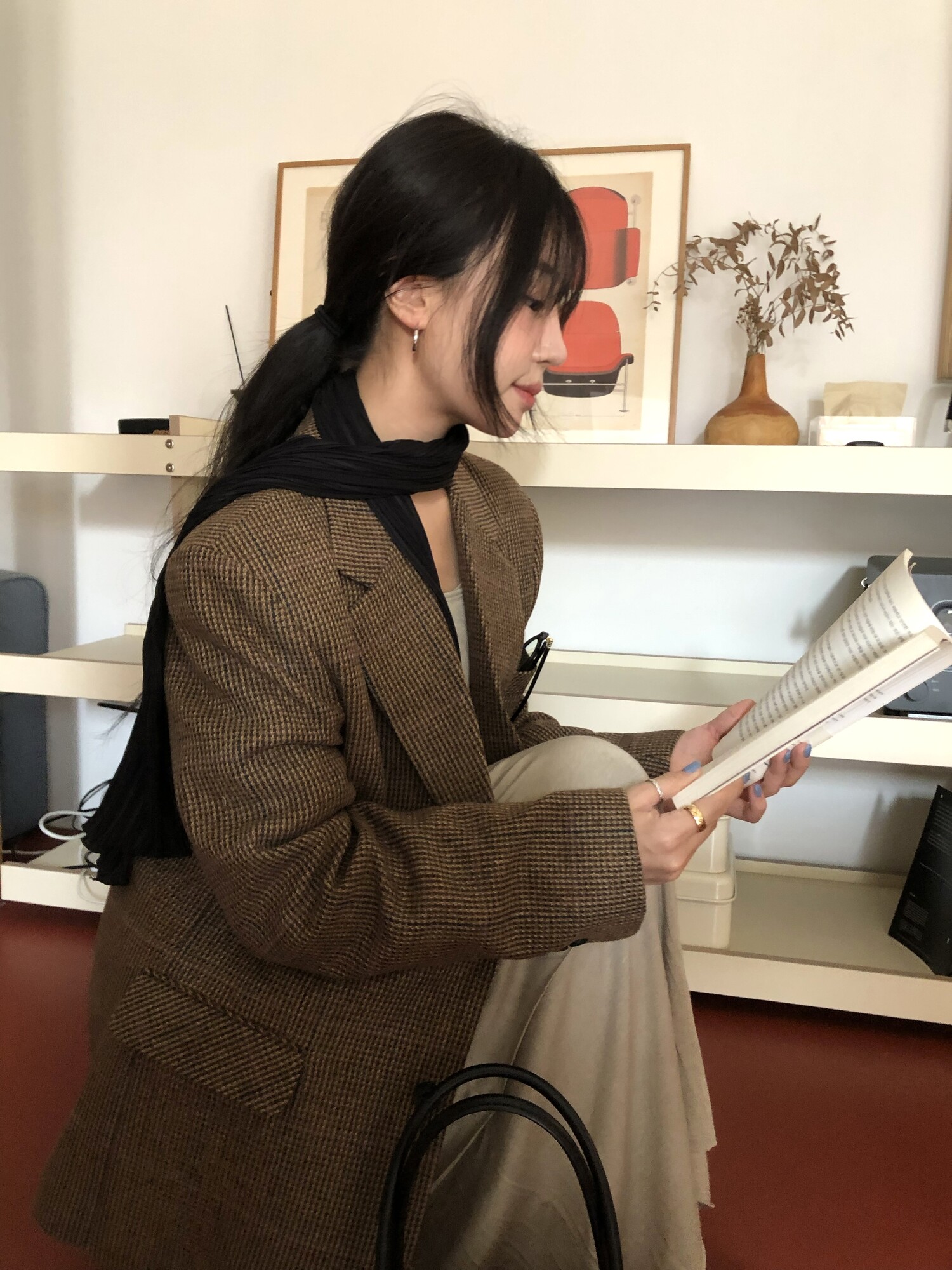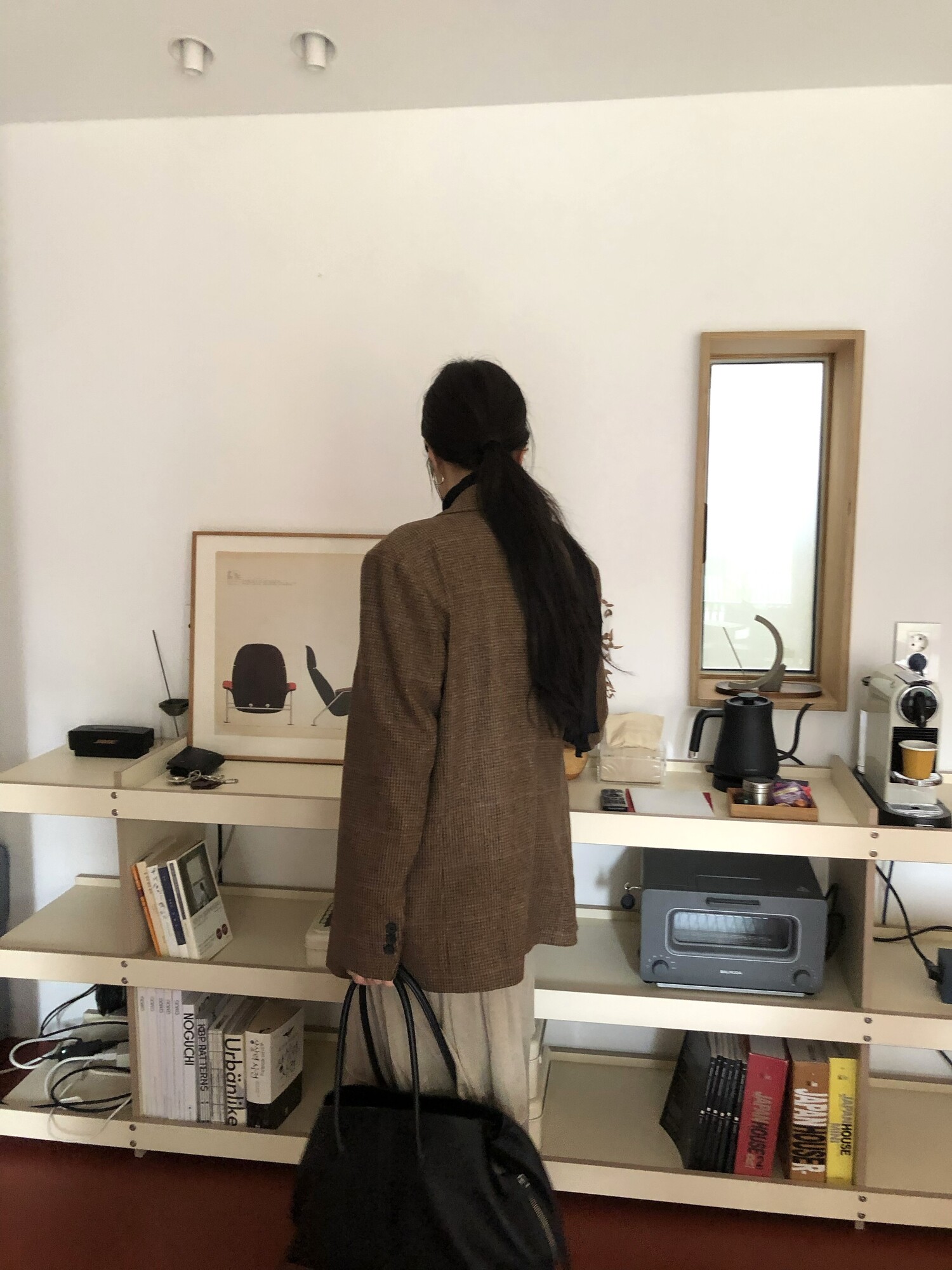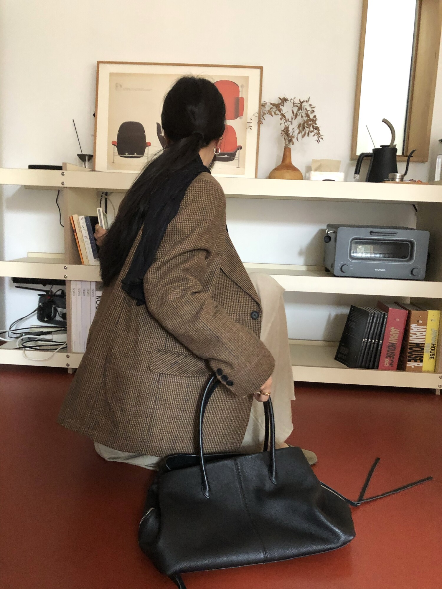 **안감 브라운톤으로 맞추었으며 체크 배열이 클래식한 무드로 유행타지 않고 오래 입기좋은 울 jk입니다.