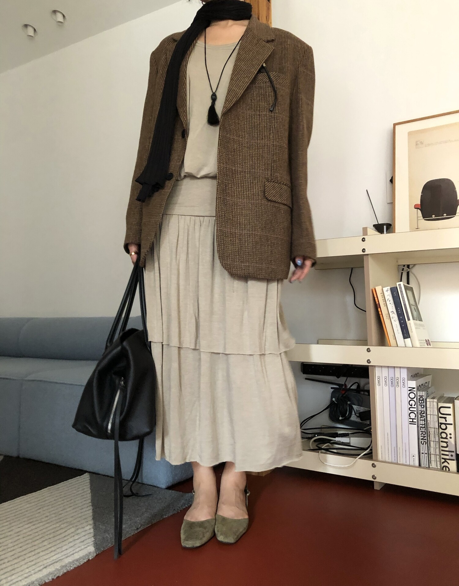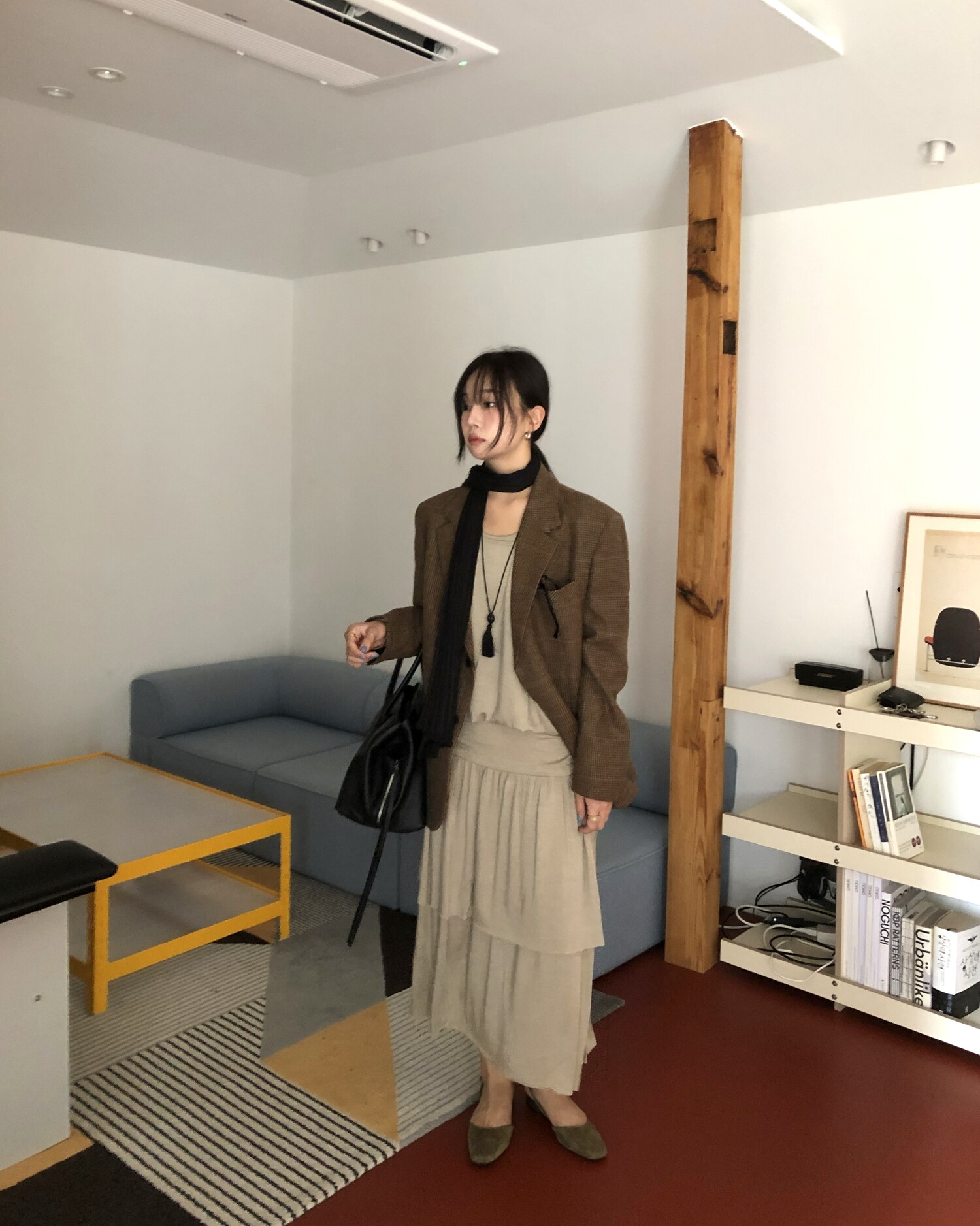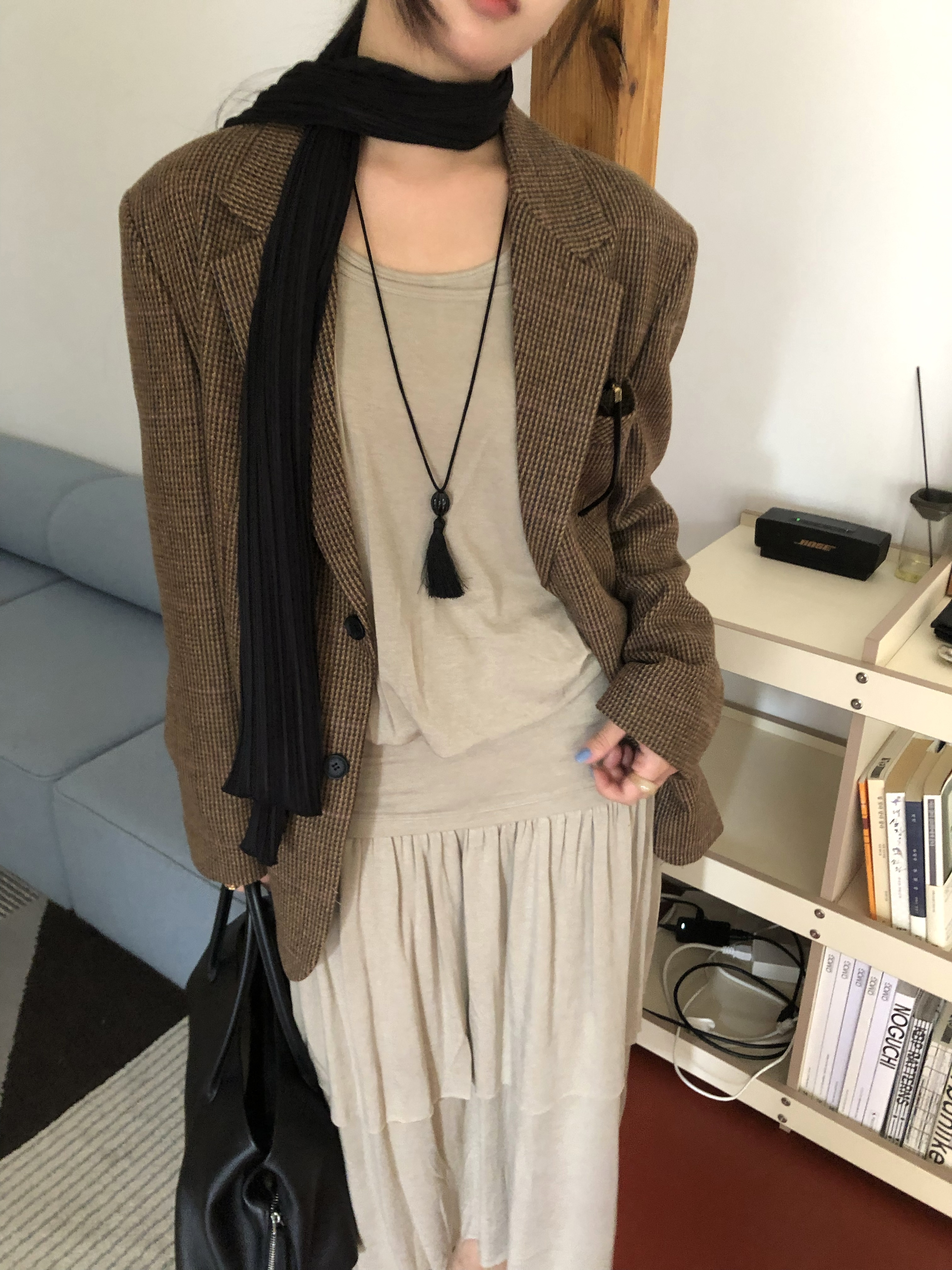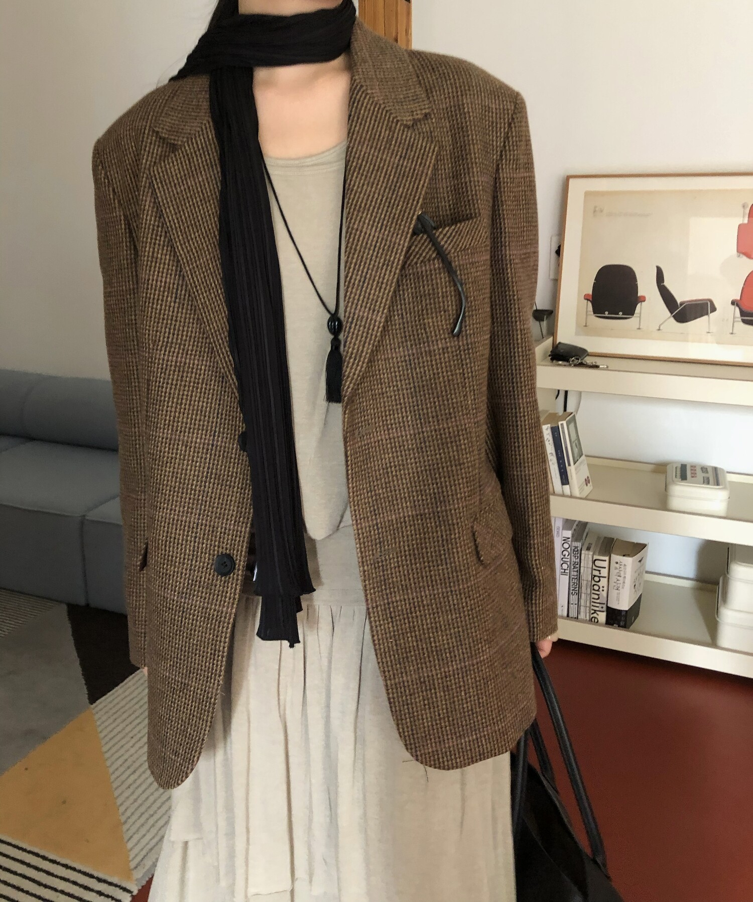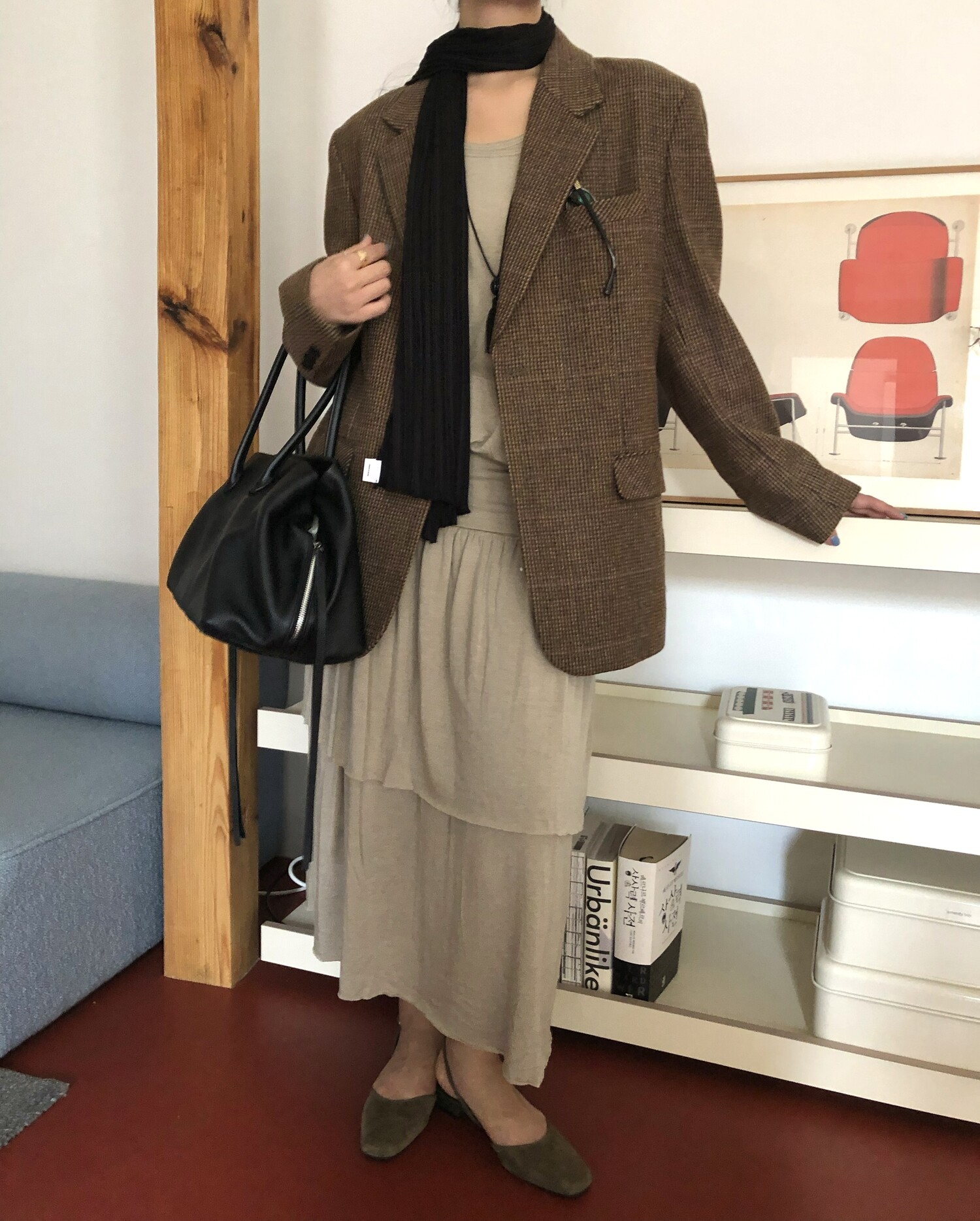 **안감 브라운톤으로 맞추었으며 체크 배열이 클래식한 무드로 유행타지 않고 오래 입기좋은 울 jk입니다.