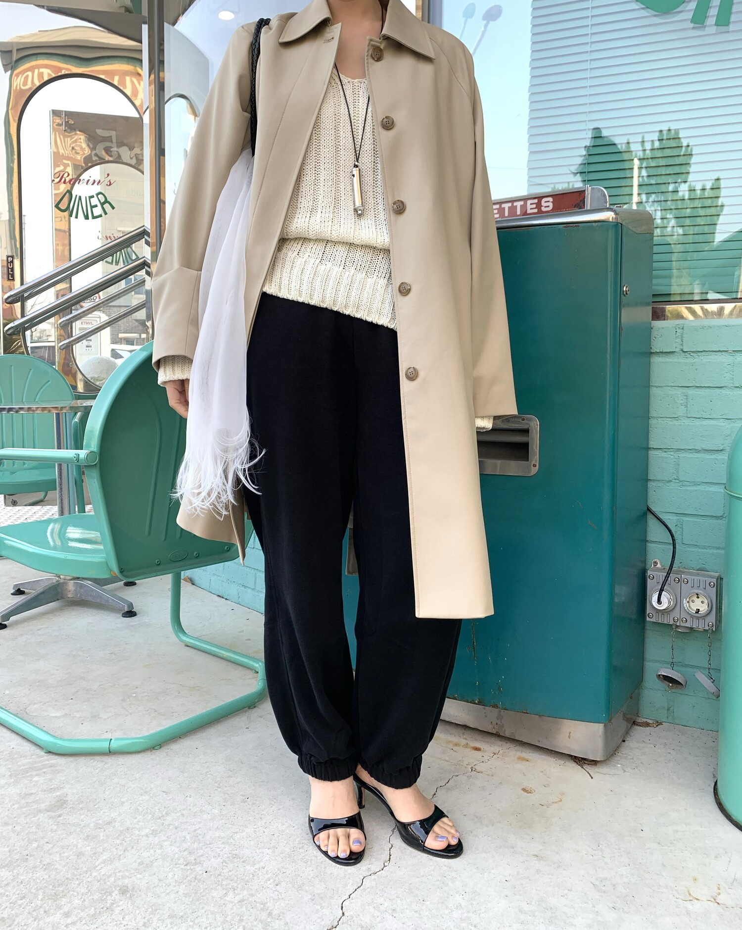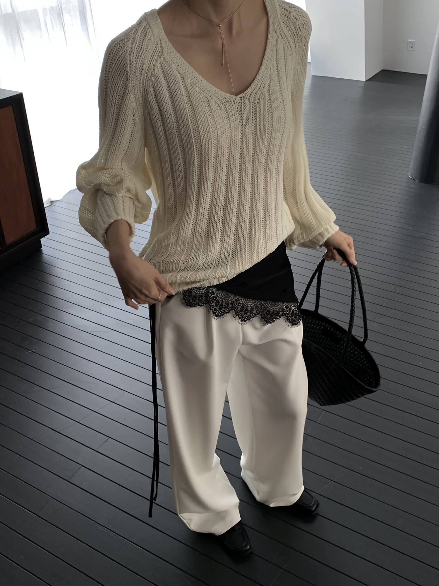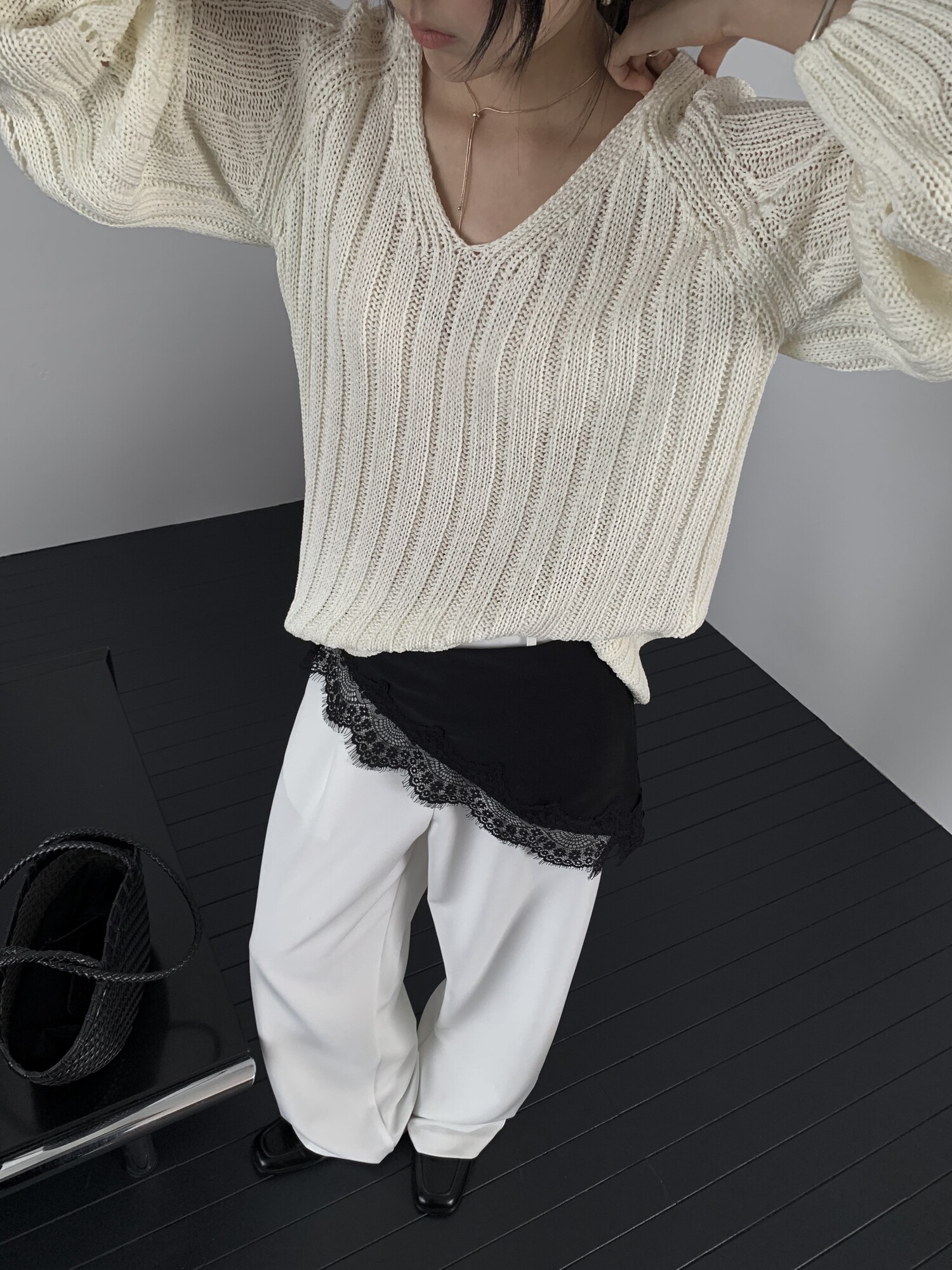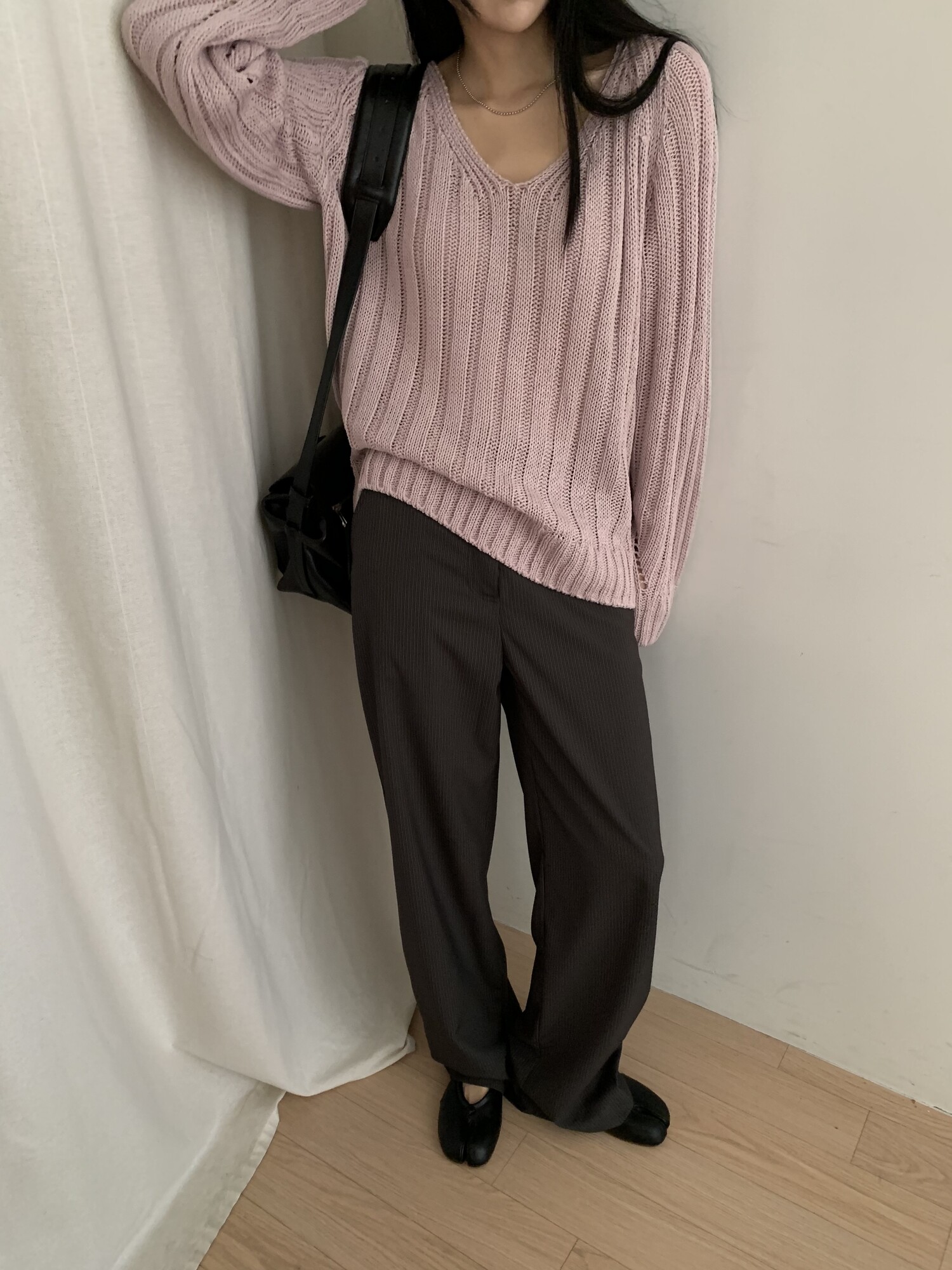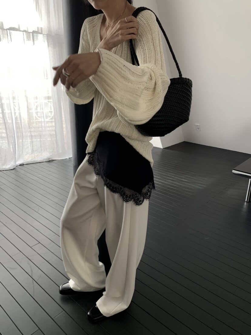 -툭 떨어지는 두께감 있는 소재&어깨 레글런으로 여리하고 청순한 무드 연출