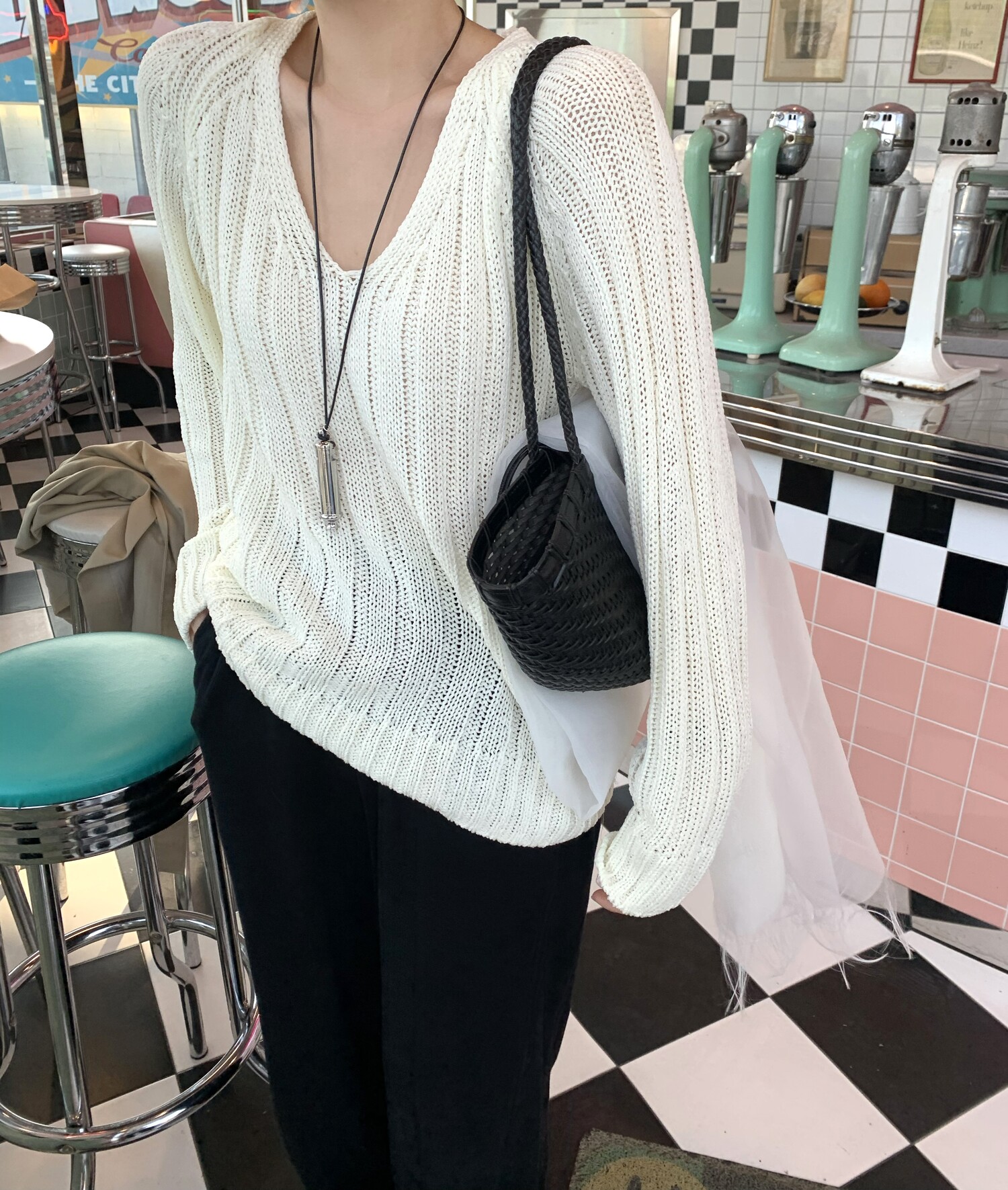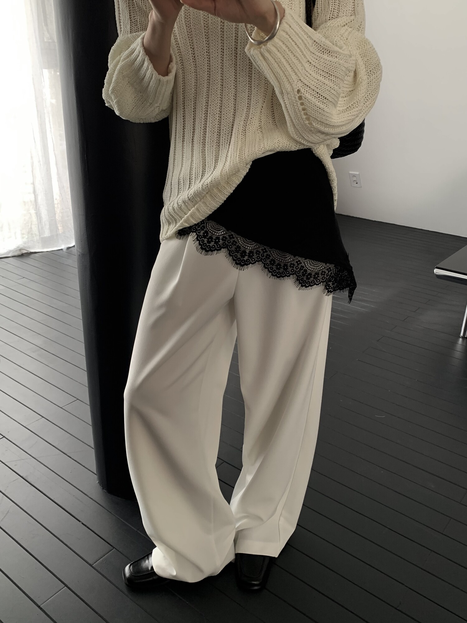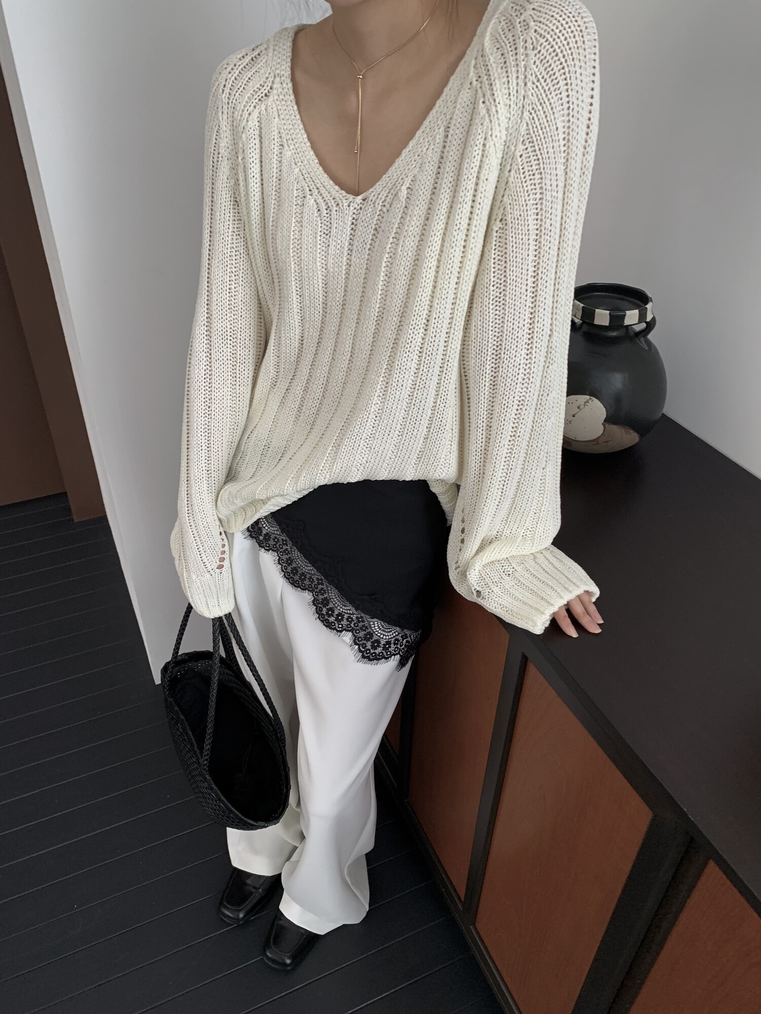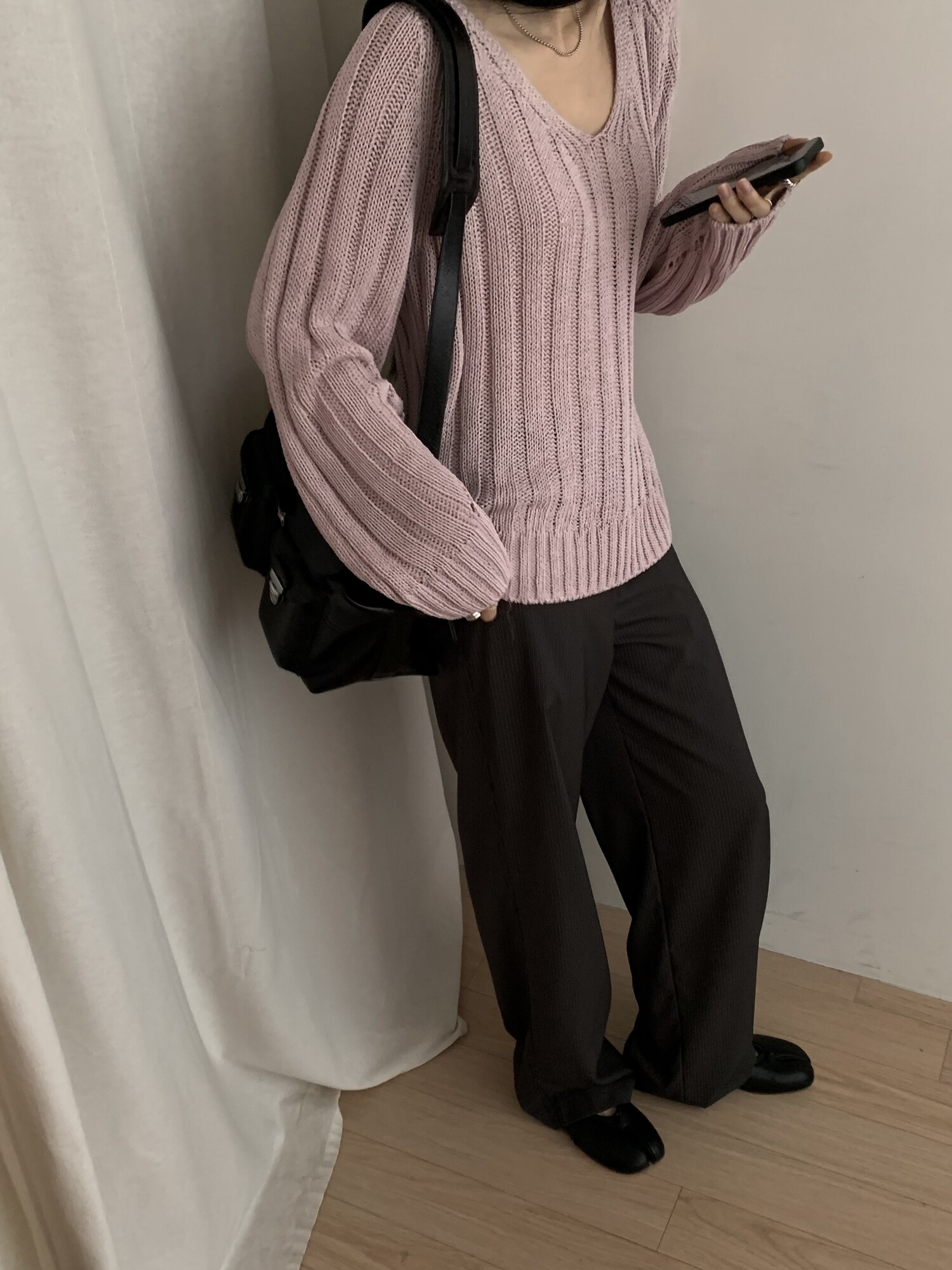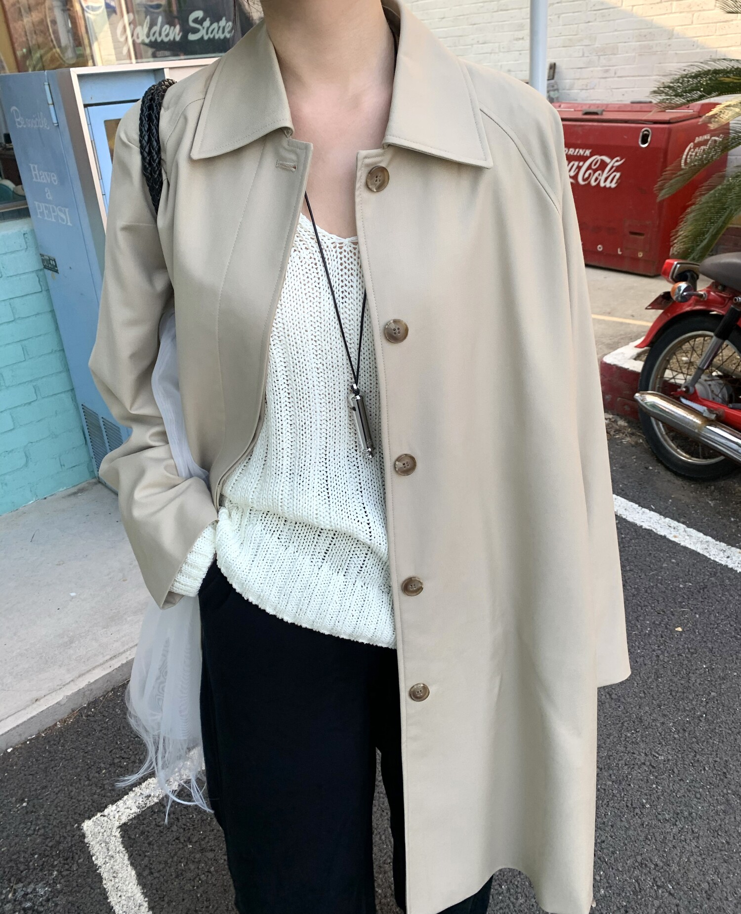 -툭 떨어지는 두께감 있는 소재&어깨 레글런으로 여리하고 청순한 무드 연출