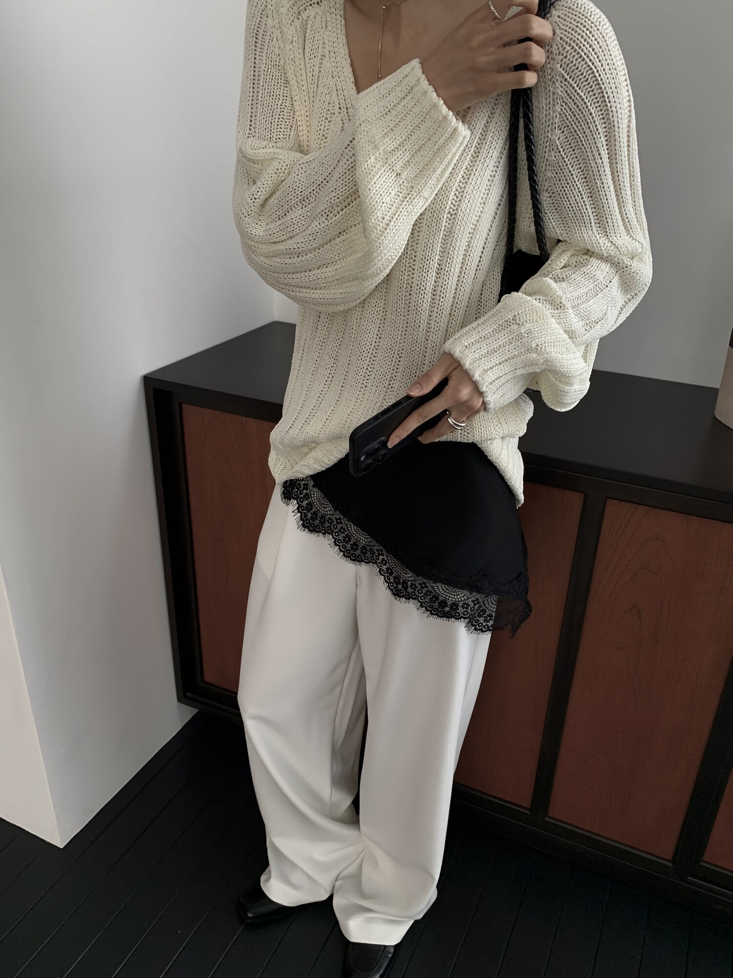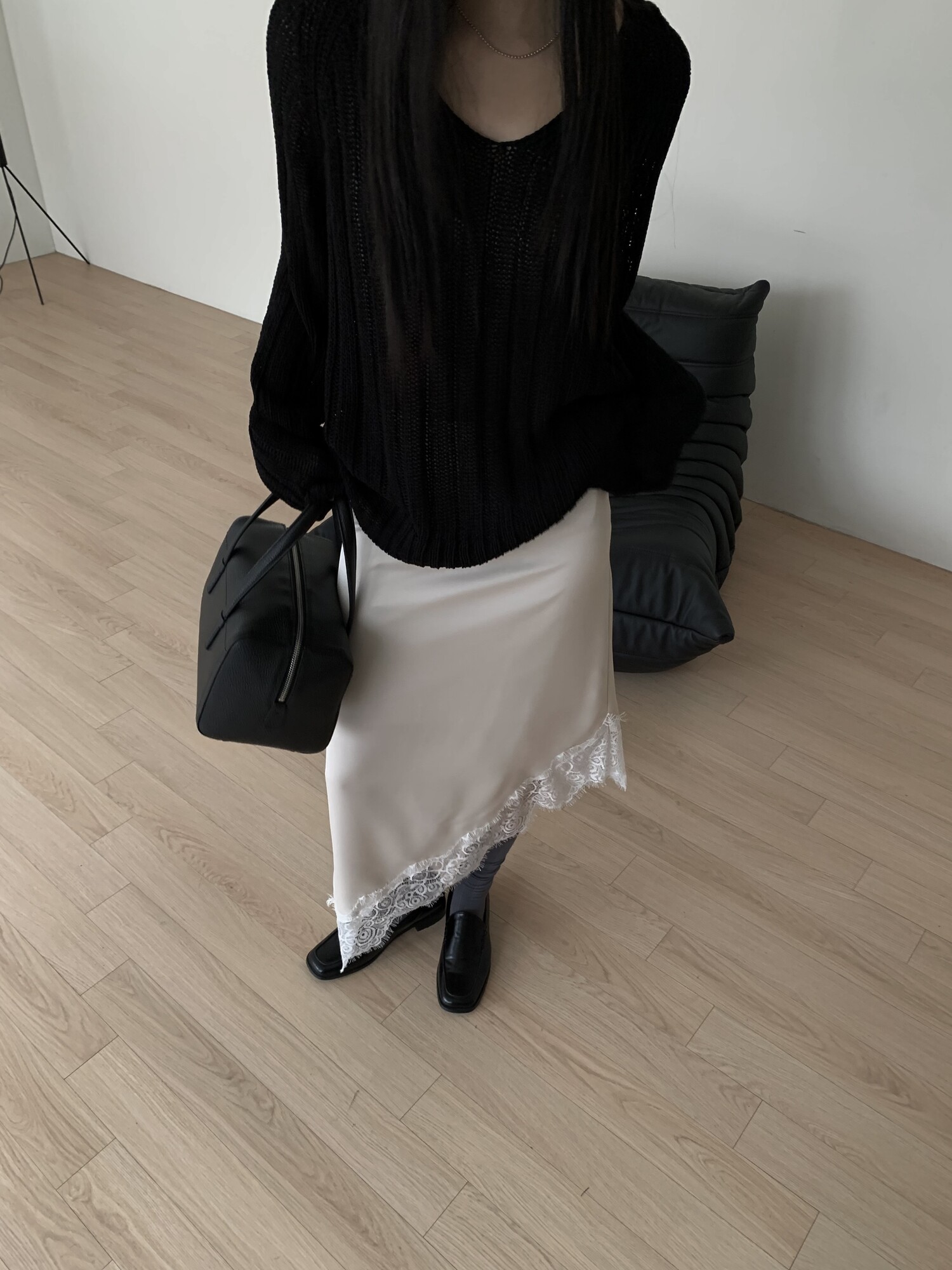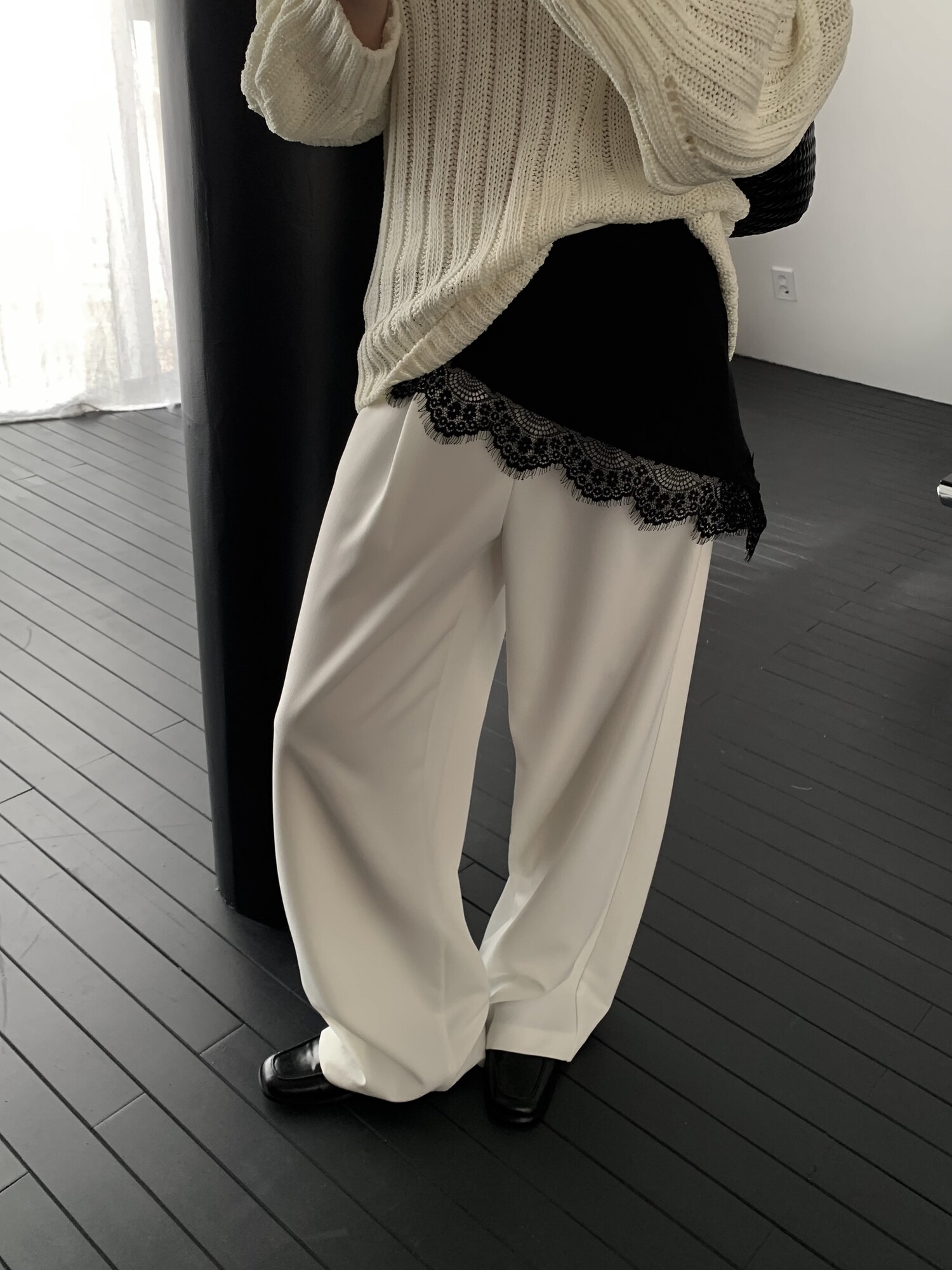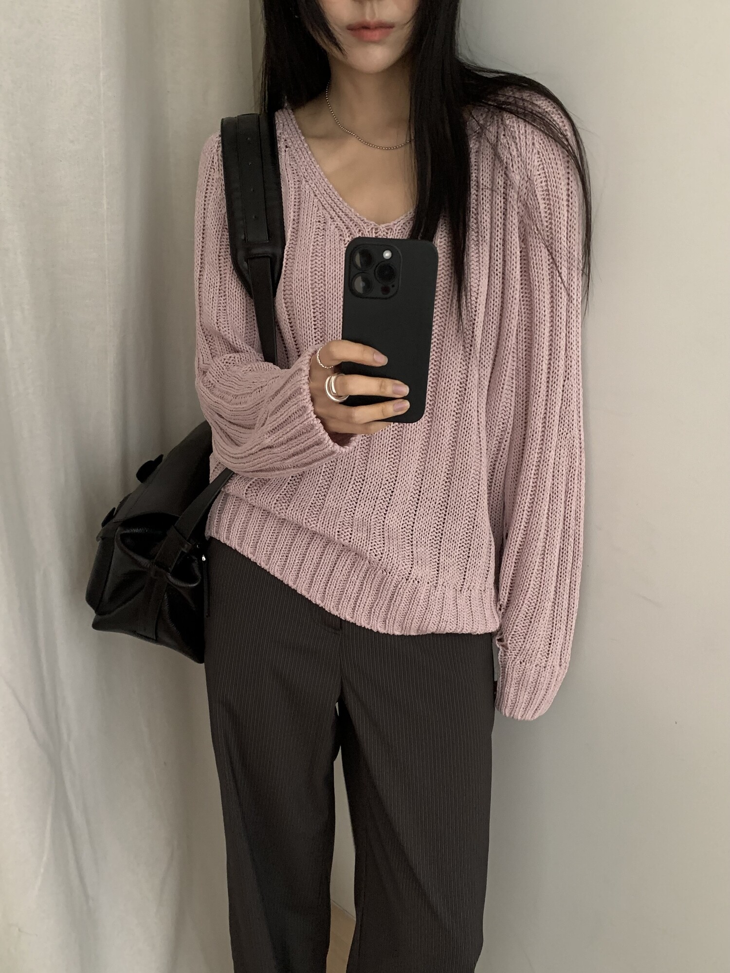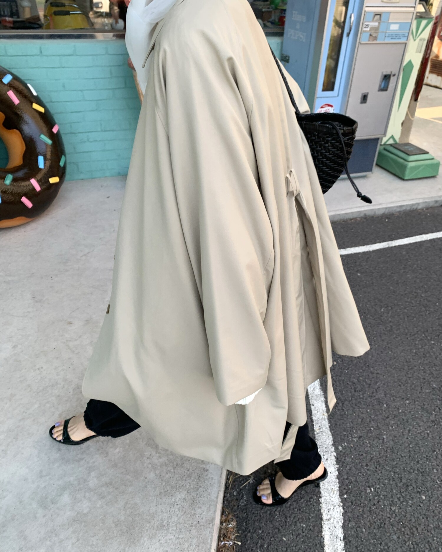 -툭 떨어지는 두께감 있는 소재&어깨 레글런으로 여리하고 청순한 무드 연출