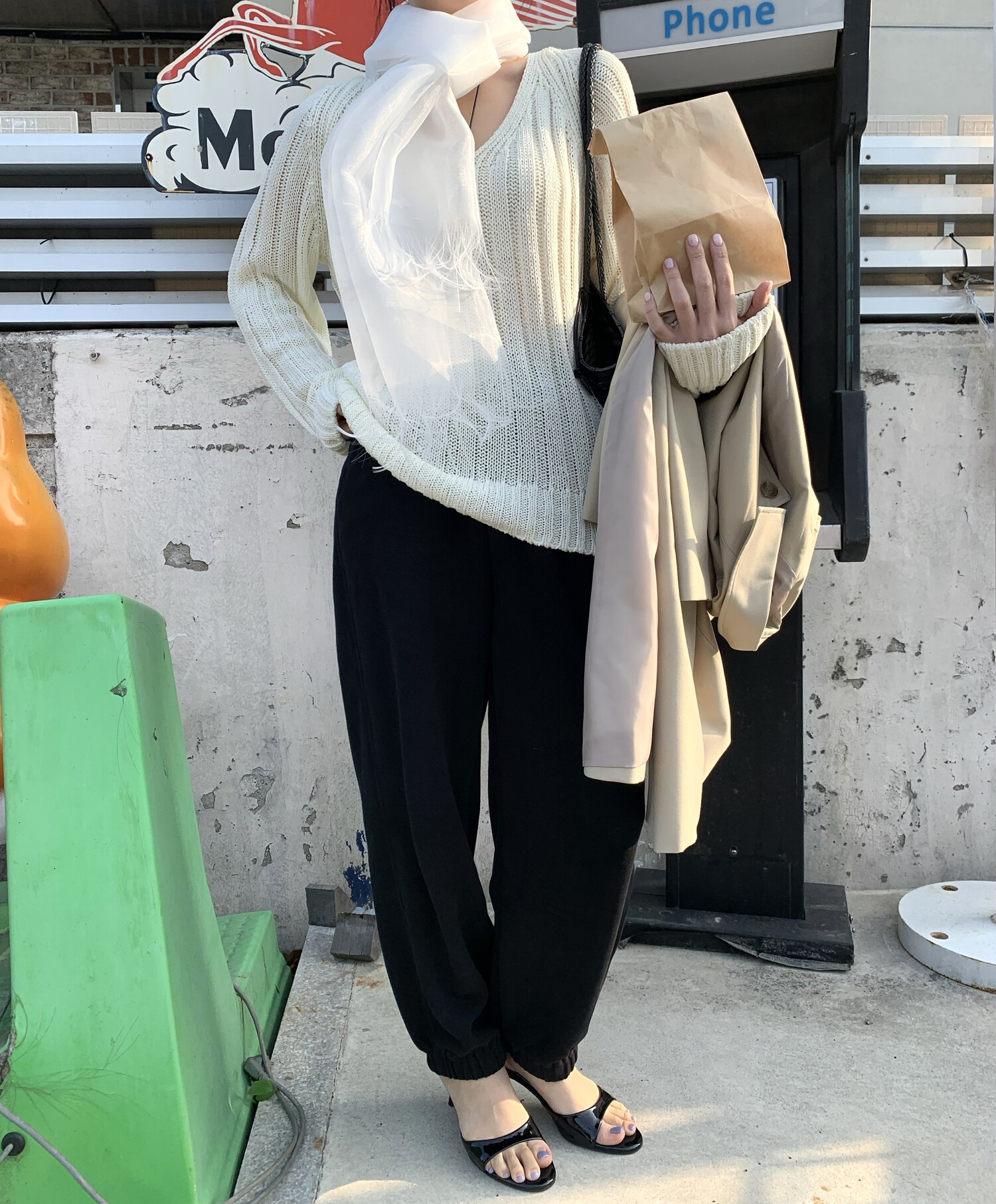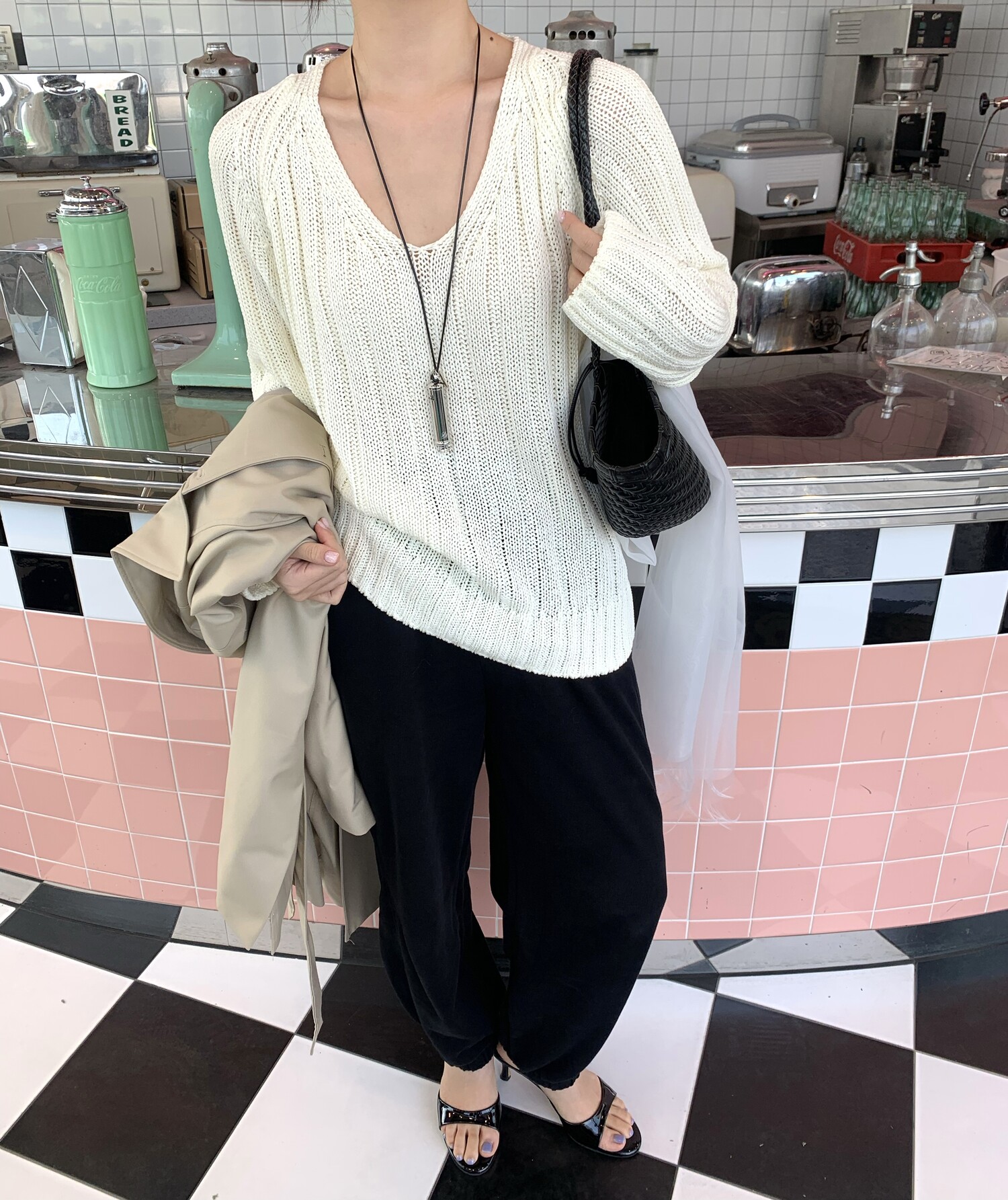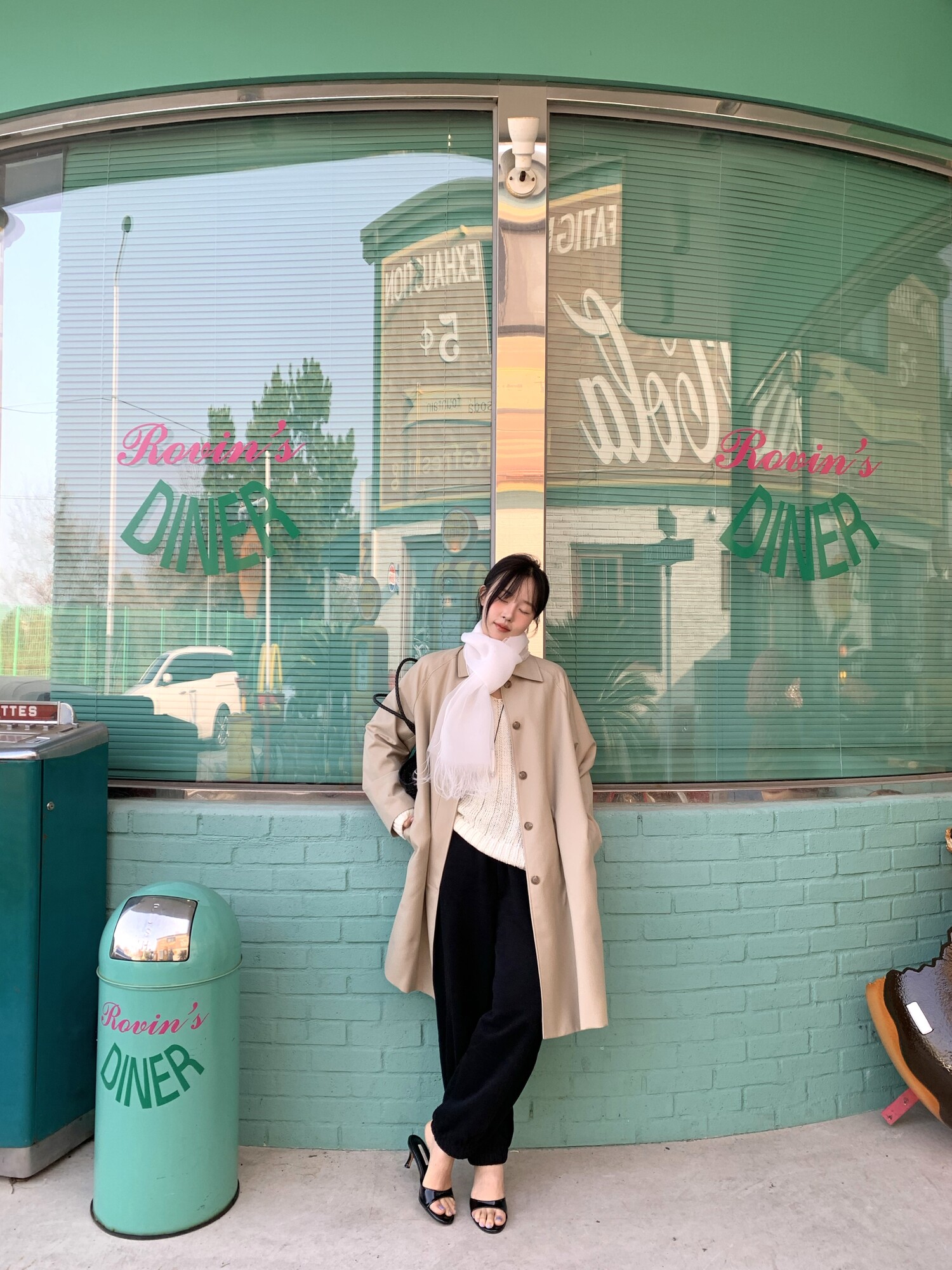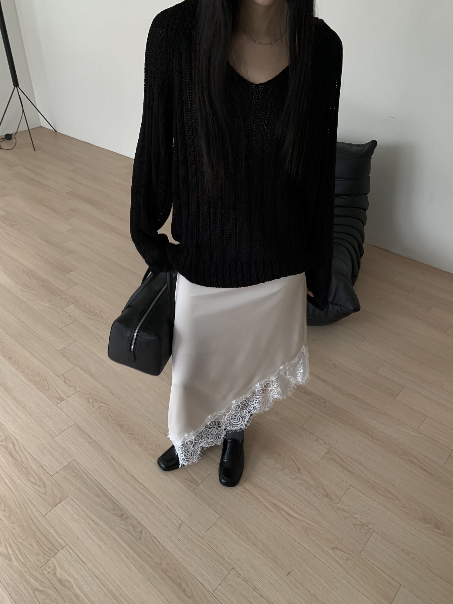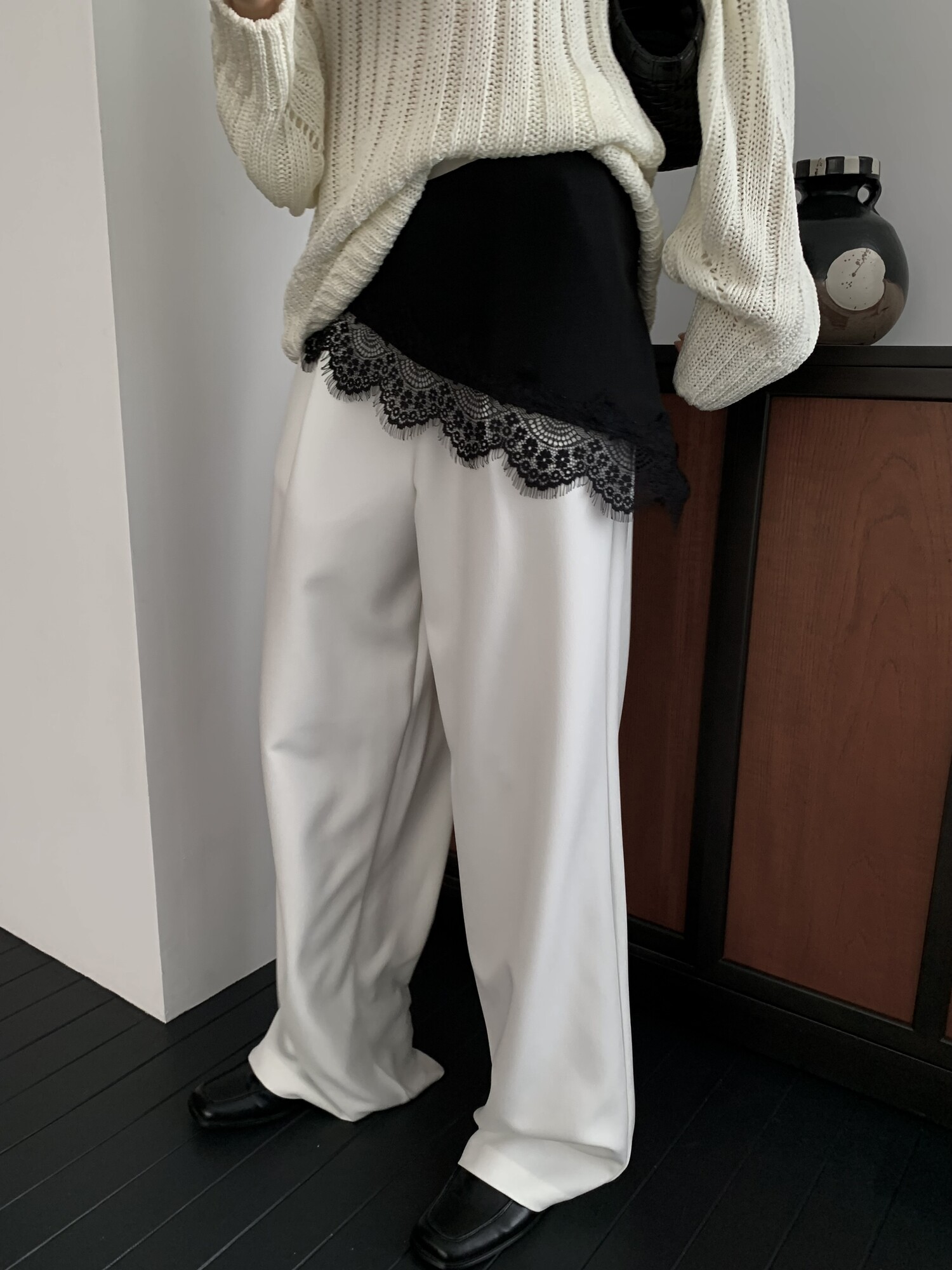 -툭 떨어지는 두께감 있는 소재&어깨 레글런으로 여리하고 청순한 무드 연출