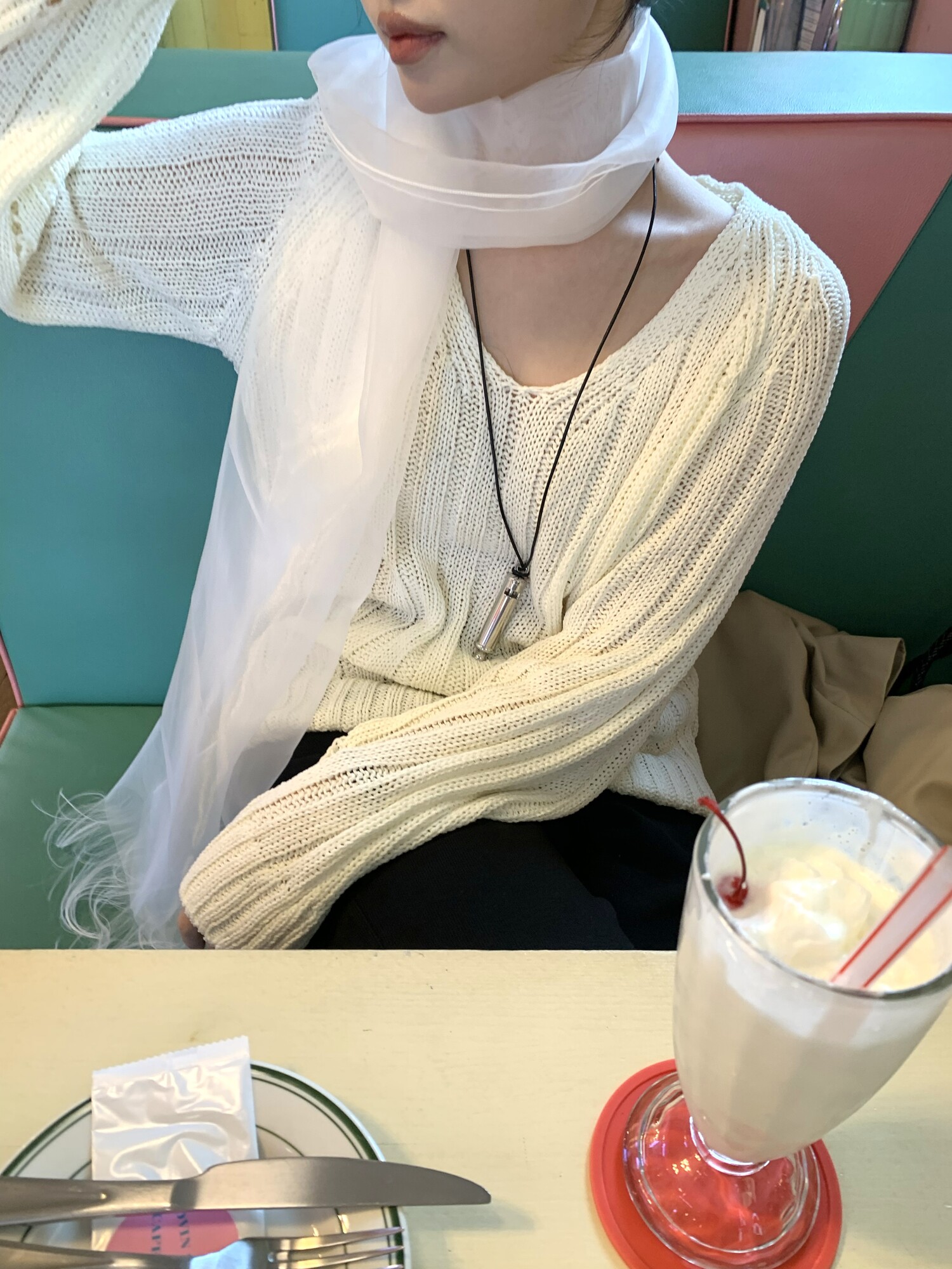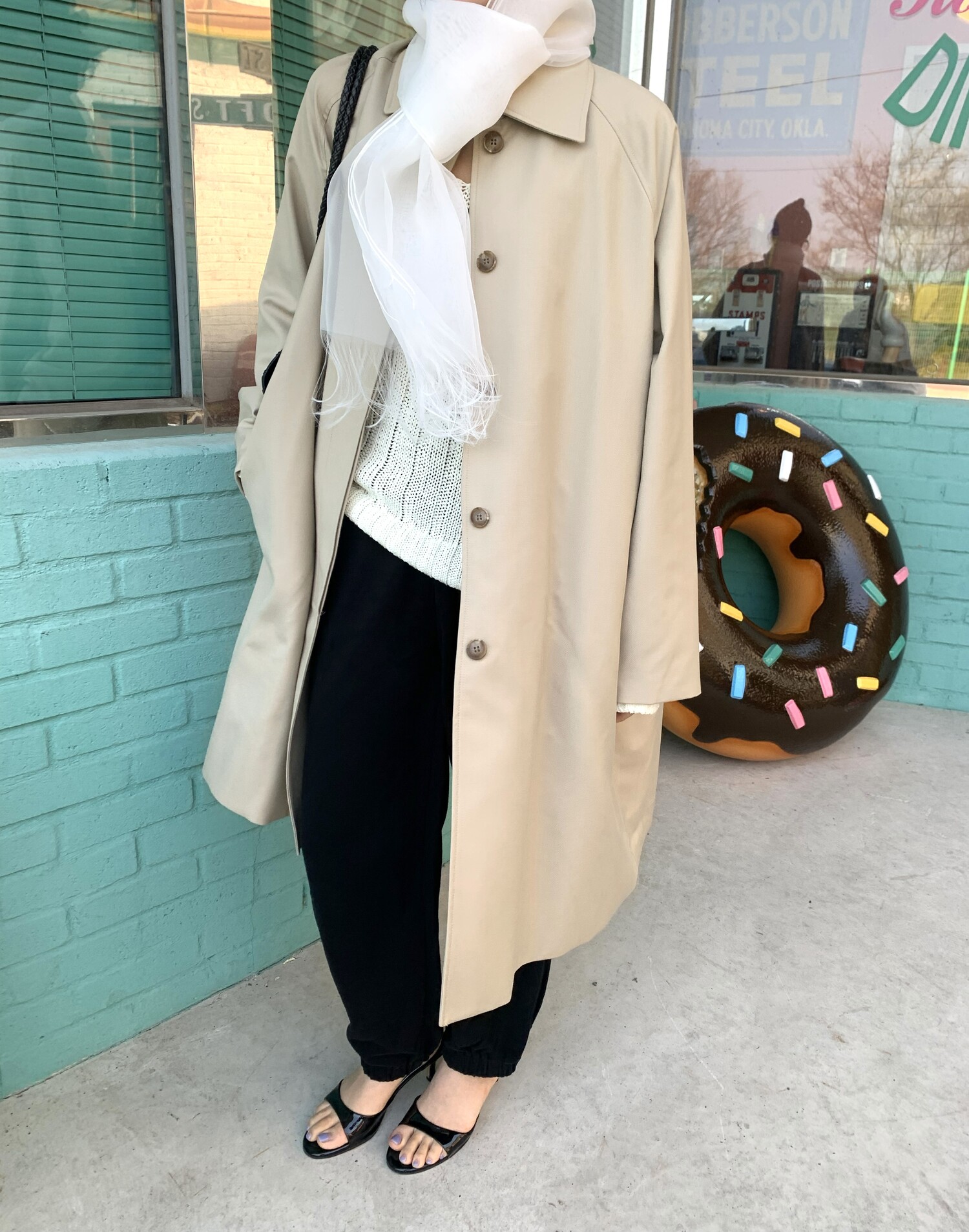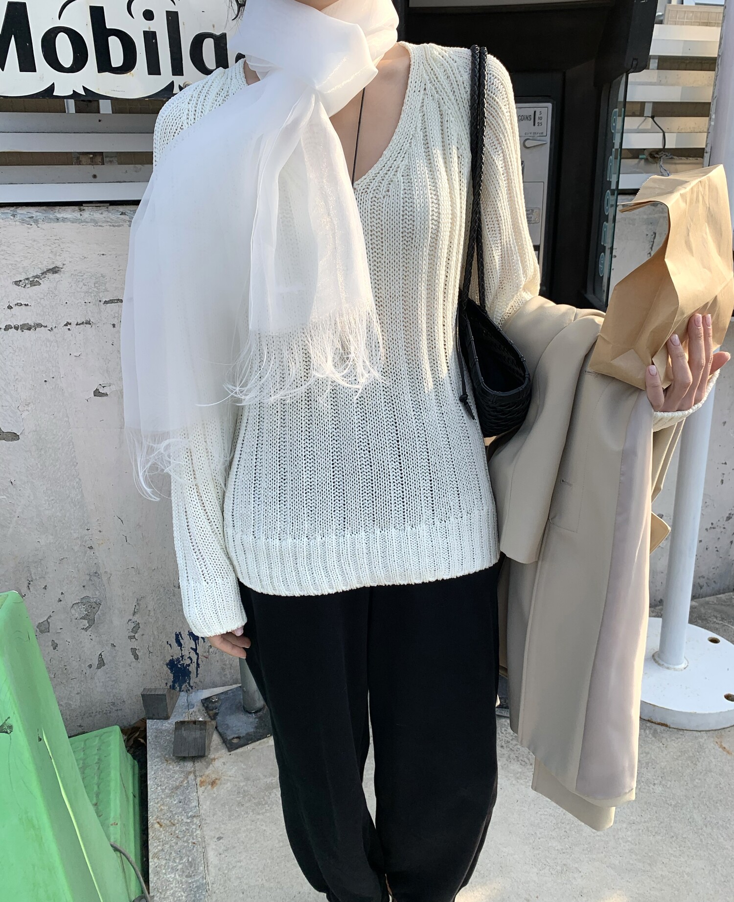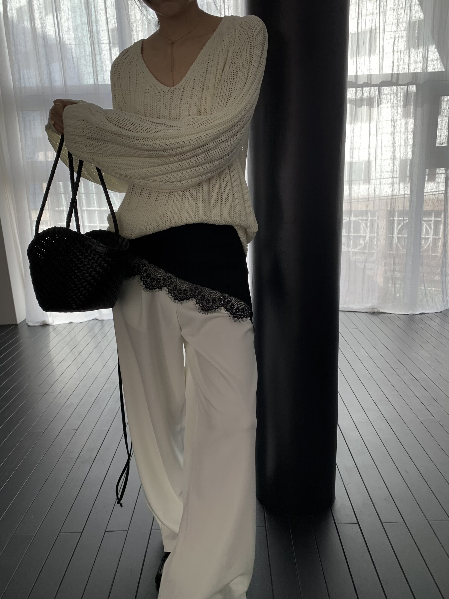 -툭 떨어지는 두께감 있는 소재&어깨 레글런으로 여리하고 청순한 무드 연출