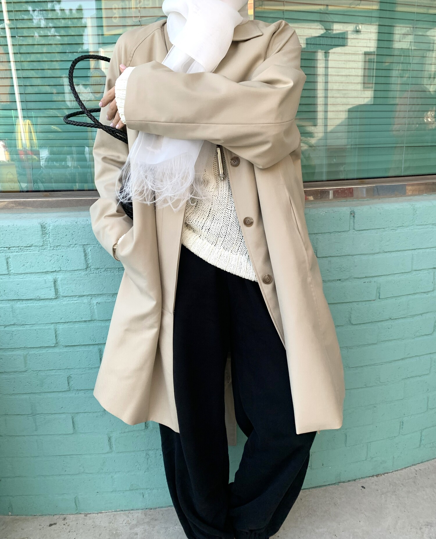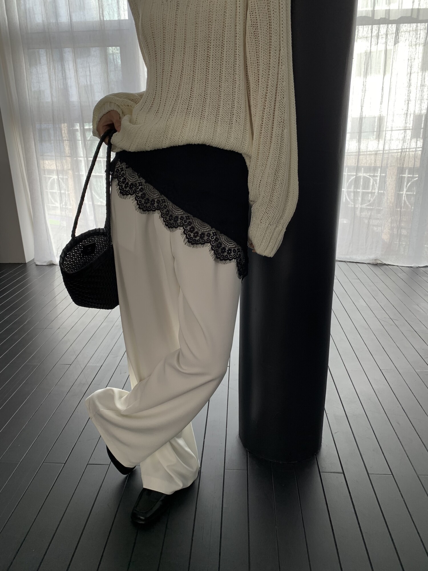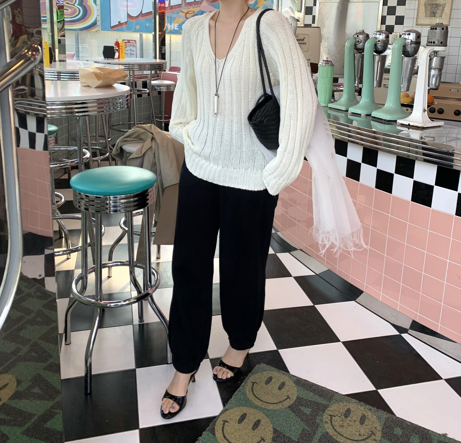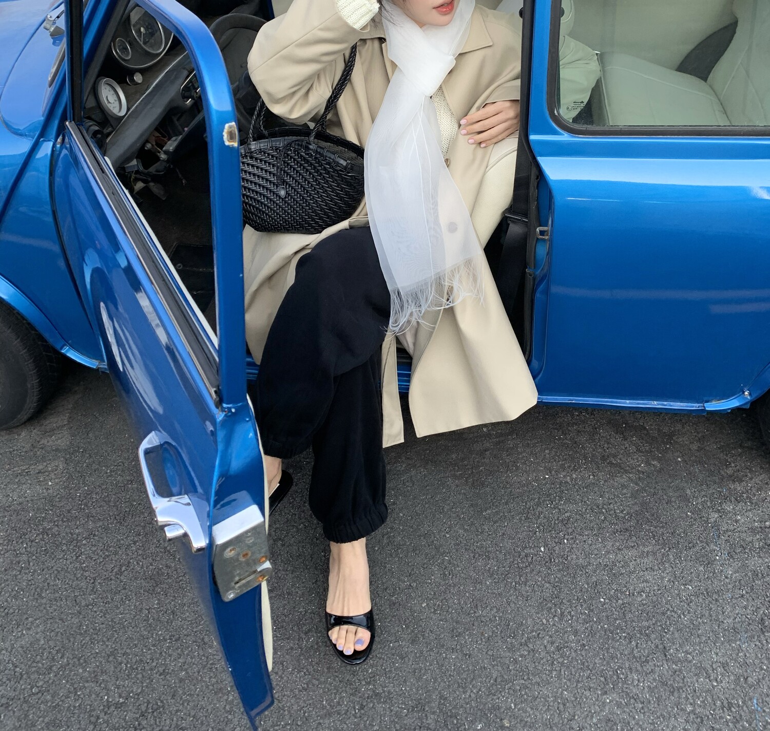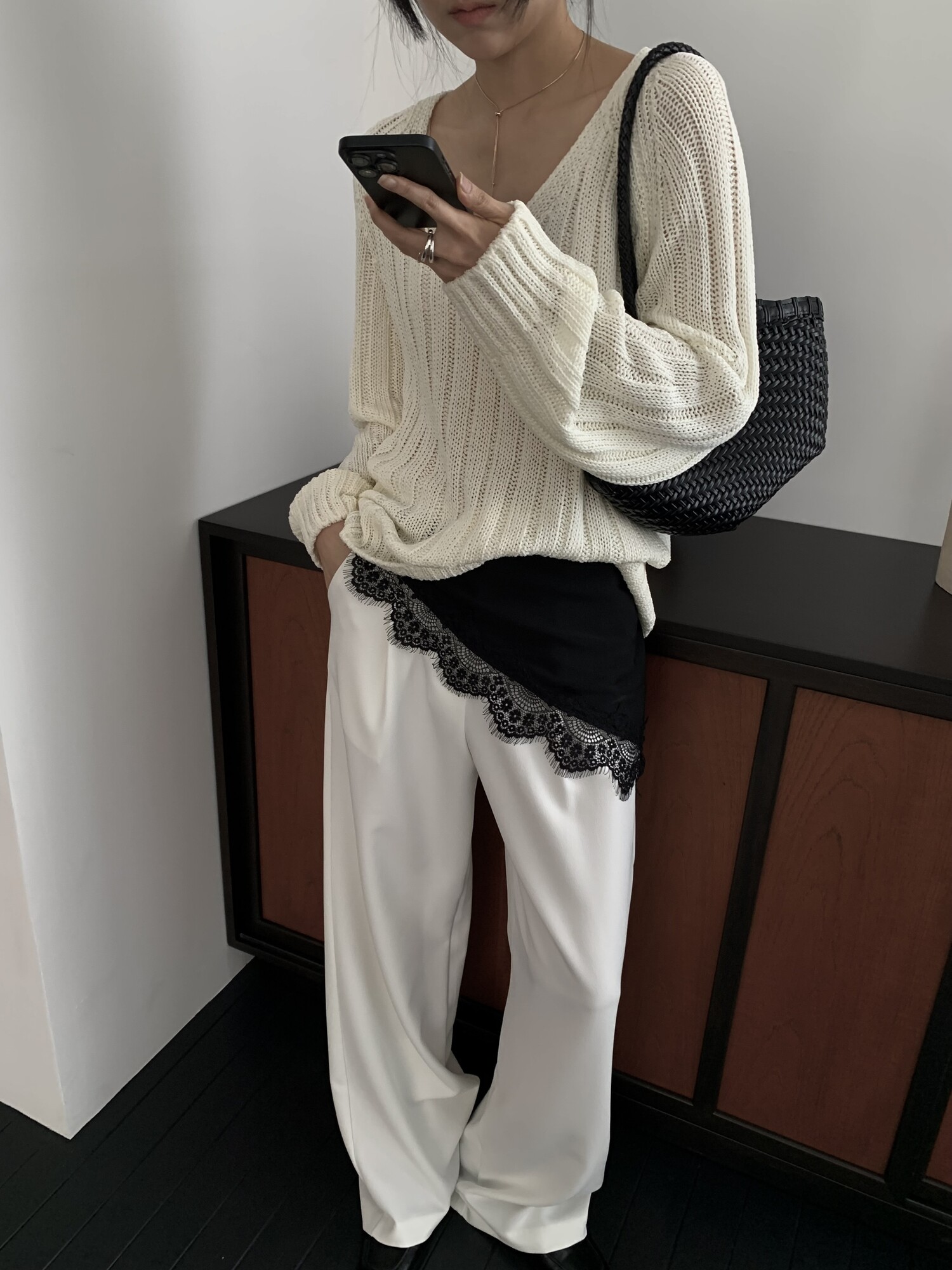 -툭 떨어지는 두께감 있는 소재&어깨 레글런으로 여리하고 청순한 무드 연출