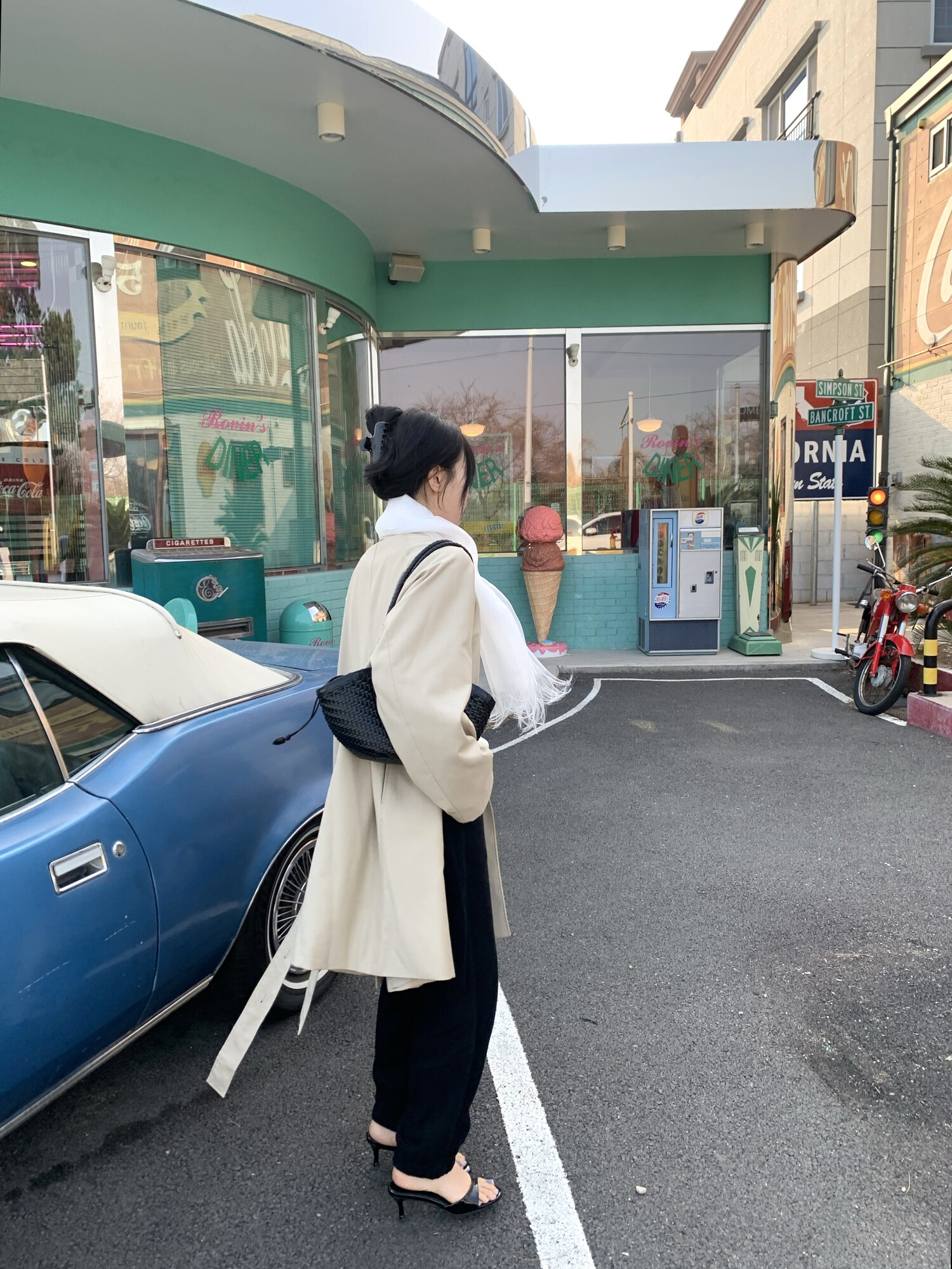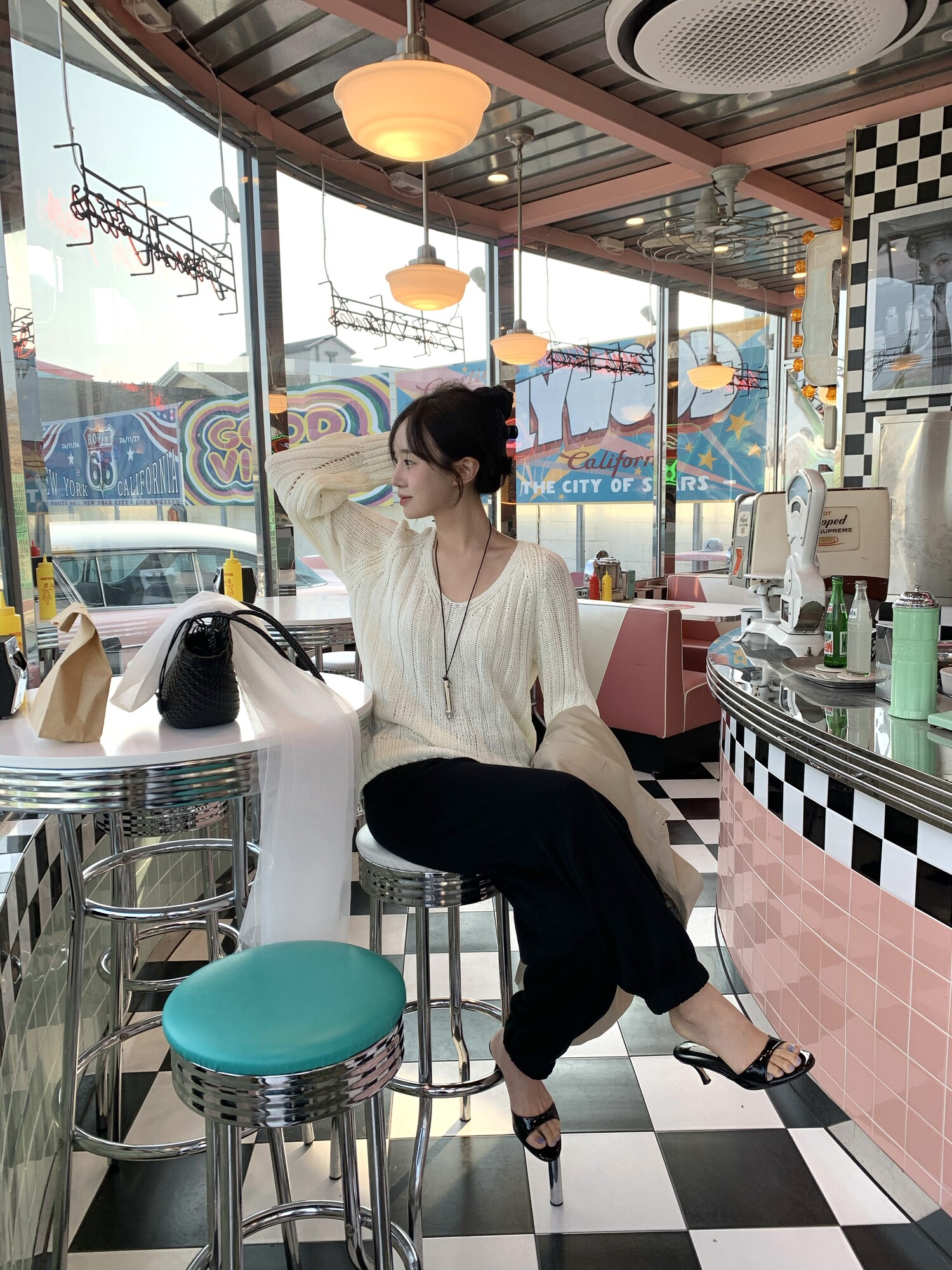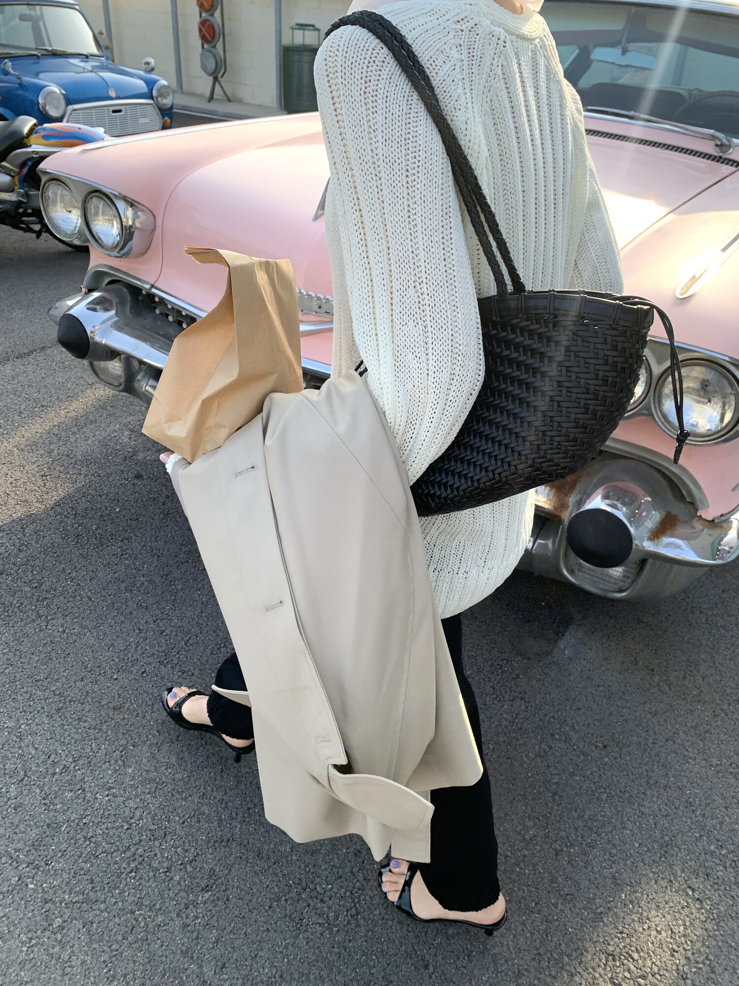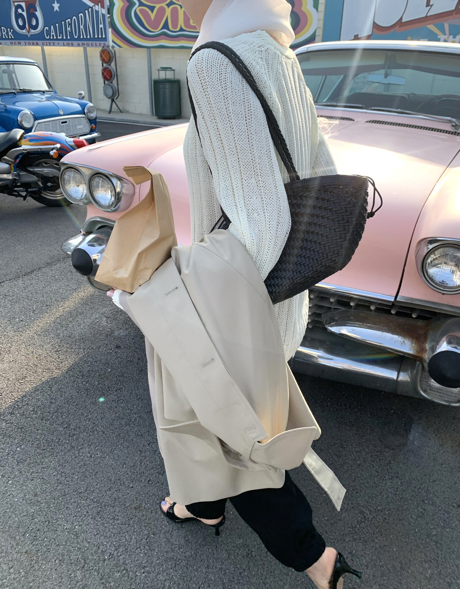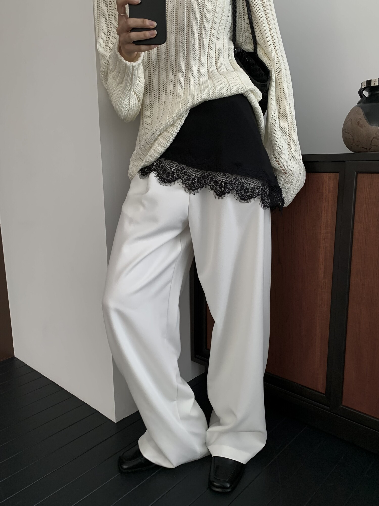 -툭 떨어지는 두께감 있는 소재&어깨 레글런으로 여리하고 청순한 무드 연출