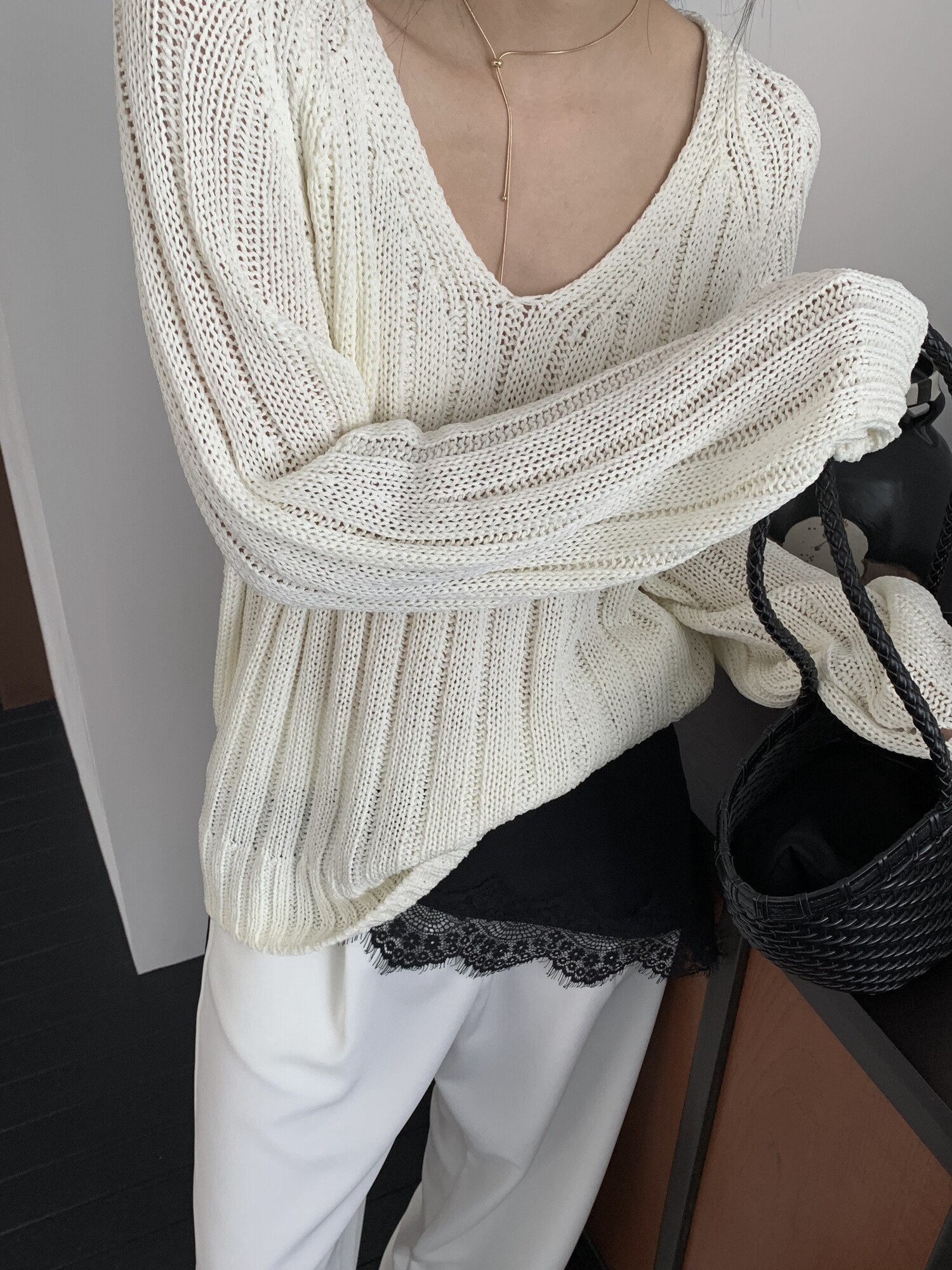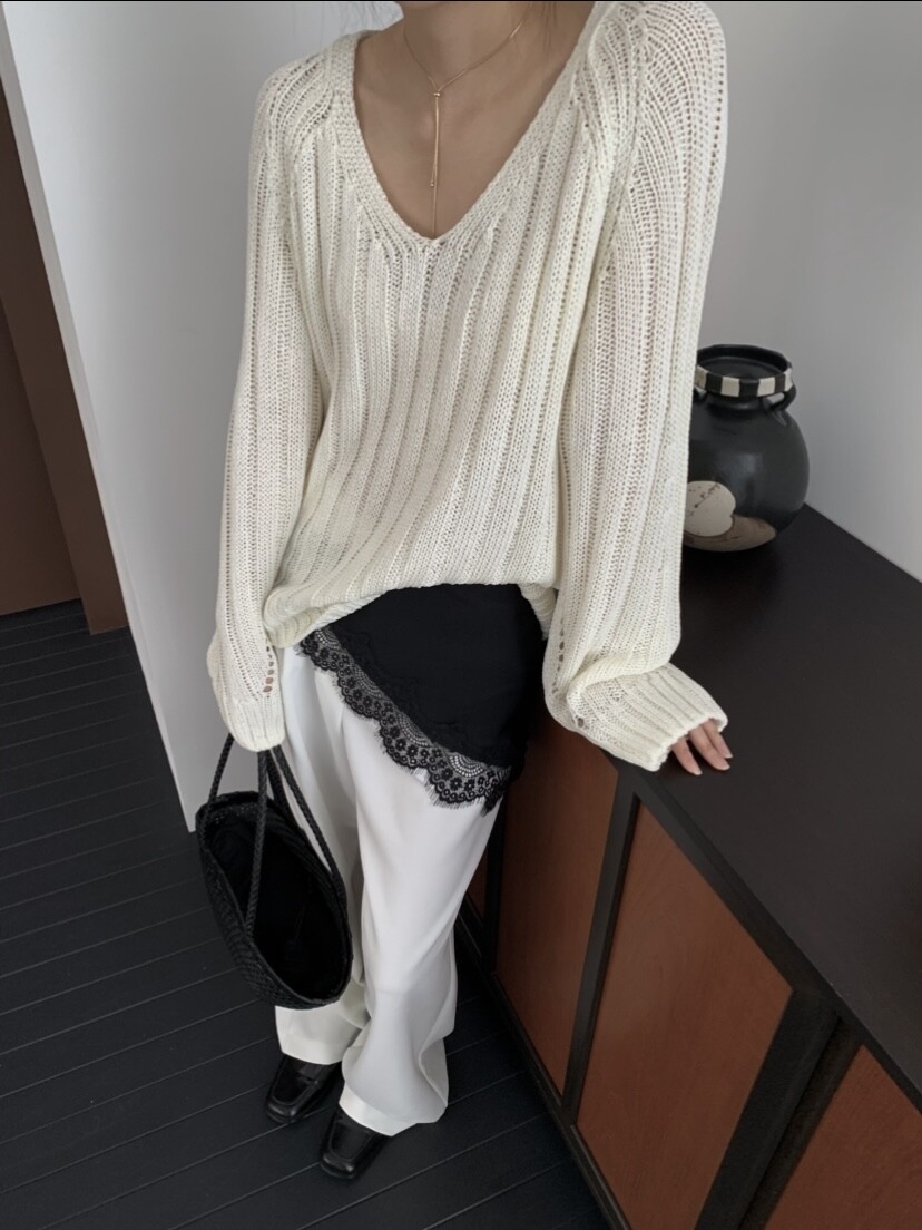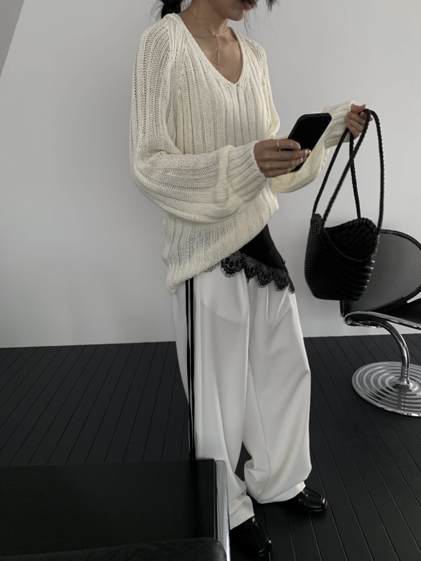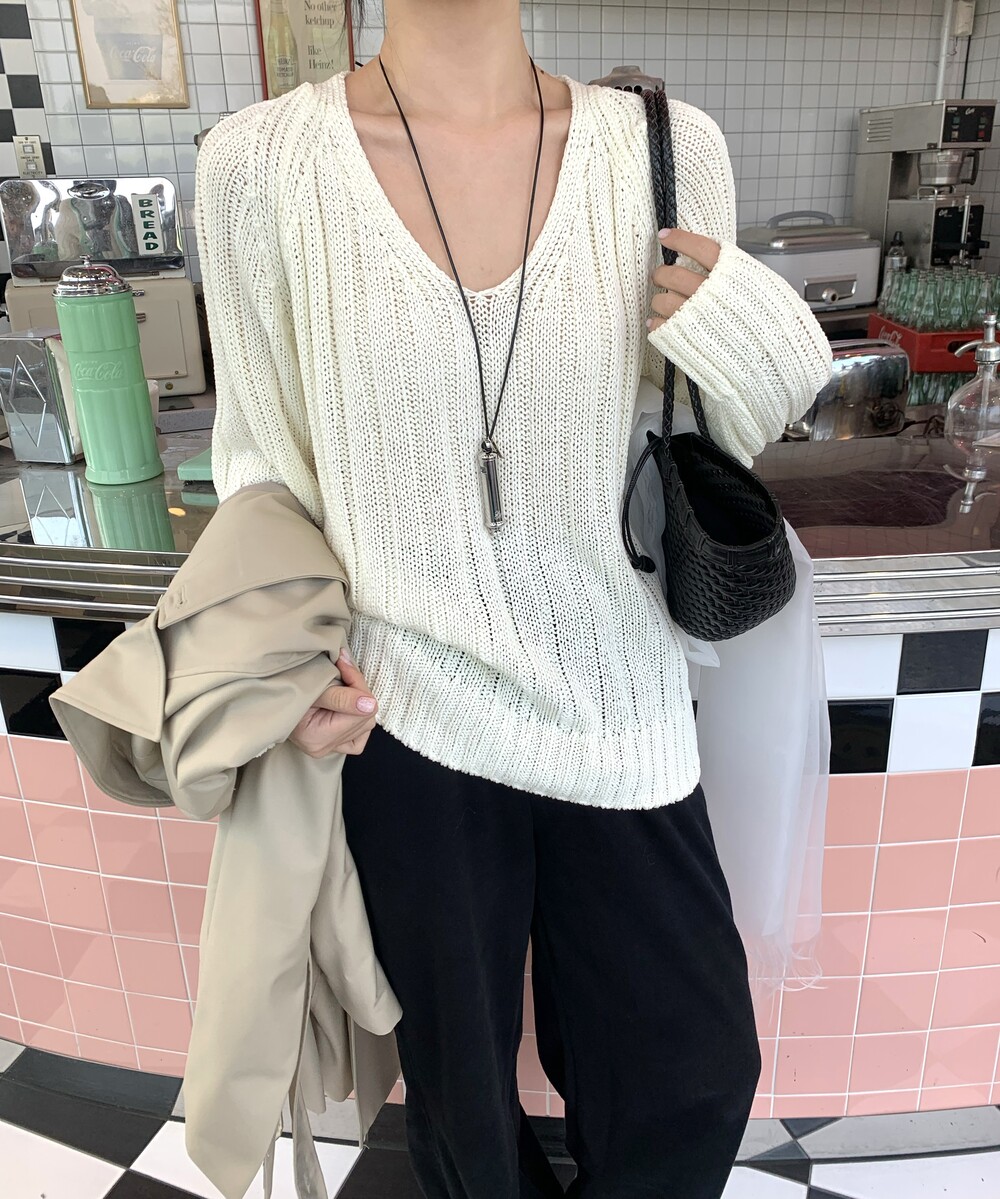 -고슬고슬 땀에 강하며 통풍이 잘되는 굵은 짜임의 소재로 초여름까지 착용하기 좋은 니트