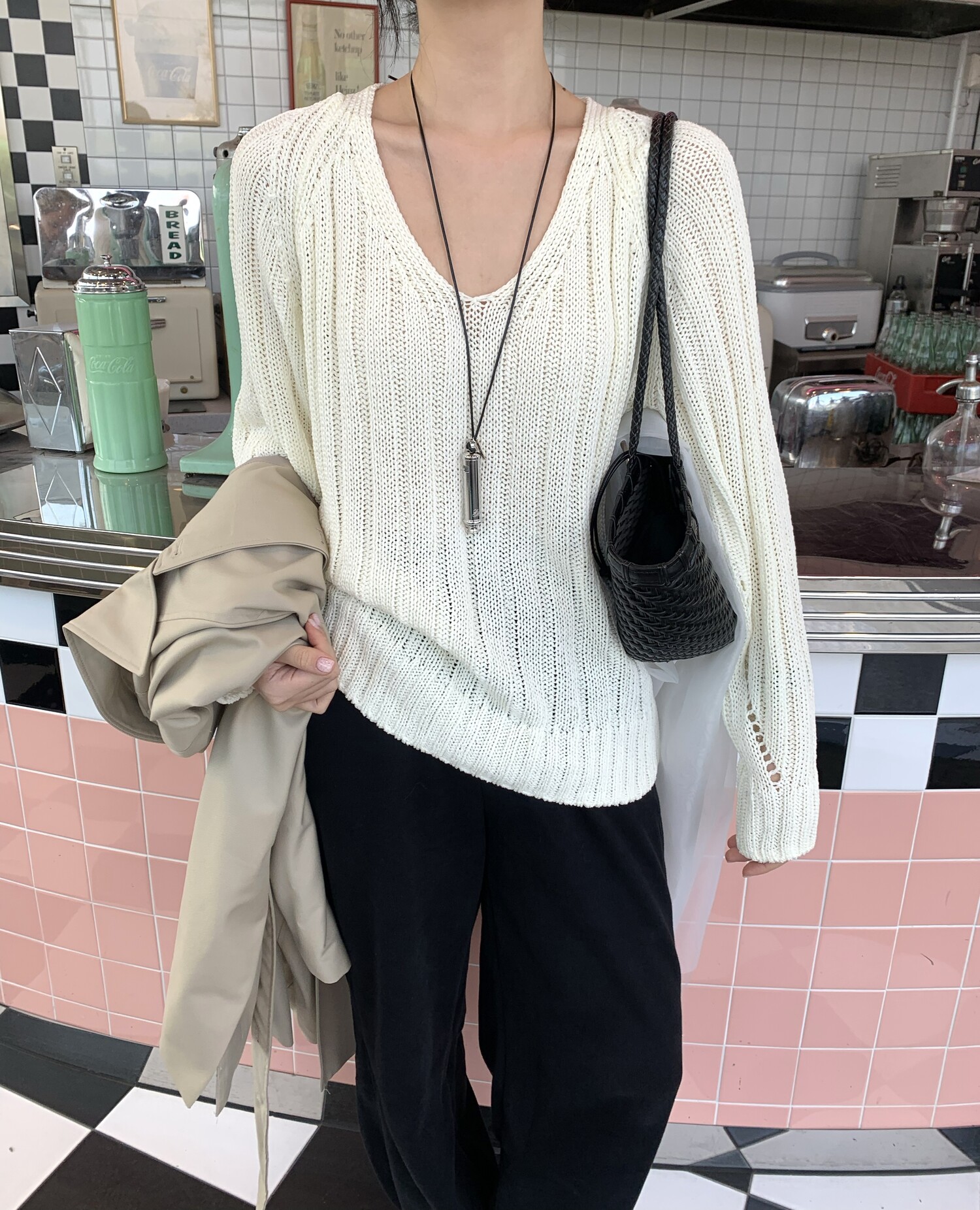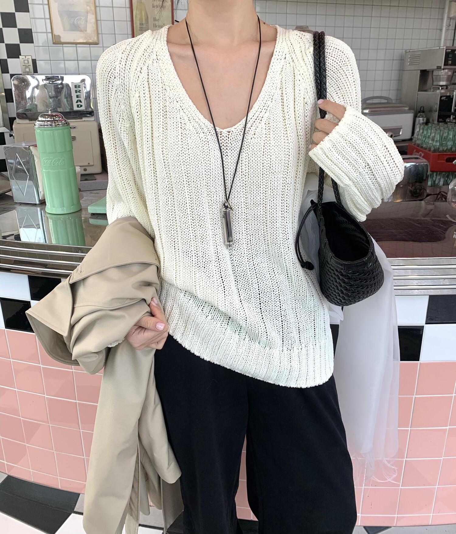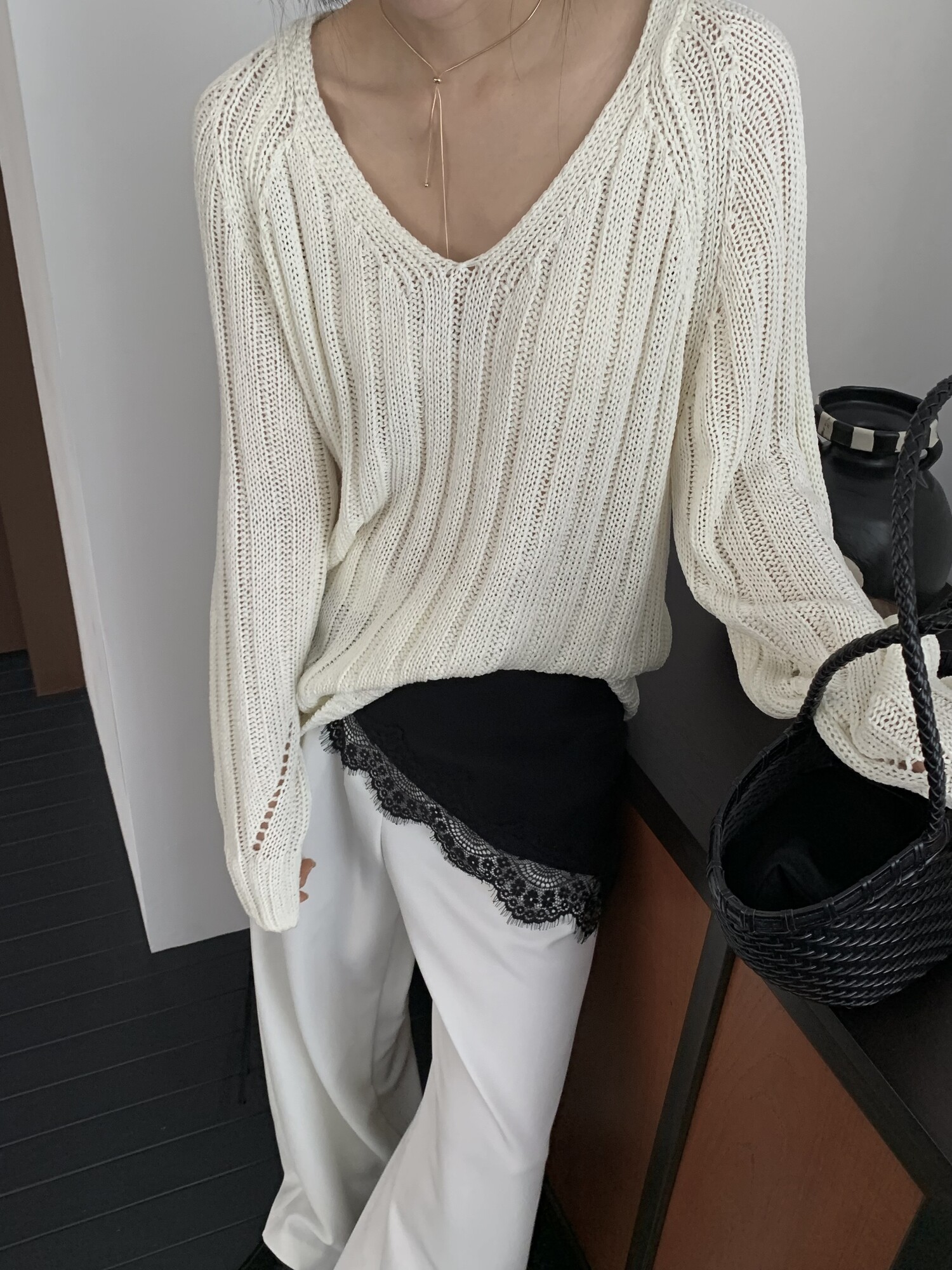 -고슬고슬 땀에 강하며 통풍이 잘되는 굵은 짜임의 소재로 초여름까지 착용하기 좋은 니트