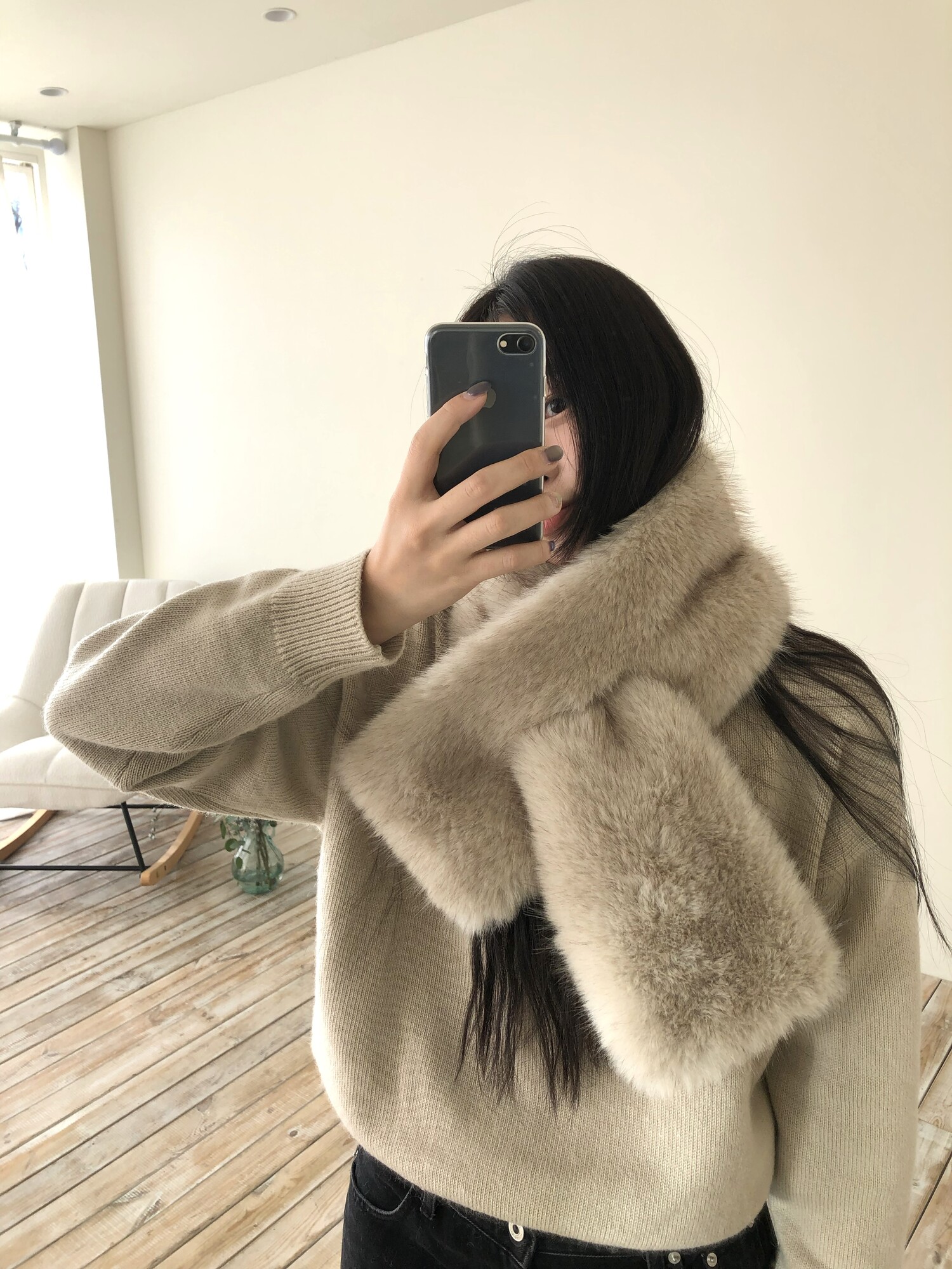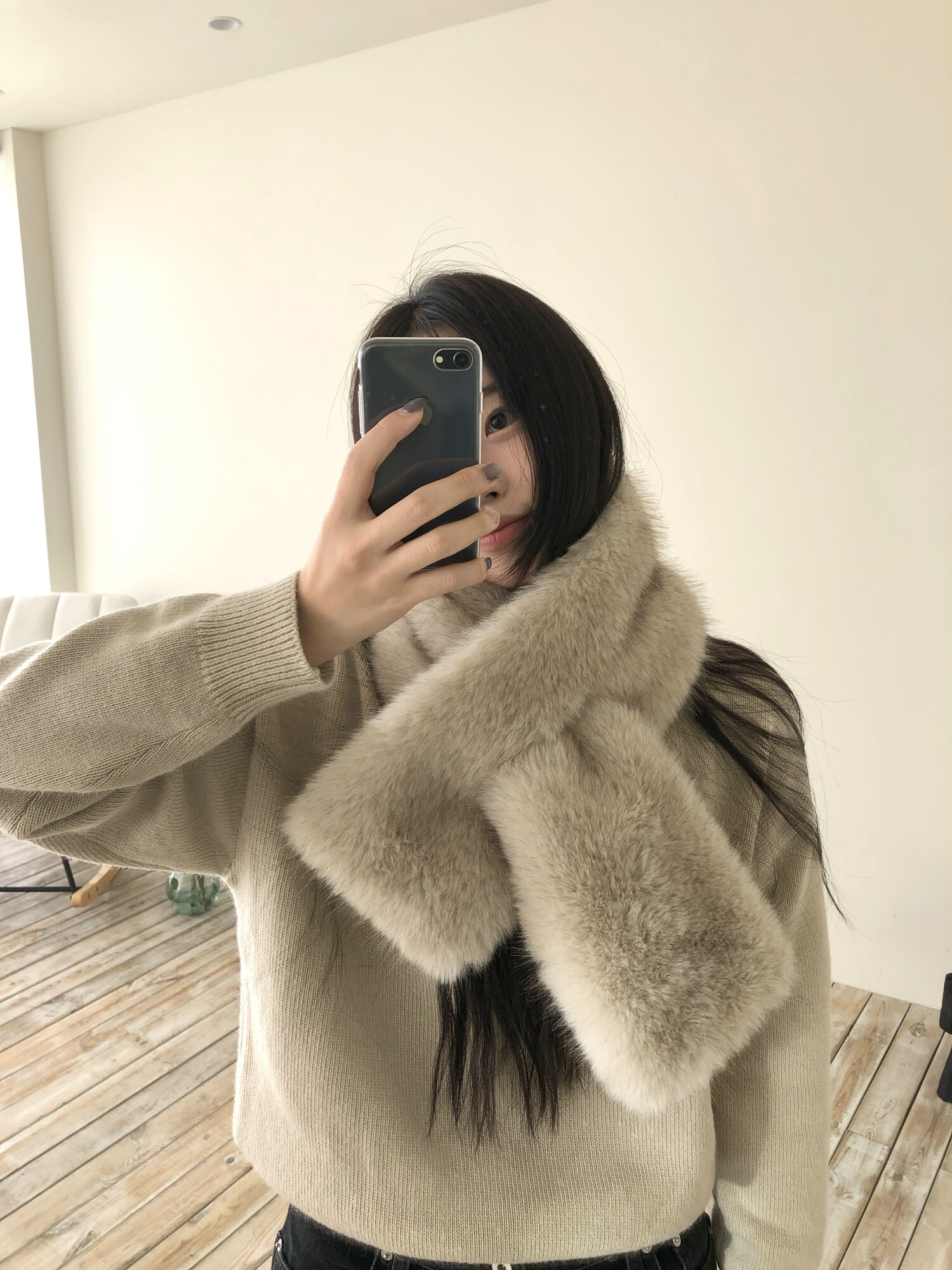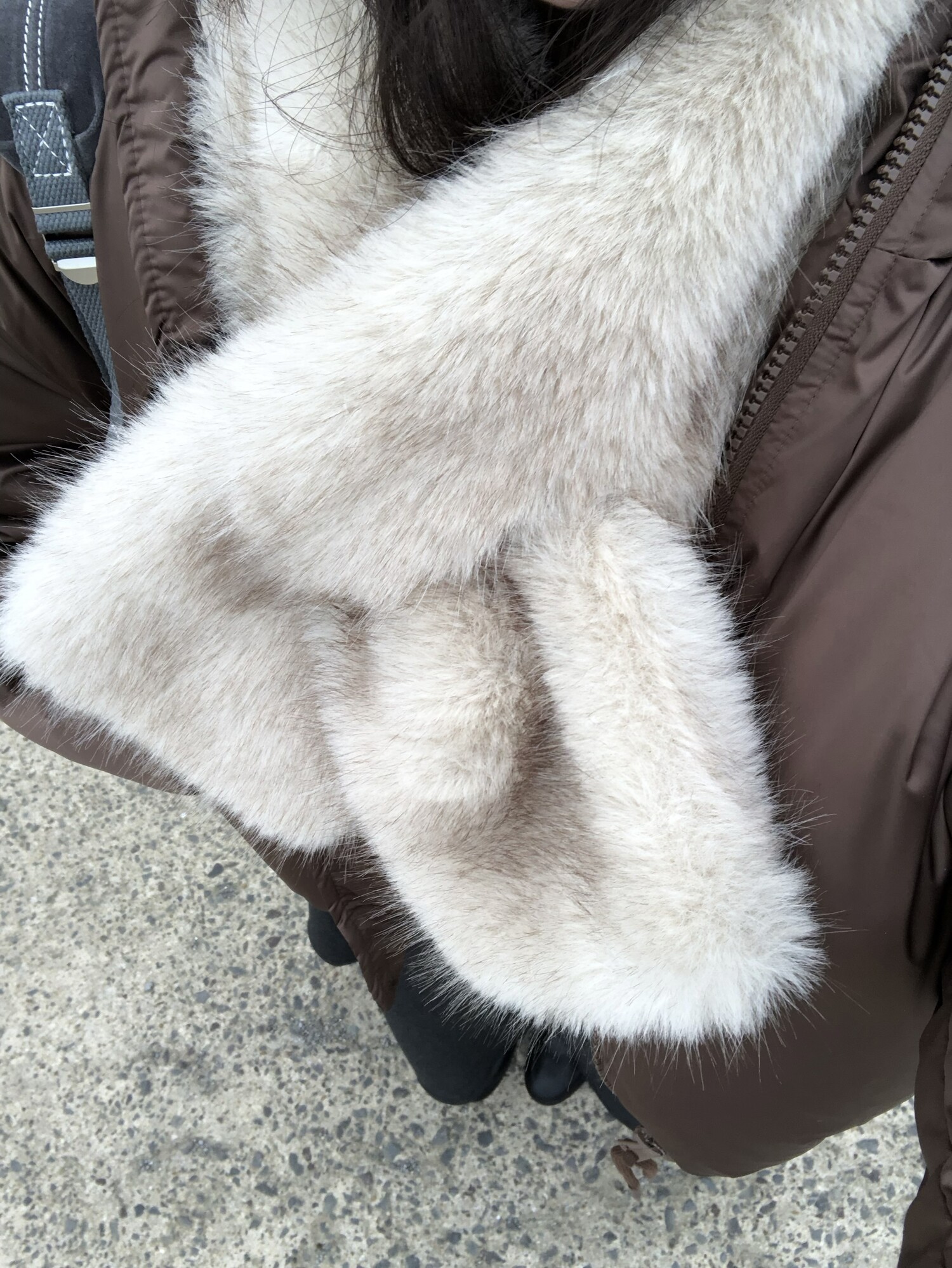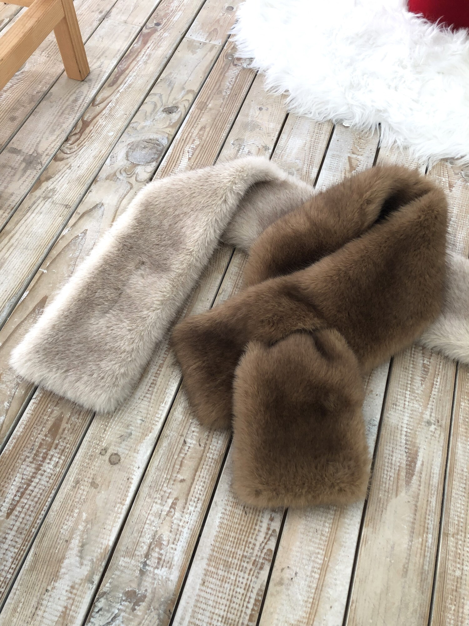 양면 볼륨감이 우수하고 털빠짐 거의 없으며(새상품 특성상 초기에는 탈락된 퍼가 있어 살짝 털빠짐 있을 수 있어요.) 매우 부드럽고 따수운 인조 폭스퍼 머플러입니다.
