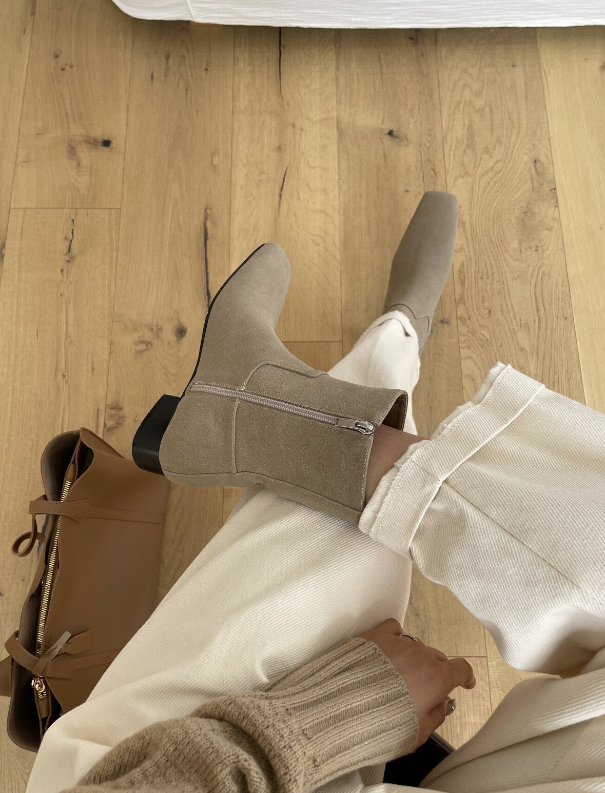 -길고 슬림하게 빠진 앞코가 멋스런 스웨이드 앵클 부츠