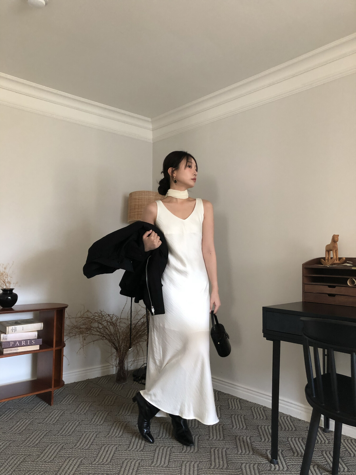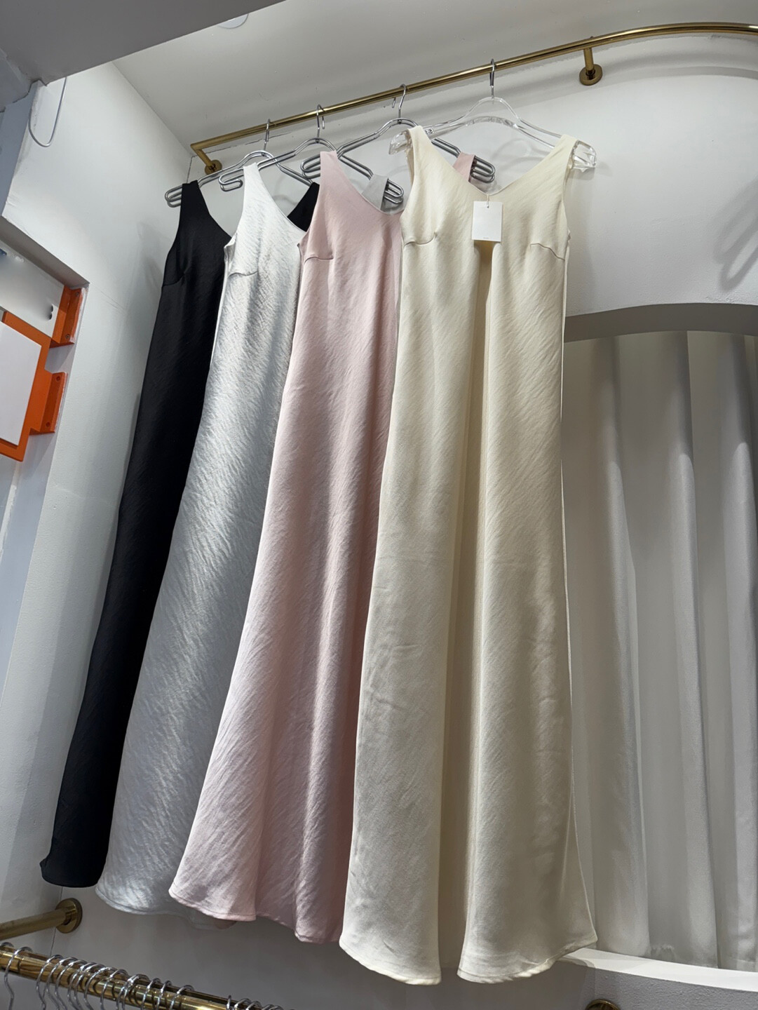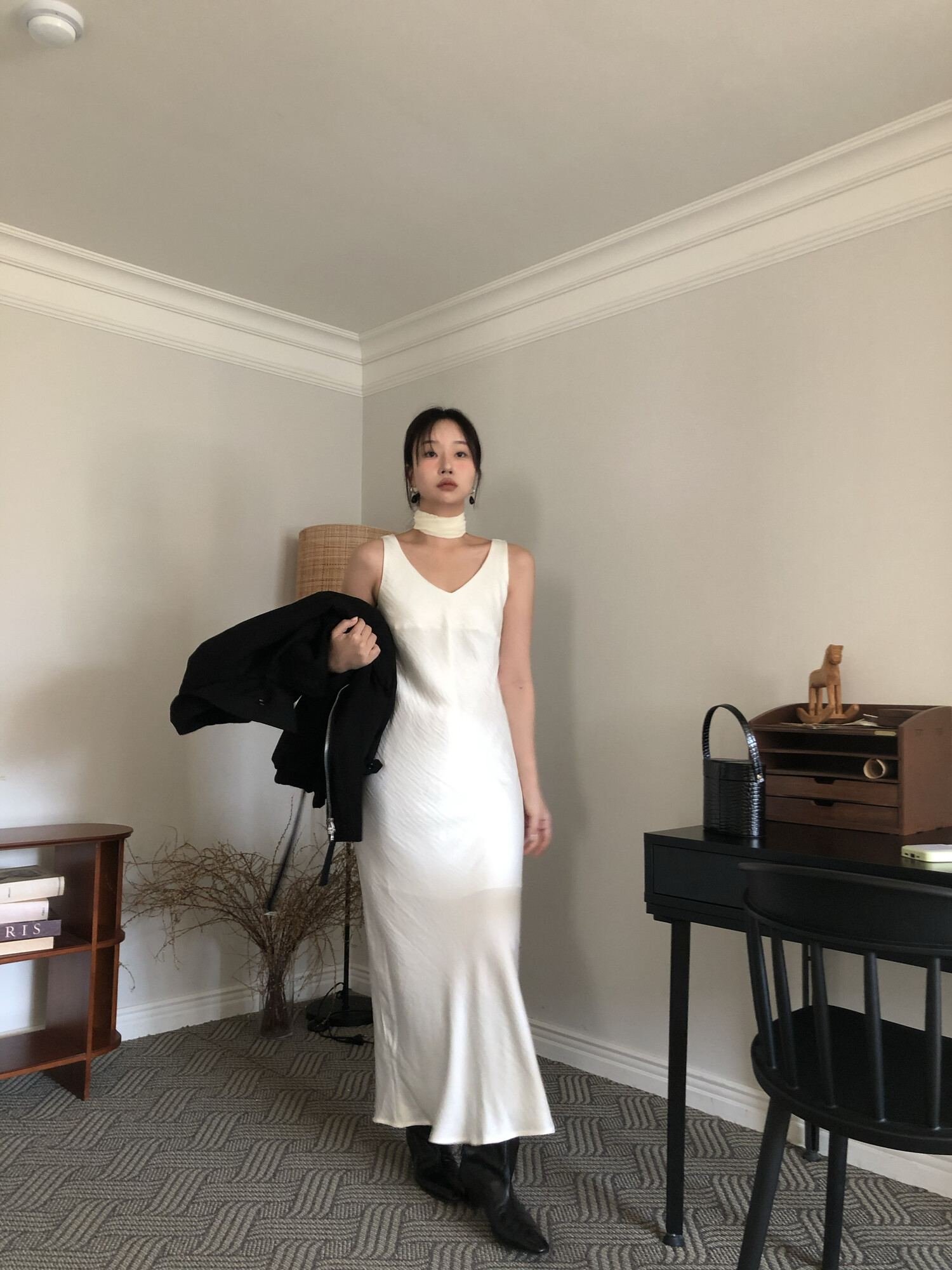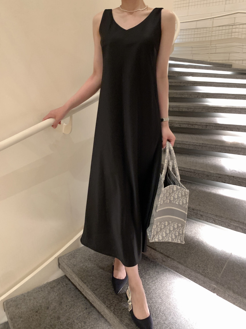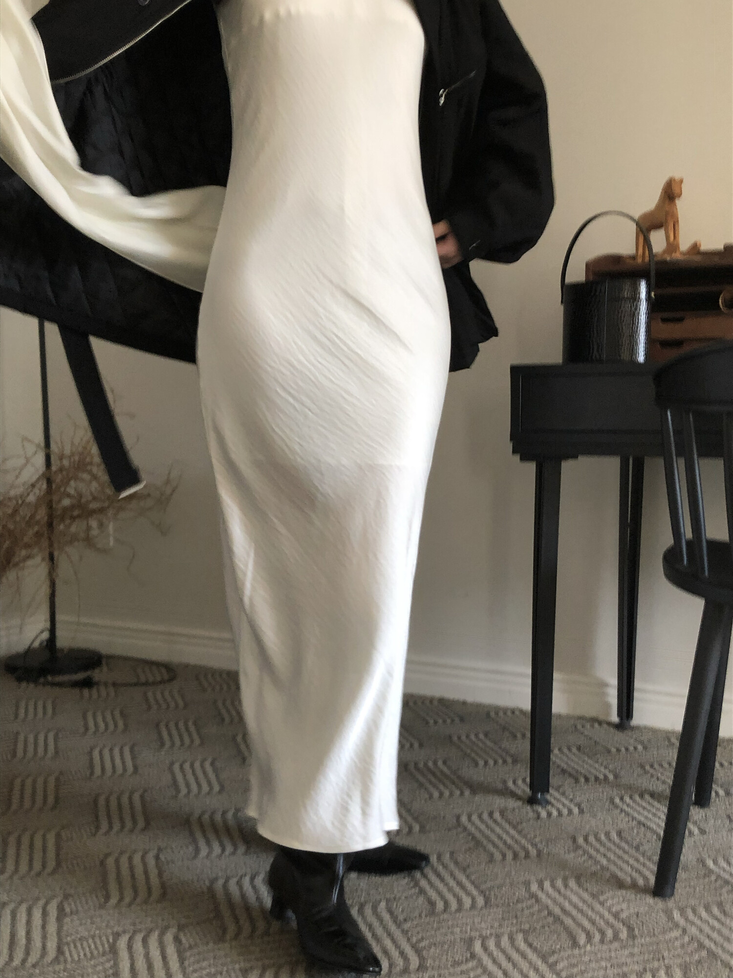 -고급스러우며 은은한 광택감의 새틴 원피스
