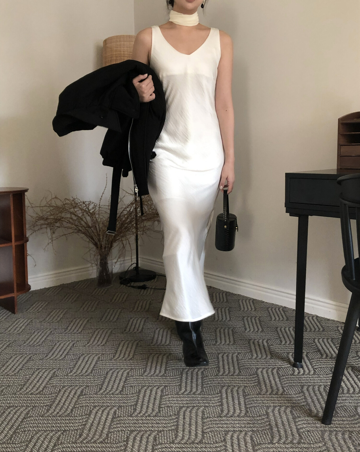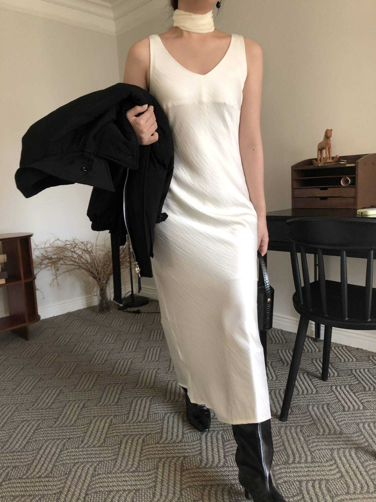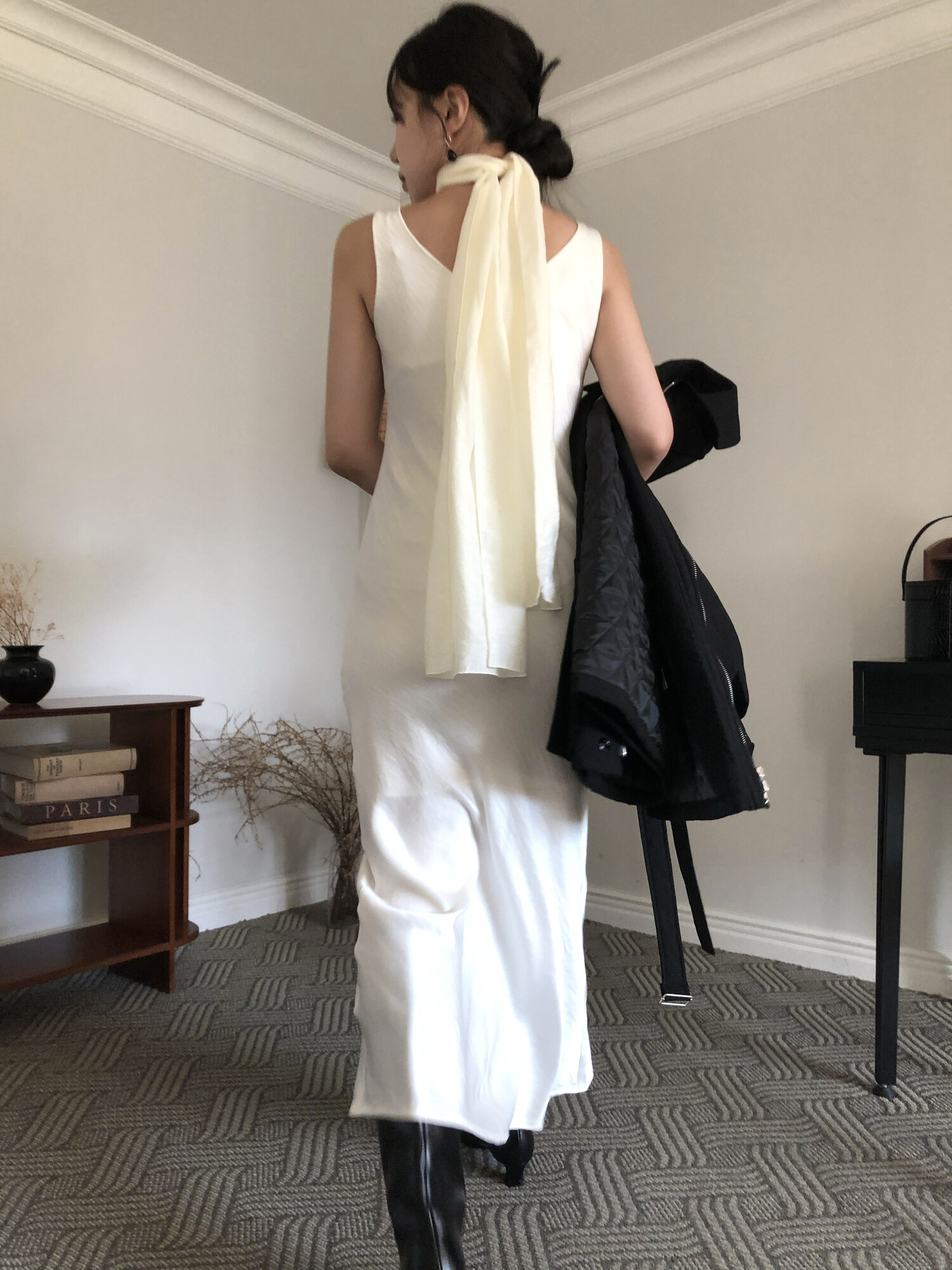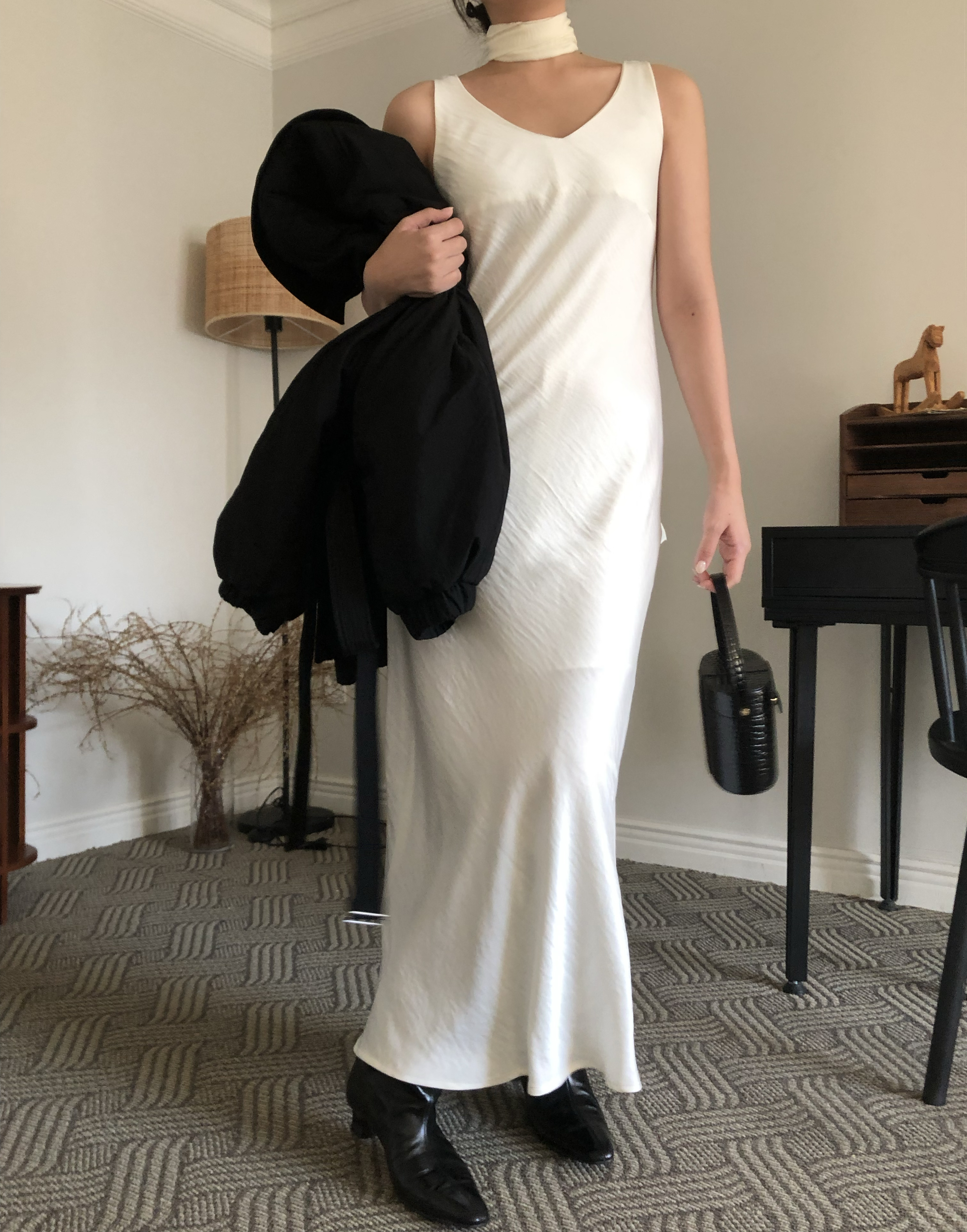 -고급스러우며 은은한 광택감의 새틴 원피스