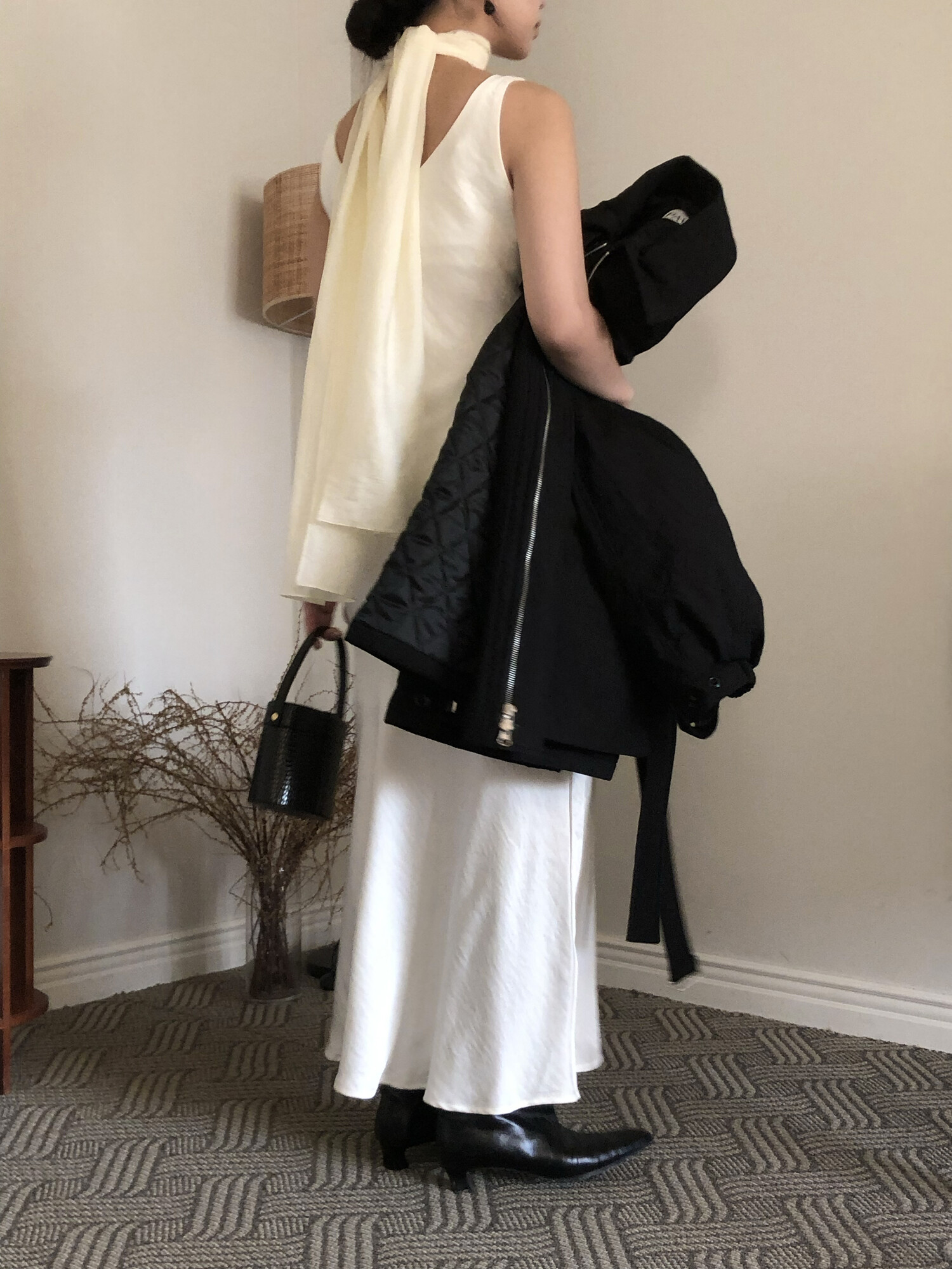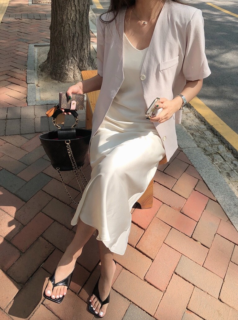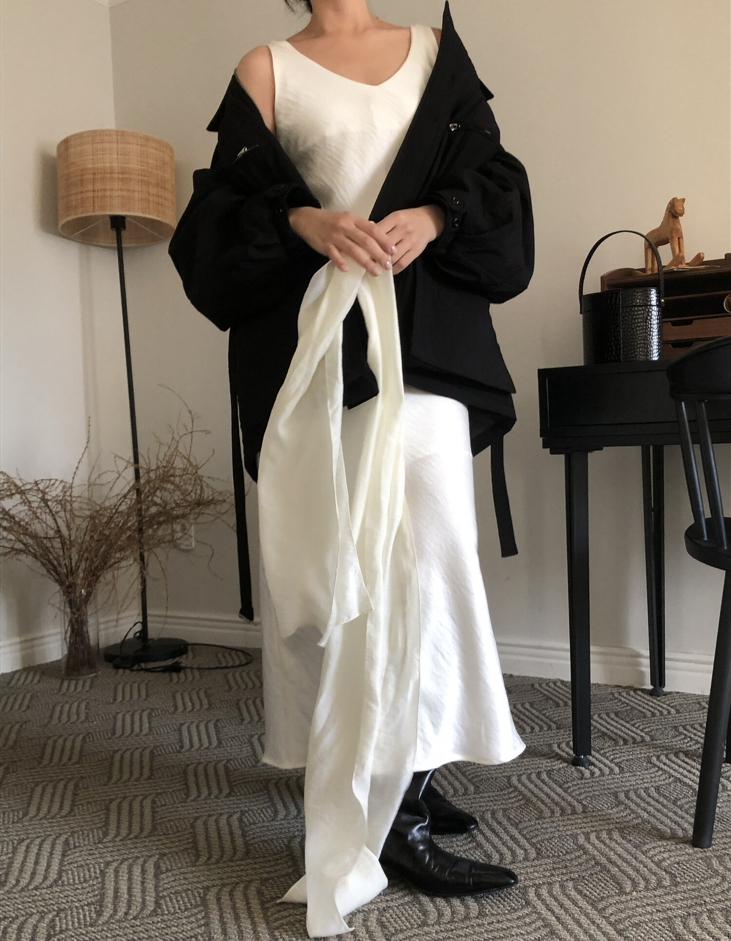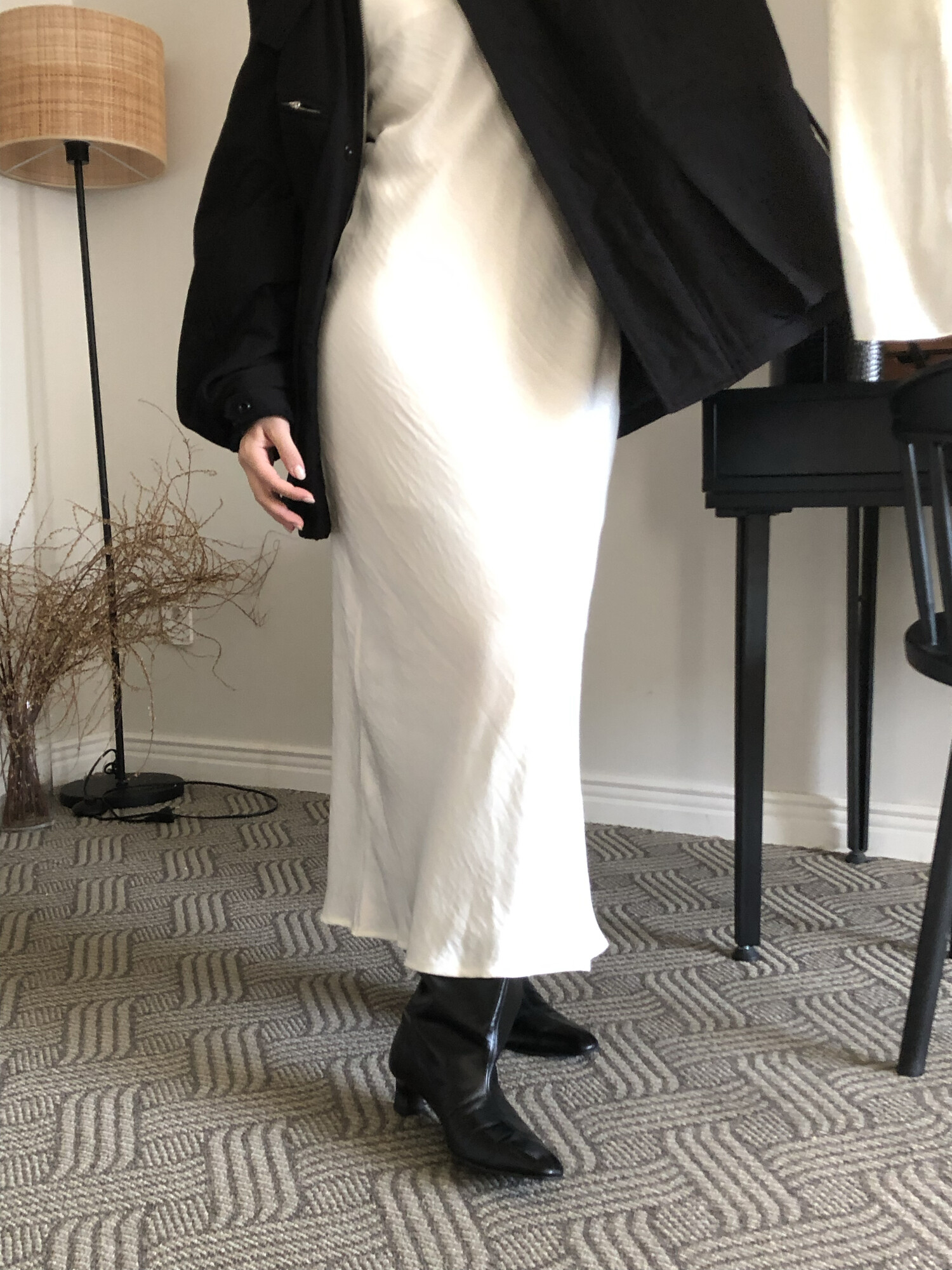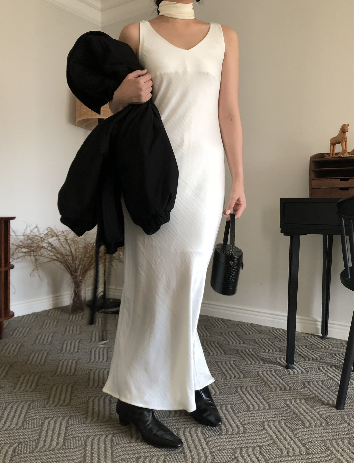 -고급스러우며 은은한 광택감의 새틴 원피스