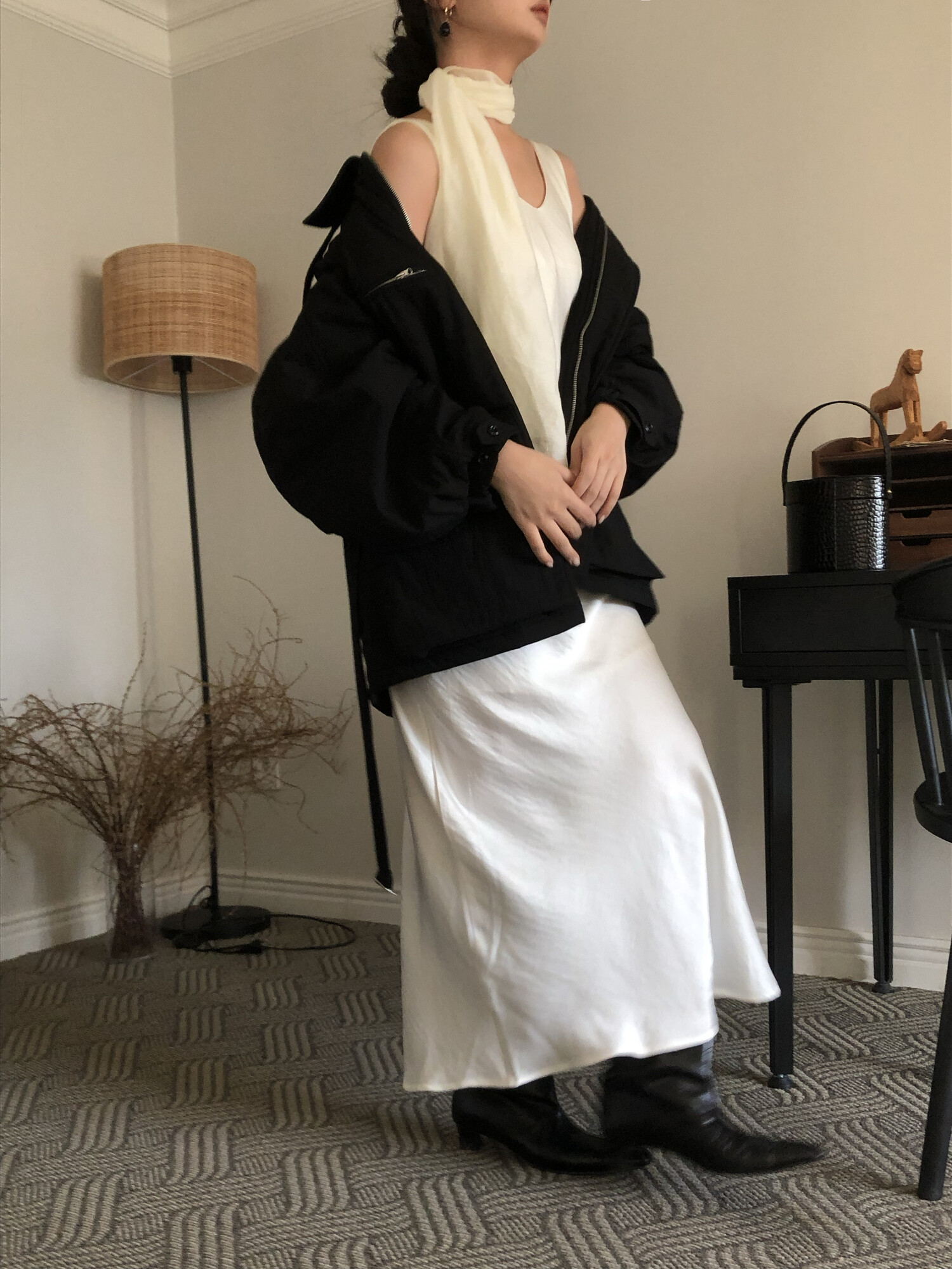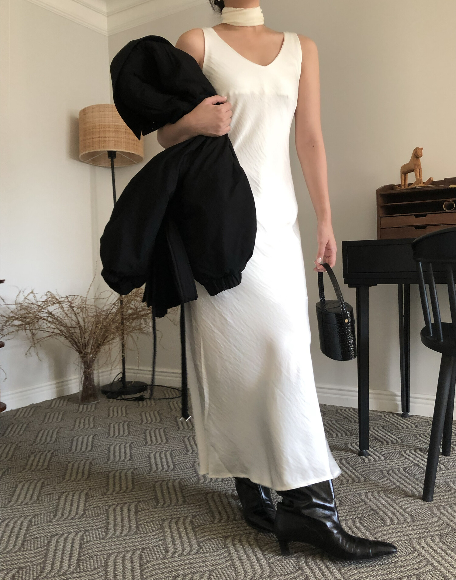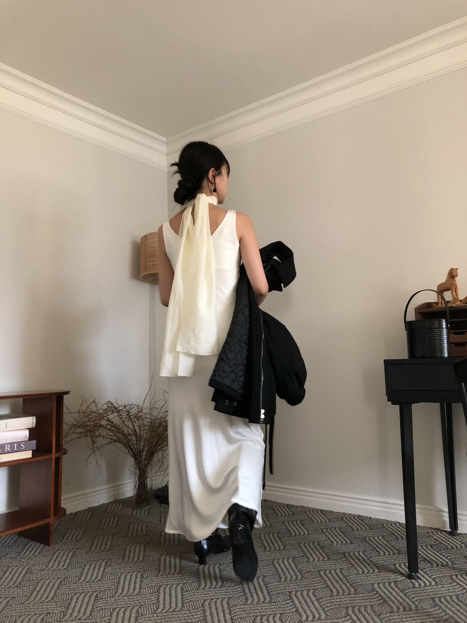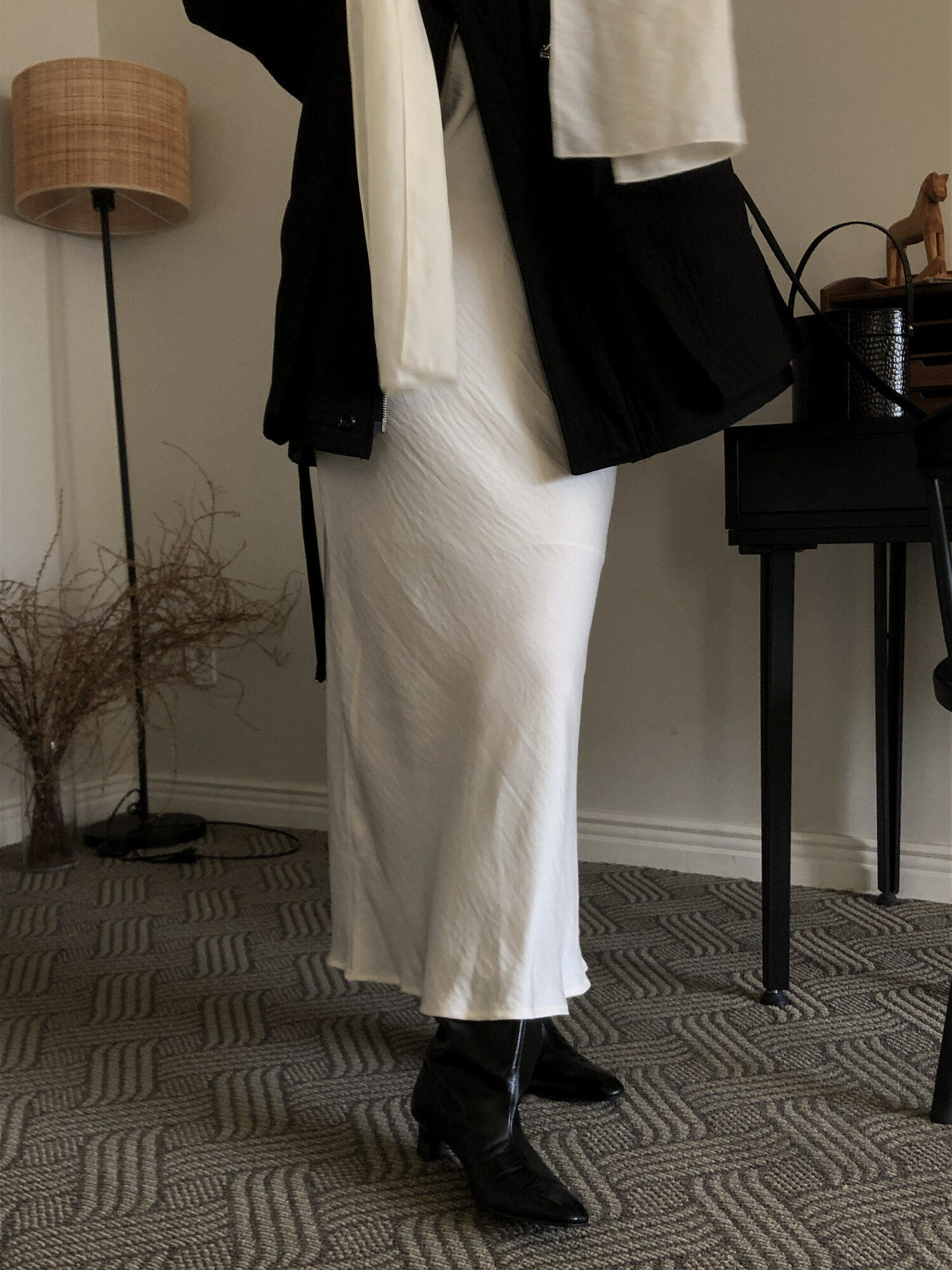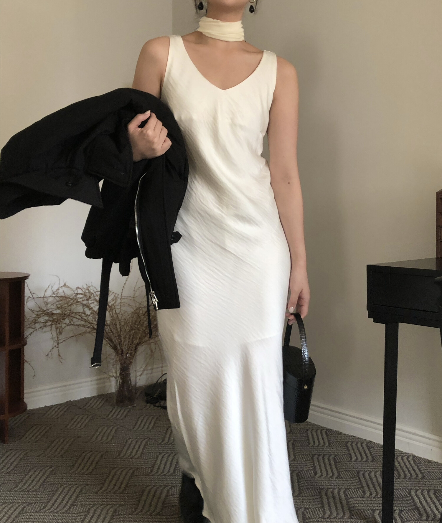 -고급스러우며 은은한 광택감의 새틴 원피스