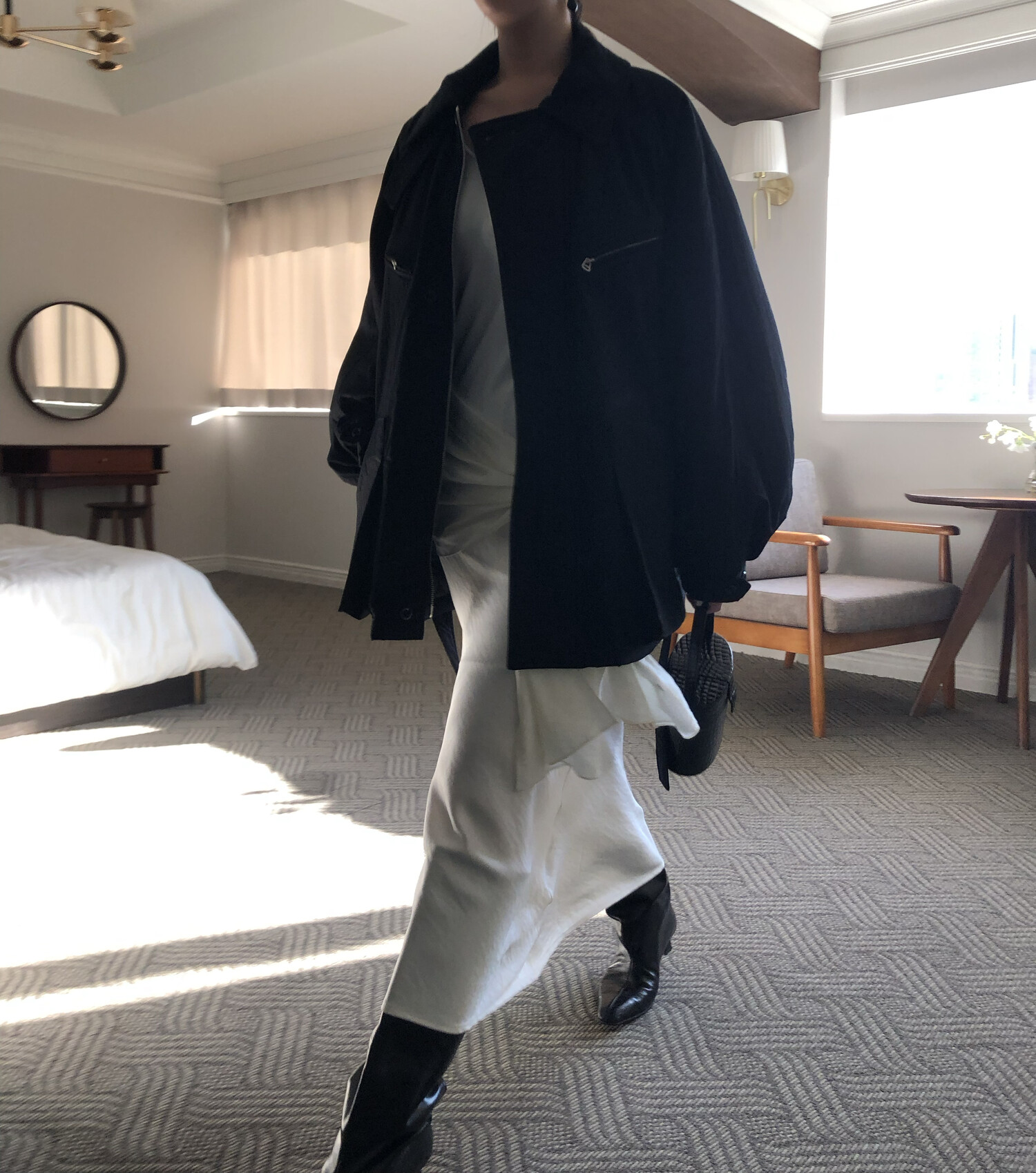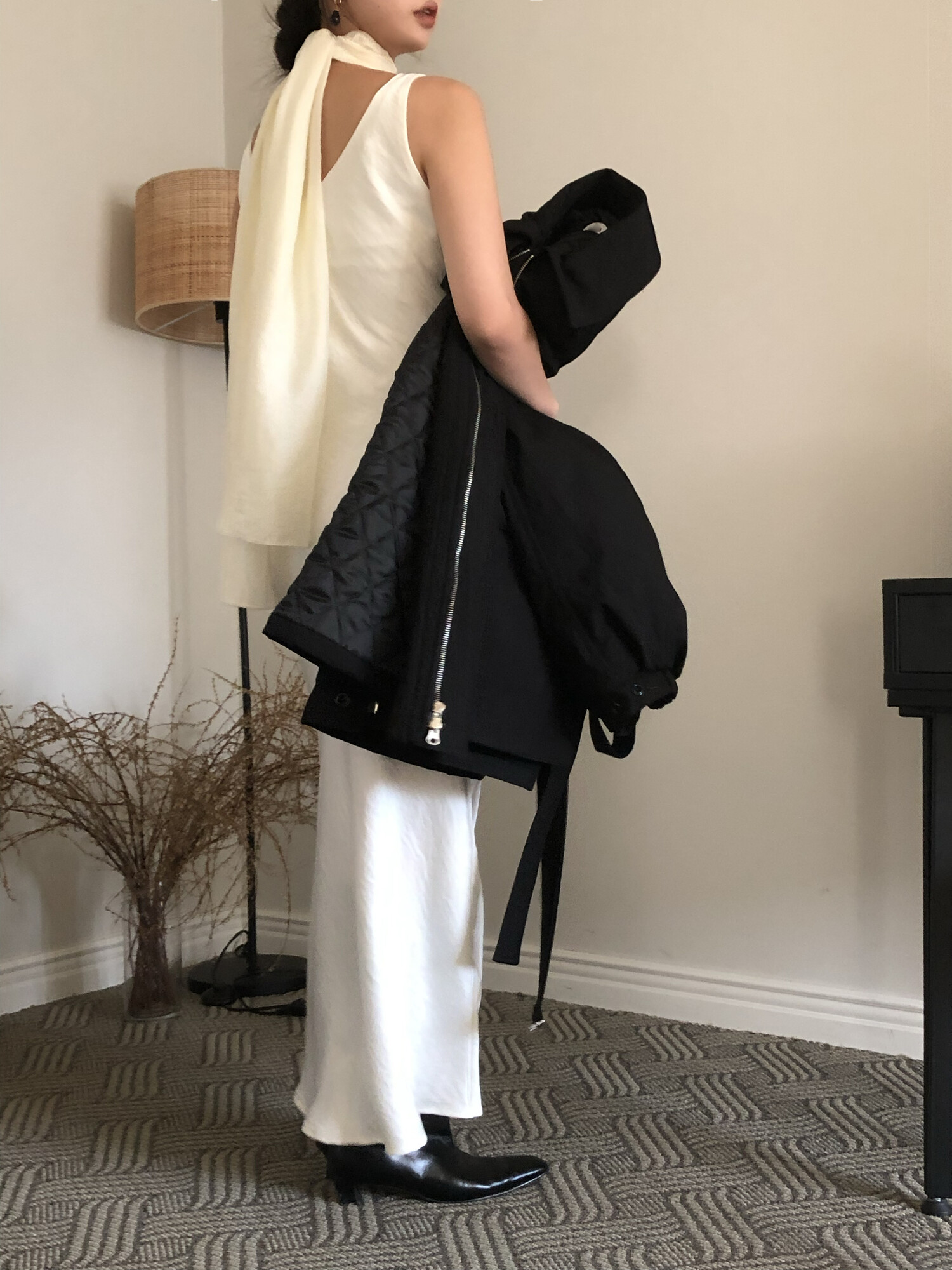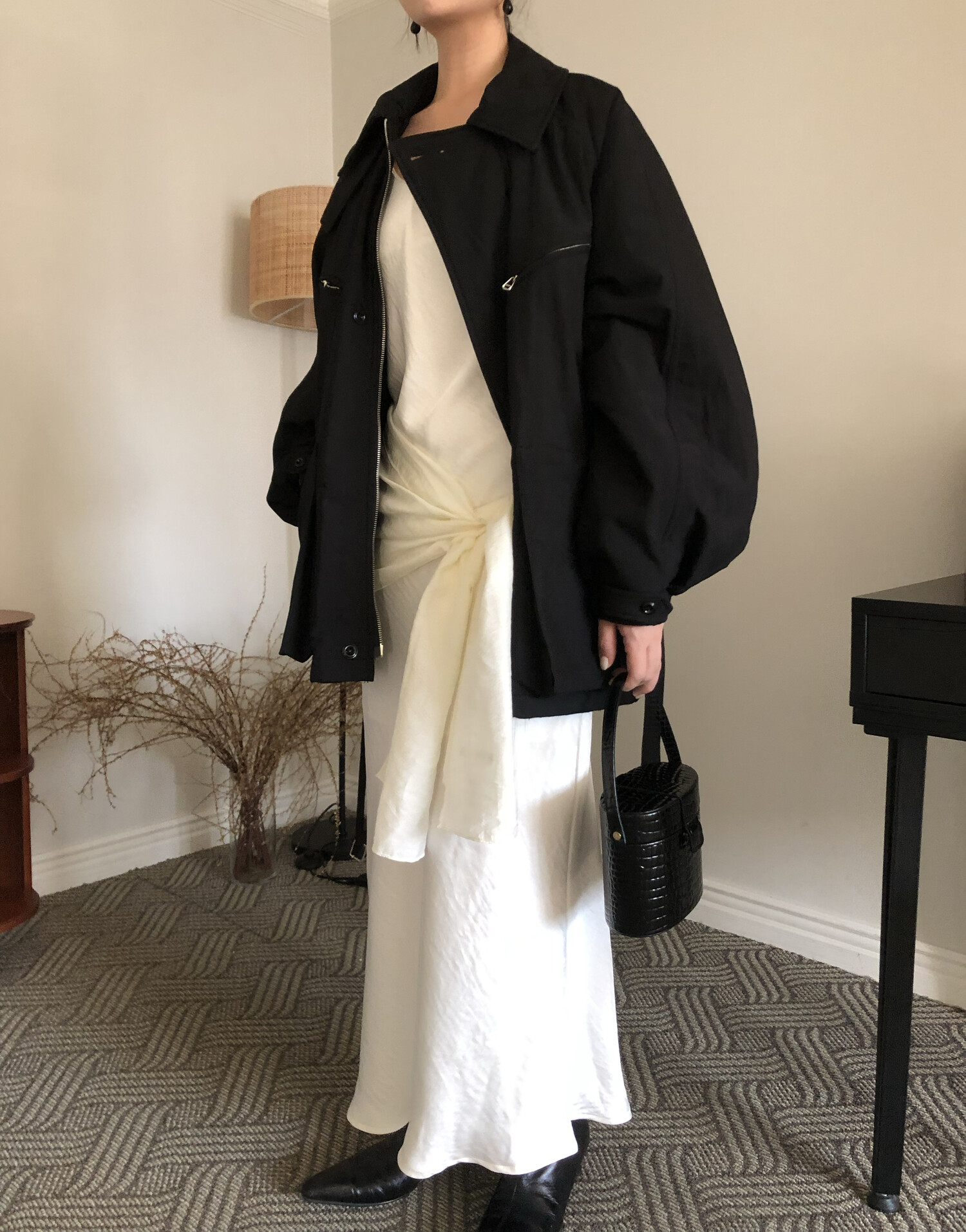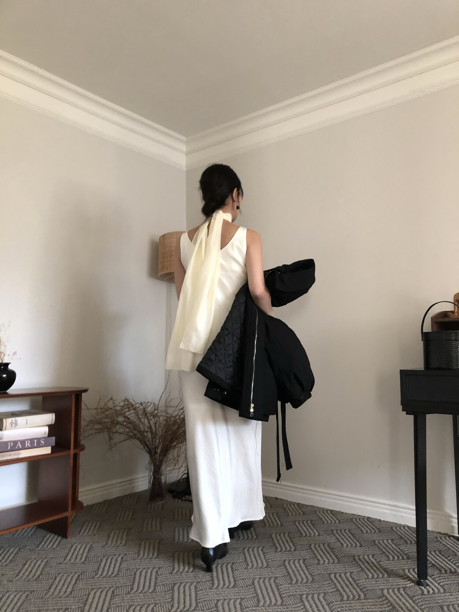 -고급스러우며 은은한 광택감의 새틴 원피스