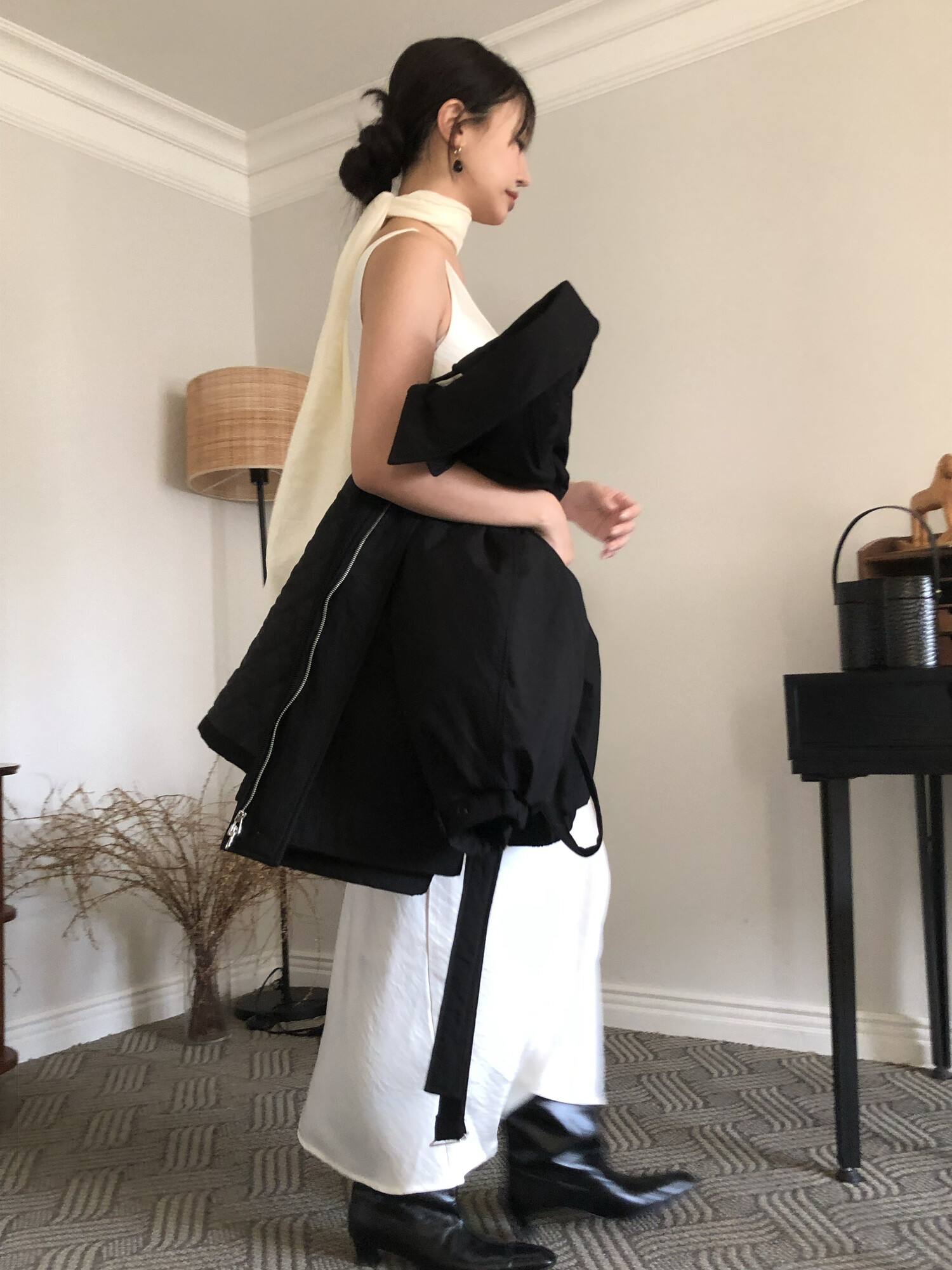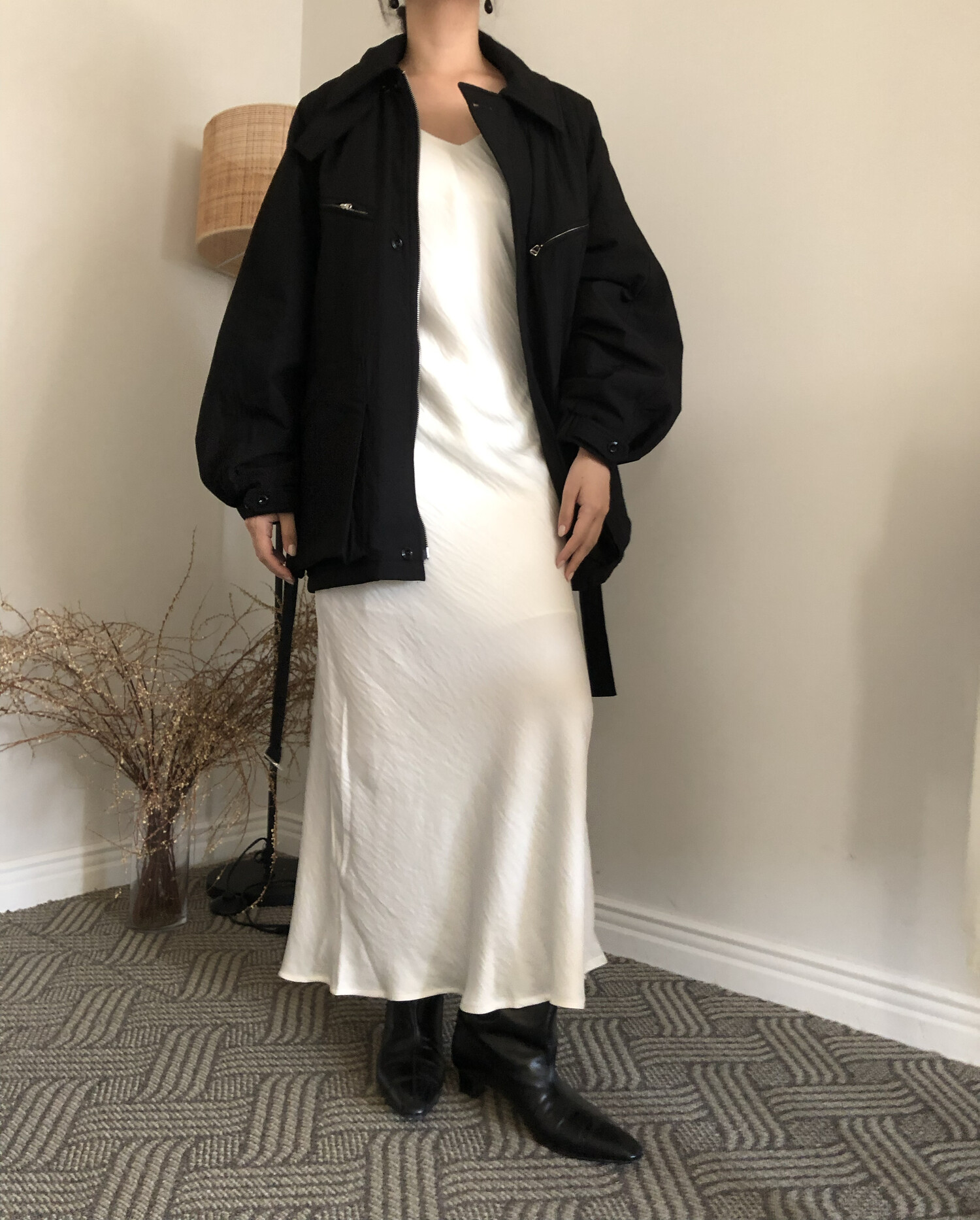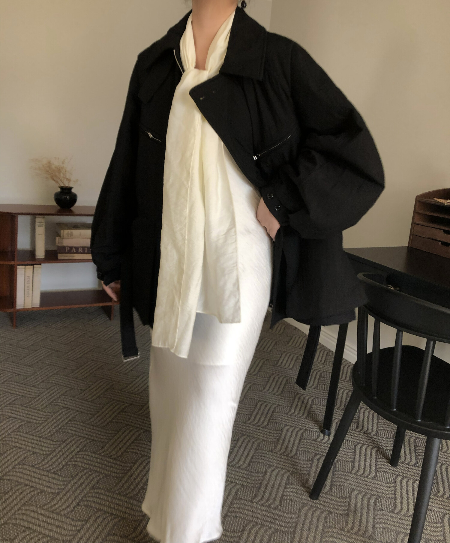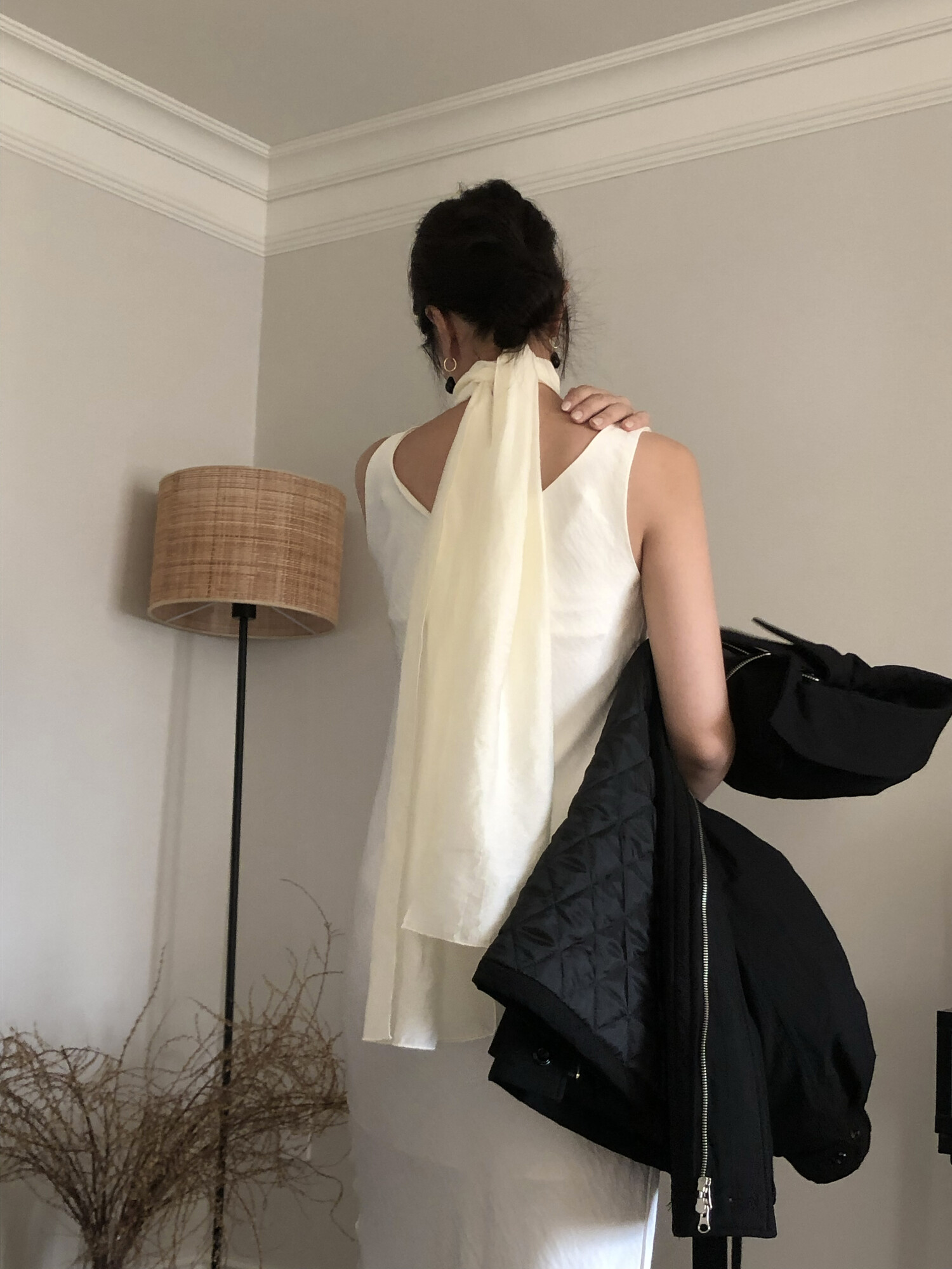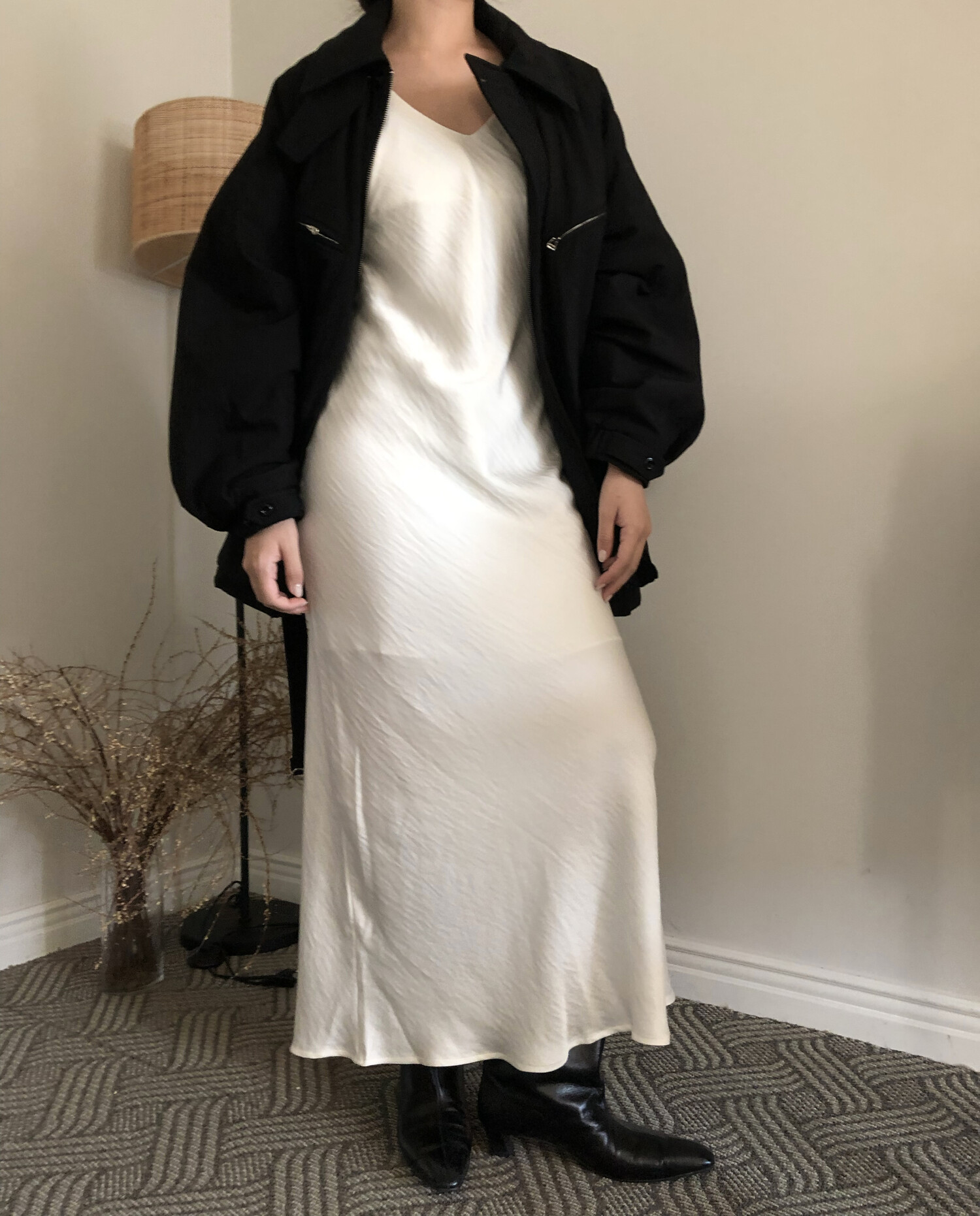 -고급스러우며 은은한 광택감의 새틴 원피스