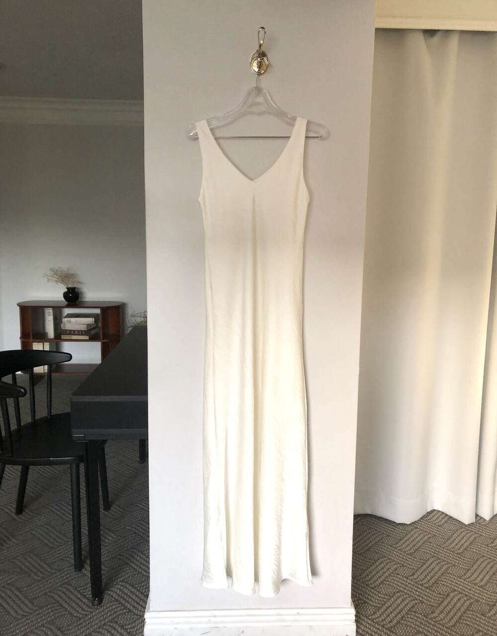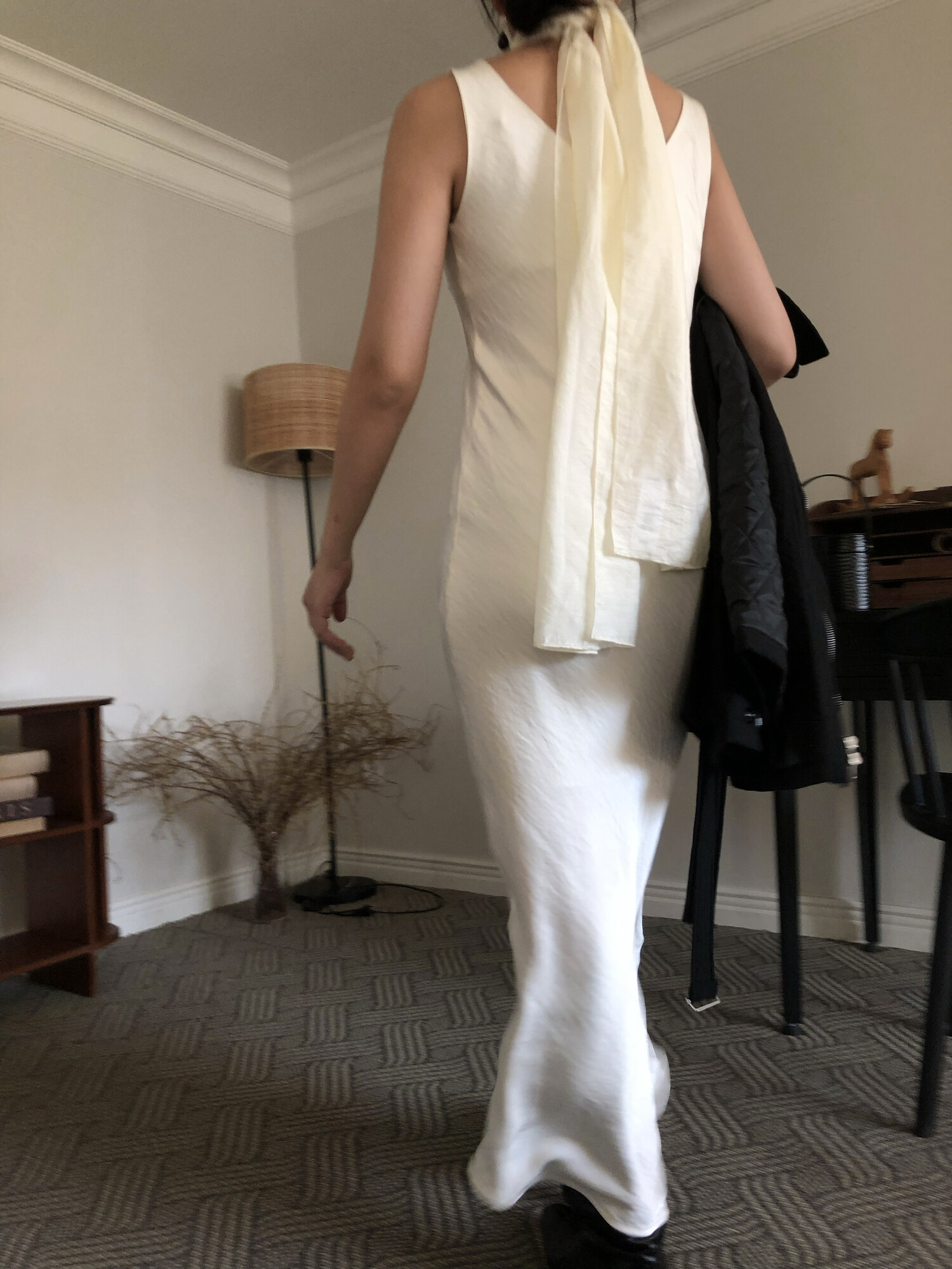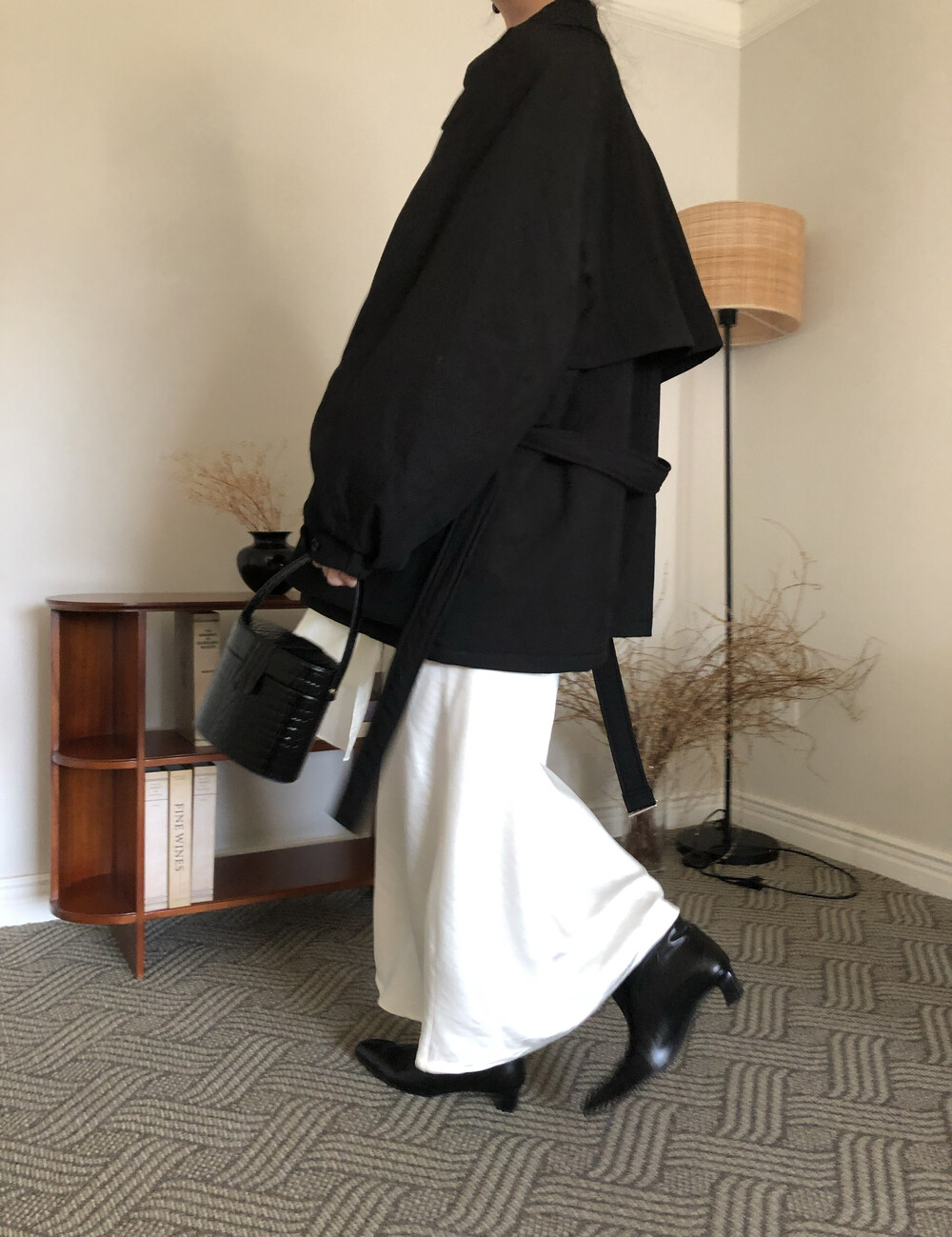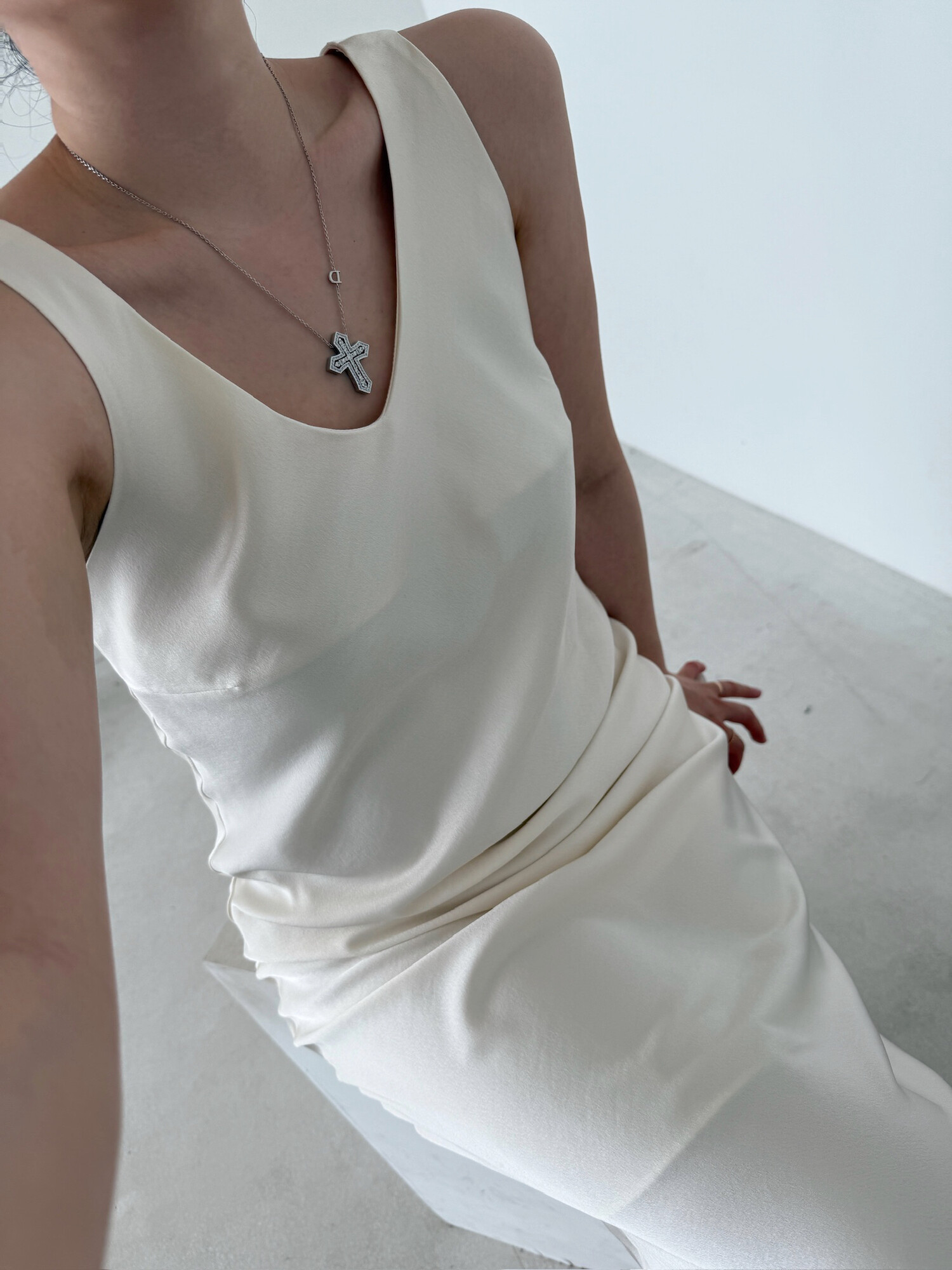 -고급스러우며 은은한 광택감의 새틴 원피스