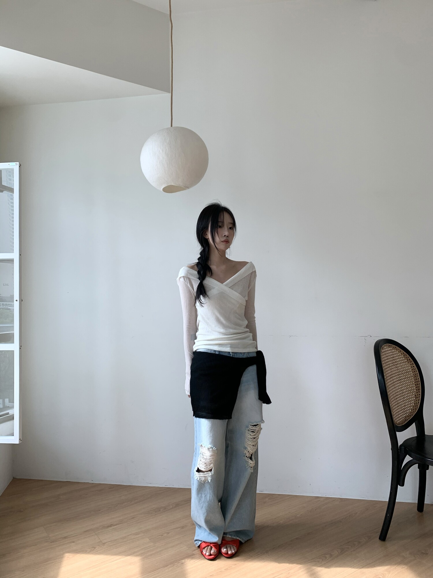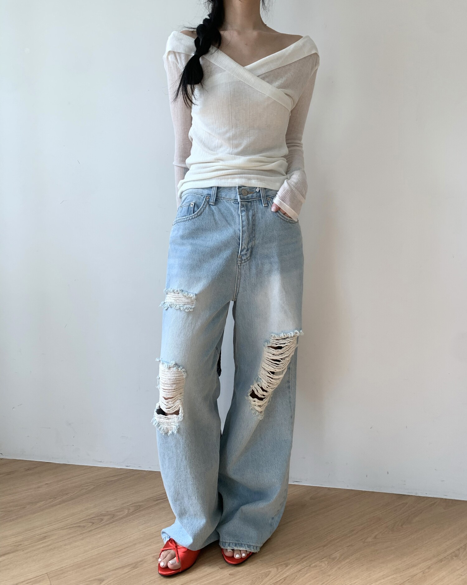 162cm / 허리 28 (상의 s, 하의m 힙과 허벅지가 큰편) / 신발 240mm