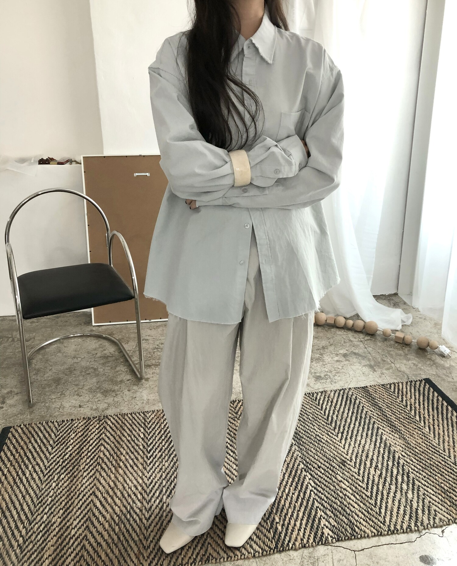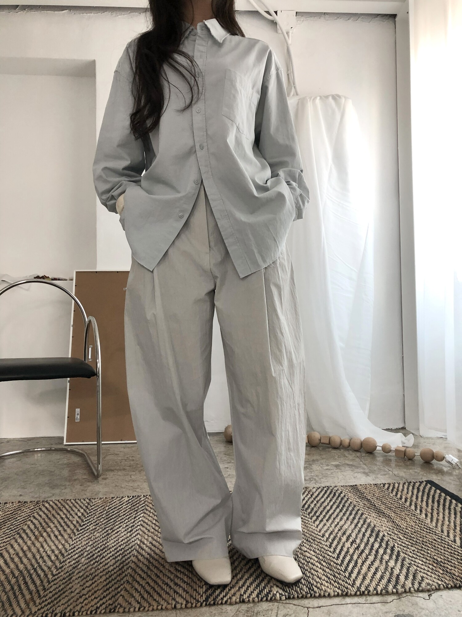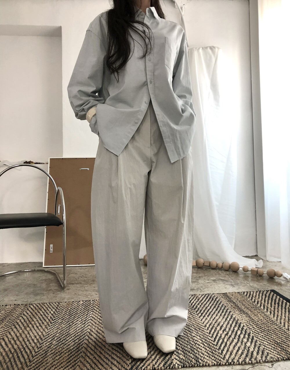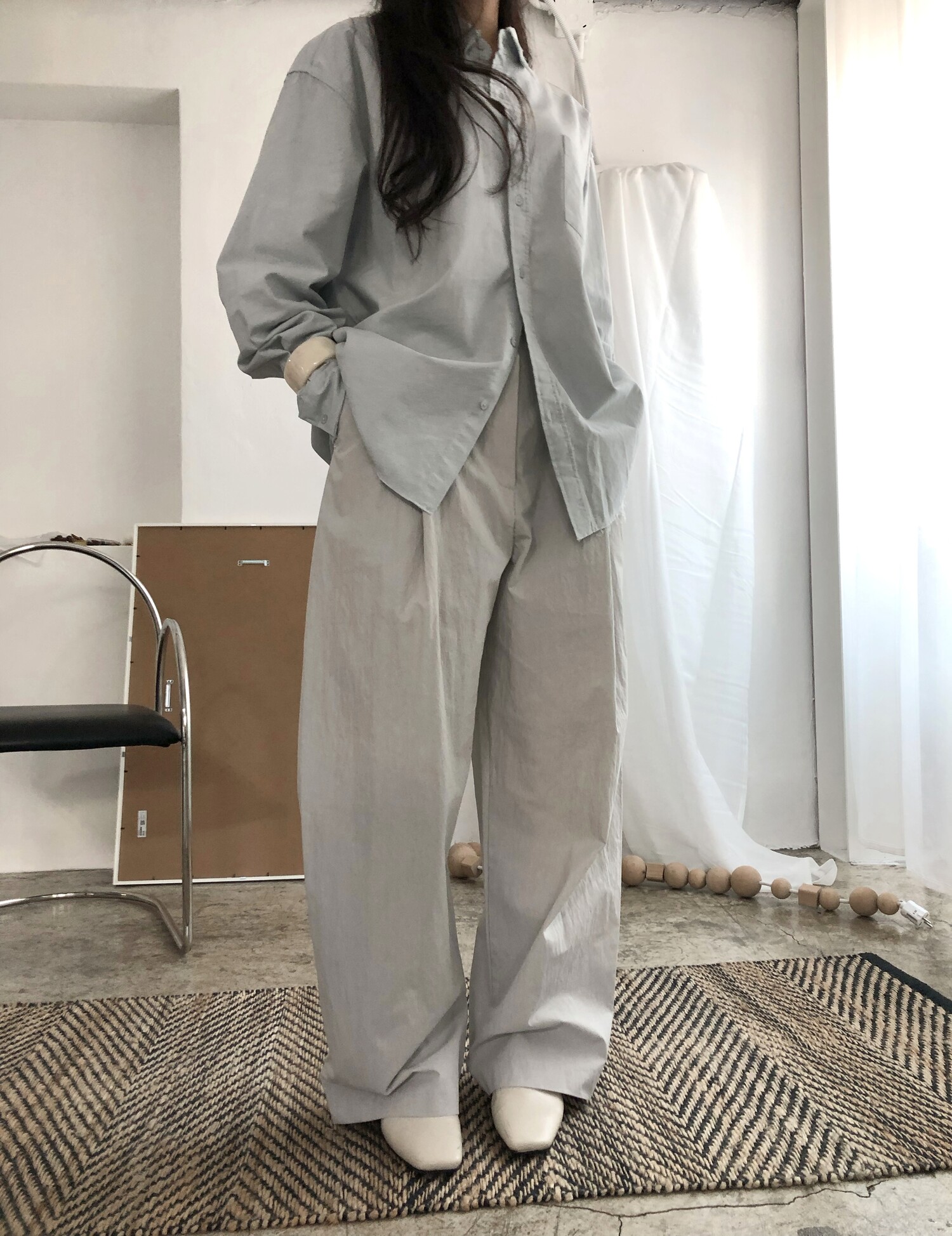 -바스락거리는 굉장히 얇고 가벼운 소재감으로 여름까지 쭉 즐기실 수 있어요.
