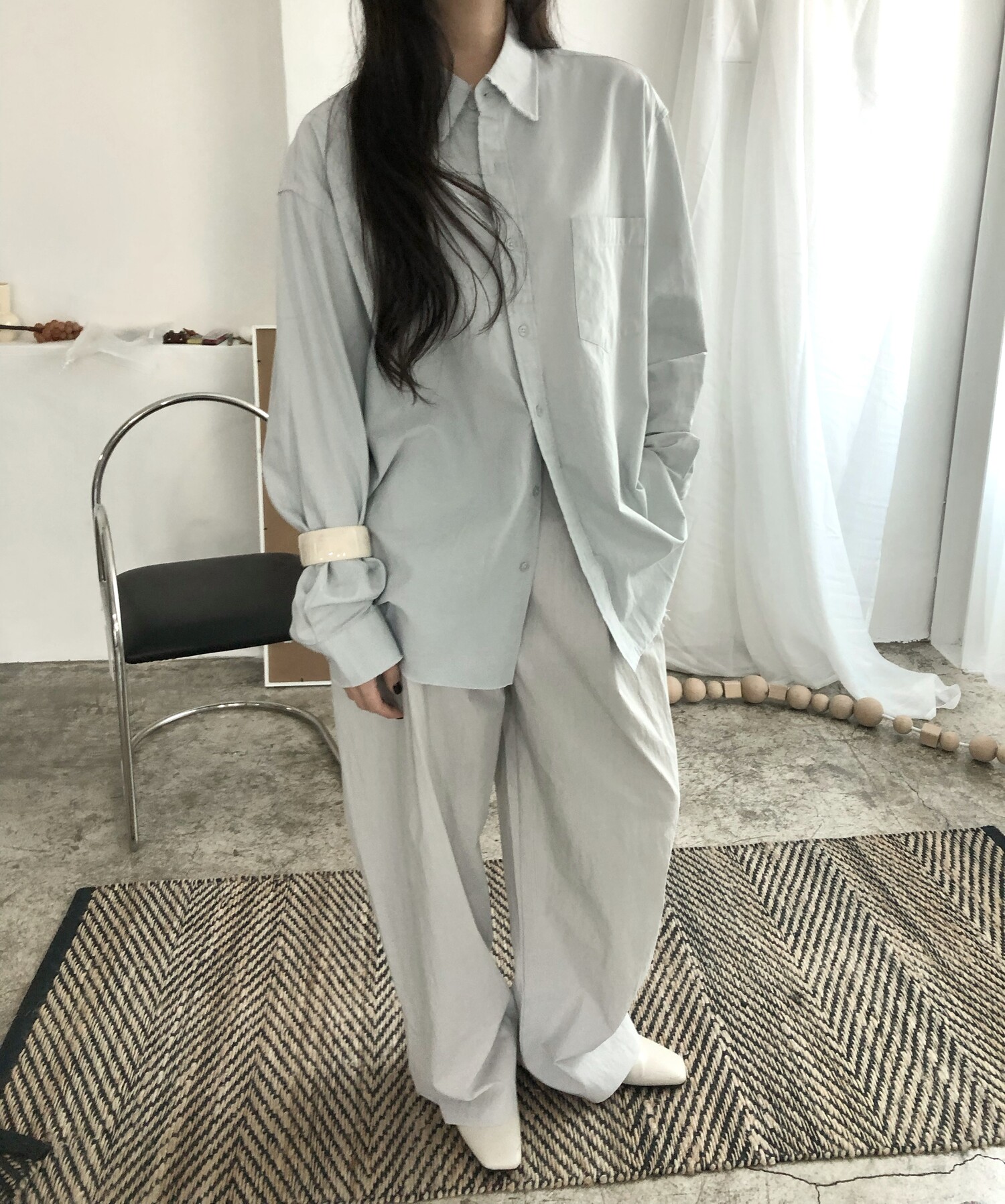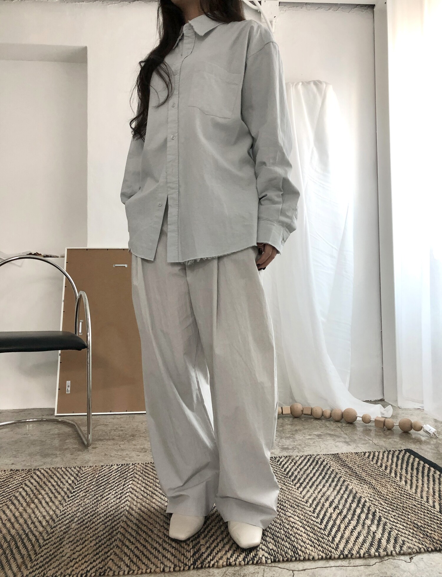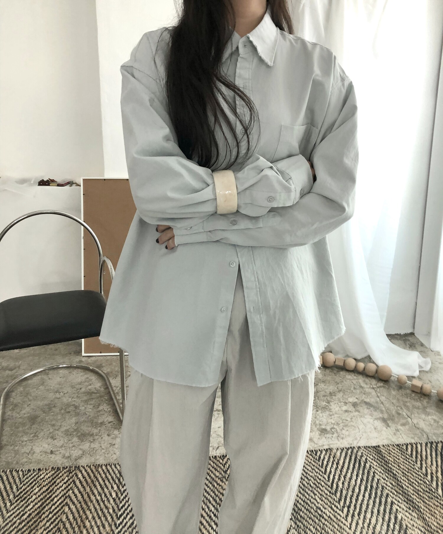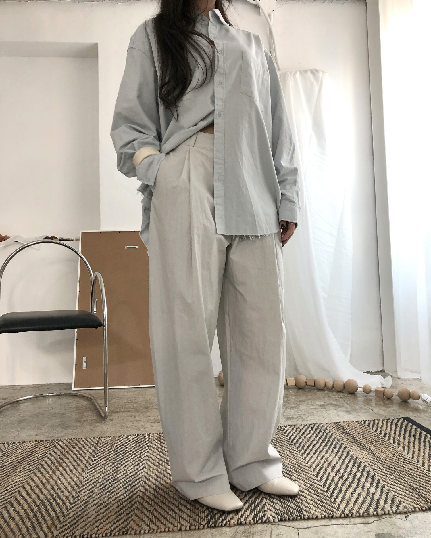 -바스락거리는 굉장히 얇고 가벼운 소재감으로 여름까지 쭉 즐기실 수 있어요.