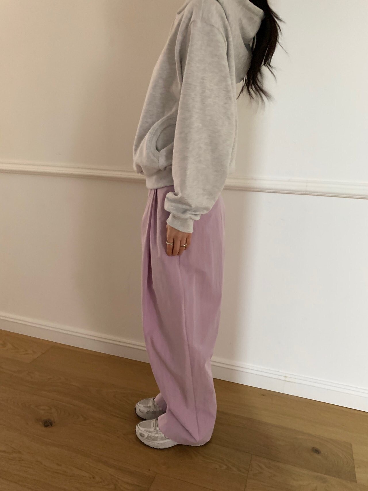핏이 빠질 수 없겠죠, 살짝 커브드한 와이드 핏으로 길고 슬림하게 만들어준답니다. 착용했을 때 더욱 만족스러웠답니다.